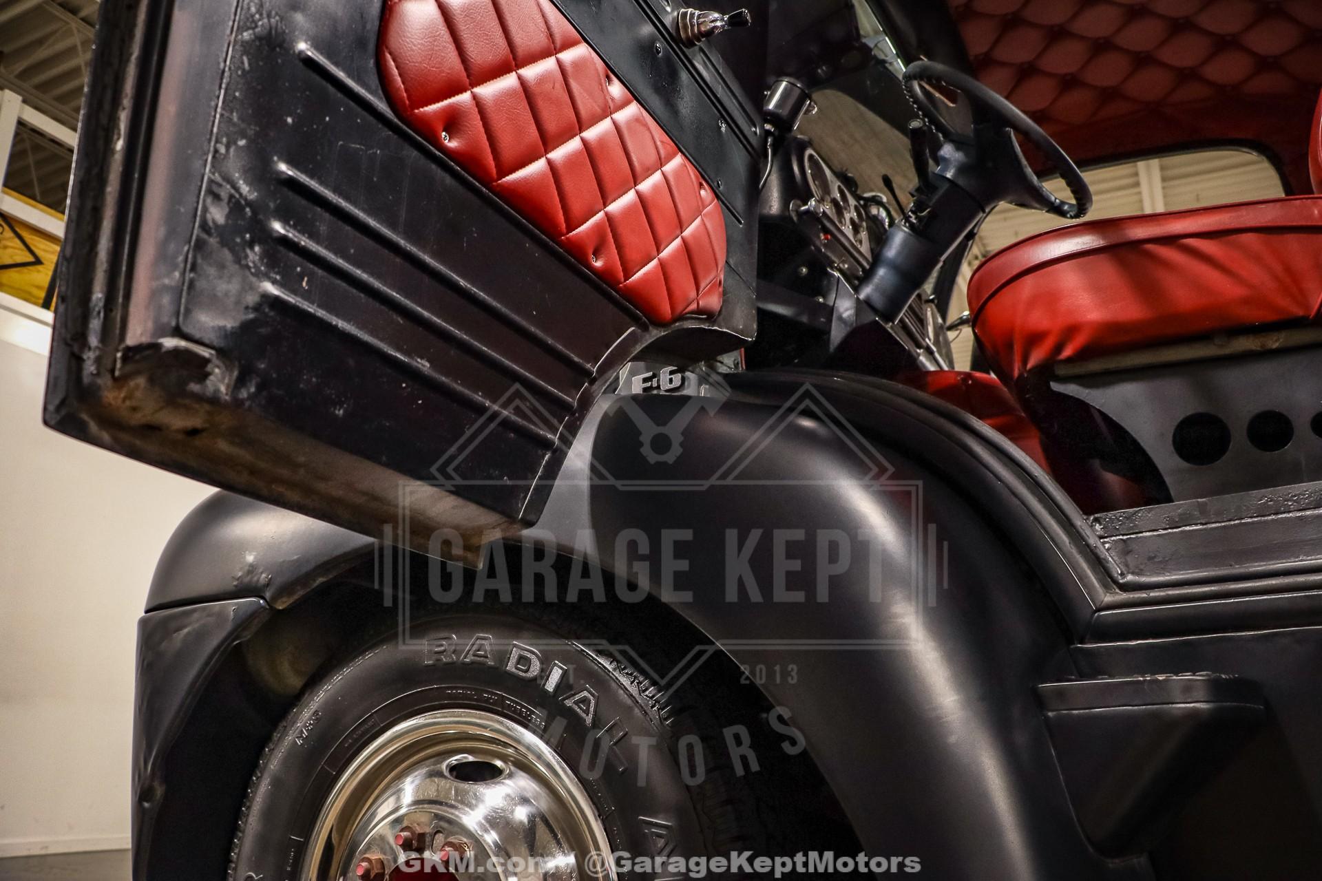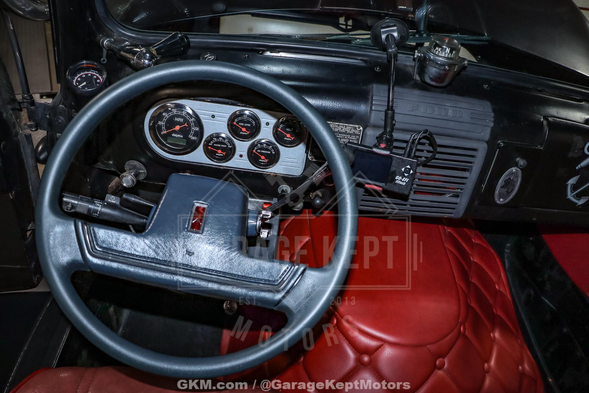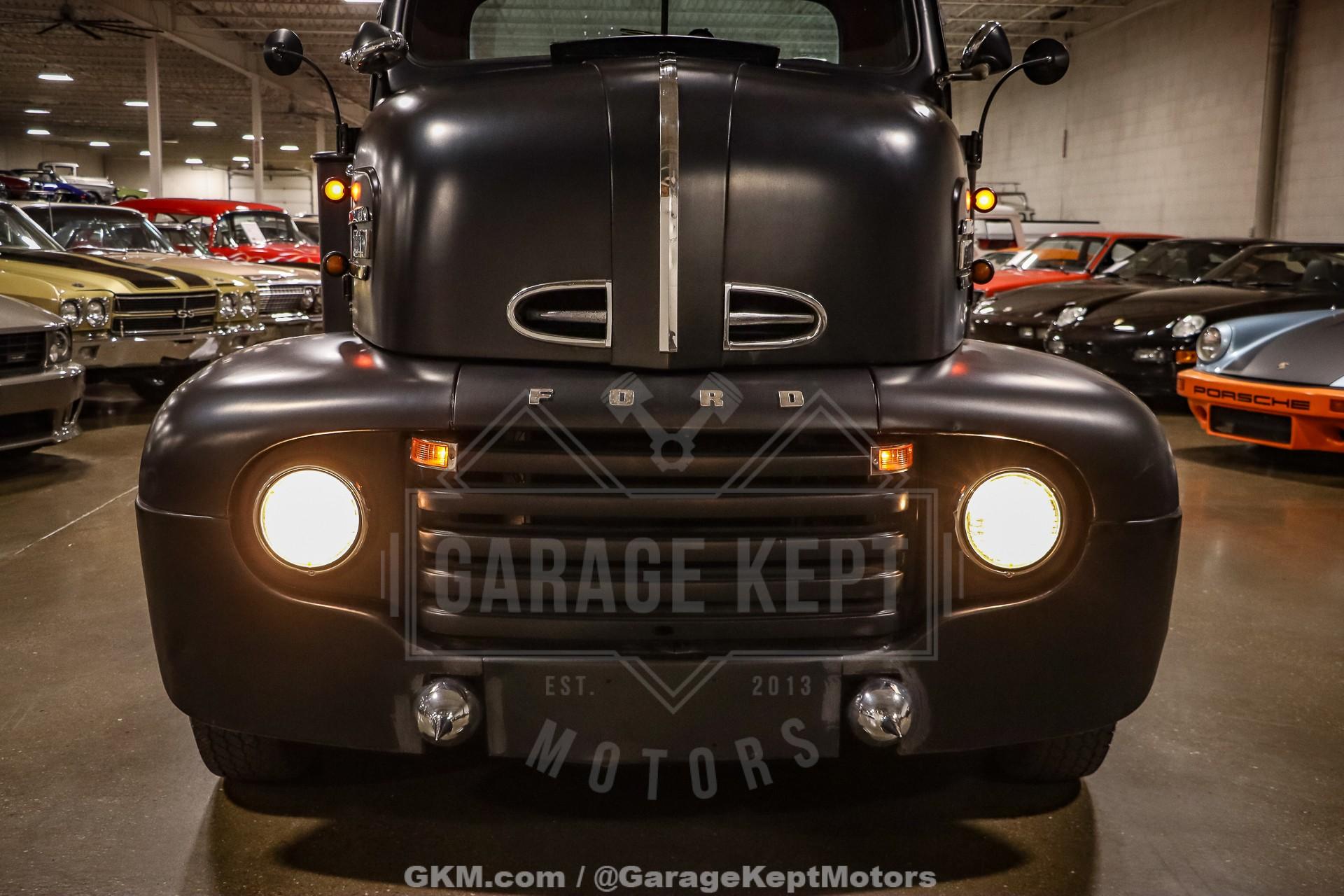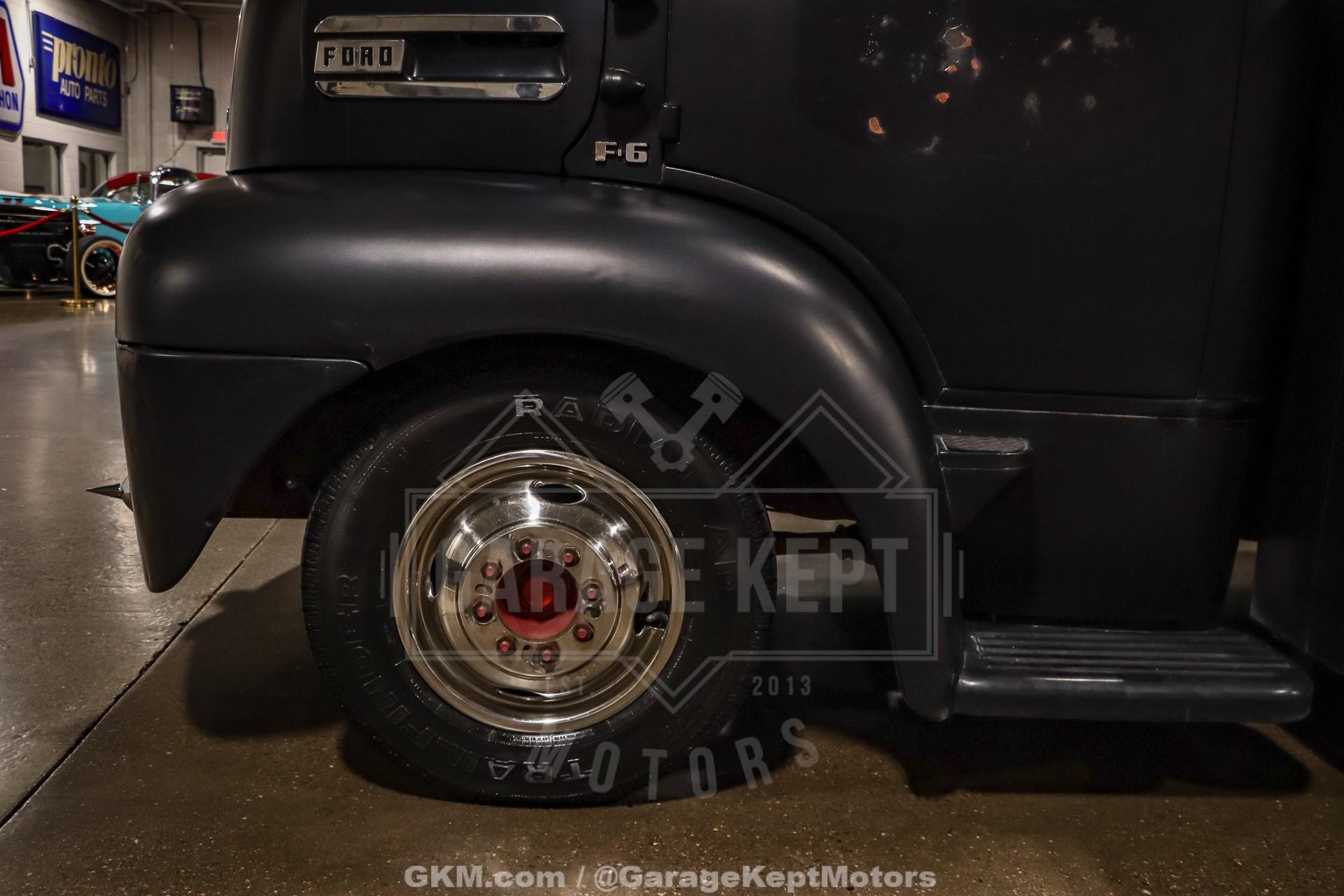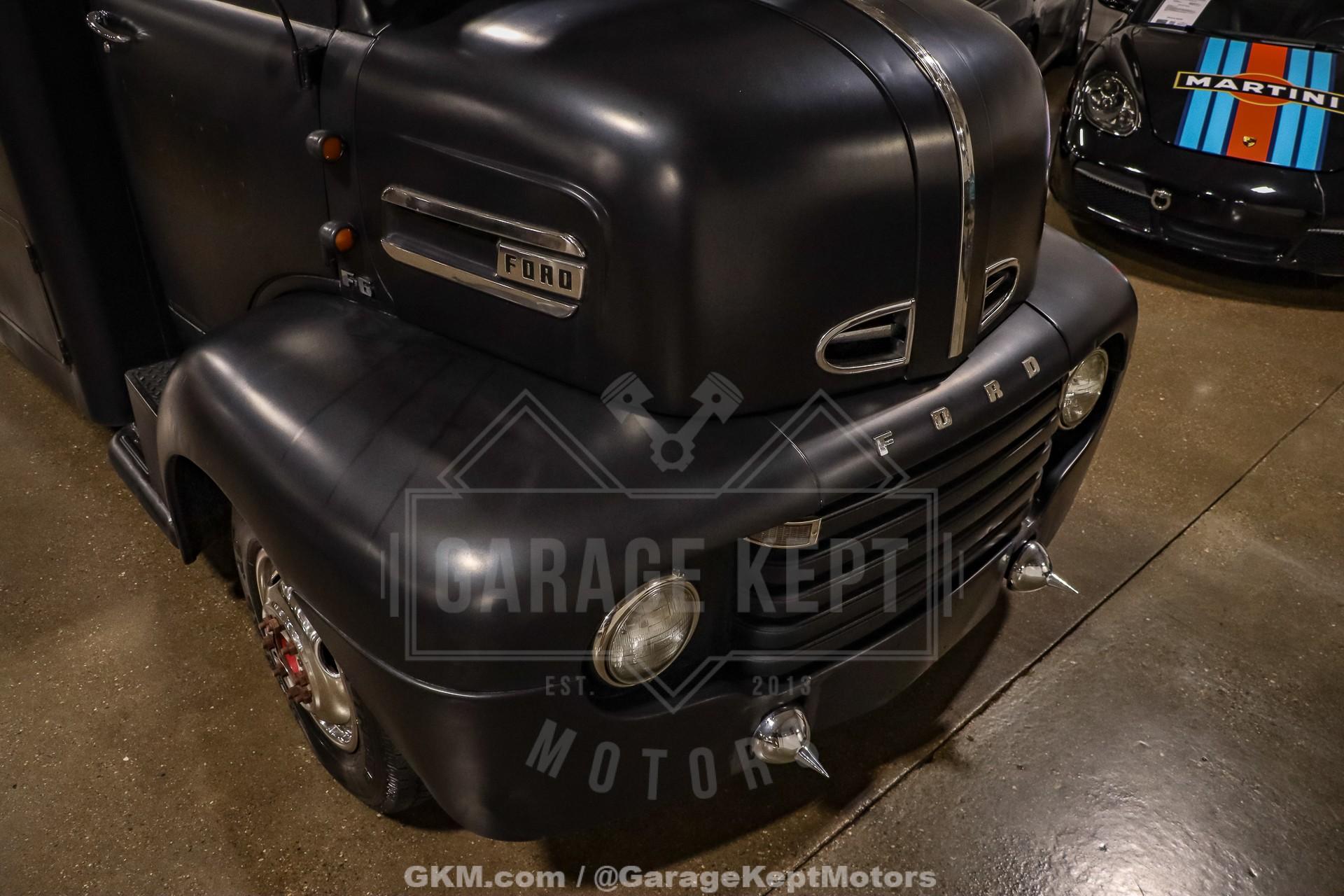 1952 Ford F9 COEDually Pickup Truck- Same owner since 2015- Acquired from Colorado- Flat Black over Red Interior- 460ci V8- Automatic Transmission- Holley Sniper EFI- Power Steering- 5k Miles Shown The 1952 Ford F9 COE Dually Pickup Truck is a bold and distinctive take on one of Ford's most iconic postwar designs. This particular example, acquired from Colorado and owned by the same enthusiast since 2015, has been meticulously crafted into a head-turning custom hauler. Finished in flat black with a vivid red interior, the truck's stance and proportions immediately command attention. Its cab-over-engine (COE) design gives it a commanding view of the road and an unmistakable vintage profile, blending 1950s industrial charm with modern drivability.Professionally mounted on a 1978 Winnebago chassis, this F9 benefits from significant performance and comfort upgrades while retaining its classic looks. Power comes from a 460 cubic-inch V8 fitted with FiTech Go-EFI fuel injection, paired to an automatic transmission. This combination delivers both strong torque and reliable cruising power, making it a surprisingly smooth and capable rig on modern roads. Power steering and power brakes enhance the driving experience, while the addition of a tow package underscores the truck's practical side; ready to haul, tow, or simply cruise.Step inside, and the attention to detail continues. The red leather interior provides a vivid contrast to the subdued exterior, offering a mix of vintage styling and modern refinement. Dolphin gauges line the dashboard, providing accurate readouts while adding a custom touch. A diamond-plate flat deck sits behind the cab, giving the truck a rugged utility look that?s balanced by finer touches like spotlights and clean metalwork. The overall result is a well-sorted build that feels as durable as it looks distinctive.With only 5,000 miles shown since its conversion, this truck remains in excellent driving condition. It starts easily thanks to the EFI system, idles smoothly, and offers a commanding yet comfortable ride. The truck?s dual rear wheels and solid chassis give it impressive stability, making it equally at home cruising highways or parked proudly at a car show. Its combination of power, stance, and usability makes it a standout among COE conversion and an ideal blend of classic design and modern mechanical reliability.Rooted in the first-generation Ford F-Series lineage, this 1952 Ford F9 COE represents both history and innovation. The original F-Series, introduced in 1947, marked Ford's first postwar truck platform and set the tone for decades of durable, hardworking designs. This particular example honors that legacy while adding custom craftsmanship and mechanical upgrades that transform it into a unique and highly drivable classic. Whether admired for its imposing looks, engineering creativity, or sheer presence on the road, this COE is a remarkable tribute to the enduring spirit of American truck culture.