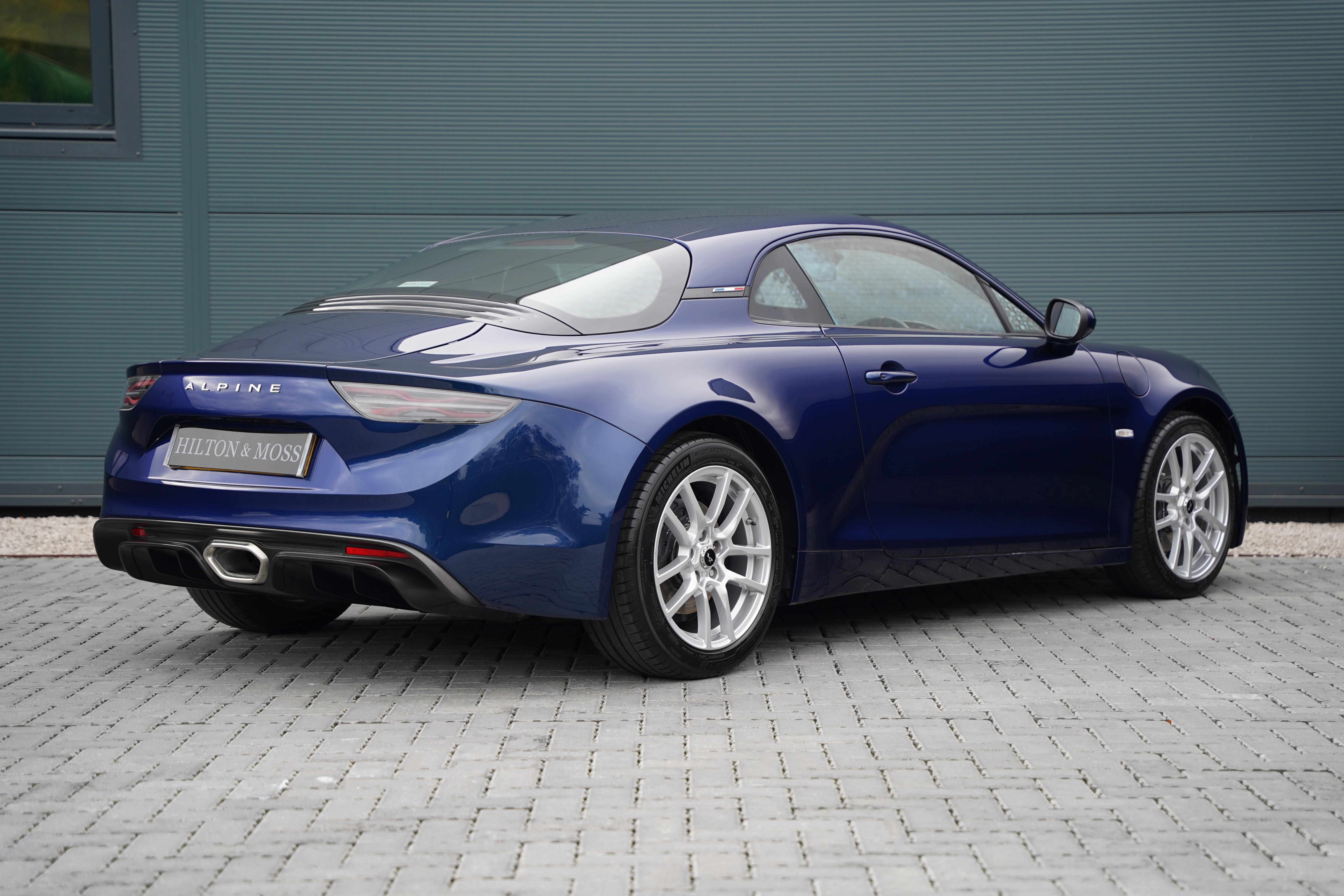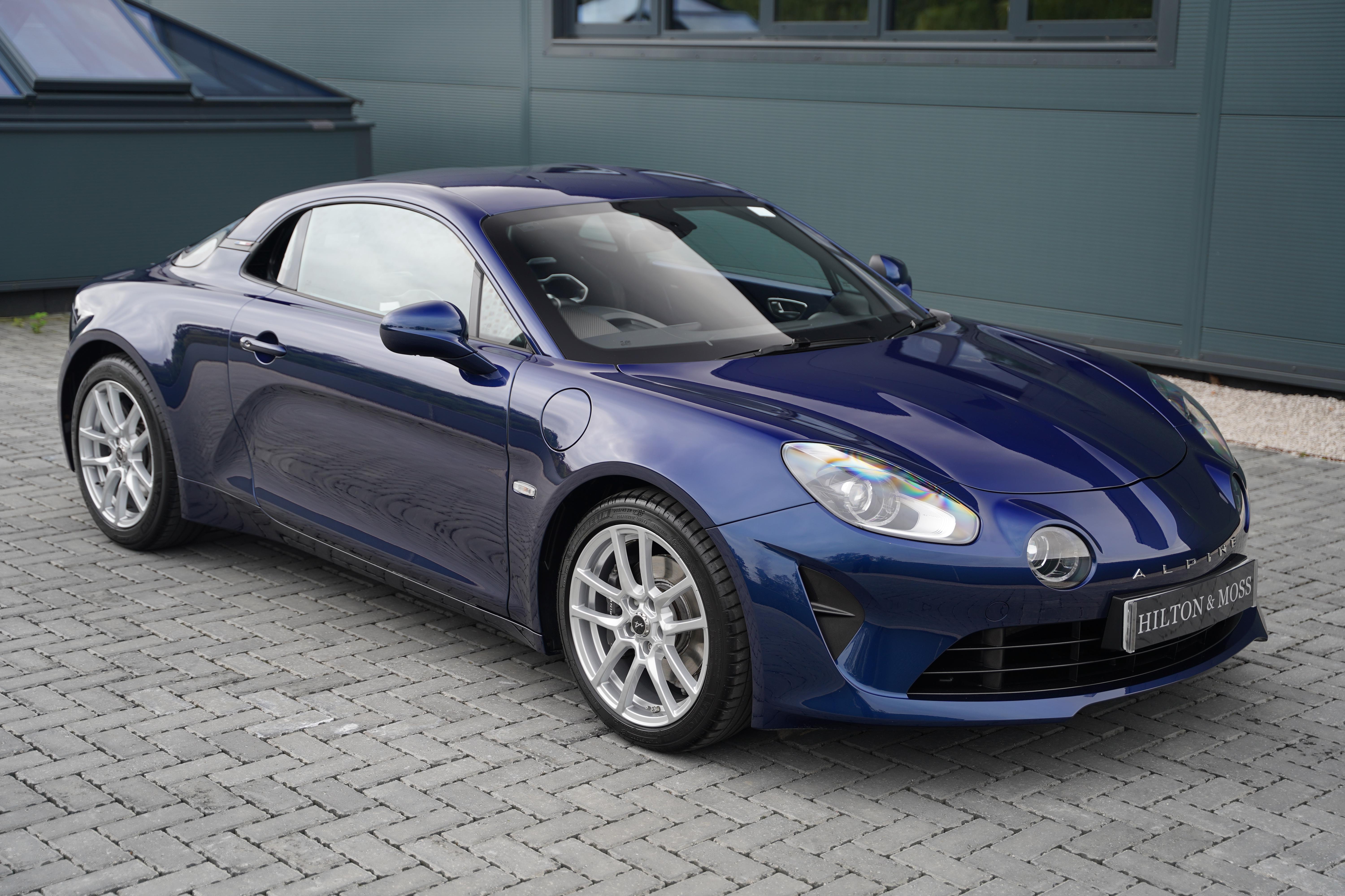 Hilton & Moss are excited to present another fantastic Alpine A110 at our showroom. A mid-engine rear wheel drive sports car for the 21st Century, with a turbo-charged 1.8 litre in-line four engine.