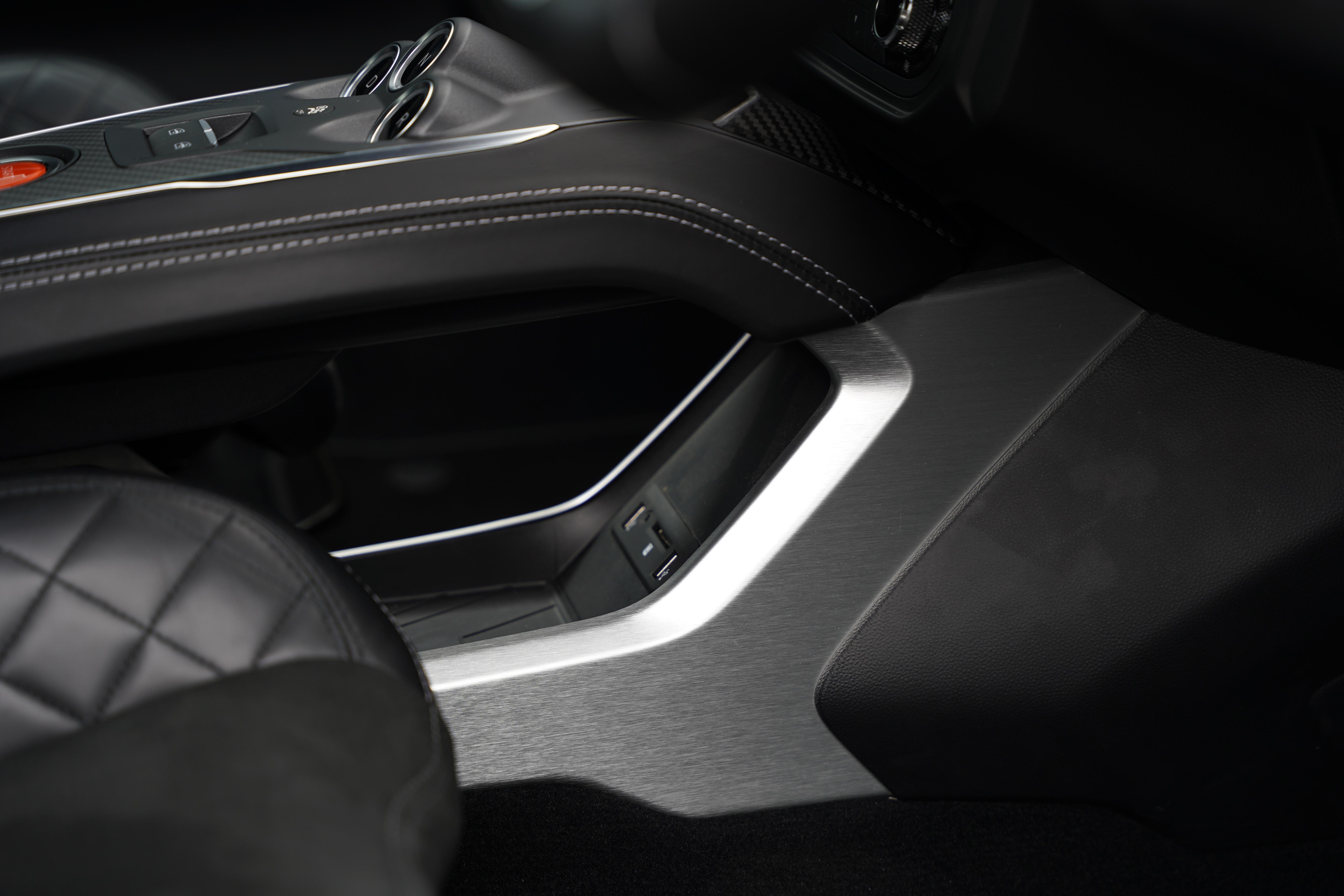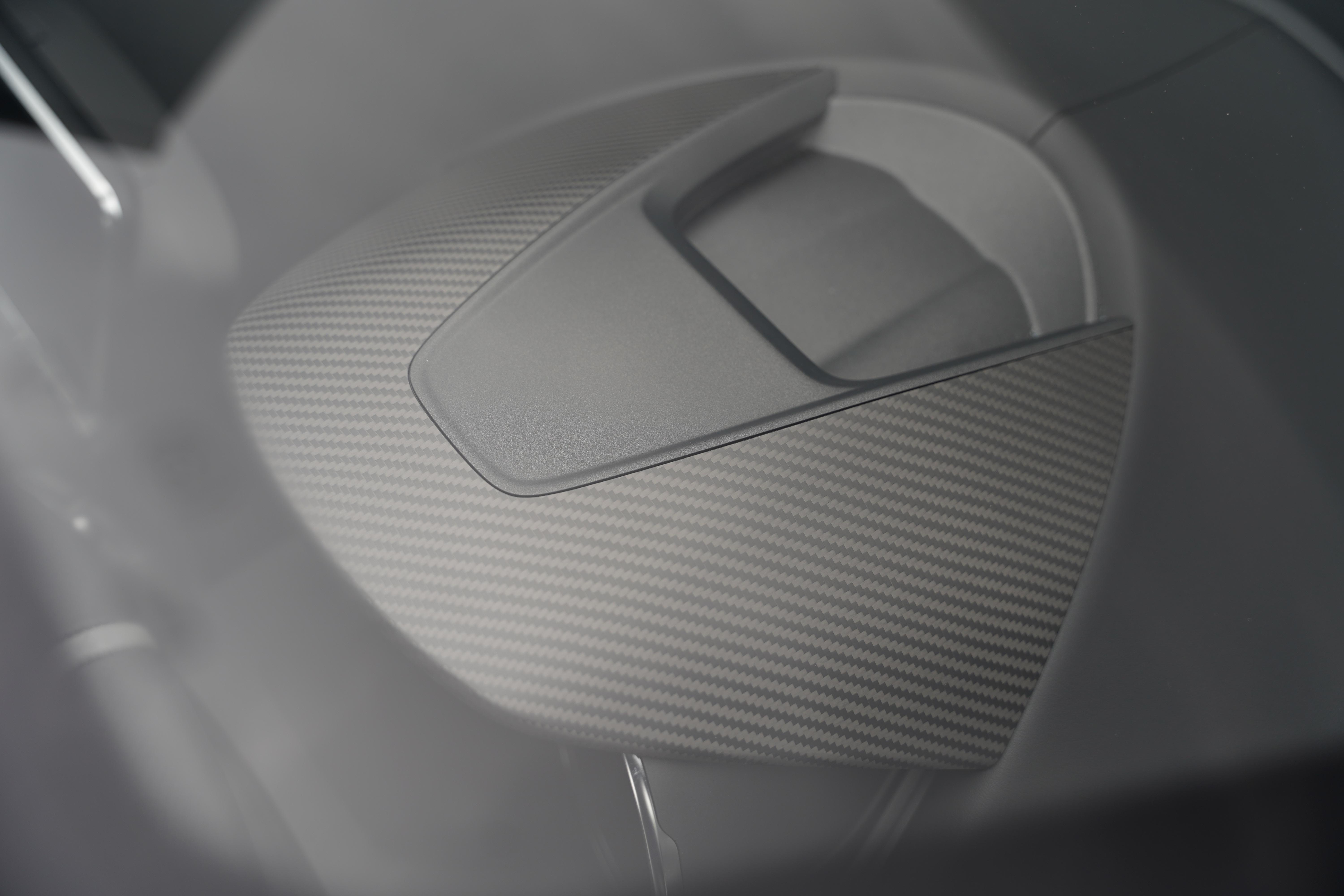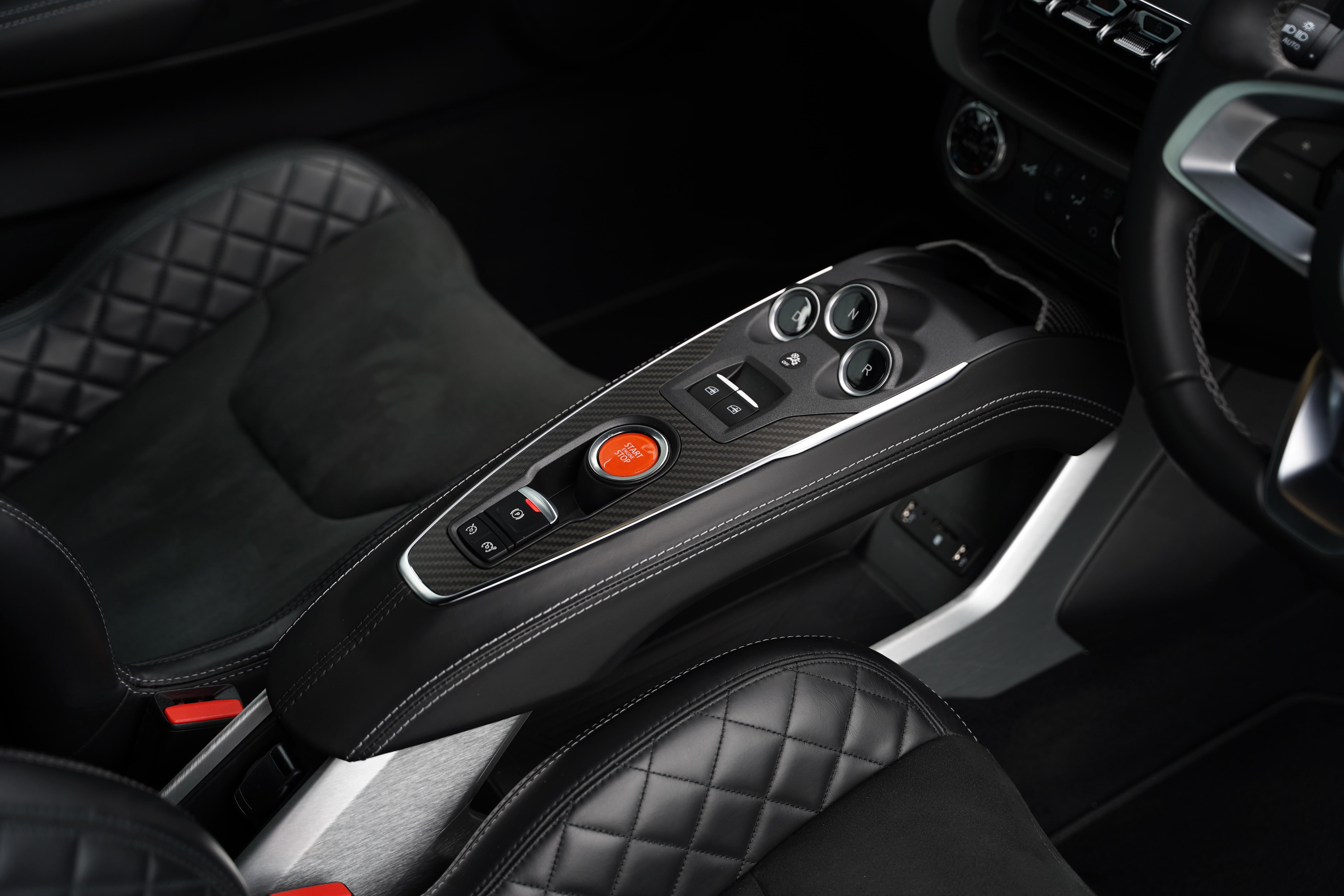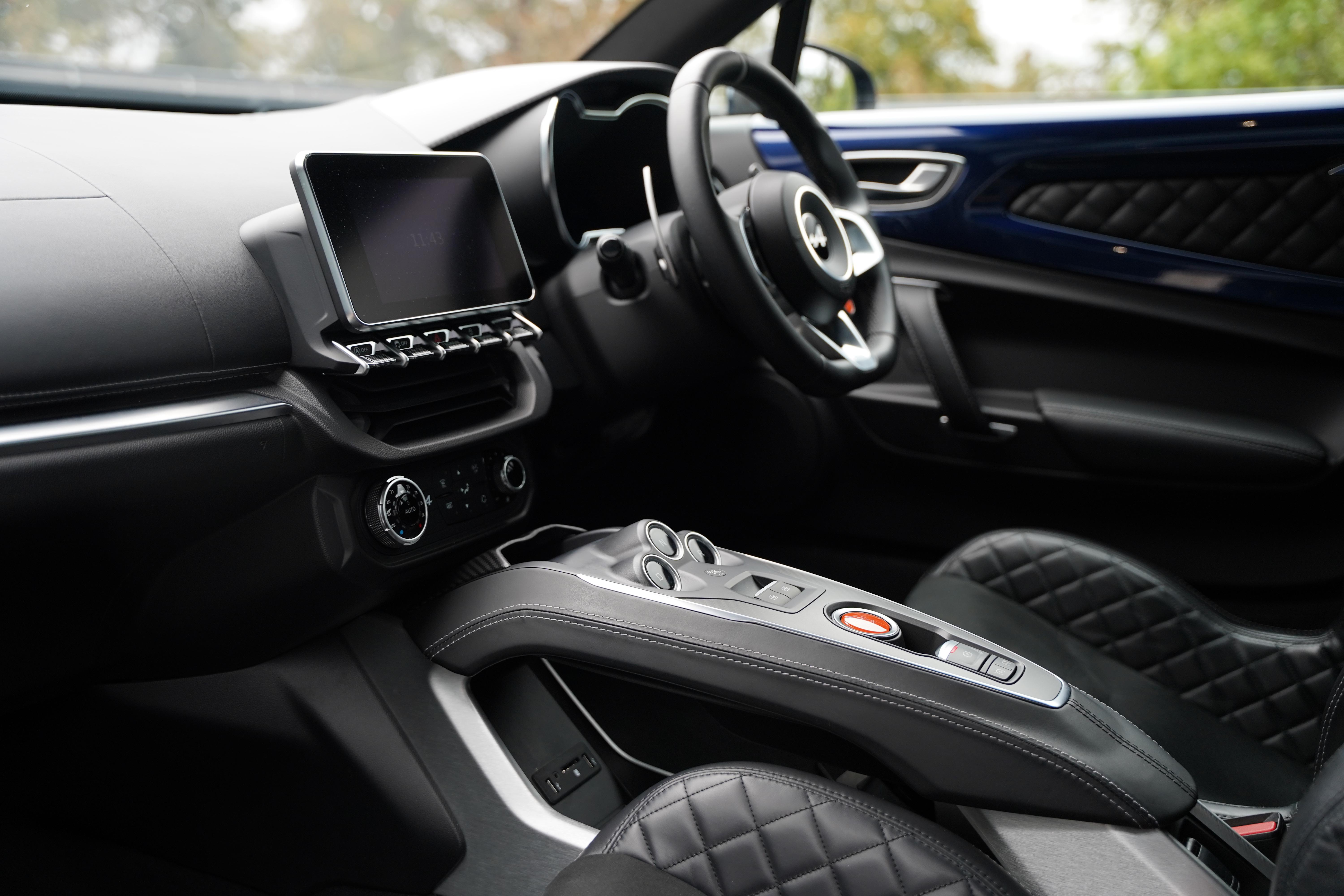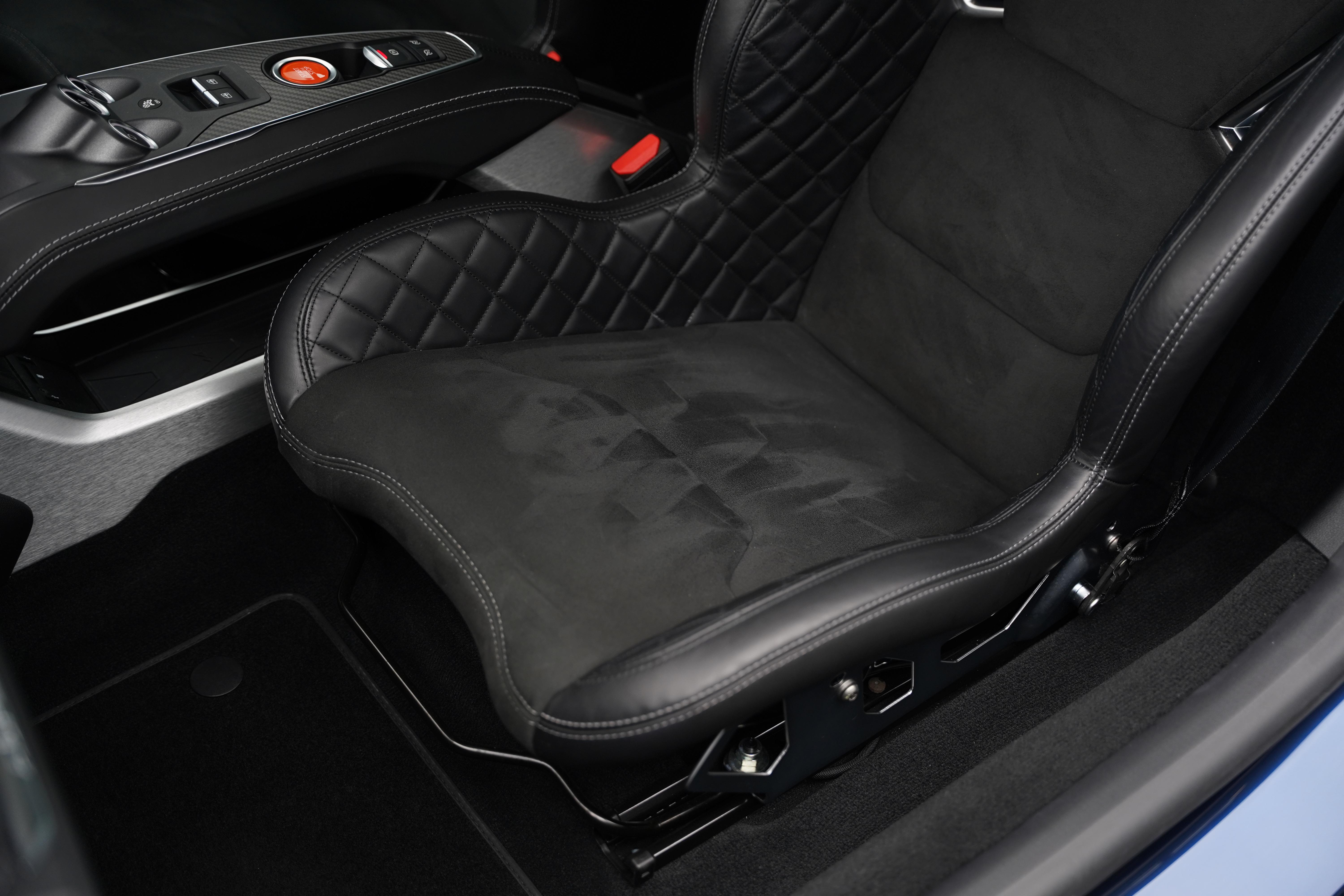 As the Pure model, the car features the lightweight one-piece Sabelt bucket seats that provide a supportive yet comfortable seating position for daily driving. Matt finish carbon fibre inserts can be found throughout, and the 7-inch touchscreen sits prominently above the centre console. Quilted leather and body colour door cards provide a refreshing and modern interior.