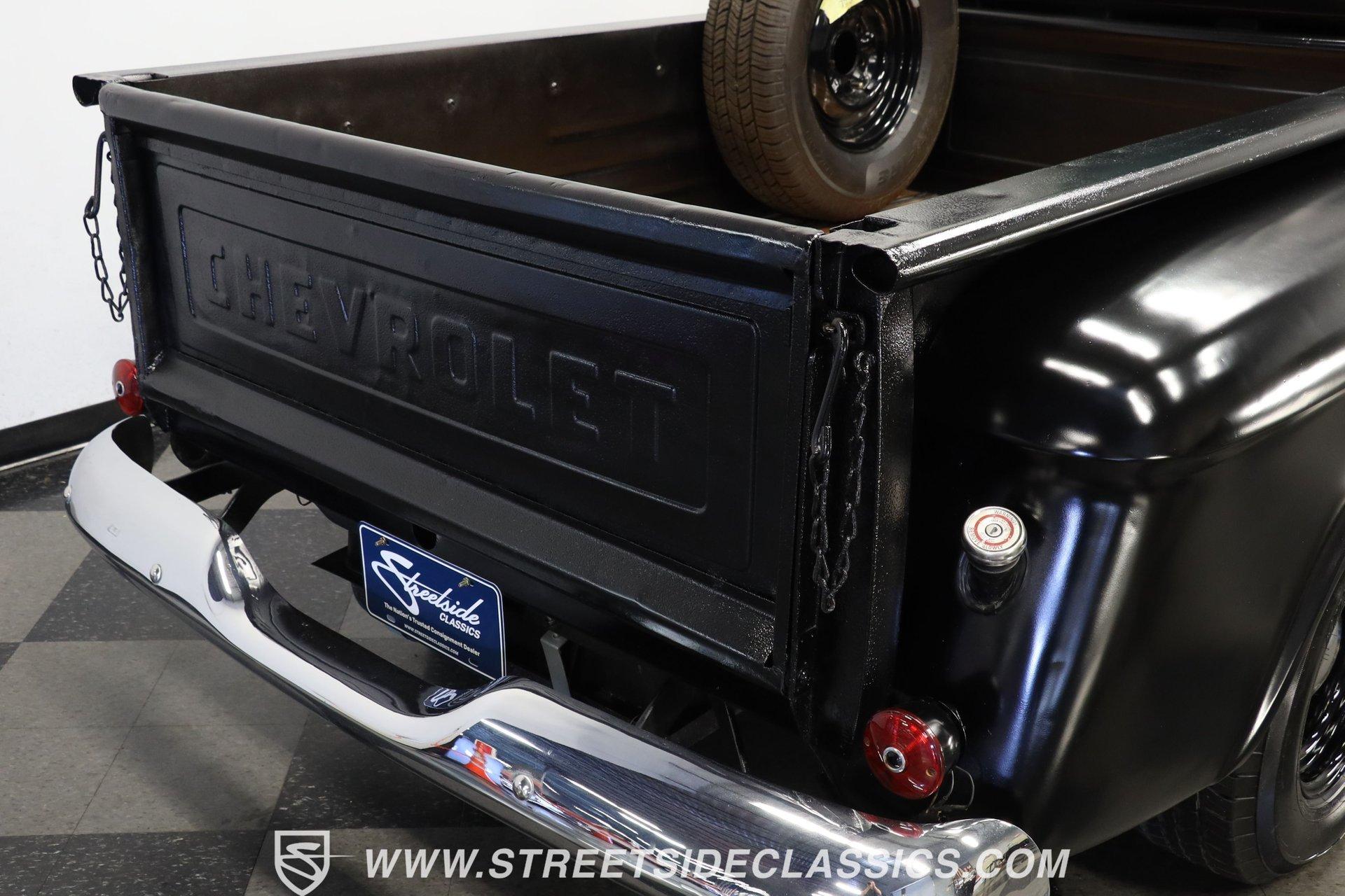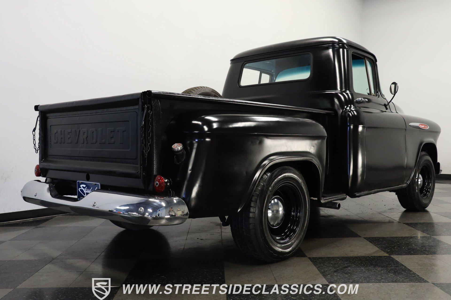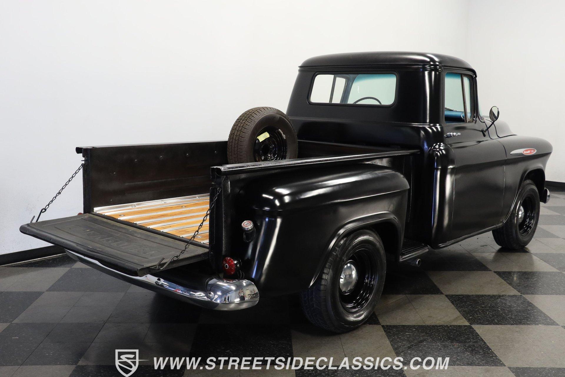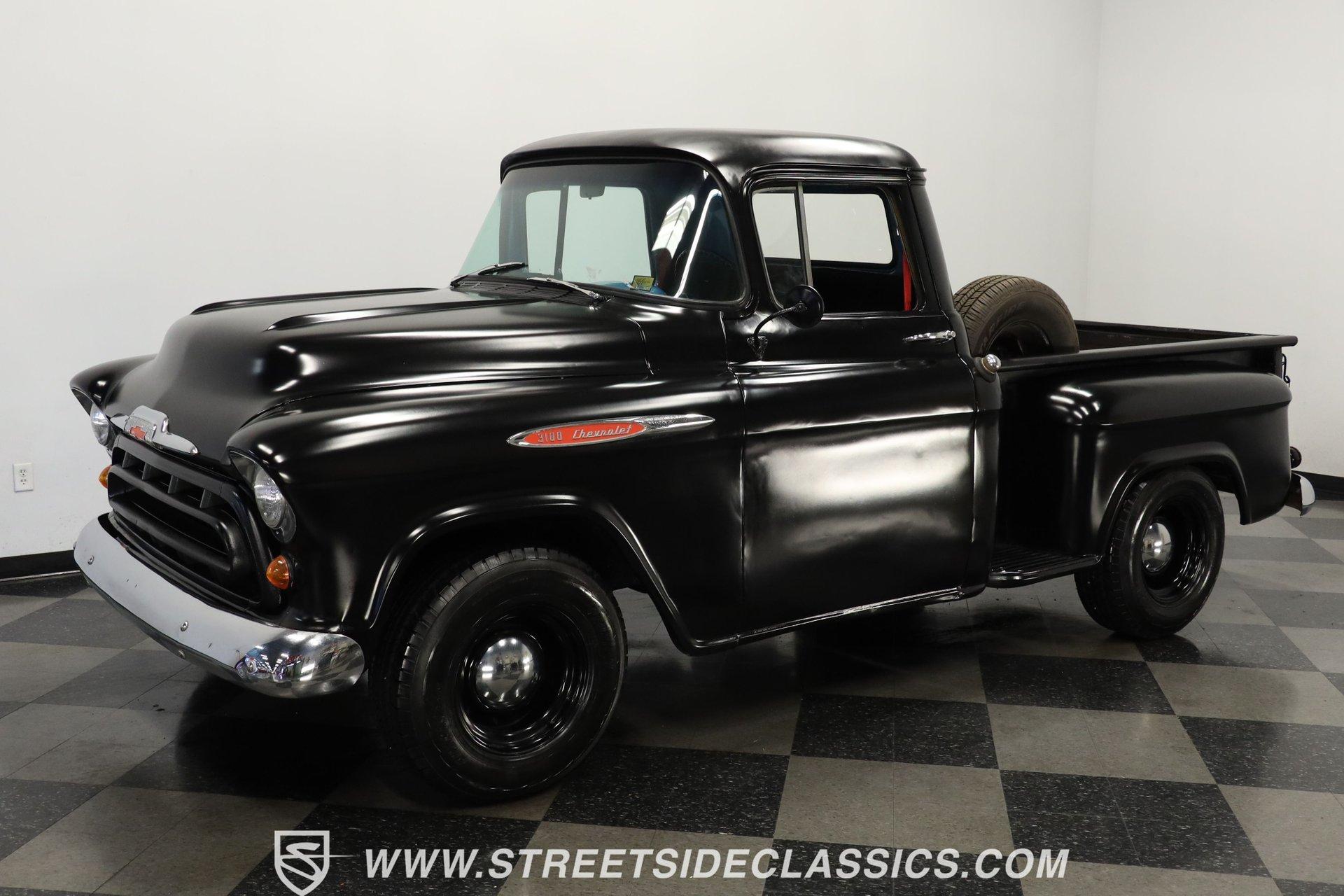 Experience the timeless charm and rugged appeal of the 1957 Chevrolet 3100, a true icon of American automotive history. This classic pickup isn't just a vehicle; it's a statement of style, heritage, and the open road's endless possibilities. Its satin black finish and short bed design evoke memories of a bygone era while offering modern upgrades that blend the best of both worlds. Whether you're a collector or a weekend cruiser, this 1957 Chevrolet 3100 invites you to own a piece of the past with a powerful presence that still turns heads today. Step inside to find a cabin that balances vintage character with thoughtful enhancements. The interior showcases the original blue color theme with a metallic blue-painted dash, doors, and cab surround, complemented by a suede and vinyl bench seat cover. Black carpet and 6-inch round kick panel speakers add a touch of comfort and entertainment, while the tilt steering column and clear gauge cluster provide driver-friendly functionality. The floor shifter and seatbelts complete this interior, which exudes a driver-quality feel with an inviting blend of classic style and usability. Under the hood lies a robust small block 350 V8 crate engine paired with a smooth-shifting 4-speed automatic transmission. Performance is enhanced by a FiTech fuel injection system, a Jegs aluminum intake, and older headers that deliver a distinctive rumble. Power steering, front disc brakes, and a brake booster with a master cylinder located under the cab ensure confident handling and stopping power. The R134a air conditioning system keeps the cabin cool, making every drive comfortable regardless of the season. This truck's drivetrain and mechanical components present with age-appropriate patina, emphasizing its driver-quality appeal. Highlights: 1957 Chevrolet 3100 Model Short Bed With Wood And Chrome Floor Satin Black Paint Finish Small Block 350 V8 Crate Engine FiTech Fuel Injection System 4-Speed Automatic Transmission Power Steering Equipped Front Disc Brakes, Rear Drum Brakes R134a Air Conditioning System Tilt Steering Column Bench Seat With Suede/Vinyl Cover AM/FM Radio With CD Player 15" Painted Steel Wheels With Chrome Moon Centers Original Blue Interior Color Scheme Financing Available Vehicle Protection Plans Available Worldwide Shipping This 1957 Chevrolet 3100 represents a fantastic opportunity to own a classic truck that blends vintage appeal with practical upgrades. Its combination of style, power, and comfort makes it a versatile choice for enthusiasts and collectors alike. Don't miss your chance to make this iconic pickup yours. Call, email, or come visit our showroom today! We can assist you with getting an Extended Vehicle Service Plan from Freedom Warranty, which provides comprehensive coverage that can save thousands of dollars on unexpected repairs. Inquire for more details and pricing!