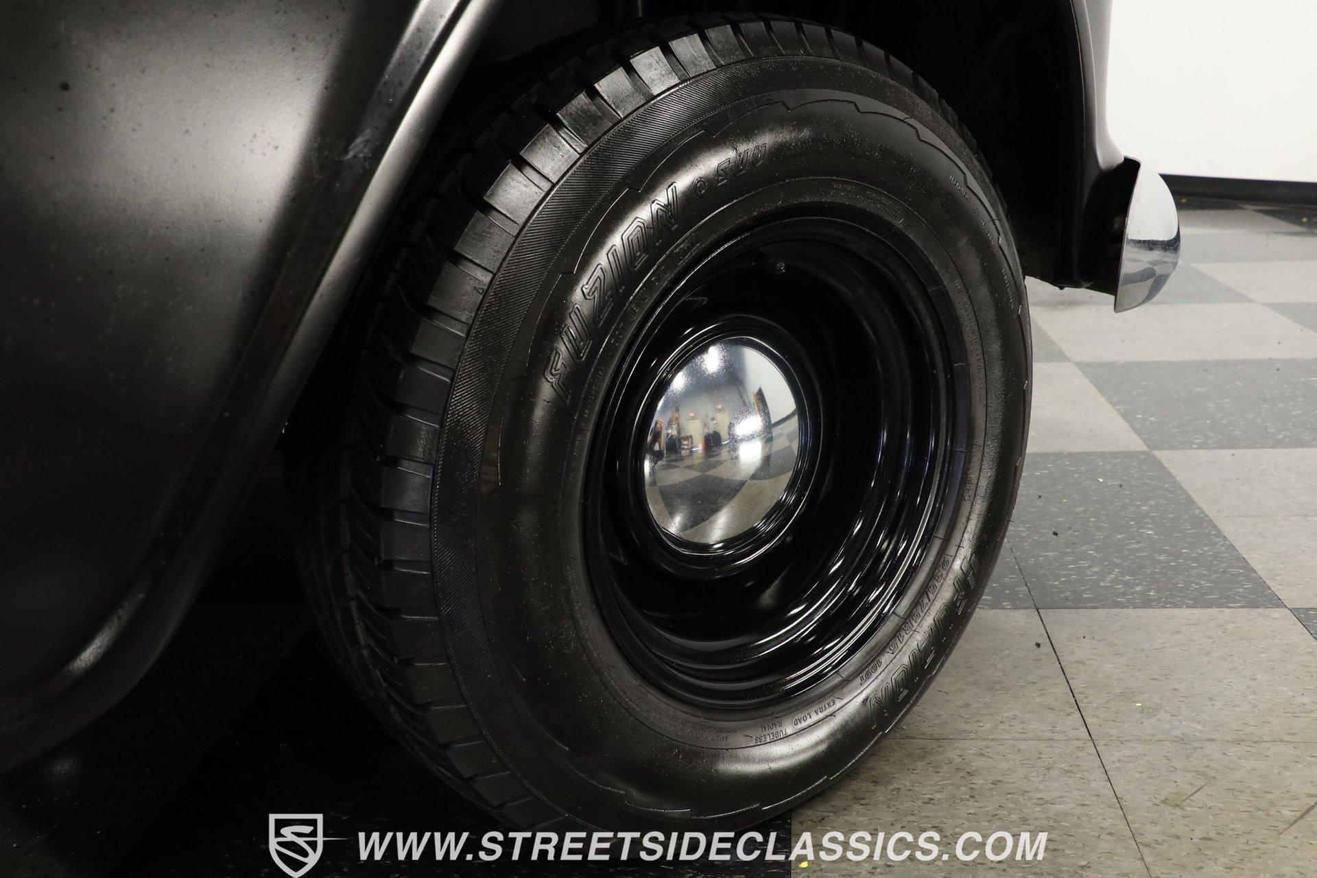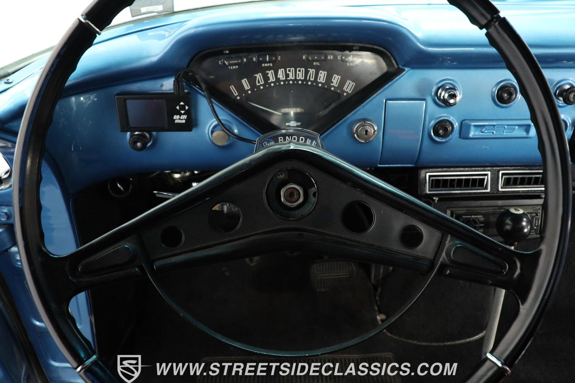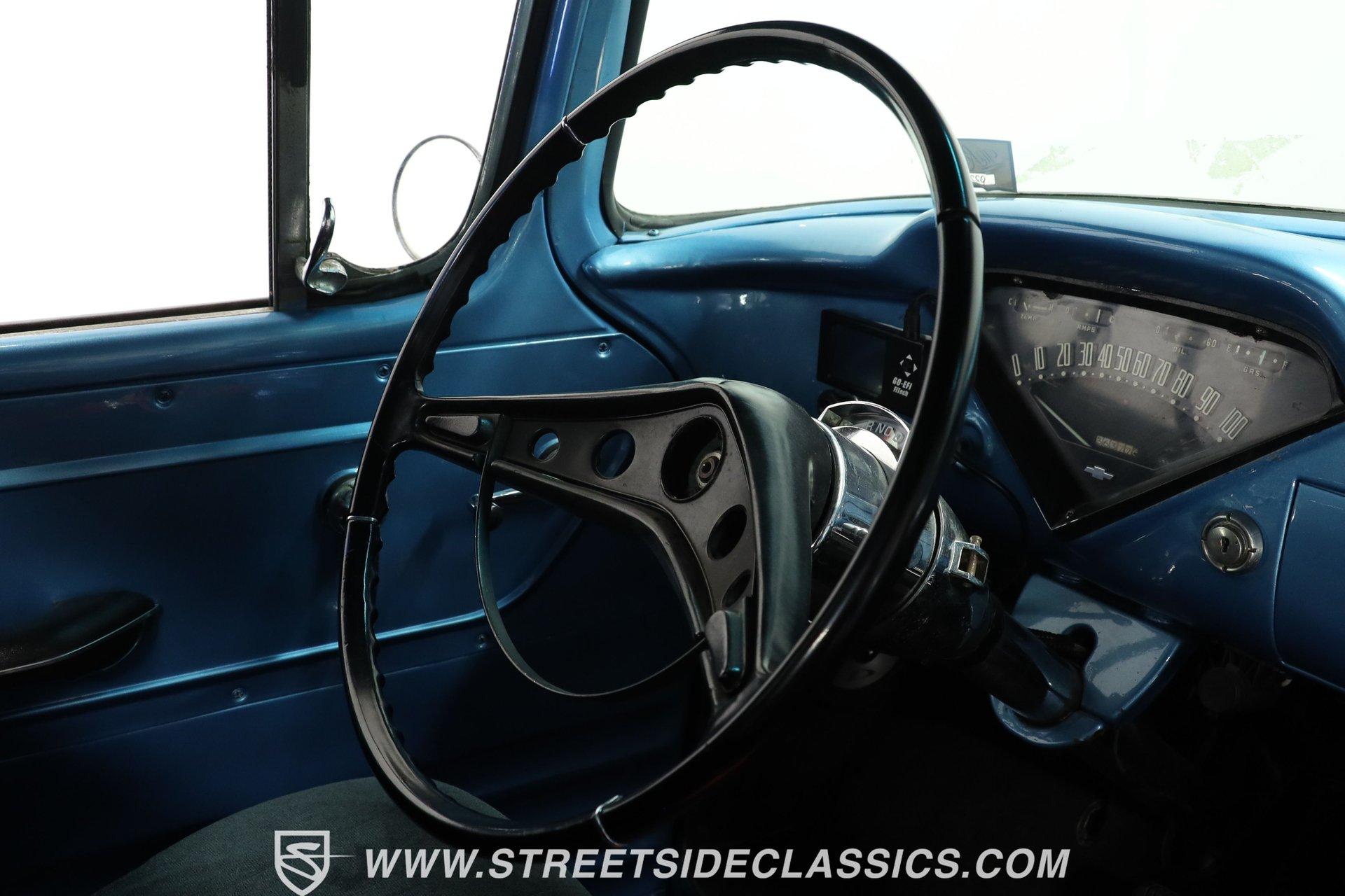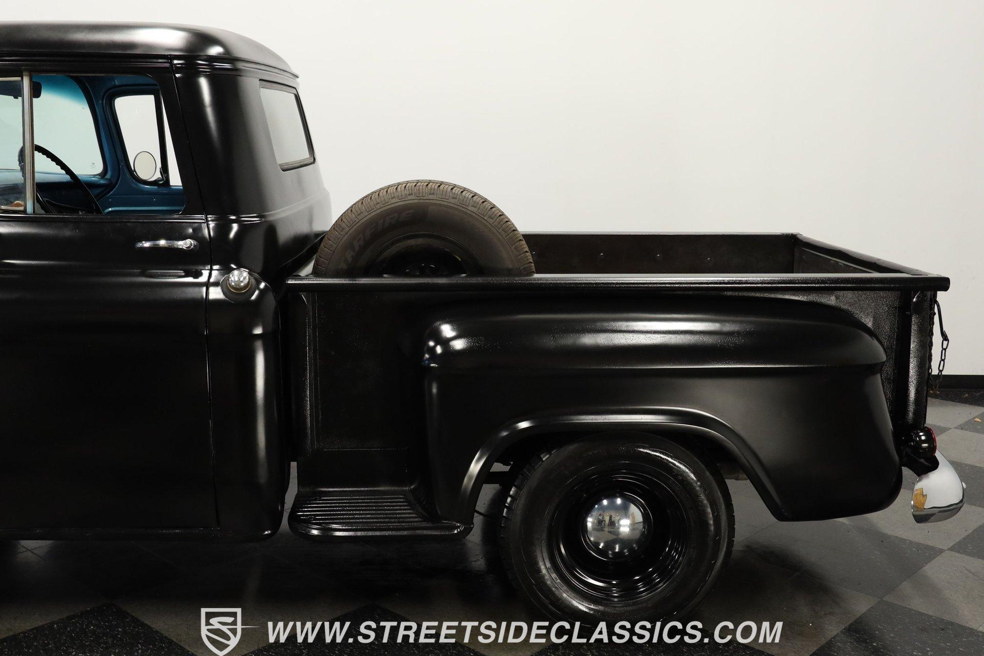 Experience the timeless charm and rugged appeal of the 1957 Chevrolet 3100, a true icon of American automotive history. This classic pickup isn't just a vehicle; it's a statement of style, heritage, and the open road's endless possibilities. Its satin black finish and short bed design evoke memories of a bygone era while offering modern upgrades that blend the best of both worlds. Whether you're a collector or a weekend cruiser, this 1957 Chevrolet 3100 invites you to own a piece of the past with a powerful presence that still turns heads today. Step inside to find a cabin that balances vintage character with thoughtful enhancements. The interior showcases the original blue color theme with a metallic blue-painted dash, doors, and cab surround, complemented by a suede and vinyl bench seat cover. Black carpet and 6-inch round kick panel speakers add a touch of comfort and entertainment, while the tilt steering column and clear gauge cluster provide driver-friendly functionality. The floor shifter and seatbelts complete this interior, which exudes a driver-quality feel with an inviting blend of classic style and usability. Under the hood lies a robust small block 350 V8 crate engine paired with a smooth-shifting 4-speed automatic transmission. Performance is enhanced by a FiTech fuel injection system, a Jegs aluminum intake, and older headers that deliver a distinctive rumble. Power steering, front disc brakes, and a brake booster with a master cylinder located under the cab ensure confident handling and stopping power. The R134a air conditioning system keeps the cabin cool, making every drive comfortable regardless of the season. This truck's drivetrain and mechanical components present with age-appropriate patina, emphasizing its driver-quality appeal. Highlights: 1957 Chevrolet 3100 Model Short Bed With Wood And Chrome Floor Satin Black Paint Finish Small Block 350 V8 Crate Engine FiTech Fuel Injection System 4-Speed Automatic Transmission Power Steering Equipped Front Disc Brakes, Rear Drum Brakes R134a Air Conditioning System Tilt Steering Column Bench Seat With Suede/Vinyl Cover AM/FM Radio With CD Player 15" Painted Steel Wheels With Chrome Moon Centers Original Blue Interior Color Scheme Financing Available Vehicle Protection Plans Available Worldwide Shipping This 1957 Chevrolet 3100 represents a fantastic opportunity to own a classic truck that blends vintage appeal with practical upgrades. Its combination of style, power, and comfort makes it a versatile choice for enthusiasts and collectors alike. Don't miss your chance to make this iconic pickup yours. Call, email, or come visit our showroom today! We can assist you with getting an Extended Vehicle Service Plan from Freedom Warranty, which provides comprehensive coverage that can save thousands of dollars on unexpected repairs. Inquire for more details and pricing!