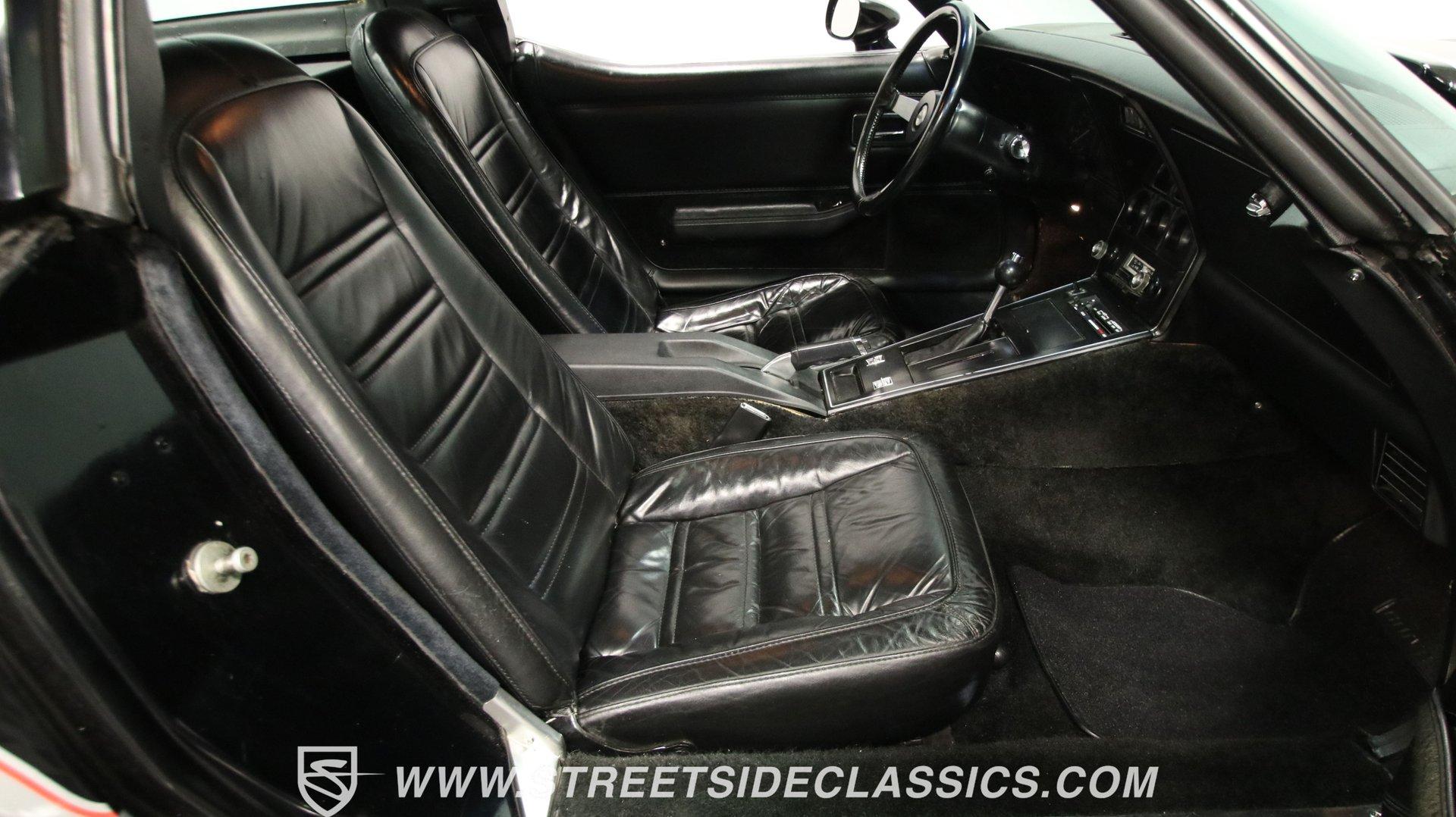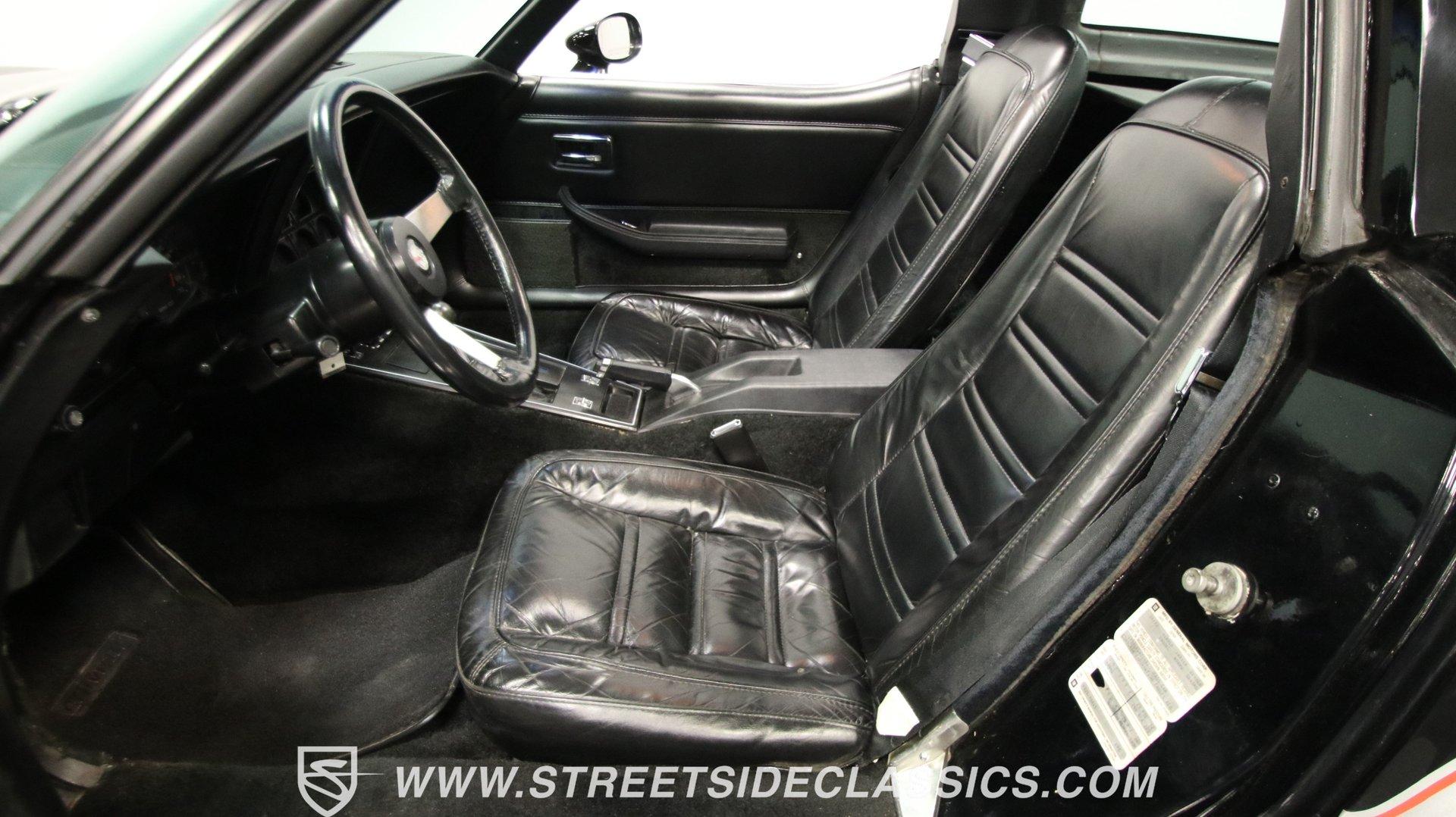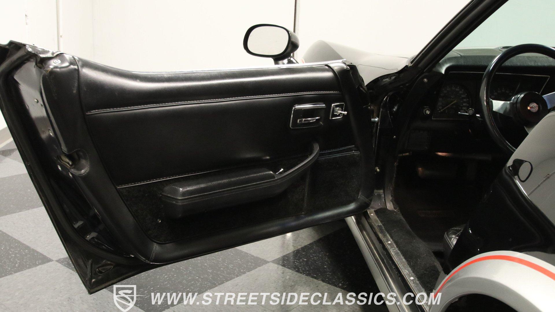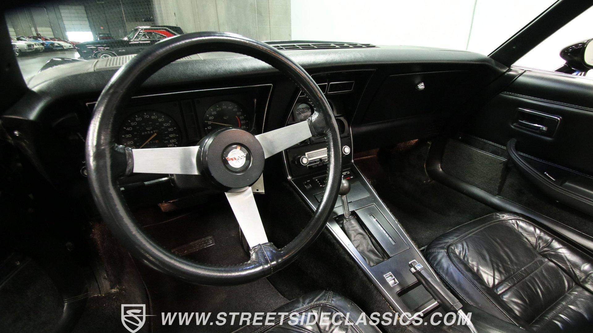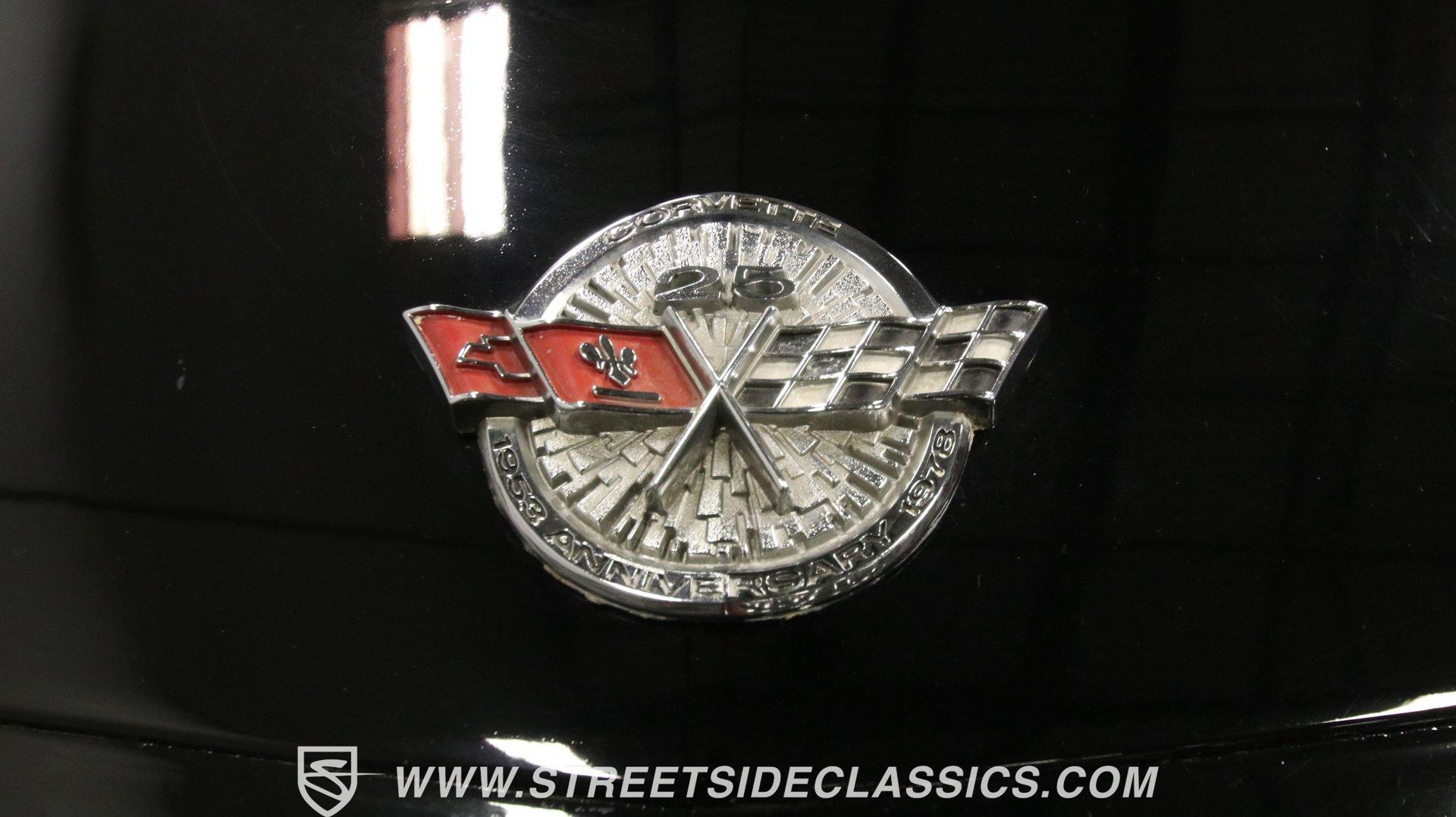 With its two-tone appearance, loaded interior, and a numbers-matching V8, you're going to have to act quickly if you want this 1978 Chevrolet Corvette in your garage. This C3 has led an interesting life thus far. The buildsheet tells us it was born a desirable full black package inside and out. And the only way to be even more desirable is if your 1978 coupe is an Indy 500 pace car replica. So that's exactly how they upgraded the paint theme. It's a comprehensive two-tone where the silver lower section also helps highlight the flared fenders and cowl hood. And when it comes to upgraded cars, the whole idea is to have something fun that you can also drive. So we're glad to see nothing here gets taken too seriously. It's an attractive driver-quality finish, which makes it a nice driver-ready coupe. And you have especially attractive details, like the full-width rear spoiler, a chin spoiler, Indy 500 decals, and special redline alloys that go with the pinstriping. Plus, 1978 was also the Corvette's 25th anniversary, and the special bright badging doesn't let anyone forget it. While the exterior was upgraded later in life, the interior remains quite original. That's a good thing when you have a car that was originally optioned with a black leather interior. This upholstery as well as the door panels, carpeting, and dash all look good for their age, and that makes for a nice cruiser. And you'll appreciate the little things, like the working dome light, privacy screen for the cargo area, and the AM/FM stereo with 8-track. It also likes to be comfortable with features like power windows, a rear defogger, cruise control, and provisions for R134a air conditioning (it will need servicing to blow cold again.) You'll love the driver's seat feeling with the high back bucket seats, a grippy steering wheel on a tilt column, and C3's desirable full gauge package. It makes for the ideal package to just take out the T-tops whenever you feel like it and go for a drive. The engine is the numbers-matching L48 350 cubic-inch V8. Everything from the bold blue motor to the black air cleaner has a clean and stock style. The four-barrel carburetor allows the V8 to inhale deeply, and the dual exhaust allows it to exhale with a nice rumble. Plus, you have a three-speed automatic transmission, power steering, fully independent suspension, and four-wheel power disc brakes. So you can now see how this unique classic is the one you'll love to take out any time. The sale comes complete with the factory buildsheet, owner's manual, and maintenance records. This is the classic Corvette with a distinct style and the right comfort. It makes for the kind of great total package you've been looking for. Call today!!!