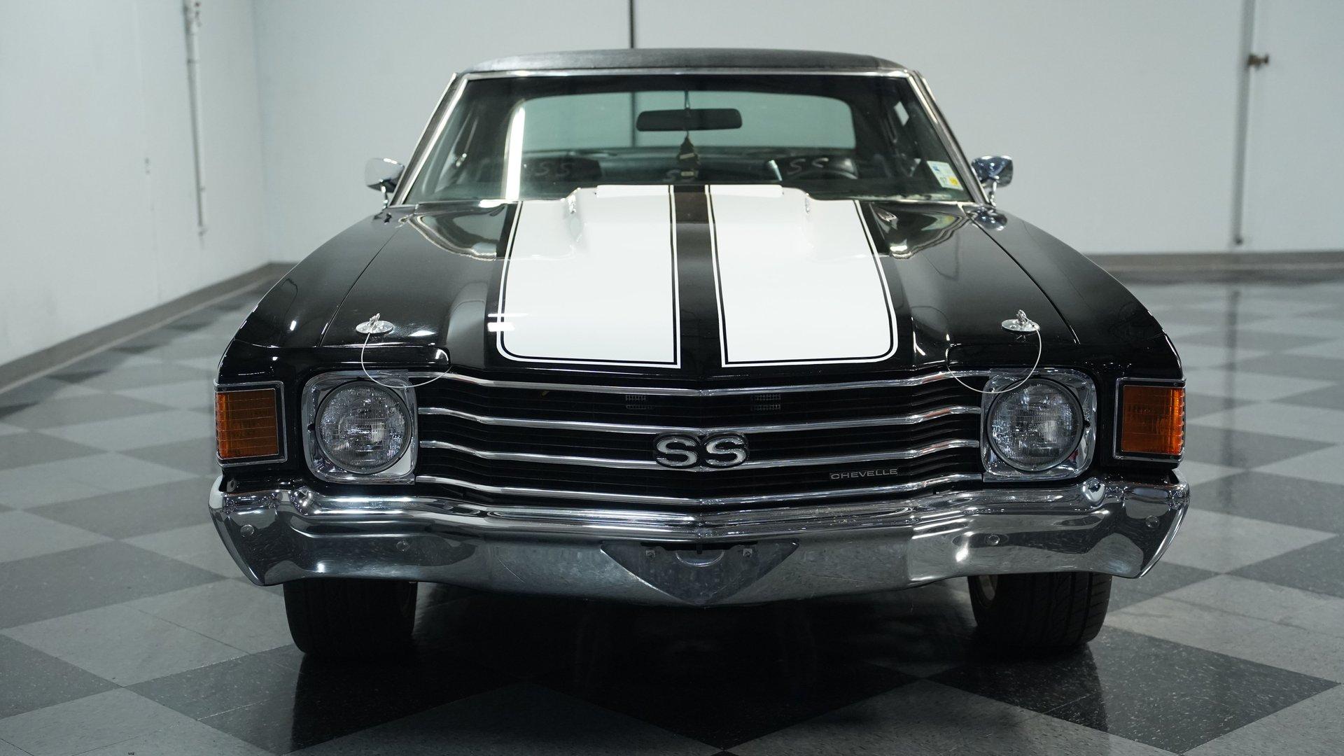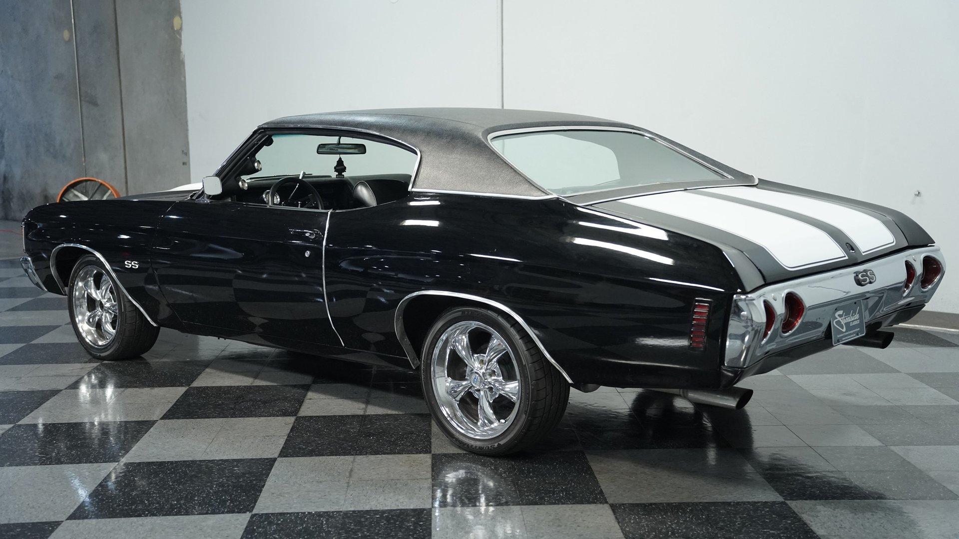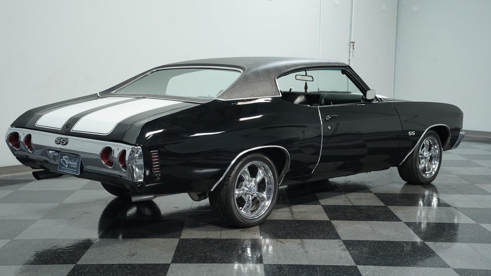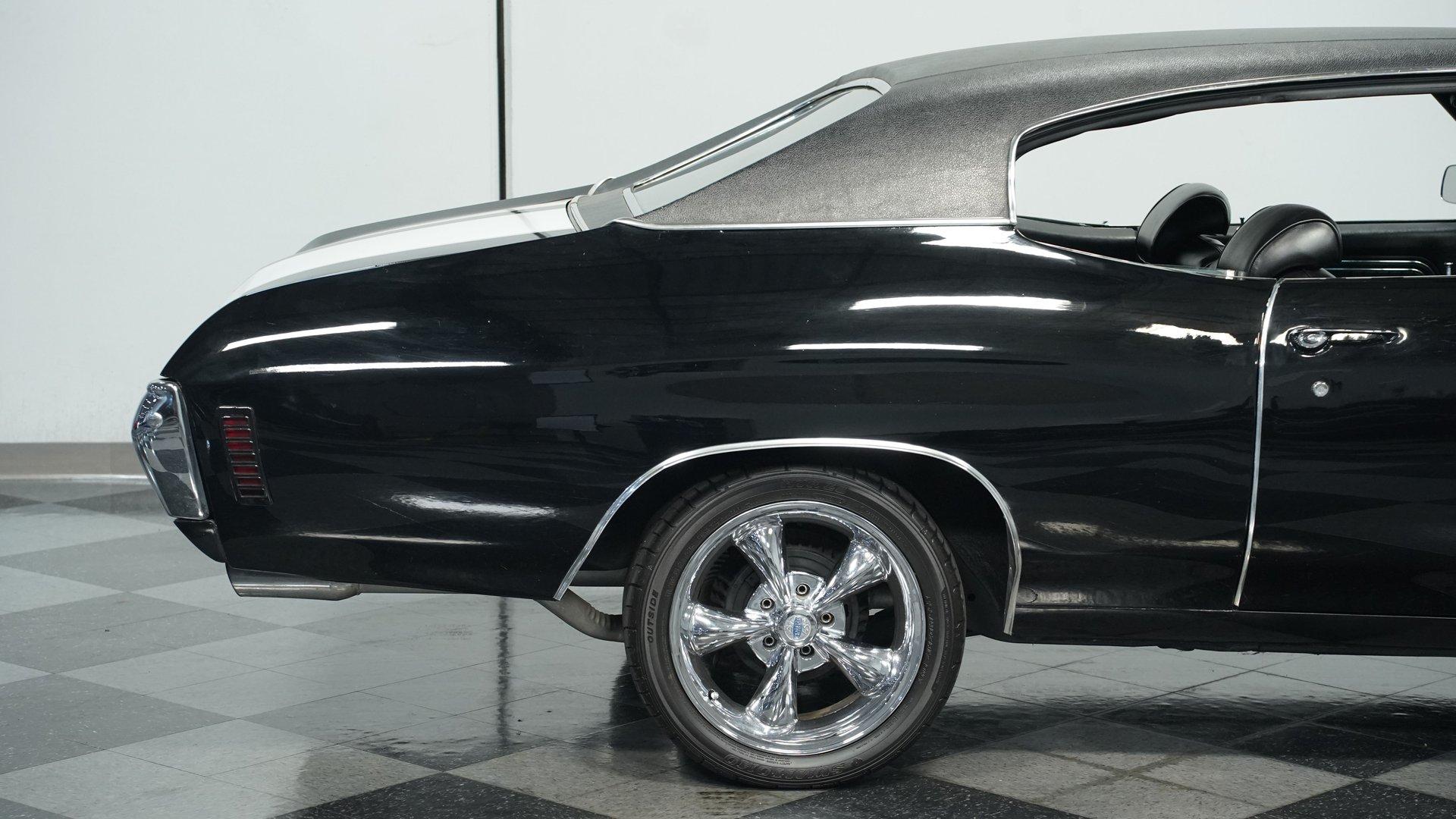 During the Golden Age of muscle cars, there were so many options to choose from that you really couldn't go wrong with almost any of the Big Three's offerings. One of those high-powered choices was a car like this 1972 Chevrolet Chevelle SS Tribute. From the outset, its fully repainted black body, complemented by a set of full-length white-painted SS stripes, along with its pinned cowl-induction hood, showcases the aggressive lines of the Chevelle from any angle. Inside, we find a clean black vinyl and cloth interior. A redone split bench seat offers plenty of room for both the driver and front passenger, while a power-assisted, aftermarket steering wheel sits just ahead of a column-mounted 8,000 rpm Sunpro tachometer. A VRVD630 head unit comes with a built-in three-inch LCD monitor, and offers AM/FM/CD/DVD/AUX capabilities as it pumps out tunes via Sony Xplode 6x9 speakers in the back deck. SS badges on the door panels and embroidered on the headrests make this Chevelle feel as racy on the inside as it looks on the outside. Under the hood, we find a clean engine bay with a 350 cubic-inch V-8 crate engine, on display in all its glory. A single Edelbrock four-barrel carburetor feeds a Bowtie intake manifold mounted on lightweight aluminum heads. Long tube headers expel spent gases through a sweet-sounding FlowMaster dual exhaust. That power is routed through a TH350 three-speed automatic transmission before being sent to a twelve-bolt rear end, which transfers those ponies to the pavement via a set of 17-inch Cragar SS wheels shod in modern 245/45ZR-17 Sumitomo tires. HIGHLIGHTS: Full Black Repaint White Racing Stripes Cowl Hood Hood Pins 350 CID Crate V8 Edelbrock Four Barrel Carb Bowtie Intake Longtube Headers FlowMasters TH350 Three Speed Auto 10 Bolt Rear Cragar SS Wheels Z-Rated Tires Power Brakes Front Disc Brakes Black Vinyl Interior SS Embroidered Headrests Column Mounted Tach AM/FM/CD/DVD/AUX Head Unit Three Inch LCD Screen Sony Xplode Speakers This 1972 Chevrolet Chevelle SS Tribute is equipped with a power brake setup highlighted by a set of discs up front, which are ready to scrub off speed at a moment's notice. If you have been looking for a true icon from the Golden Age of muscle cars, then look no further because this is the car that is as good a choice as it was when it rolled off the assembly line. Don't wait, call today!
