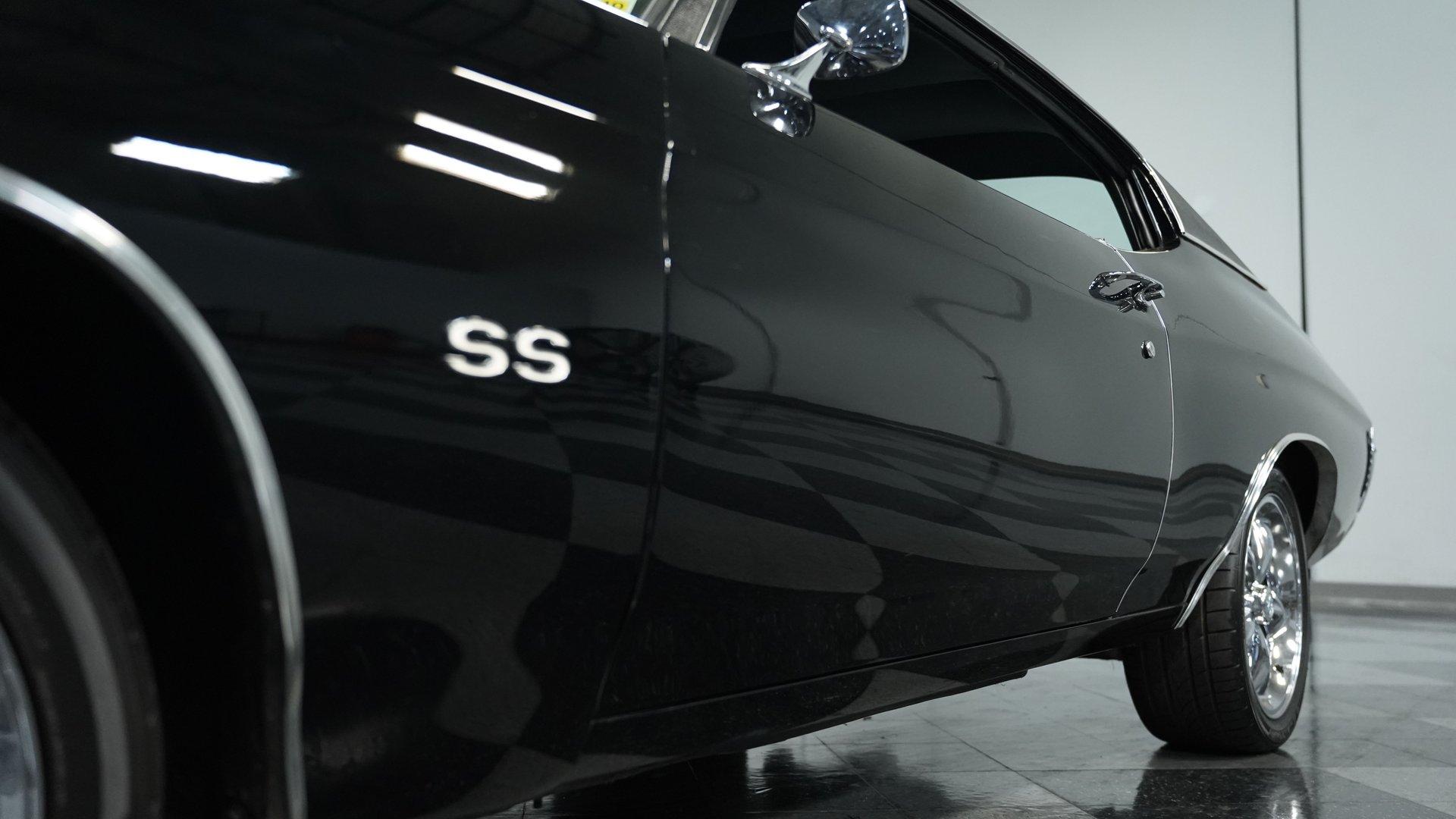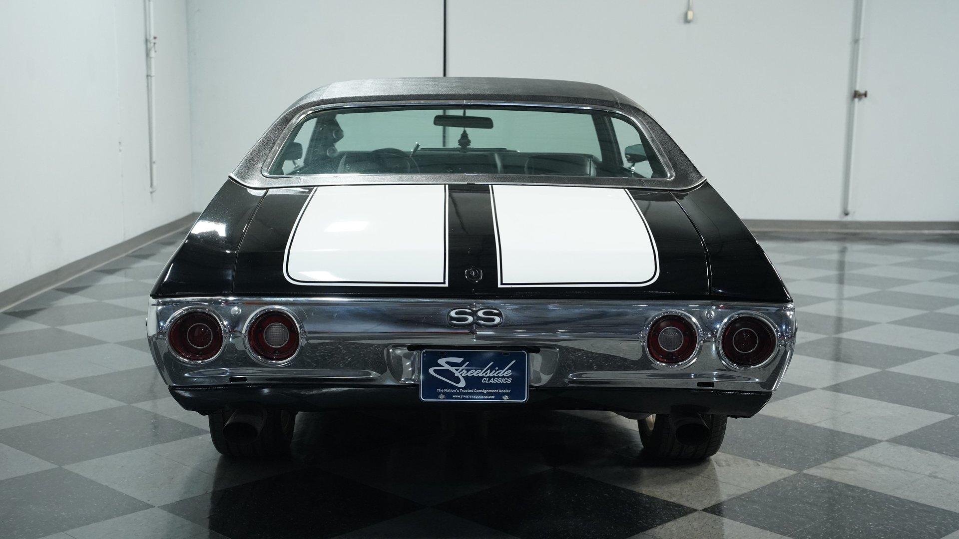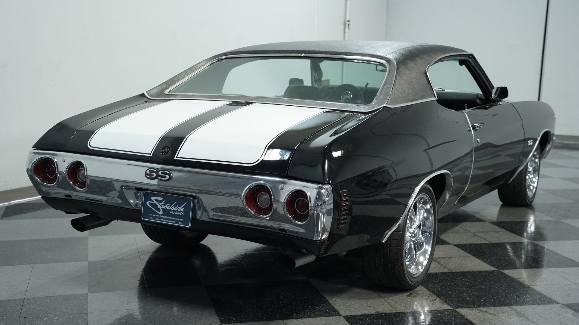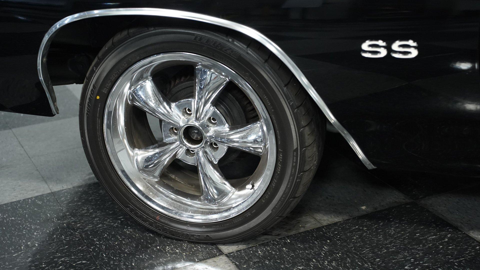 During the Golden Age of muscle cars, there were so many options to choose from that you really couldn't go wrong with almost any of the Big Three's offerings. One of those high-powered choices was a car like this 1972 Chevrolet Chevelle SS Tribute. From the outset, its fully repainted black body, complemented by a set of full-length white-painted SS stripes, along with its pinned cowl-induction hood, showcases the aggressive lines of the Chevelle from any angle. Inside, we find a clean black vinyl and cloth interior. A redone split bench seat offers plenty of room for both the driver and front passenger, while a power-assisted, aftermarket steering wheel sits just ahead of a column-mounted 8,000 rpm Sunpro tachometer. A VRVD630 head unit comes with a built-in three-inch LCD monitor, and offers AM/FM/CD/DVD/AUX capabilities as it pumps out tunes via Sony Xplode 6x9 speakers in the back deck. SS badges on the door panels and embroidered on the headrests make this Chevelle feel as racy on the inside as it looks on the outside. Under the hood, we find a clean engine bay with a 350 cubic-inch V-8 crate engine, on display in all its glory. A single Edelbrock four-barrel carburetor feeds a Bowtie intake manifold mounted on lightweight aluminum heads. Long tube headers expel spent gases through a sweet-sounding FlowMaster dual exhaust. That power is routed through a TH350 three-speed automatic transmission before being sent to a twelve-bolt rear end, which transfers those ponies to the pavement via a set of 17-inch Cragar SS wheels shod in modern 245/45ZR-17 Sumitomo tires. HIGHLIGHTS: Full Black Repaint White Racing Stripes Cowl Hood Hood Pins 350 CID Crate V8 Edelbrock Four Barrel Carb Bowtie Intake Longtube Headers FlowMasters TH350 Three Speed Auto 10 Bolt Rear Cragar SS Wheels Z-Rated Tires Power Brakes Front Disc Brakes Black Vinyl Interior SS Embroidered Headrests Column Mounted Tach AM/FM/CD/DVD/AUX Head Unit Three Inch LCD Screen Sony Xplode Speakers This 1972 Chevrolet Chevelle SS Tribute is equipped with a power brake setup highlighted by a set of discs up front, which are ready to scrub off speed at a moment's notice. If you have been looking for a true icon from the Golden Age of muscle cars, then look no further because this is the car that is as good a choice as it was when it rolled off the assembly line. Don't wait, call today!