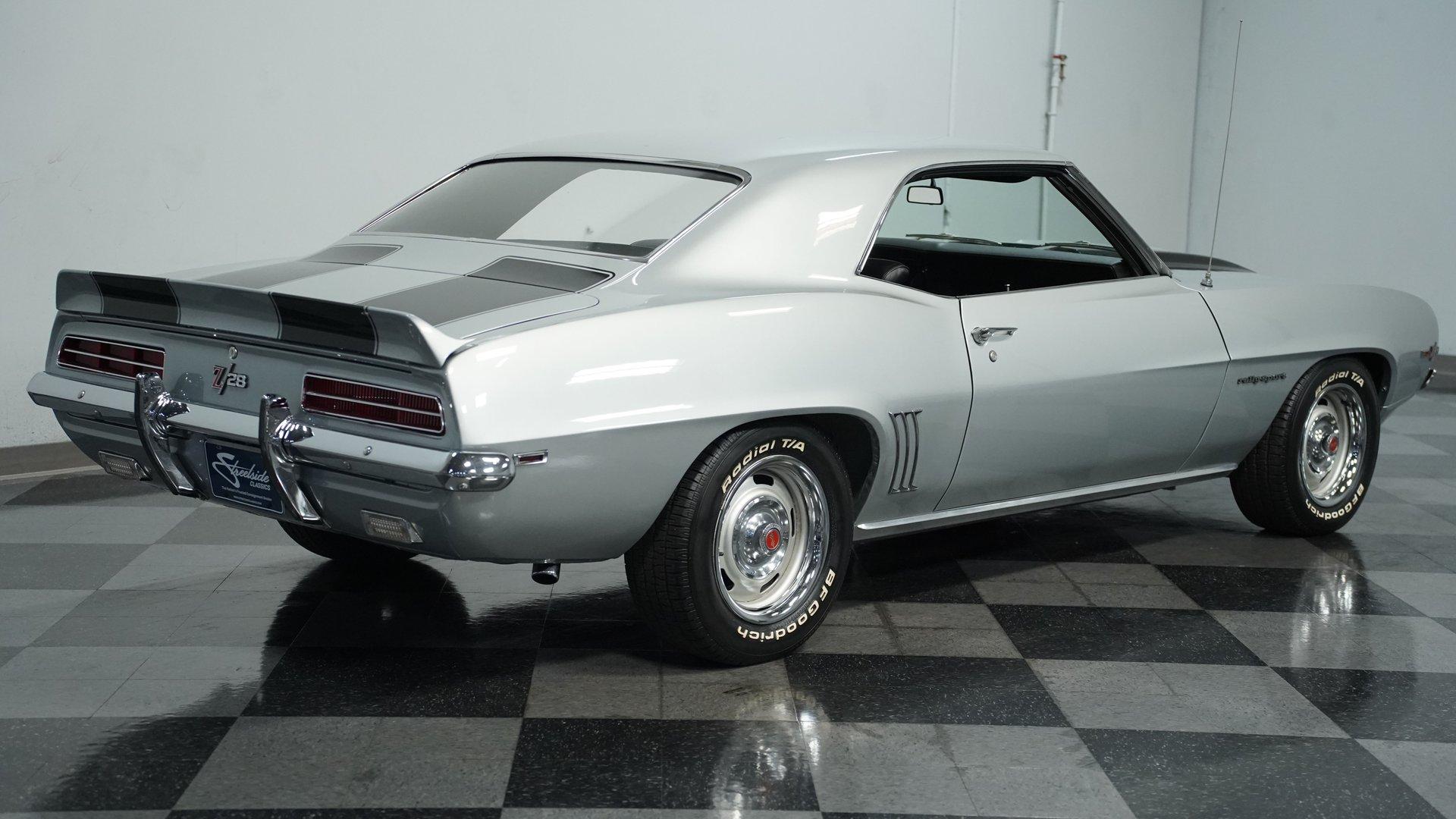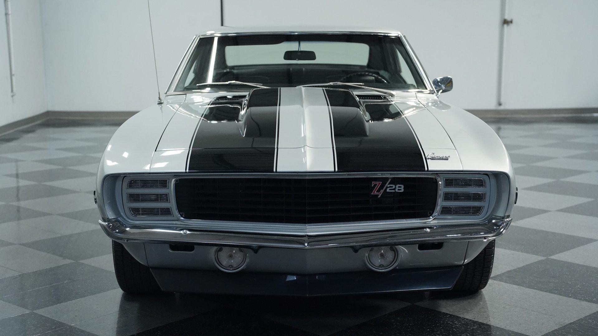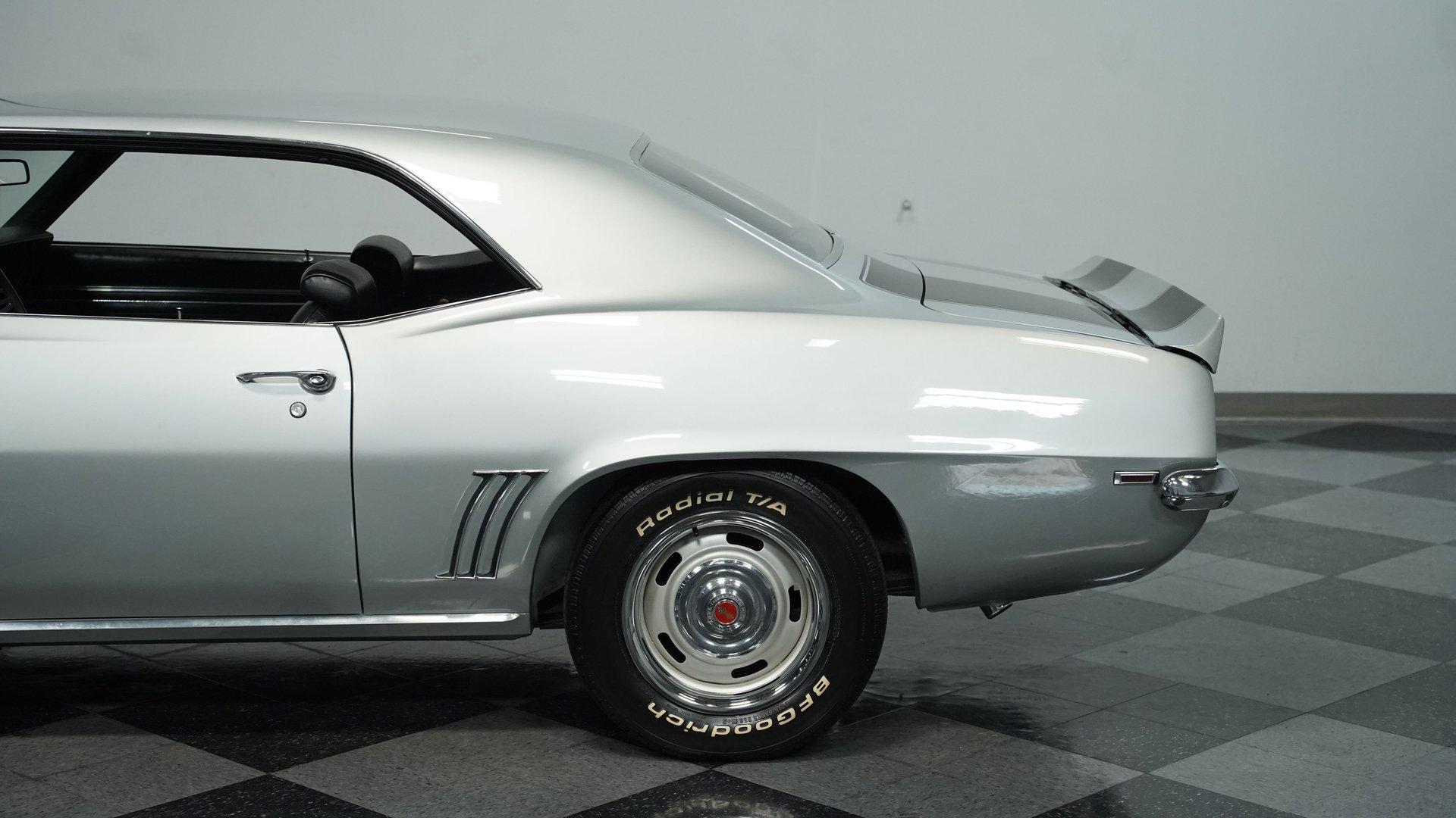 Combining the aesthetic upgrades that came via the Camaro's late '60s RS appearance package with the enhancements offered via the similarly upscale Z28 package, this 1969 Chevrolet Camaro RS Z28 is one highly pedigreed muscle car. Its level of originality is also certainly hard to come by, and the overall clean condition of this classic is seriously impressive. Wearing factory-correct Cortez Silver paint that's highlighted by black painted stripes, it's an outstanding specimen of its model. Its broad, low-slung stance is accentuated by signature RS vacuum-operated hidden headlights, as well as a special edition rear deck spoiler and exterior trim that's in great shape. Displaying a proper blend of RS and Z28 badging, this Chevy has a "special edition" aura that's sure to attract plenty of attention. The factory-correct black vinyl interior retains its authentic factory appearance, with a pair of front bucket seats straddling a wood-accented center console that displays its quartet of stock gauges, all of which are fully functional. In back, the bench seat shows only slight wear, and the black carpeting lining the floor is still snug and well-fitted. Because of the color's UV sensitivity, dash pads in black-upholstered cars are more prone to cracking and warping, but the one lining this Camaro's dash is a notable exception, as it still looks very clean. Appropriately, this rare Camaro is powered by a numbers-matching 302 cubic-inch DZ V8 engine that sits at the center of a well-maintained engine bay. Fed by a Holley 4-barrel carburetor and still in possession of its factory-style intake and exhaust manifolds, it's running in top form, idling smoothly and accelerating promptly as it pairs with a 4-speed Muncie M21 manual transmission that shifts with no issues. The power steering on this classic is nice and responsive, while power brakes that feature discs up front bring its set of 15" Rally wheels wrapped with BF Goodrich T/A radials to dependable, fade-resistant stops when called upon. HIGHLIGHTS A RARE SPECIMEN OF THE MODEL THAT COMBINES THE RS AND Z28 PACKAGES NUMBERS-MATCHING 302 CUBIC-INCH DZ V8 ENGINE 4-SPEED MUNCIE M21 MANUAL TRANSMISSION 4-BARREL HOLLEY CARBURETOR DUAL EXHAUST POWER STEERING POWER BRAKES, WITH DISCS IN FRONT FACTORY-CORRECT CORTEZ SILVER PAINT WITH BLACK PAINTED STRIPES 15" RALLY WHEELS FACTORY-CORRECT BLACK VINYL INTERIOR CENTER CONSOLE POWER STEERING AM/FM RADIO ORIGINAL HUBCAPS INCLUDED The opportunity to pull a clean Camaro into your garage is plenty appealing in itself, but when that muscle car features the rare, top-tier status and strong running condition of this 1969 Chevrolet Camaro RS Z28, that opportunity becomes downright irresistible. Call today!