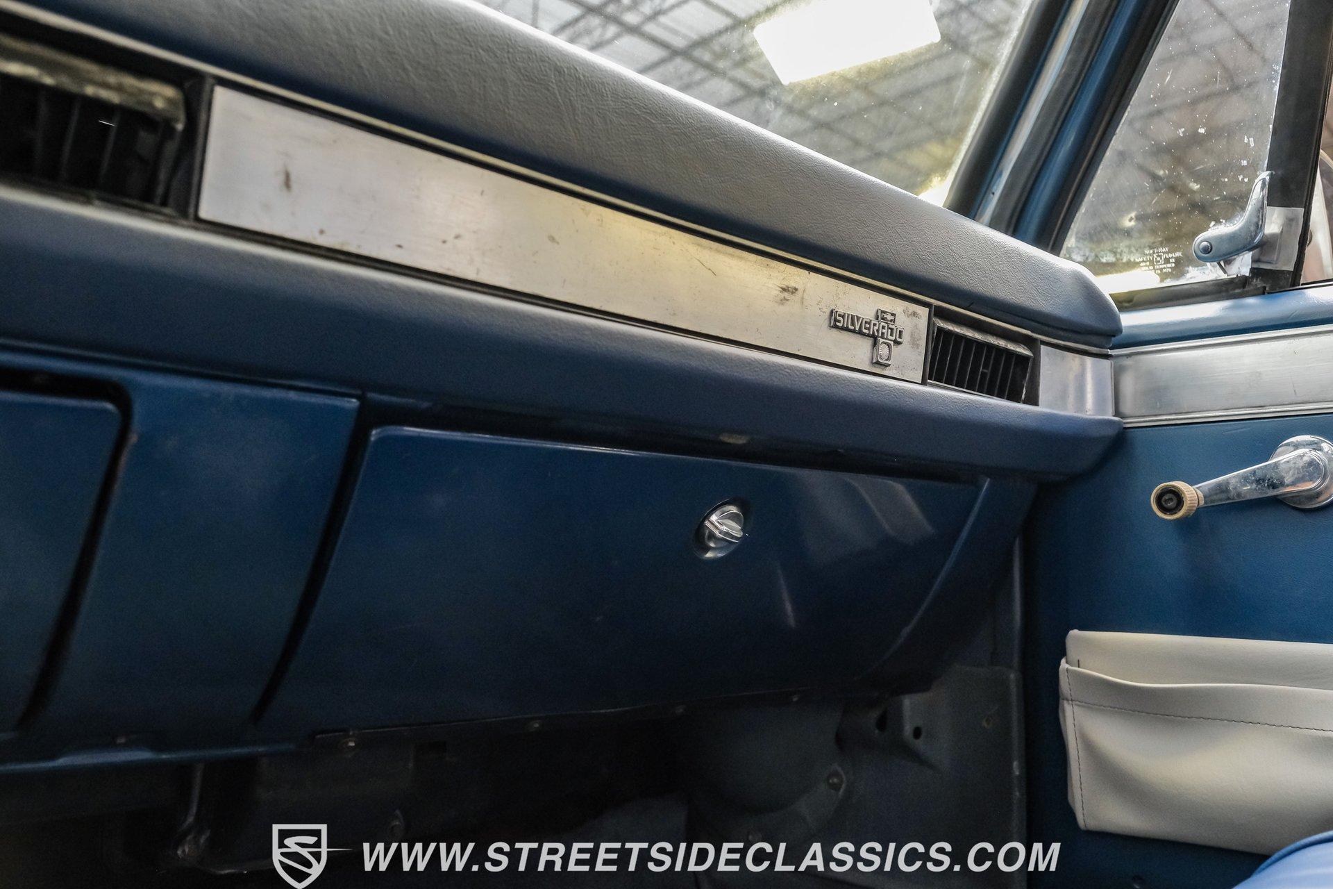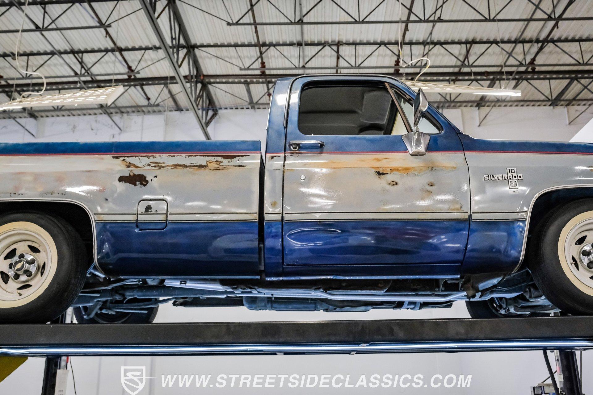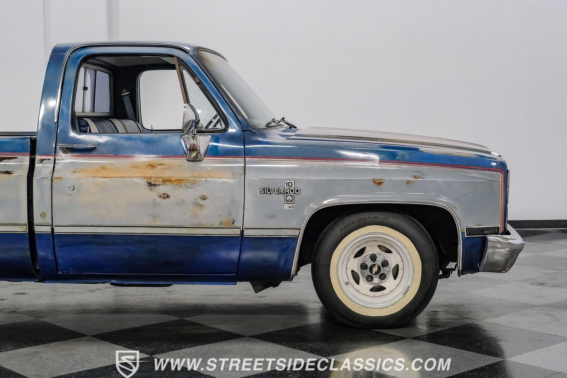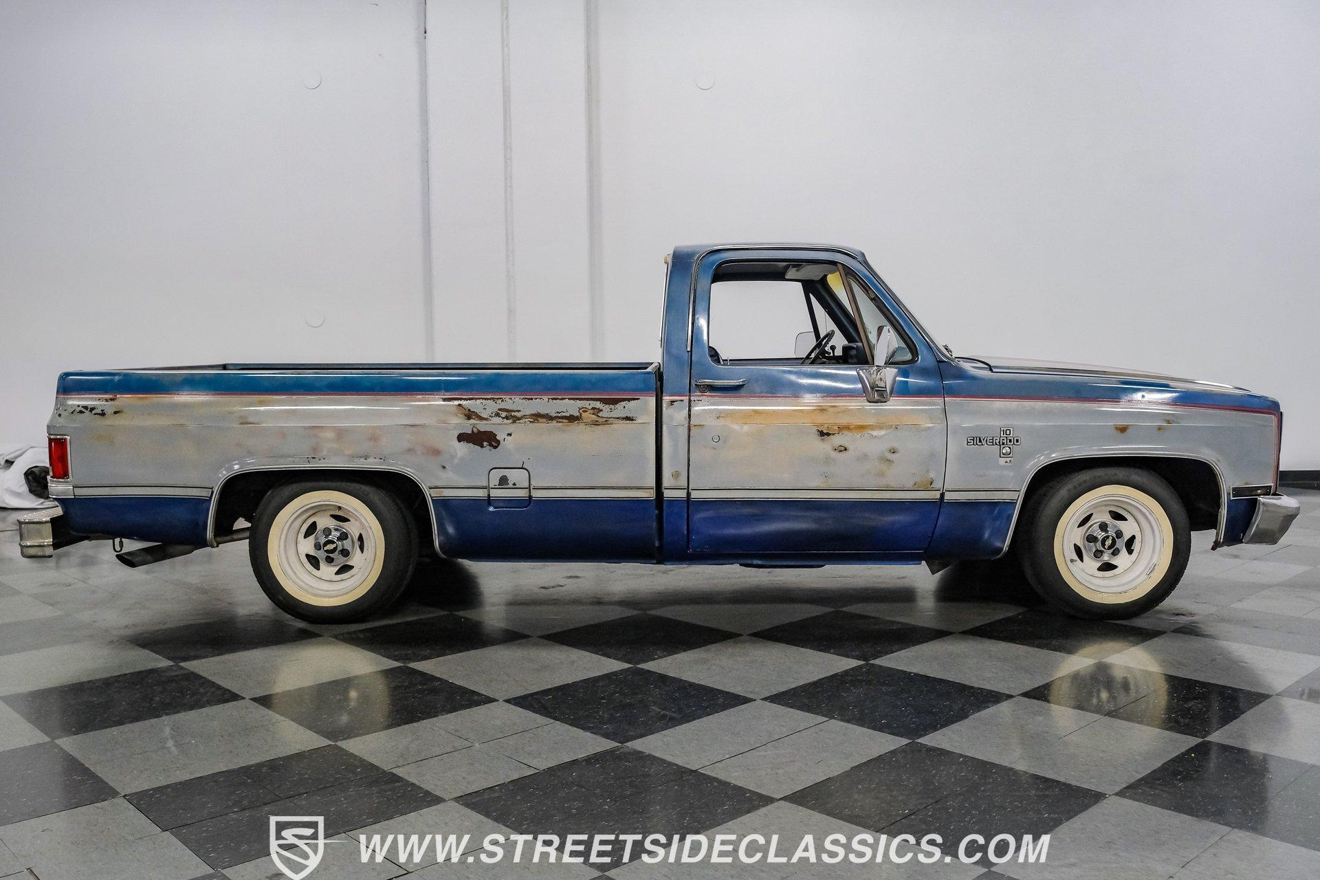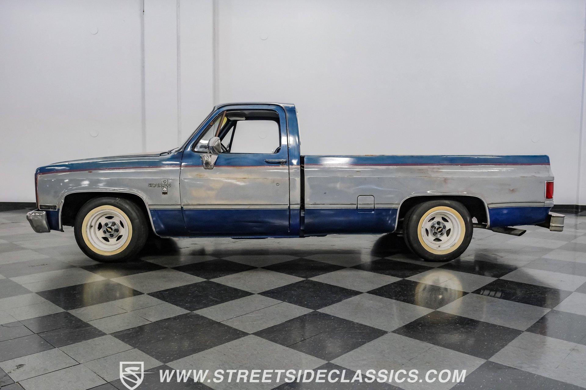 Step back into a time when trucks were built tough and designed to turn heads. This 1981 Chevrolet C10 Silverado captures the essence of classic Americana with its rugged charm and undeniable character. Its patina finish has been cleared over and tells a story of years well spent, embodying the spirit of vintage craftsmanship and durable design. Owning this truck is more than just having a vehicle - it's about embracing a lifestyle that honors the past while still offering plenty of potential for the future. If you're seeking a classic that stands out and runs strong, this 1981 Chevrolet C10 Silverado is ready for its next chapter. Inside, the truck offers a cabin that balances vintage style with thoughtful upgrades. The seat has been recovered in blue and white vinyl to provide comfortable support, complemented by a new headliner and a dash cap, maintaining the truck's authentic feel. A RetroSounds radio equipped with AM/FM, Bluetooth, and auxiliary input brings modern convenience to this classic interior. The tilt steering column adds driver comfort, while the rest of the interior preserves that genuine vintage look. Under the hood, you'll find a robust 350 V8 engine paired with an aftermarket 4-barrel carburetor, delivering classic muscle and reliable performance. The engine runs well, providing a satisfying driving experience, though we did note a passenger side exhaust leak. The TH350 3-speed automatic transmission shifts smoothly, contributing to the truck's ease of use. The suspension is factory style but lowered, enhancing the stance and handling. Power disc brakes up front and power drum brakes in the rear offer dependable stopping power, while power steering helps make driving this truck a pleasure. Highlights 350 V8 Engine With Aftermarket 4 BBL Carb TH350 3 Speed Automatic Transmission Factory Style Lowered Suspension Front And Rear Power Disc Front Brakes, Power Drum Rear Brakes Power Steering RetroSounds Radio With AM/FM/Bluetooth/Aux Recovered Seat And New Headliner Original Patina Paint With Fresh Clear Coat Long Bed With Newer Bed Liner 15" Factory Style Wheels 225/75R15 Tires Air Conditioning Tilt Steering Column Car Cover And Extra Grill In Bed Included Financing Available Vehicle Protection Plans Available Worldwide Shipping This 1981 Chevrolet C10 Silverado is a fantastic opportunity to own a classic truck with character and potential. Whether you want a reliable driver or a project to customize, this truck offers a solid foundation. Don't miss out on this unique piece of automotive history. Call, email, or come visit our showroom today!