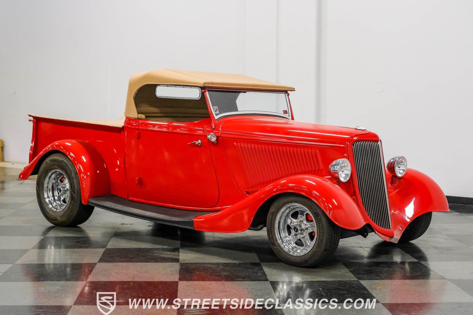Step back in time and seize the opportunity to own a piece of Americana with this 1934 Ford Model A Pickup Streetrod. This classic truck is more than just a vehicle; it's a vibrant statement of style and history on wheels. Perfect for those who appreciate the blend of vintage charm and modern performance, it's a ride that turns heads and sparks conversations wherever it goes. Whether you're cruising down the boulevard or showcasing at a car meet, this Model A Pickup offers a unique driving experience that celebrates craftsmanship and nostalgia. Don't miss your chance to add this iconic 1934 Ford Model A Pickup to your collection. Inside, the truck features a clean tweed interior that exudes classic comfort with a touch of custom flair. The tweed bench seat is well-kept and inviting, paired with a Lacarra wood rim steering wheel mounted on a tilt column for added driving ease. The newer model steering column and custom Power Logic hands-free Bluetooth radio blend vintage aesthetics with modern convenience, making every drive enjoyable and connected. Under the hood, this streetrod is powered by a robust 3.8-liter V6 engine equipped with an Edelbrock carburetor and a Dominator intake manifold, delivering smooth and reliable performance. The TH350 3-speed automatic transmission shifts seamlessly, complemented by rack and pinion steering for precise handling. Suspension upgrades include adjustable coilovers in the front and a Corvette rear suspension, paired with power disc brakes and power steering for confident control and a comfortable ride. Highlights 3.8 Liter V6 Engine TH350 3 Speed Automatic Transmission Edelbrock Carburetor Dominator Intake AutoMeter Gauges Power Rack & Pinion Steering System Adjustable Coilover Front Suspension Corvette Rear Suspension Setup Power Disc Brakes Front And Rear Lacarra Wood Rim Steering Wheel Custom Tweed Bench Seat Interior Bluetooth Hands-Free Radio Financing Available Vehicle Protection Plans Available Worldwide Shipping This 1934 Ford Model A Pickup Streetrod is a fantastic blend of classic style and modern upgrades, making it a smart and exciting choice for collectors and enthusiasts alike. Its solid build and tasteful enhancements ensure it's ready to enjoy right now. Call, email, or come visit our showroom today!