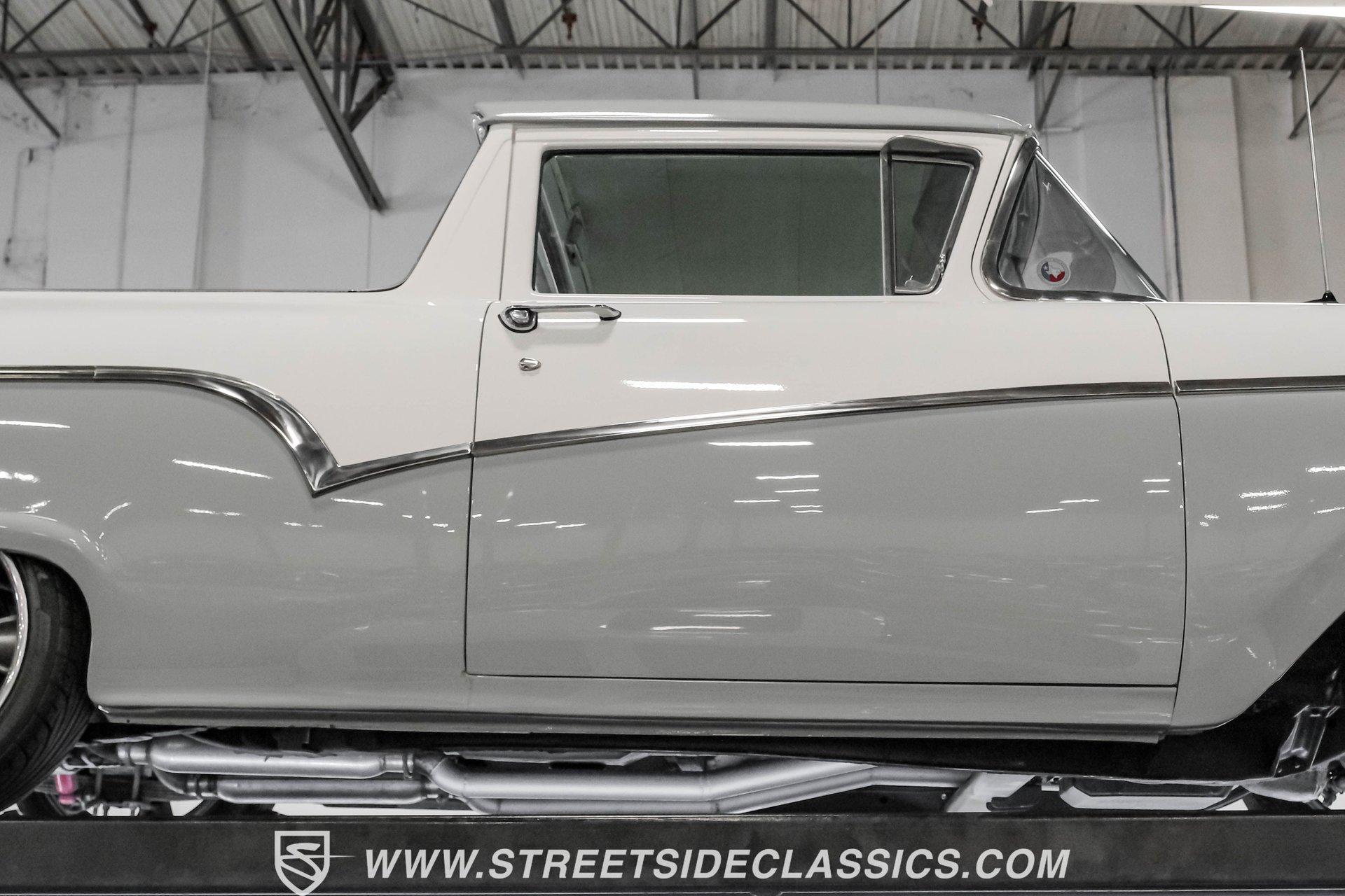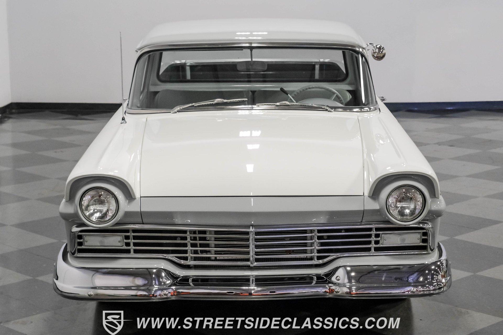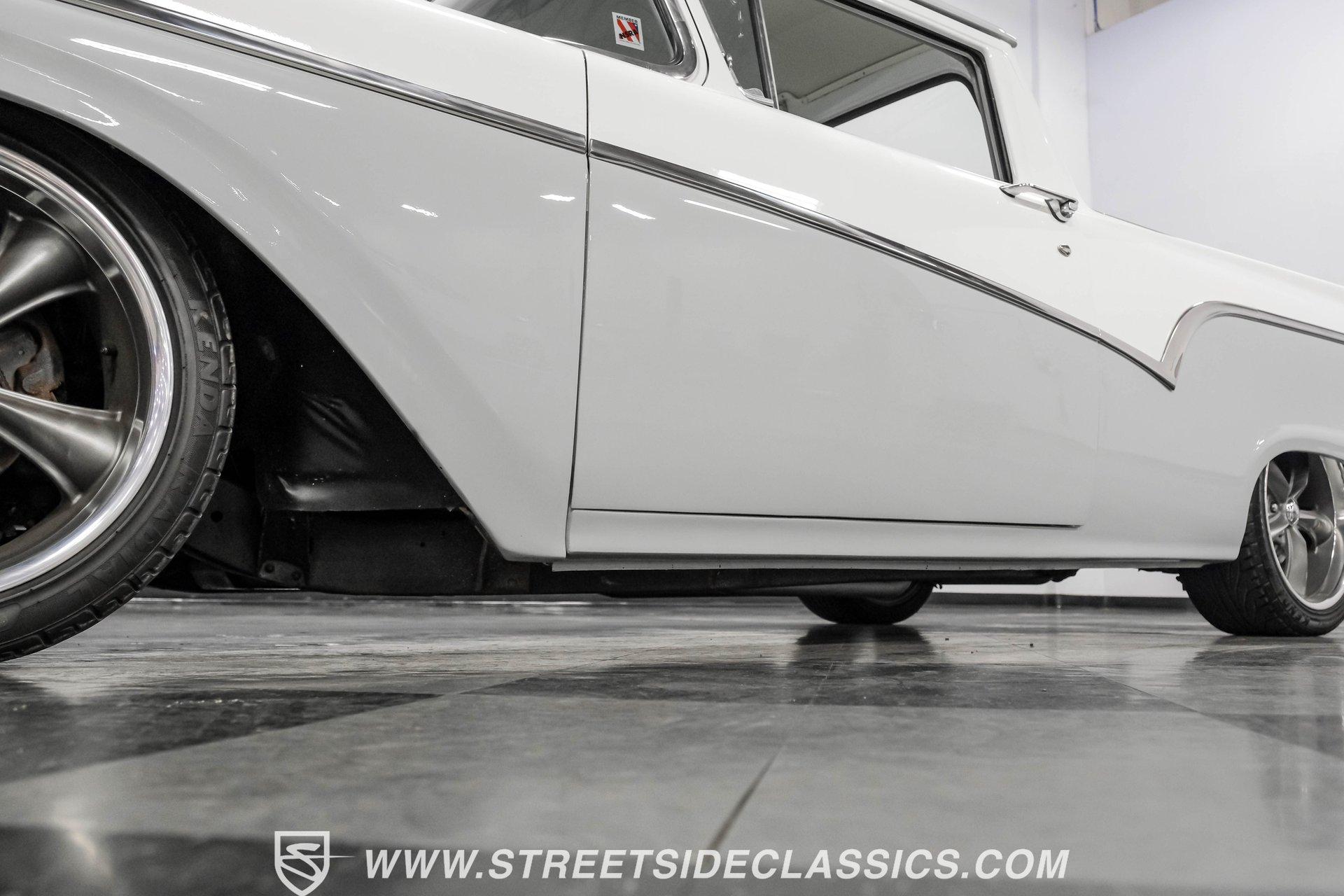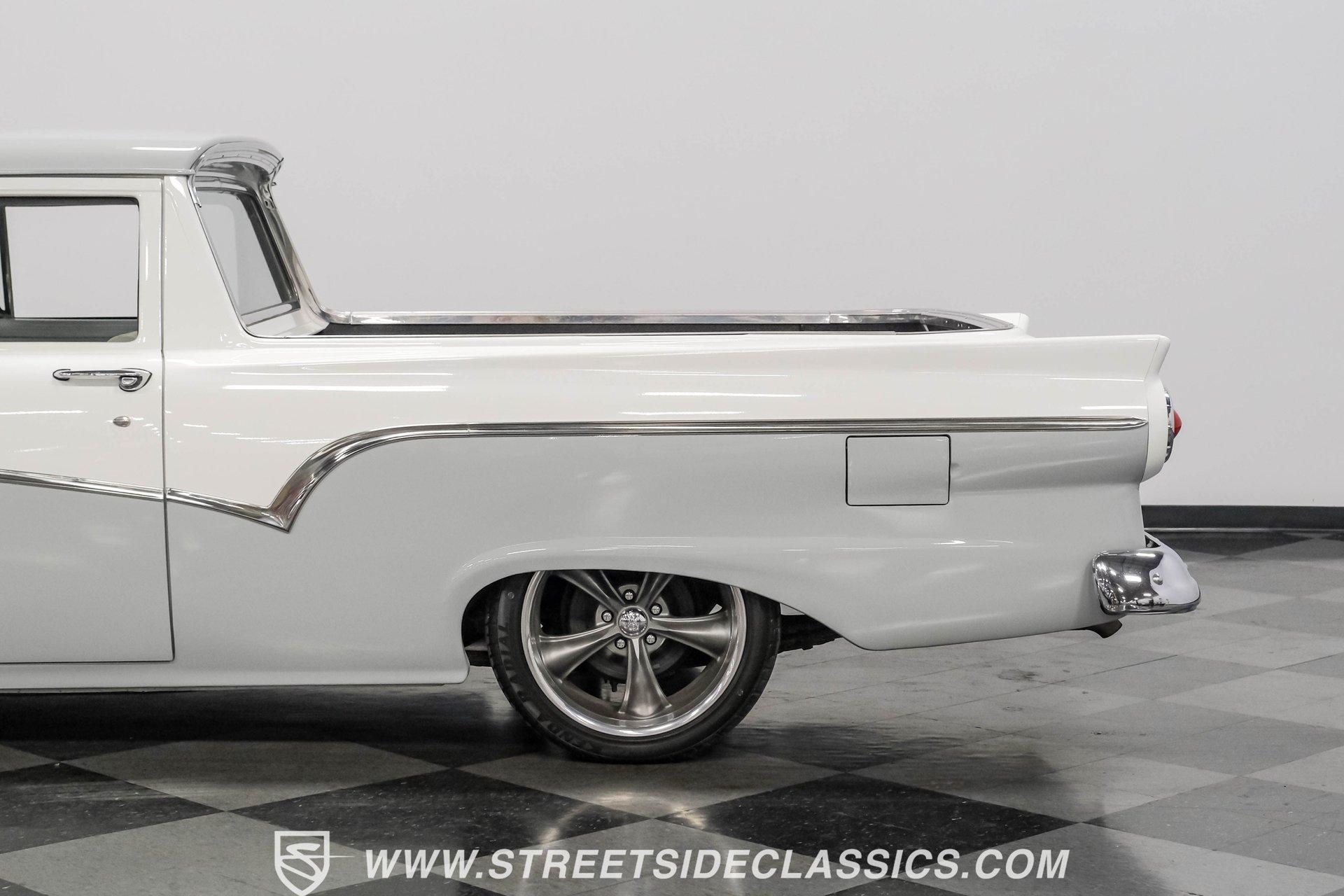 When this 1957 Ford Ranchero first rolled off the assembly line to herald the arrival of a truly revolutionary vehicle pairing the utility of a pickup truck with the easy drivability of a passenger car, no one could have imagined that it would emerge nearly 70 years later looking this good. Dressed in a very effective pairing of white and gray, this is a classic that demands attention. The tasteful paint job is in fine shape and is complemented by a collection of chrome that's in uniformly clean condition. This vintage Ford's aggressive stance strikes a nice balance, resulting in it being low enough to confirm that some aftermarket workmanship was involved, but without going so overboard as to leave it unable to contend with everyday driving conditions. The matching interior makes for an inspiring driving environment, featuring clean painted surfaces paired with vinyl upholstery showing only the slightest of wear. The broad bench seat is especially comfortable and offers an added console offering a pair of cupholders and some welcome interior storage space. You'll find a collection of Dakota Digital gauges in the instrument cluster to help you monitor driving functions, and the aftermarket under dash air conditioning unit is running in top form to keep you and your passengers comfortable, year-round. There's also a retro look AM/FM stereo with an auxiliary port now on board in the dash, and while it's currently disconnected, it's otherwise ready for duty. Beneath the hood, a 5.0-liter high-output V8 engine stands ready to provide plenty of reliable power. Fed by electronic fuel injection, it pairs with a 4-speed automatic transmission that's operating in good form, sending a deep but subtle note out of the pair of Glasspack-style mufflers in back. Electric power steering has been added to the mix to make this classic truck easy to handle, while power brakes that position discs up front give it the stopping ability to deal with modern driving conditions. An upgraded aluminum radiator now sits up front to help keep operating temperatures under control. HIGHLIGHTS: 5.0 Liter High-Output V8 Electronic Fuel Injection AOD 4-Speed Automatic Transmission Power Brakes with Front Discs Power Steering Dual Exhaust w/ Glasspack Style Mufflers Aluminum Radiator 18" BOSS Wheels Aggressive, Lowered Stance White and Gray Interior Blends Vinyl and Tweed Dakota Digital Gauges Air Conditioning Financing Available Vehicle Protection Plans Available Worldwide Shipping A groundbreaking vehicle that redefined the automotive landscape of the '50s and created a category all its own, this 1957 Ford Ranchero cruises on a set of eye-catching 18" Boss wheels wrapped with low-profile Kenda tires, has a timeless appeal and would be a great match for the classic car enthusiast searching for a ride that stands out in a crowd. Call today!