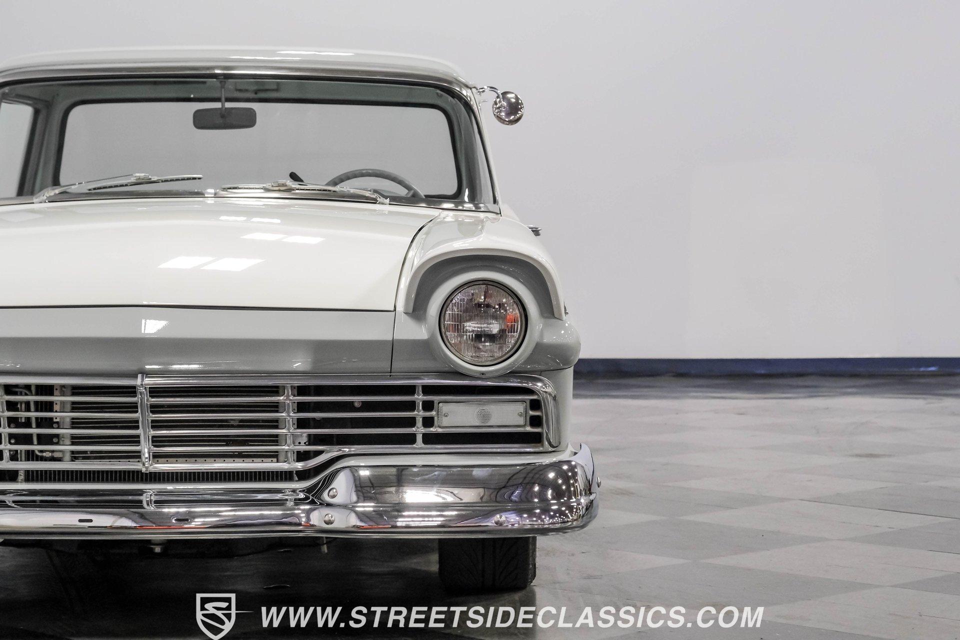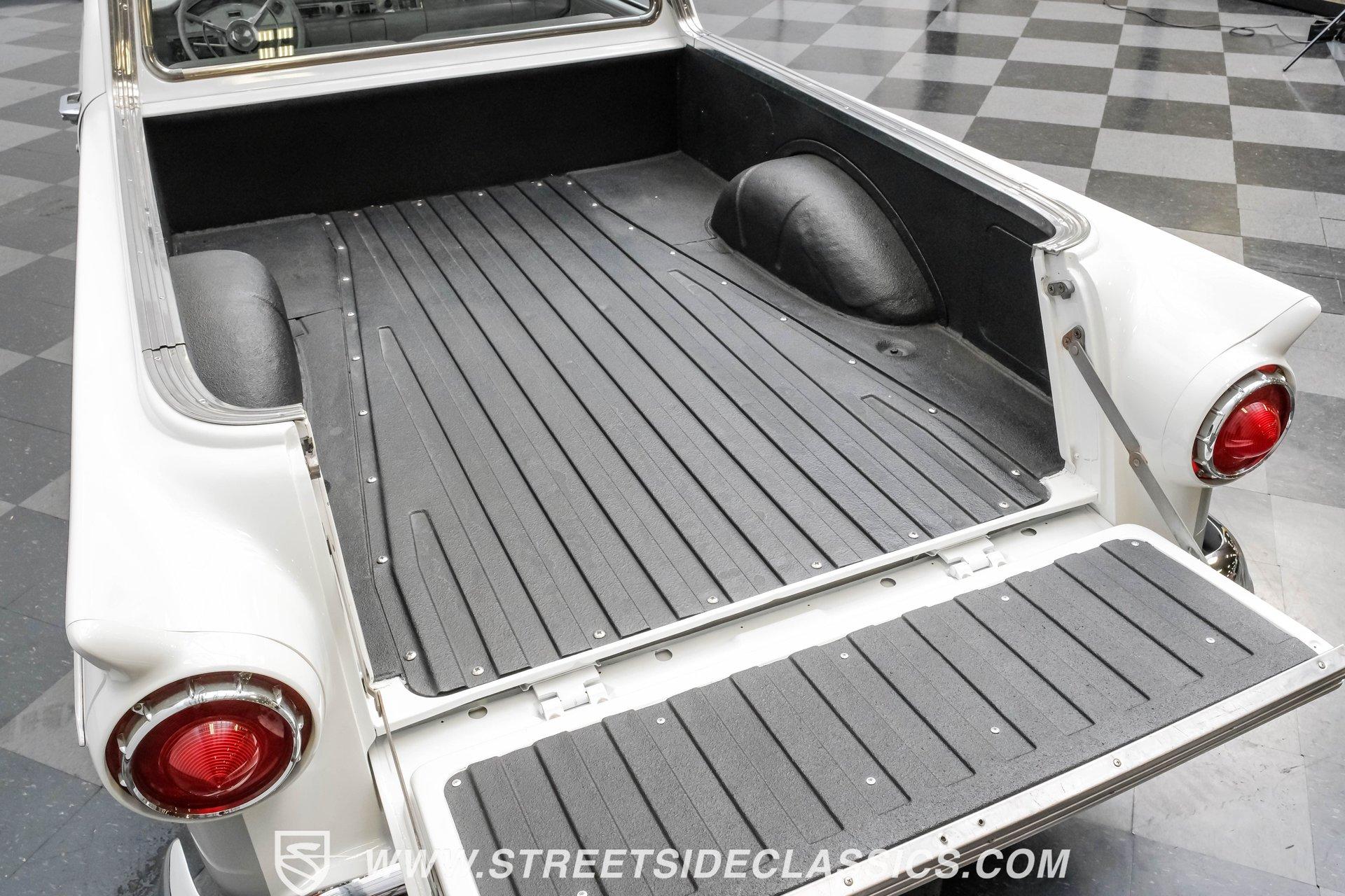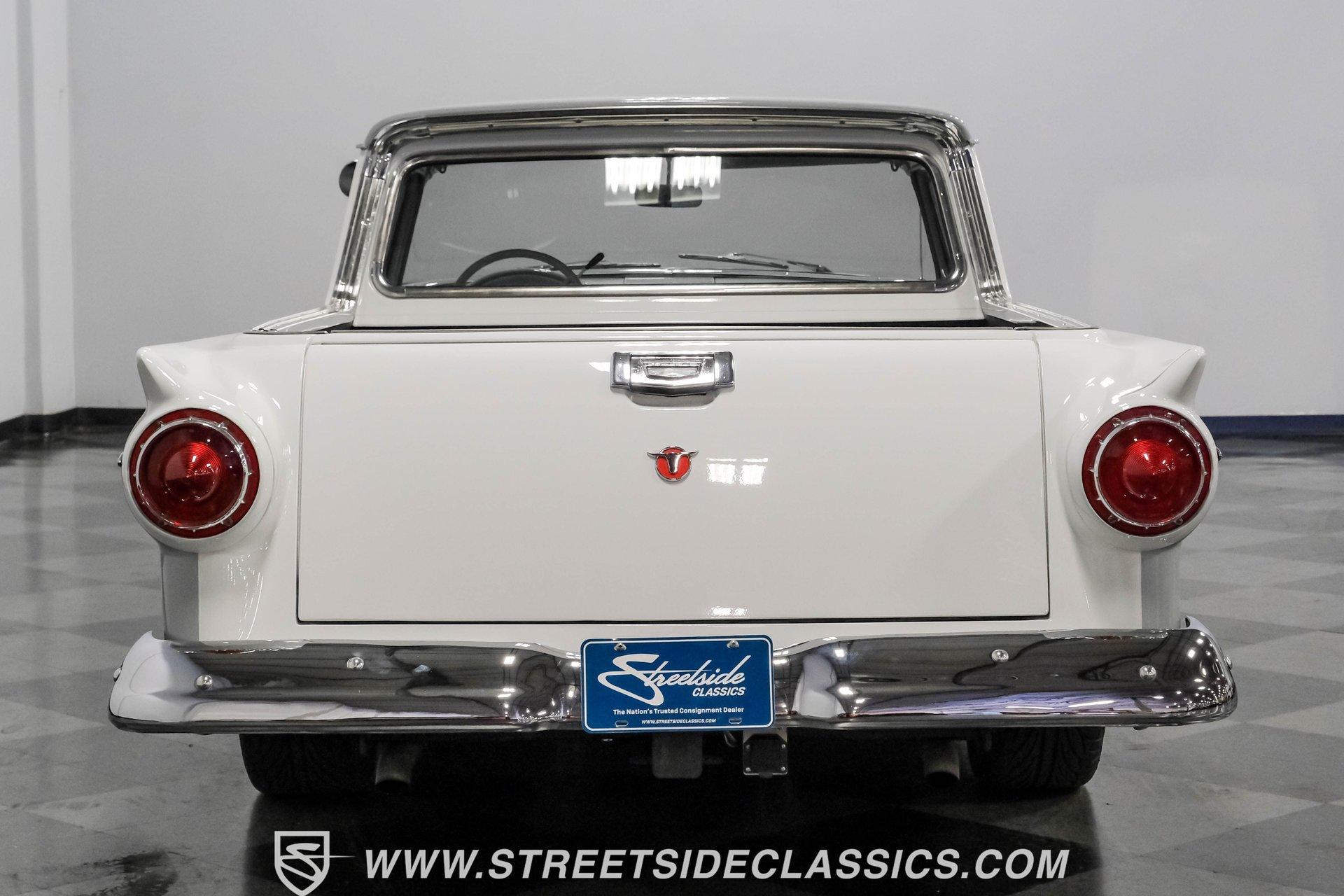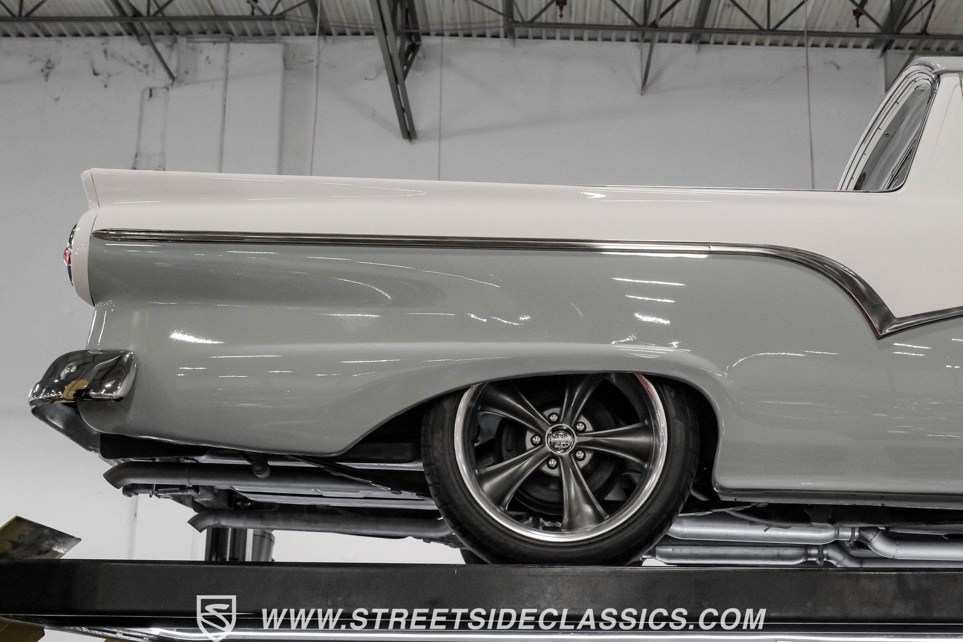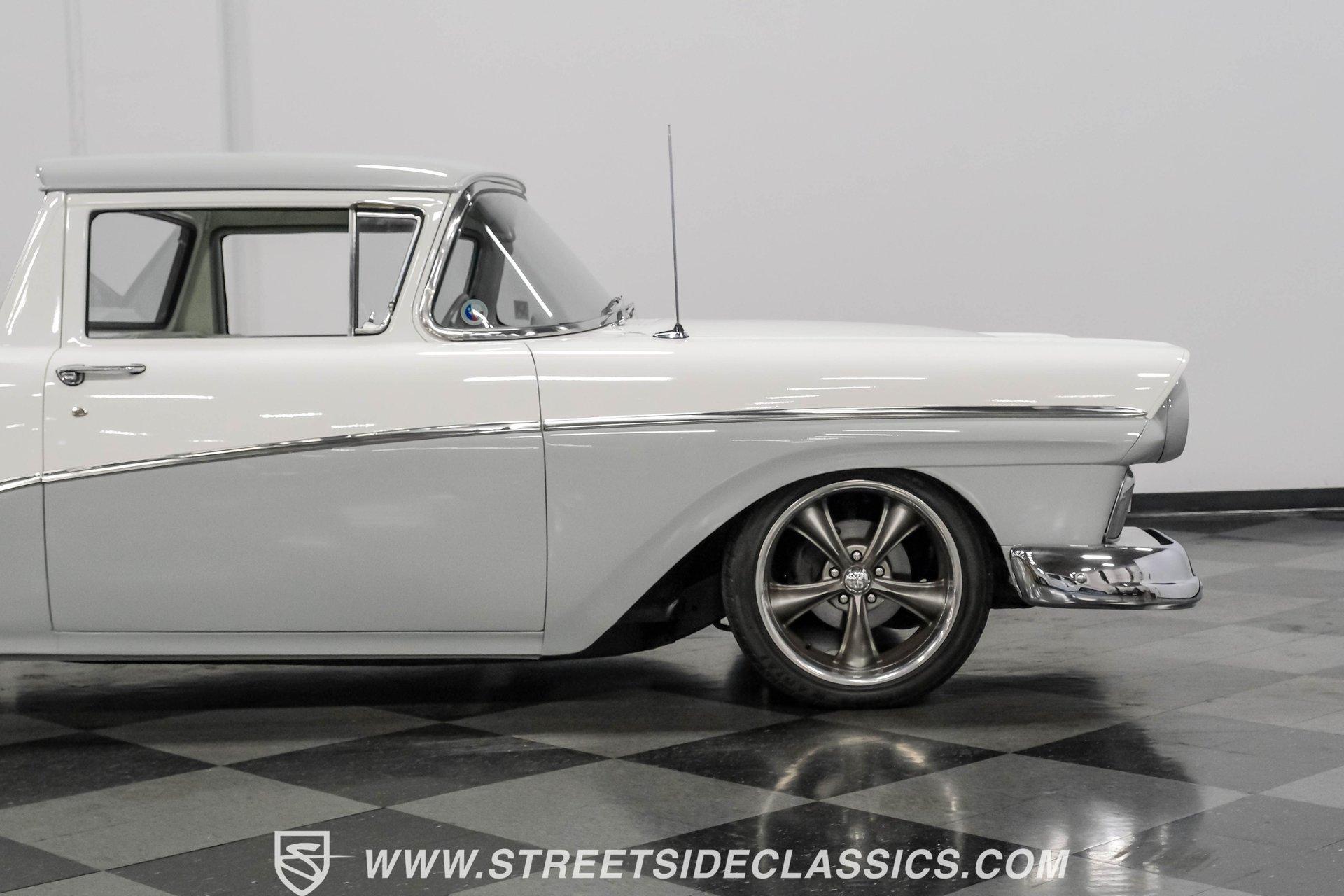 When this 1957 Ford Ranchero first rolled off the assembly line to herald the arrival of a truly revolutionary vehicle pairing the utility of a pickup truck with the easy drivability of a passenger car, no one could have imagined that it would emerge nearly 70 years later looking this good. Dressed in a very effective pairing of white and gray, this is a classic that demands attention. The tasteful paint job is in fine shape and is complemented by a collection of chrome that's in uniformly clean condition. This vintage Ford's aggressive stance strikes a nice balance, resulting in it being low enough to confirm that some aftermarket workmanship was involved, but without going so overboard as to leave it unable to contend with everyday driving conditions. The matching interior makes for an inspiring driving environment, featuring clean painted surfaces paired with vinyl upholstery showing only the slightest of wear. The broad bench seat is especially comfortable and offers an added console offering a pair of cupholders and some welcome interior storage space. You'll find a collection of Dakota Digital gauges in the instrument cluster to help you monitor driving functions, and the aftermarket under dash air conditioning unit is running in top form to keep you and your passengers comfortable, year-round. There's also a retro look AM/FM stereo with an auxiliary port now on board in the dash, and while it's currently disconnected, it's otherwise ready for duty. Beneath the hood, a 5.0-liter high-output V8 engine stands ready to provide plenty of reliable power. Fed by electronic fuel injection, it pairs with a 4-speed automatic transmission that's operating in good form, sending a deep but subtle note out of the pair of Glasspack-style mufflers in back. Electric power steering has been added to the mix to make this classic truck easy to handle, while power brakes that position discs up front give it the stopping ability to deal with modern driving conditions. An upgraded aluminum radiator now sits up front to help keep operating temperatures under control. HIGHLIGHTS: 5.0 Liter High-Output V8 Electronic Fuel Injection AOD 4-Speed Automatic Transmission Power Brakes with Front Discs Power Steering Dual Exhaust w/ Glasspack Style Mufflers Aluminum Radiator 18" BOSS Wheels Aggressive, Lowered Stance White and Gray Interior Blends Vinyl and Tweed Dakota Digital Gauges Air Conditioning Financing Available Vehicle Protection Plans Available Worldwide Shipping A groundbreaking vehicle that redefined the automotive landscape of the '50s and created a category all its own, this 1957 Ford Ranchero cruises on a set of eye-catching 18" Boss wheels wrapped with low-profile Kenda tires, has a timeless appeal and would be a great match for the classic car enthusiast searching for a ride that stands out in a crowd. Call today!