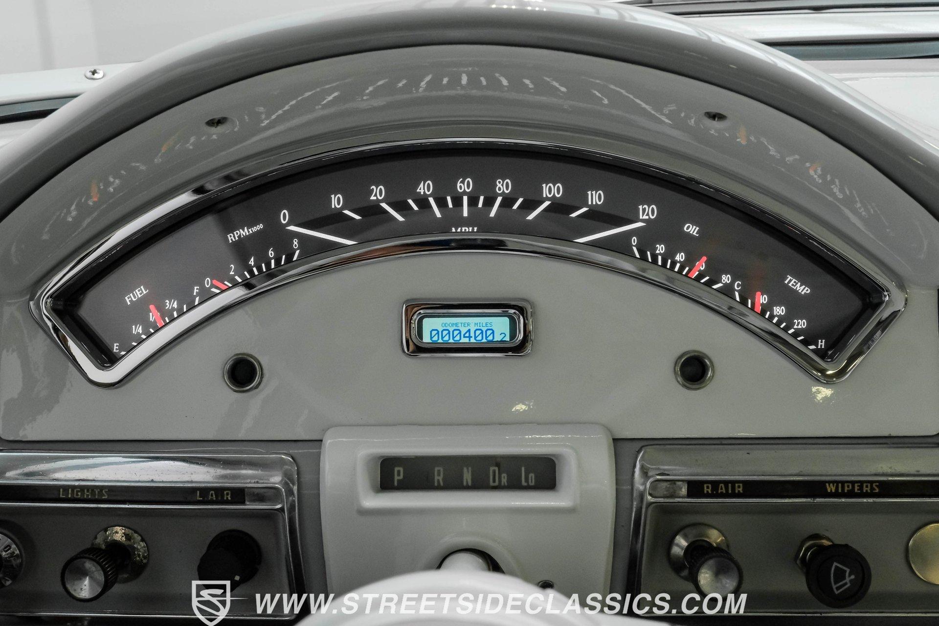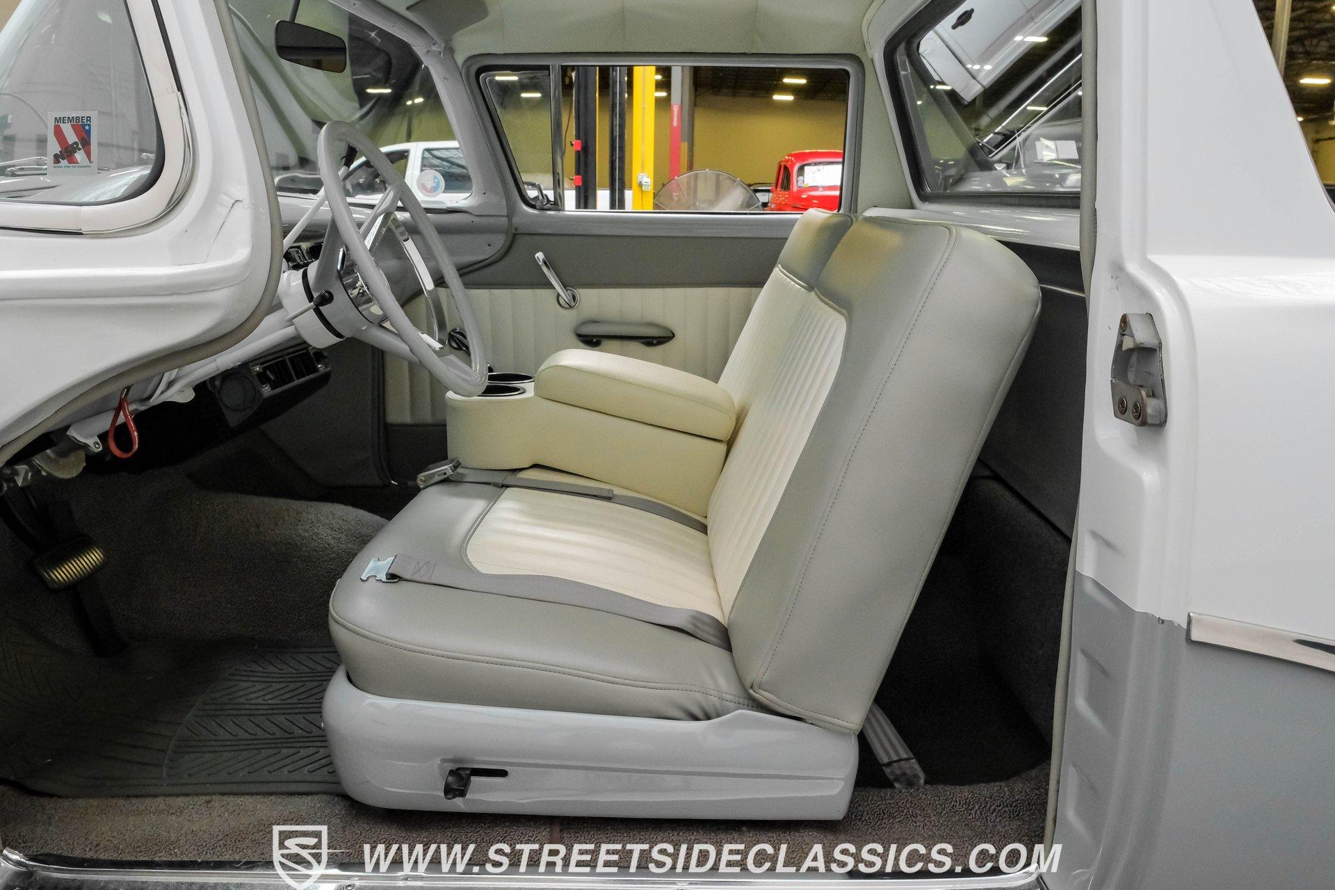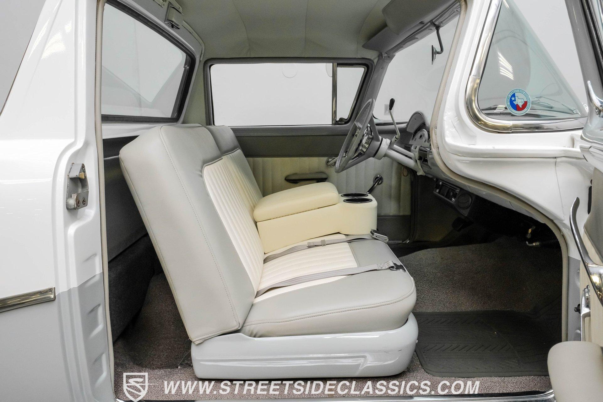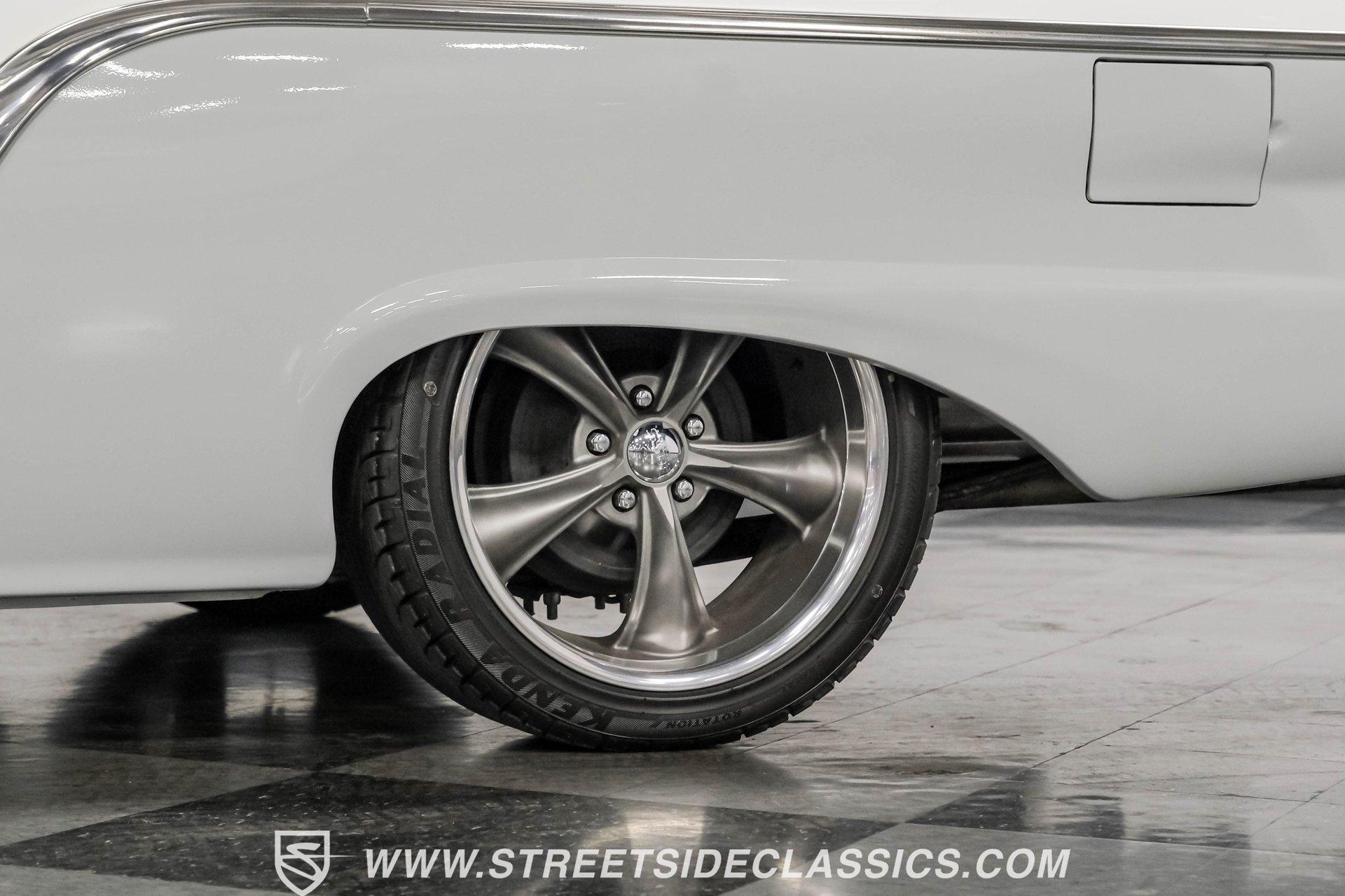 When this 1957 Ford Ranchero first rolled off the assembly line to herald the arrival of a truly revolutionary vehicle pairing the utility of a pickup truck with the easy drivability of a passenger car, no one could have imagined that it would emerge nearly 70 years later looking this good. Dressed in a very effective pairing of white and gray, this is a classic that demands attention. The tasteful paint job is in fine shape and is complemented by a collection of chrome that's in uniformly clean condition. This vintage Ford's aggressive stance strikes a nice balance, resulting in it being low enough to confirm that some aftermarket workmanship was involved, but without going so overboard as to leave it unable to contend with everyday driving conditions. The matching interior makes for an inspiring driving environment, featuring clean painted surfaces paired with vinyl upholstery showing only the slightest of wear. The broad bench seat is especially comfortable and offers an added console offering a pair of cupholders and some welcome interior storage space. You'll find a collection of Dakota Digital gauges in the instrument cluster to help you monitor driving functions, and the aftermarket under dash air conditioning unit is running in top form to keep you and your passengers comfortable, year-round. There's also a retro look AM/FM stereo with an auxiliary port now on board in the dash, and while it's currently disconnected, it's otherwise ready for duty. Beneath the hood, a 5.0-liter high-output V8 engine stands ready to provide plenty of reliable power. Fed by electronic fuel injection, it pairs with a 4-speed automatic transmission that's operating in good form, sending a deep but subtle note out of the pair of Glasspack-style mufflers in back. Electric power steering has been added to the mix to make this classic truck easy to handle, while power brakes that position discs up front give it the stopping ability to deal with modern driving conditions. An upgraded aluminum radiator now sits up front to help keep operating temperatures under control. HIGHLIGHTS: 5.0 Liter High-Output V8 Electronic Fuel Injection AOD 4-Speed Automatic Transmission Power Brakes with Front Discs Power Steering Dual Exhaust w/ Glasspack Style Mufflers Aluminum Radiator 18" BOSS Wheels Aggressive, Lowered Stance White and Gray Interior Blends Vinyl and Tweed Dakota Digital Gauges Air Conditioning Financing Available Vehicle Protection Plans Available Worldwide Shipping A groundbreaking vehicle that redefined the automotive landscape of the '50s and created a category all its own, this 1957 Ford Ranchero cruises on a set of eye-catching 18" Boss wheels wrapped with low-profile Kenda tires, has a timeless appeal and would be a great match for the classic car enthusiast searching for a ride that stands out in a crowd. Call today!
