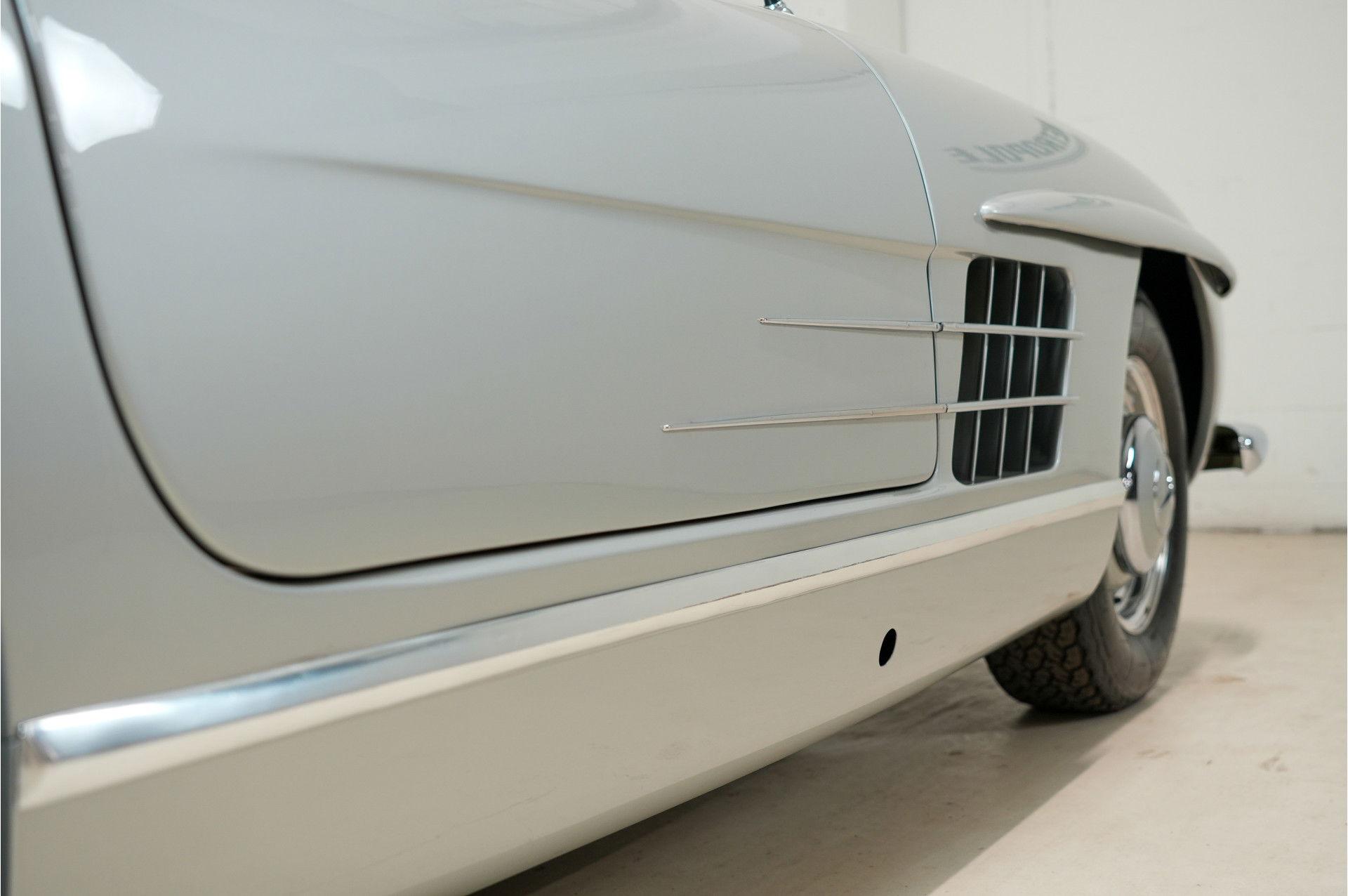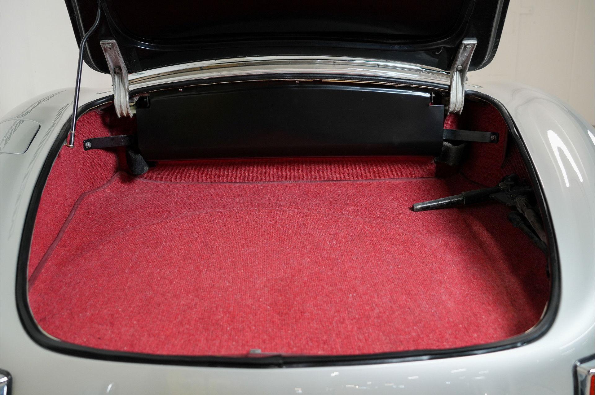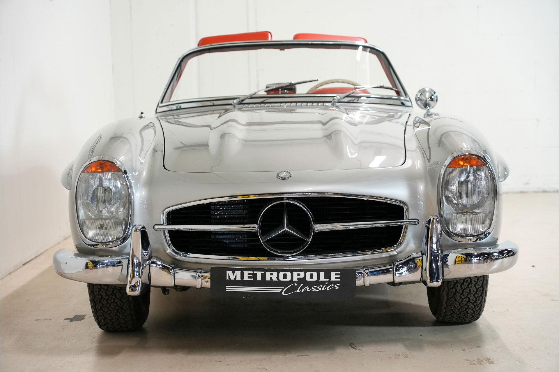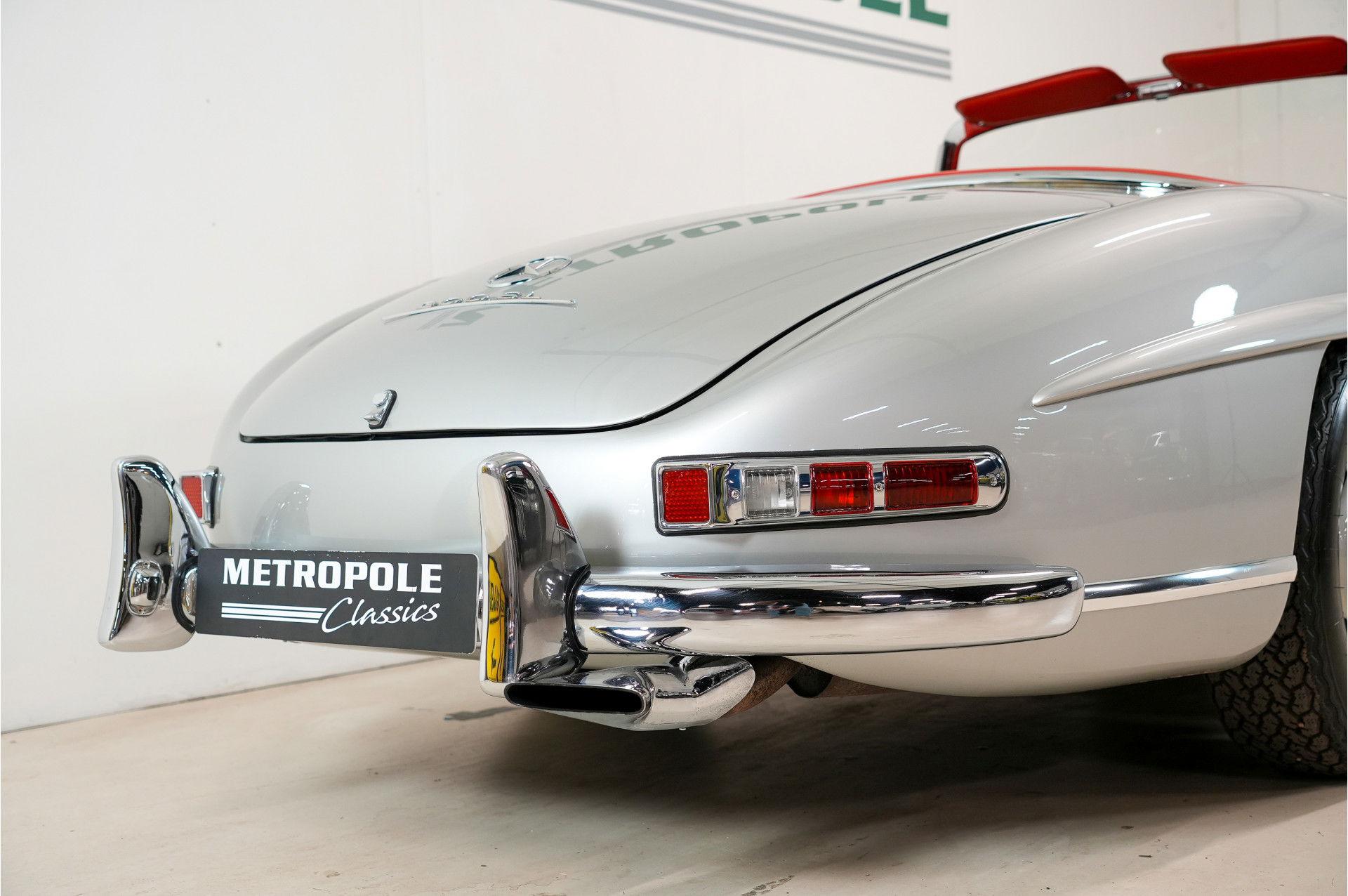 This 1958 Mercedes-Benz 300 SL Roadster is an original, matching numbers example, finished in metallic silver with red leather upholstery.