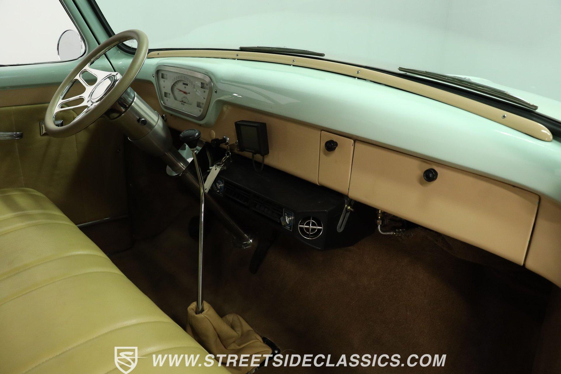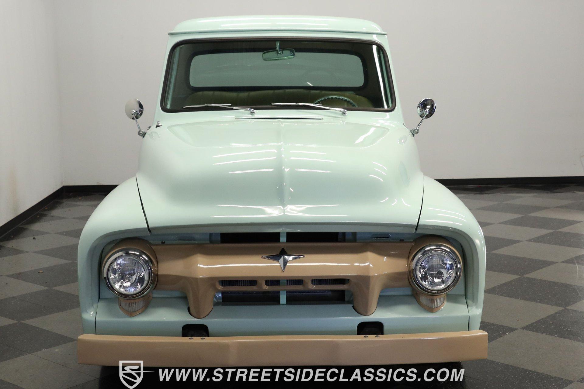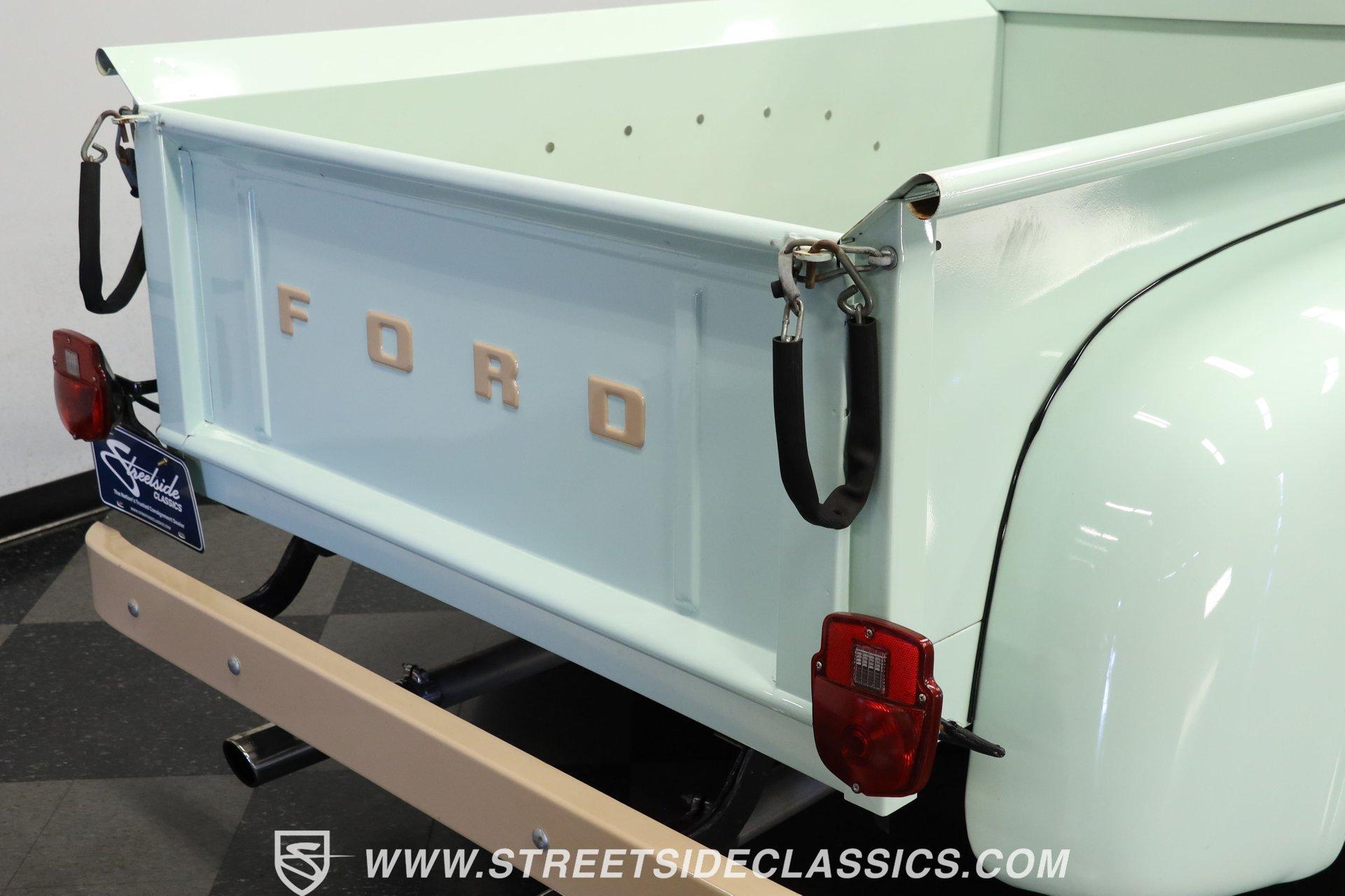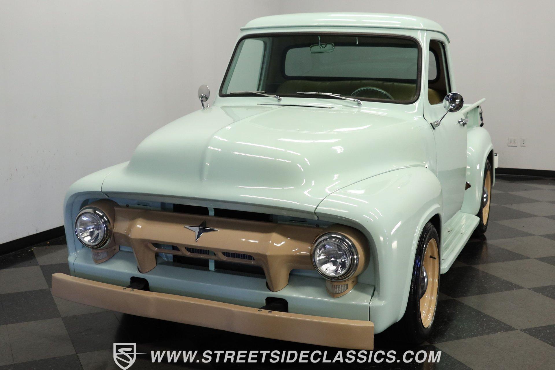 Combining an authentically vintage appearance with some excellent upgrades to enhance its drivability, this 1954 Ford F-1 Restomod occupies some coveted automotive real estate. Repainted in ultra-sharp turquoise paint that has a great shine, this classic's curb appeal is undeniable. It features exterior trim that's in very solid condition, and both its bumpers and wheels have been painted in a shade of beige that not only complements the primary color but also blends with the interior. All this skilled workmanship pairs with a strong assortment of mechanical components that further set this standout ride apart from the crowd. Inside the doors, you'll find the same theme of vintage visual appeal, combined with excellent functionality. The tan vinyl bench seat is in great condition that's matched by the door panels to each side, and the paint scheme on the dashboard is almost certain to make you do a double-take. It's cleanly applied, accenting an instrument panel that contains a set of added aftermarket gauges to keep tabs on your motoring functions. A very sharp and compact steering wheel is now perched on a tilting column, and you'll have a Lokar shifter at your disposal when it comes time to put this truck through its paces. The added under dash climate control system is functioning at its best to keep you and your passengers nice and comfortable throughout the year. If you're searching for a vintage pickup that you'll truly look forward to driving, then this F-1 is a definite "must-see". It features a whole host of upgrades that combine to make for a fun experience behind the wheel. A 4.6-liter, double overhead cam, 32 valve engine now sits in place of the original powerplant, and equipped with Holley Terminator X fuel-injection, it offers enhanced power and adjustability over what this venerable truck started with. The engine pairs with an automatic 4R70W transmission to lower RPMs on the highway. The front-end features components from a mid-2000s Mercury Grand Marquis, adding a more refined ride and responsive rack-and-pinion steering that pairs perfectly with the power disc brakes now in place at both ends. An upgraded aluminum radiator with dual electric fans has also been added to the mix to keep operating temperatures in check. HIGHLIGHTS 4.6-LITER DOHC 32 VALVE V8 ENGINE HOLLEY TERMINATOR X ELECTRONIC FUEL INJECTION AUTOMATIC 4R70W TRANSMISSION WITH OVERDRIVE ALUMINUM RADIATOR WITH DUAL ELECTRIC FANS UPGRADED FRONT SUSPENSION POWER STEERING 4-WHEEL POWER DISC BRAKES UPGRADED 18" RETRO-LOOK WHEELS DUAL EXHAUST STANDOUT TURQUOISE & TAN INTERIOR AIR CONDITIONING TAN VINYL UPHOLSTERY BENCH SEAT TILT COLUMN POWER WINDOWS FLOOR SHIFTER Just as fun to drive as it is to look at, this 1954 Ford F-1 Restomod cruises on a set of 18" retro-looking wheels that add yet another convincingly authentic touch to its appearance. If you're searching for a great blend of driving experience and aesthetic appeal, you need to check this one out. Call today! We can assist you with getting an Extended Vehicle Service Plan from Freedom Warranty, which provides comprehensive coverage that can save thousands of dollars on unexpected repairs. Inquire for more details and pricing!
