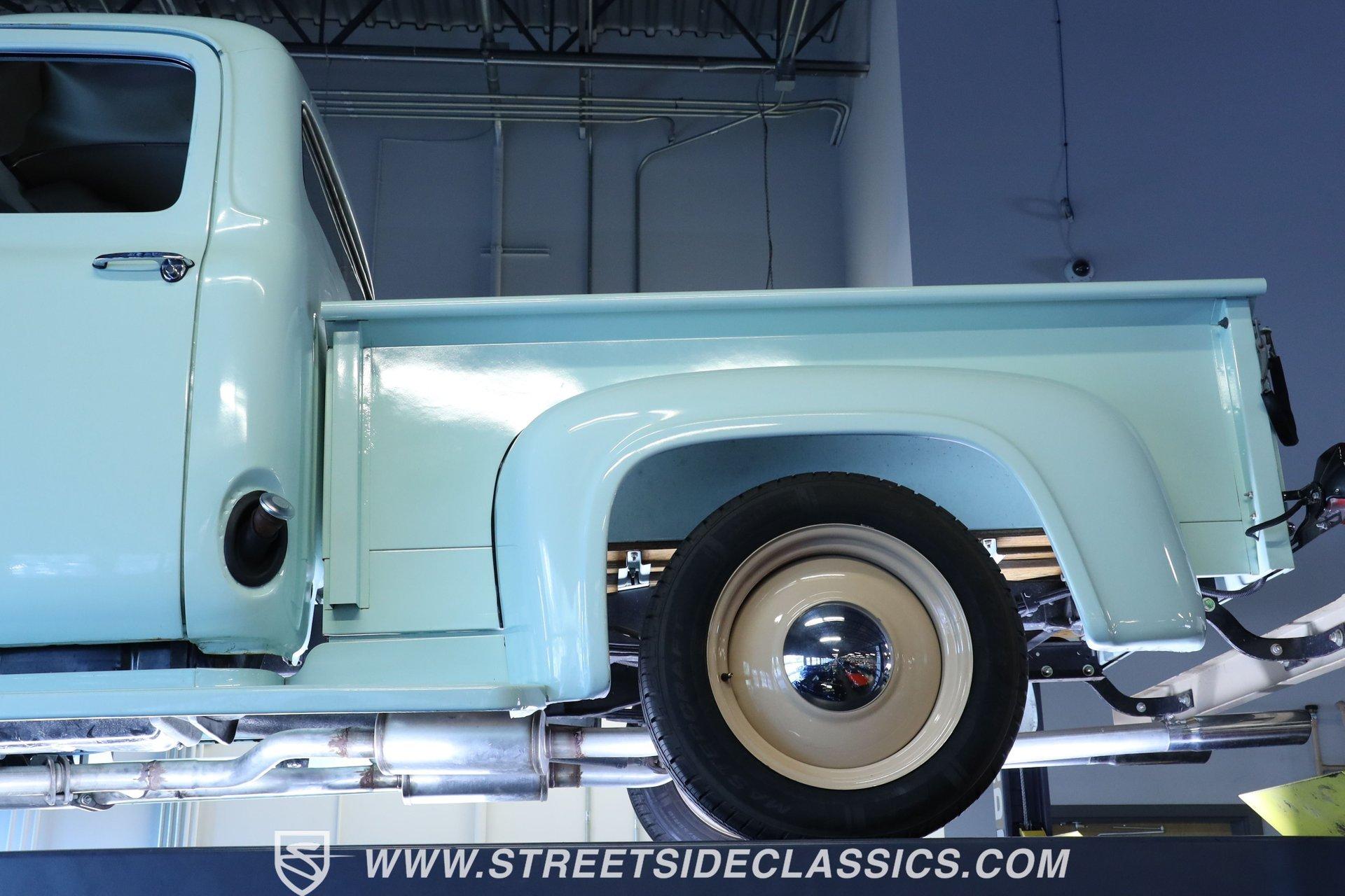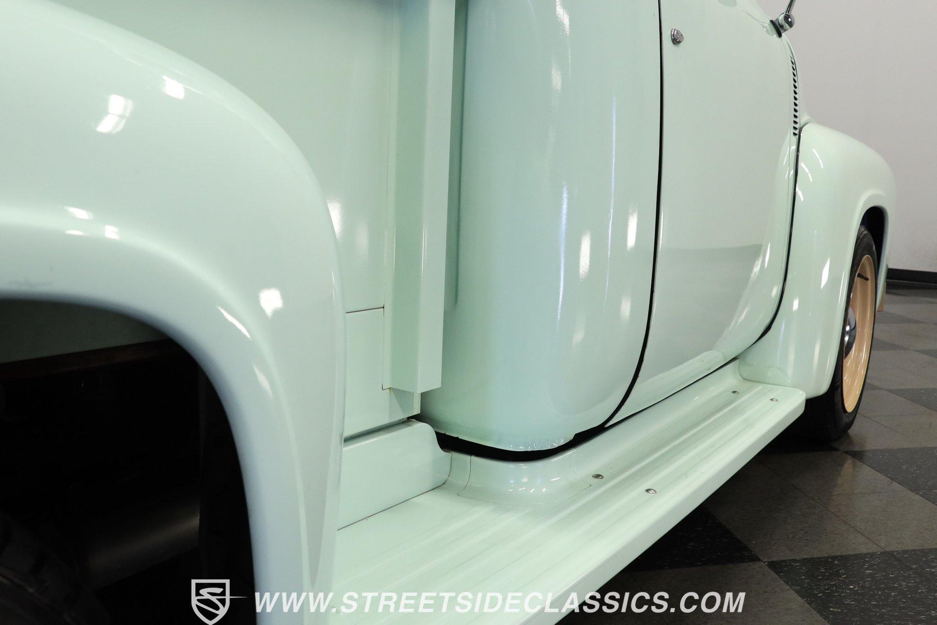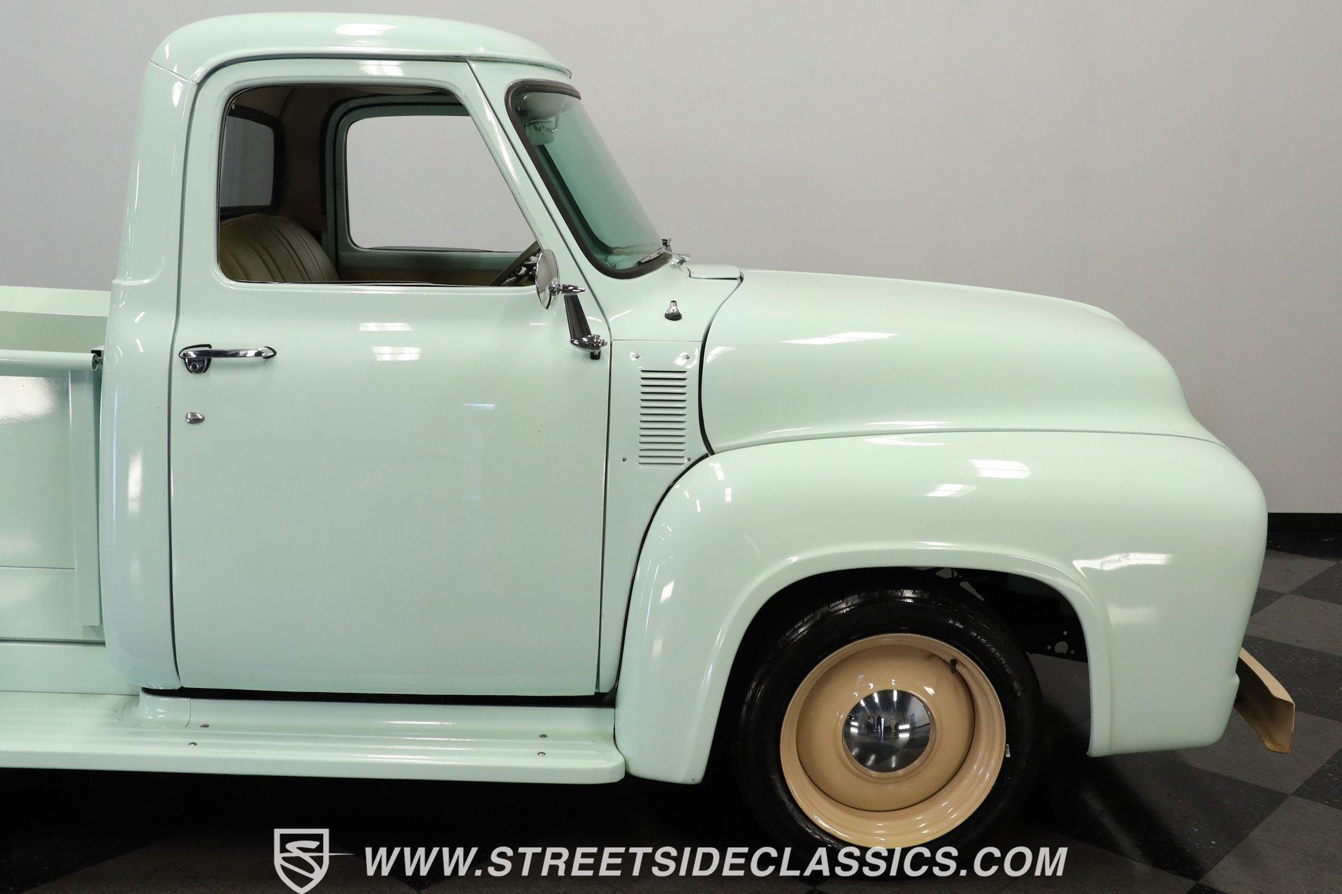 Combining an authentically vintage appearance with some excellent upgrades to enhance its drivability, this 1954 Ford F-1 Restomod occupies some coveted automotive real estate. Repainted in ultra-sharp turquoise paint that has a great shine, this classic's curb appeal is undeniable. It features exterior trim that's in very solid condition, and both its bumpers and wheels have been painted in a shade of beige that not only complements the primary color but also blends with the interior. All this skilled workmanship pairs with a strong assortment of mechanical components that further set this standout ride apart from the crowd. Inside the doors, you'll find the same theme of vintage visual appeal, combined with excellent functionality. The tan vinyl bench seat is in great condition that's matched by the door panels to each side, and the paint scheme on the dashboard is almost certain to make you do a double-take. It's cleanly applied, accenting an instrument panel that contains a set of added aftermarket gauges to keep tabs on your motoring functions. A very sharp and compact steering wheel is now perched on a tilting column, and you'll have a Lokar shifter at your disposal when it comes time to put this truck through its paces. The added under dash climate control system is functioning at its best to keep you and your passengers nice and comfortable throughout the year. If you're searching for a vintage pickup that you'll truly look forward to driving, then this F-1 is a definite "must-see". It features a whole host of upgrades that combine to make for a fun experience behind the wheel. A 4.6-liter, double overhead cam, 32 valve engine now sits in place of the original powerplant, and equipped with Holley Terminator X fuel-injection, it offers enhanced power and adjustability over what this venerable truck started with. The engine pairs with an automatic 4R70W transmission to lower RPMs on the highway. The front-end features components from a mid-2000s Mercury Grand Marquis, adding a more refined ride and responsive rack-and-pinion steering that pairs perfectly with the power disc brakes now in place at both ends. An upgraded aluminum radiator with dual electric fans has also been added to the mix to keep operating temperatures in check. HIGHLIGHTS 4.6-LITER DOHC 32 VALVE V8 ENGINE HOLLEY TERMINATOR X ELECTRONIC FUEL INJECTION AUTOMATIC 4R70W TRANSMISSION WITH OVERDRIVE ALUMINUM RADIATOR WITH DUAL ELECTRIC FANS UPGRADED FRONT SUSPENSION POWER STEERING 4-WHEEL POWER DISC BRAKES UPGRADED 18" RETRO-LOOK WHEELS DUAL EXHAUST STANDOUT TURQUOISE & TAN INTERIOR AIR CONDITIONING TAN VINYL UPHOLSTERY BENCH SEAT TILT COLUMN POWER WINDOWS FLOOR SHIFTER Just as fun to drive as it is to look at, this 1954 Ford F-1 Restomod cruises on a set of 18" retro-looking wheels that add yet another convincingly authentic touch to its appearance. If you're searching for a great blend of driving experience and aesthetic appeal, you need to check this one out. Call today! We can assist you with getting an Extended Vehicle Service Plan from Freedom Warranty, which provides comprehensive coverage that can save thousands of dollars on unexpected repairs. Inquire for more details and pricing!