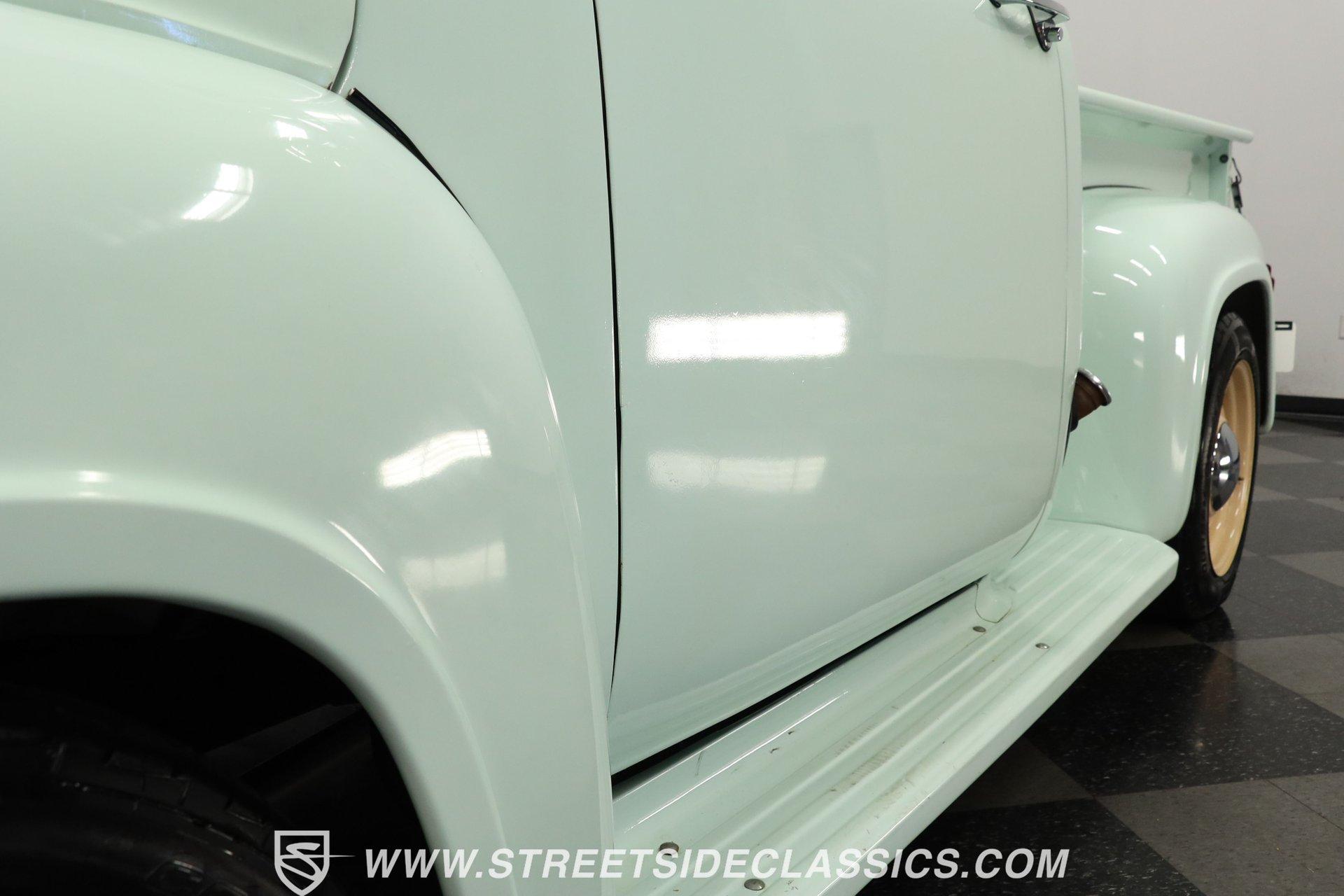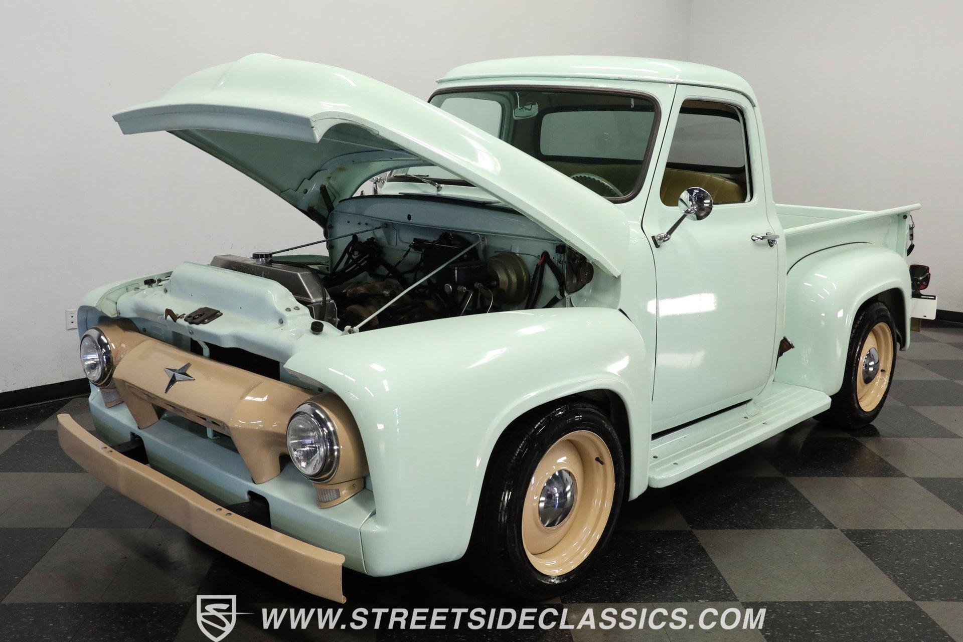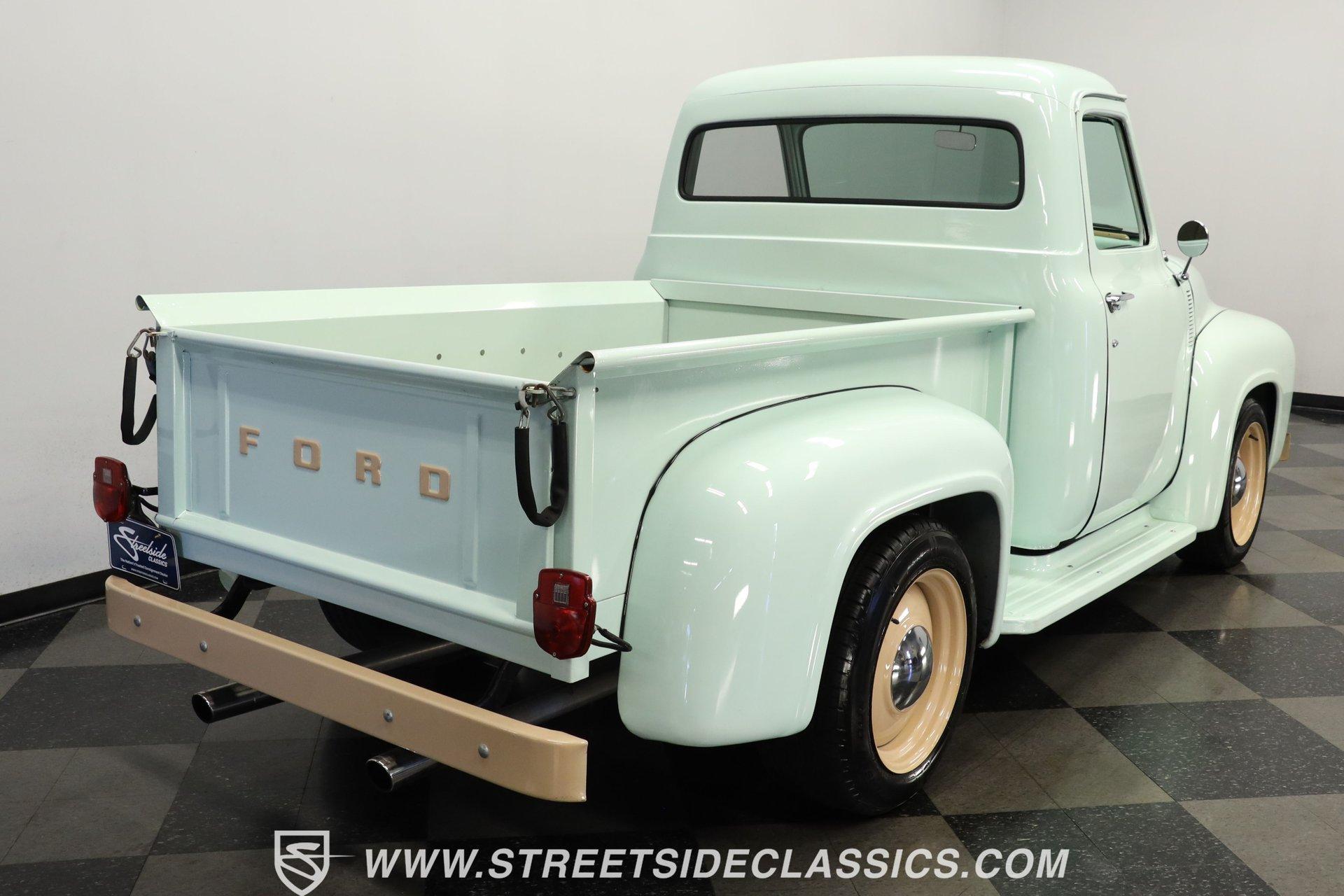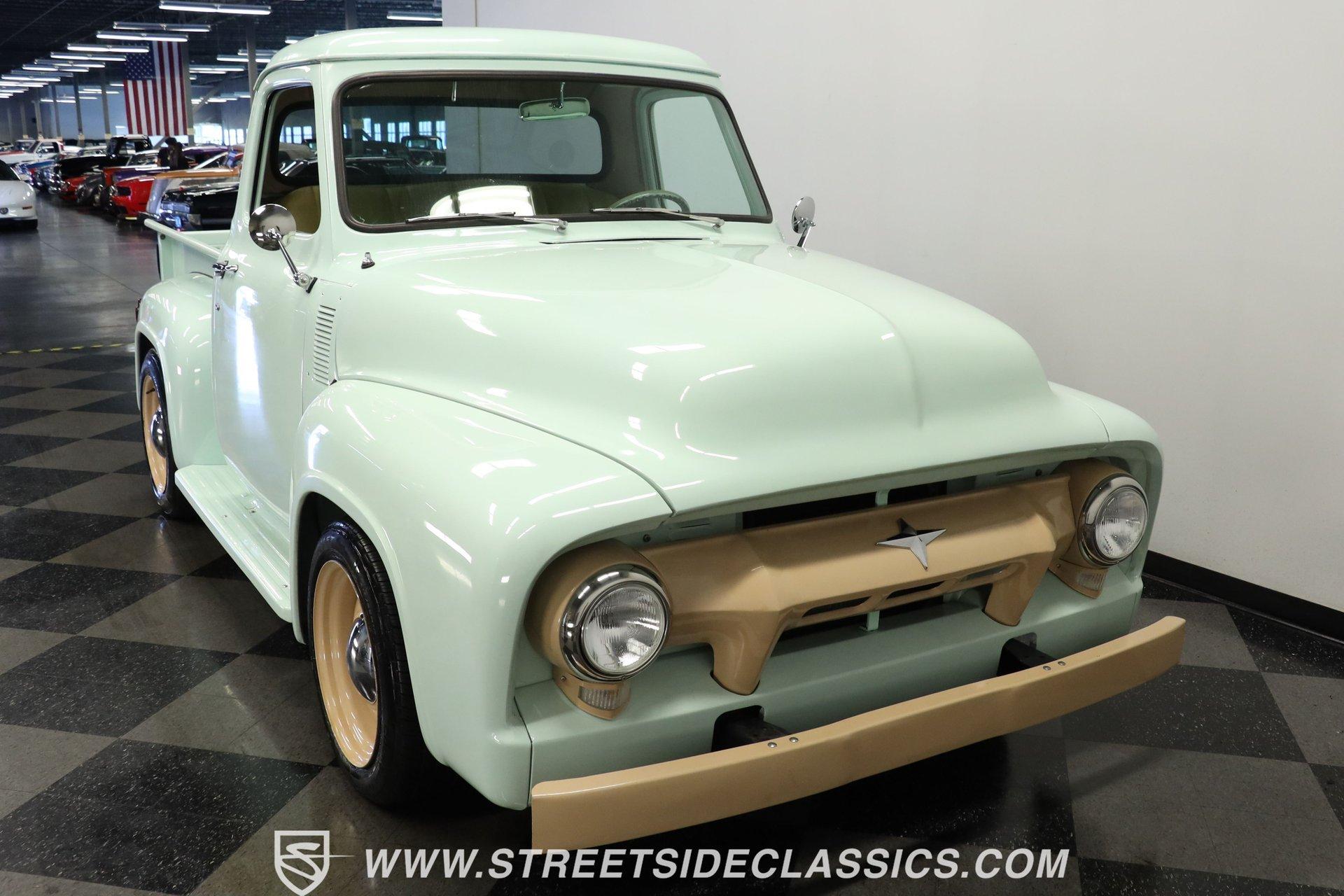 Combining an authentically vintage appearance with some excellent upgrades to enhance its drivability, this 1954 Ford F-1 Restomod occupies some coveted automotive real estate. Repainted in ultra-sharp turquoise paint that has a great shine, this classic's curb appeal is undeniable. It features exterior trim that's in very solid condition, and both its bumpers and wheels have been painted in a shade of beige that not only complements the primary color but also blends with the interior. All this skilled workmanship pairs with a strong assortment of mechanical components that further set this standout ride apart from the crowd. Inside the doors, you'll find the same theme of vintage visual appeal, combined with excellent functionality. The tan vinyl bench seat is in great condition that's matched by the door panels to each side, and the paint scheme on the dashboard is almost certain to make you do a double-take. It's cleanly applied, accenting an instrument panel that contains a set of added aftermarket gauges to keep tabs on your motoring functions. A very sharp and compact steering wheel is now perched on a tilting column, and you'll have a Lokar shifter at your disposal when it comes time to put this truck through its paces. The added under dash climate control system is functioning at its best to keep you and your passengers nice and comfortable throughout the year. If you're searching for a vintage pickup that you'll truly look forward to driving, then this F-1 is a definite "must-see". It features a whole host of upgrades that combine to make for a fun experience behind the wheel. A 4.6-liter, double overhead cam, 32 valve engine now sits in place of the original powerplant, and equipped with Holley Terminator X fuel-injection, it offers enhanced power and adjustability over what this venerable truck started with. The engine pairs with an automatic 4R70W transmission to lower RPMs on the highway. The front-end features components from a mid-2000s Mercury Grand Marquis, adding a more refined ride and responsive rack-and-pinion steering that pairs perfectly with the power disc brakes now in place at both ends. An upgraded aluminum radiator with dual electric fans has also been added to the mix to keep operating temperatures in check. HIGHLIGHTS 4.6-LITER DOHC 32 VALVE V8 ENGINE HOLLEY TERMINATOR X ELECTRONIC FUEL INJECTION AUTOMATIC 4R70W TRANSMISSION WITH OVERDRIVE ALUMINUM RADIATOR WITH DUAL ELECTRIC FANS UPGRADED FRONT SUSPENSION POWER STEERING 4-WHEEL POWER DISC BRAKES UPGRADED 18" RETRO-LOOK WHEELS DUAL EXHAUST STANDOUT TURQUOISE & TAN INTERIOR AIR CONDITIONING TAN VINYL UPHOLSTERY BENCH SEAT TILT COLUMN POWER WINDOWS FLOOR SHIFTER Just as fun to drive as it is to look at, this 1954 Ford F-1 Restomod cruises on a set of 18" retro-looking wheels that add yet another convincingly authentic touch to its appearance. If you're searching for a great blend of driving experience and aesthetic appeal, you need to check this one out. Call today! We can assist you with getting an Extended Vehicle Service Plan from Freedom Warranty, which provides comprehensive coverage that can save thousands of dollars on unexpected repairs. Inquire for more details and pricing!