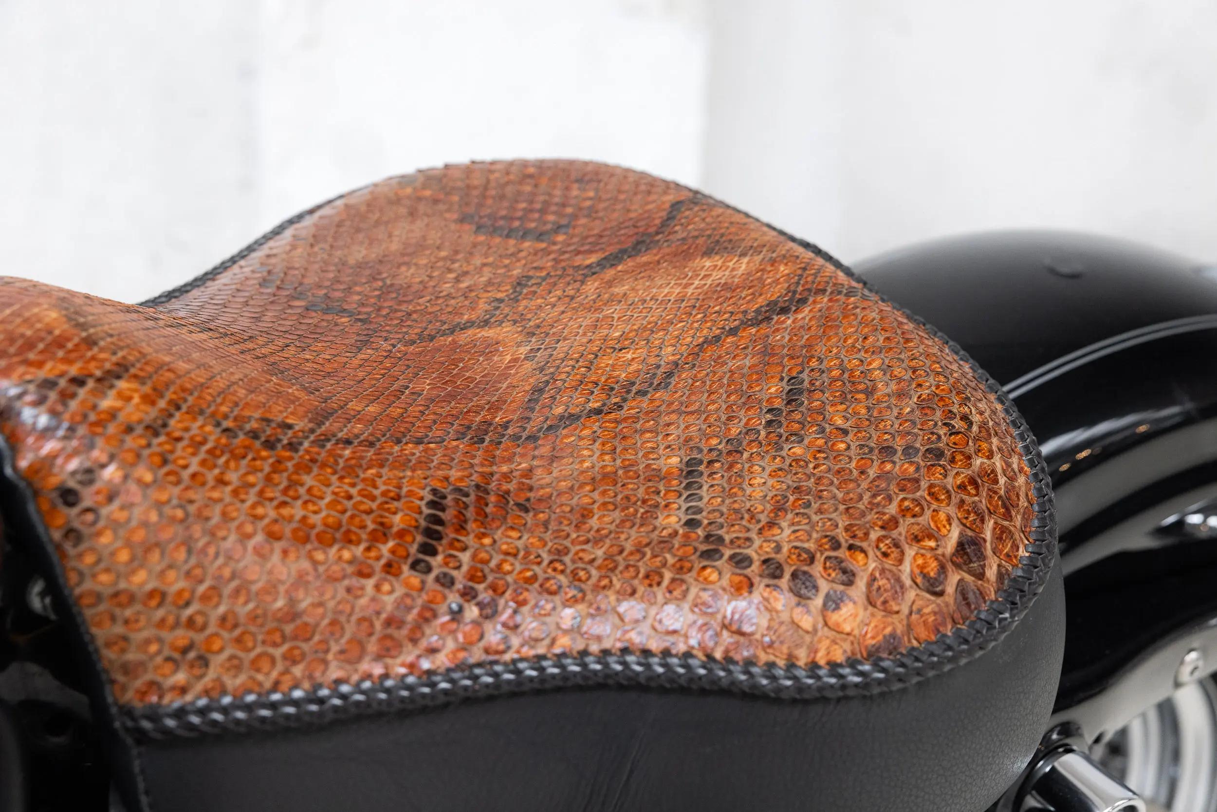 In terms of style and comfort, this is the Sportster you want: low seat height, perfect for longer rides, and equipped with a snakeskin solo seat plus an additional passenger seat — so you can cruise in style, solo or two-up.