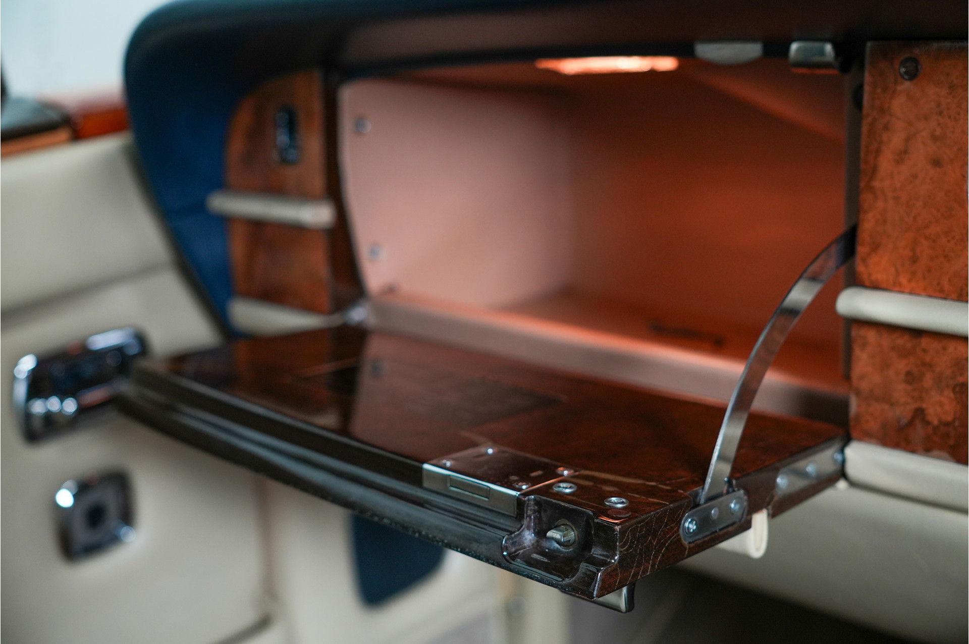 This Rolls-Royce presented here was originally delivered in the UK. Numerous maintenance records and MOT (Motor Vehicle Inspection) documents from this English period, which lasted from 1983 to 2011, are still available. When this car arrived in the Netherlands, it was primarily serviced at BRABO in Hillegom, a renowned Rolls-Royce and Bentley dealership. All of this information can be viewed in the extensive folder, which also includes a recent appraisal report. It's finished in deep metallic blue with light beige leather, a truly chic combination. Driving this limousine is certainly no punishment, as you glide along the road in a truly luxurious vehicle.