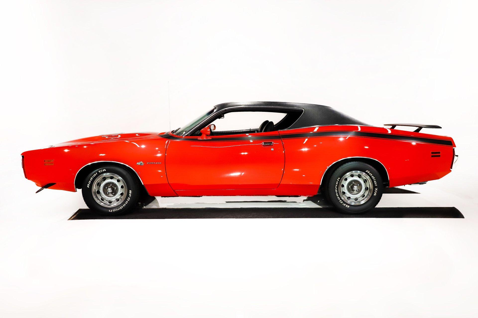 Celebrating our 65 year anniversary! This family owned and operated business was established in 1960, making us the oldest classic car dealership in America. Special thank you to all our customers for entrusting us to park the car of your dreams in your driveway while preserving automotive history for future generations to embrace and enjoy. -Grams family & Volo Museum staff INTRODUCTION: 74,000 Chargers made in 1971 and this is only 1 of 99!! Decoded by Galen Govier, also documented with original broadcast sheet. It was a part of a 35 car collection, it is rare and desirable. EXTERIOR: All new “sleeker” design for 1971. This one is extra sharp decked out with racing hood pins, racing mirrors, front and rear spoilers. It also has the very desirable N96 Ram Charger hood, the scoop opens on demand and feeds the 6-pack fresh air. The body is straight and looks great. Repainted its original hemi orange color, it's laid out and polished to a glass finish. The black stripes look great, especially the Super Bee logo on the hood. The windshield has been replaced, bumpers were rechromed, vinyl top looks great. The 15-inch Rallye wheels with and BFG tires look like new. INTERIOR: It's looking real good inside as well. It has a new dash pad, and the instrument panel is excellent. It's a Rallye gauge car with tachometer, the factory radio is still in place. The glovebox pouch with manuals is included. Nice carpet down on the floor with that awesome Pistol Grip 4-speed shifter sticking out of the hump. The seats have been recushioned and upholstered. The side panels, plastic trim, visors, mirror and steering wheel are in excellent shape. The headliner fits very nicely, it has a couple small holes. ENGINE COMPARTMENT: Here's what really makes it special: a 440 six-pack ram air engine! It is making 385 horsepower and came with a hotter cam, higher compression and 3 Holley carbs. It is VIN number matched to this car and includes stock manifolds, valve covers and complete Ram Charger induction system. It also features power brakes. It looks very proper and complete with the correct radiator and shroud, the battery is secured properly, the hoses and wires are run properly, horns are working etc. The engine bay is painted nicely, it has the fender tag and the VIN number on the cowl matches the car. TRUNK COMPARTMENT: It is rock solid clean metal inside the trunk. I think it may even be the original orange paint. Complete with jack and spare assembly, it even has a trunk light. UNDERSIDE: Underneath presents nicely, it's been maintained and serviced as needed. We inspected the car, the steering and suspension appears to be working properly. We did rebuild the steering rag joint. It has disc brakes in front, we replaced a front brake hose, adjusted the rear brakes and replaced the emergency cables. The factory style exhaust looks fresh and has a cross over pipe along with the “machine gun tips”. The fuel tank looks fresh. Looking up at the motor it has a high torque starter. It has the performance A-833 4-speed manual trans and an 8 ¾ rear end with 3.55 Sure Grip gears. SERVICE: We take pride in our cars and reputation. Therefore, we built a 2 million dollar, 10,000 square ft service center, and hired a team of technicians to service the essentials on every car we sell. CONCLUSION: The Super Bee for 1971 was a performance package in the Charger. It included rally gauges, rallye suspension, HD brakes and shocks. It came standard with a manual 3 speed and a 383. This one is 1 of 99 440 six-packs made with an automatic. It was upgraded with a pistol grip 4-speed which would be 1 of 80. How many have the Ram Charger hood, don't know but it certainly makes it even more rare. This is a rare and desirable car! For nearly 30 years, I, Jay Grams, have personally written the highlights for almost every car in our collection. What I provide is my professional opinion based on my experience with these vehicles. However, opinions can vary, and I strongly recommend a personal inspection to form your own view. Our sales team is always available to answer any questions you may have. One great option is to request a personalized walk-around video, where we can showcase the car and share our team’s insights. ** Our cars are displayed within a museum setting. If you are interested in a specific vehicle, please schedule an appointment with a salesperson to view it. Without an appointment, there is an admission fee to enter the showroom. If you decide to purchase a car, your admission will be refunded, and you'll receive a one-year museum membership. ☎️ 815 385 3644 9-5 central 📧 Sales@volocars.com Answered ASAP Air grabber 6 pack carbs Power disc brakes 3.55 Sure Grip Rally gauges Bucket seats Stripes Front spoiler Rear spoiler Racing mirrors Hood pins Vinyl top Rally wheels Broadcast sheet