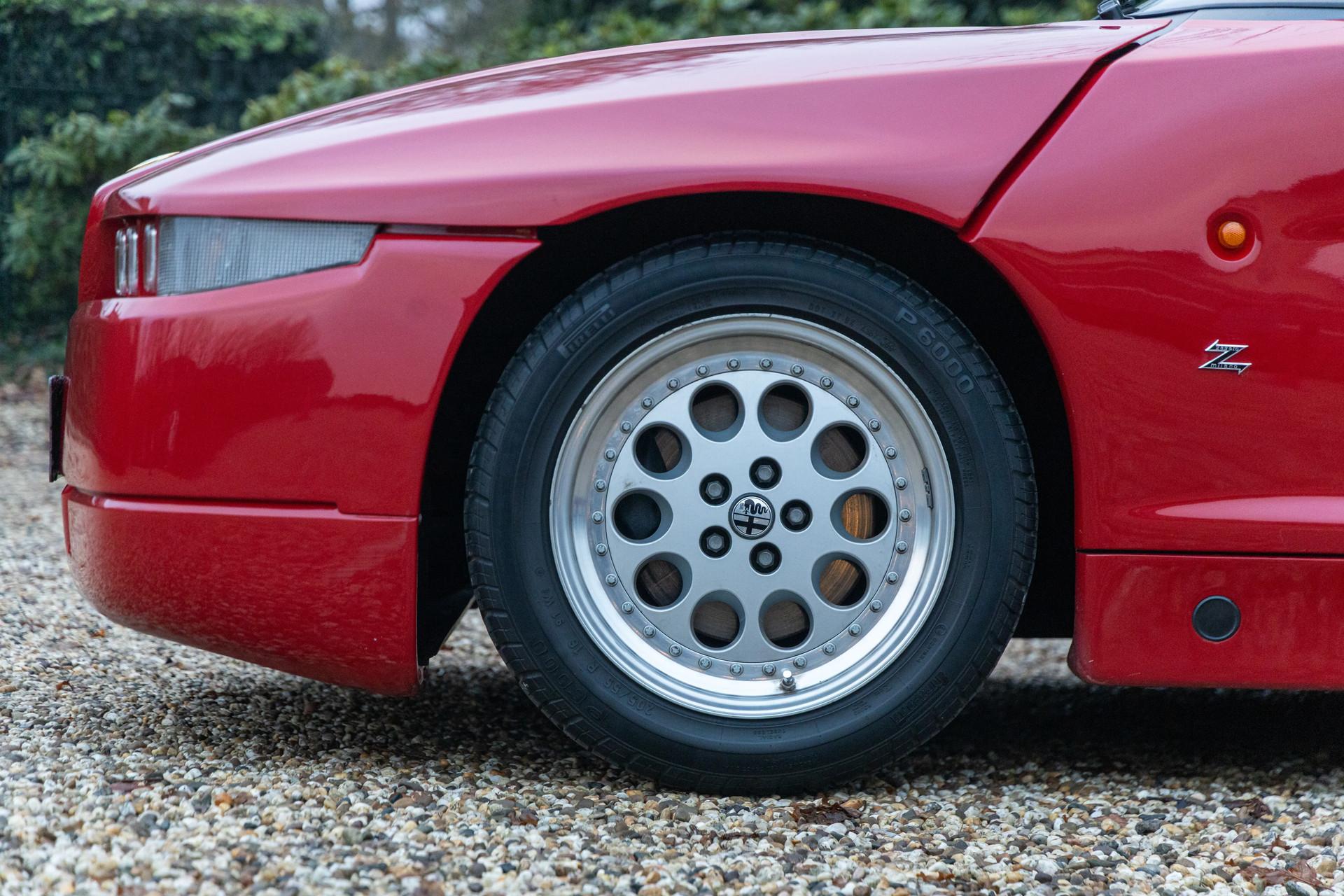 The SZ's technical character is celebrated for its purity. The 3.0-liter Busso V6 produces 210 hp and delivers the unmistakable soundtrack only a classic Alfa V6 can produce. The chassis, derived from the Alfa 75 IMSA racer and refined by Giorgio Pianta, features Koni dampers, wide Pirelli tires, and a suspension setup free of electronic assists. The result is a driving experience that is direct, mechanical, communicative — exactly what a sports car should be.