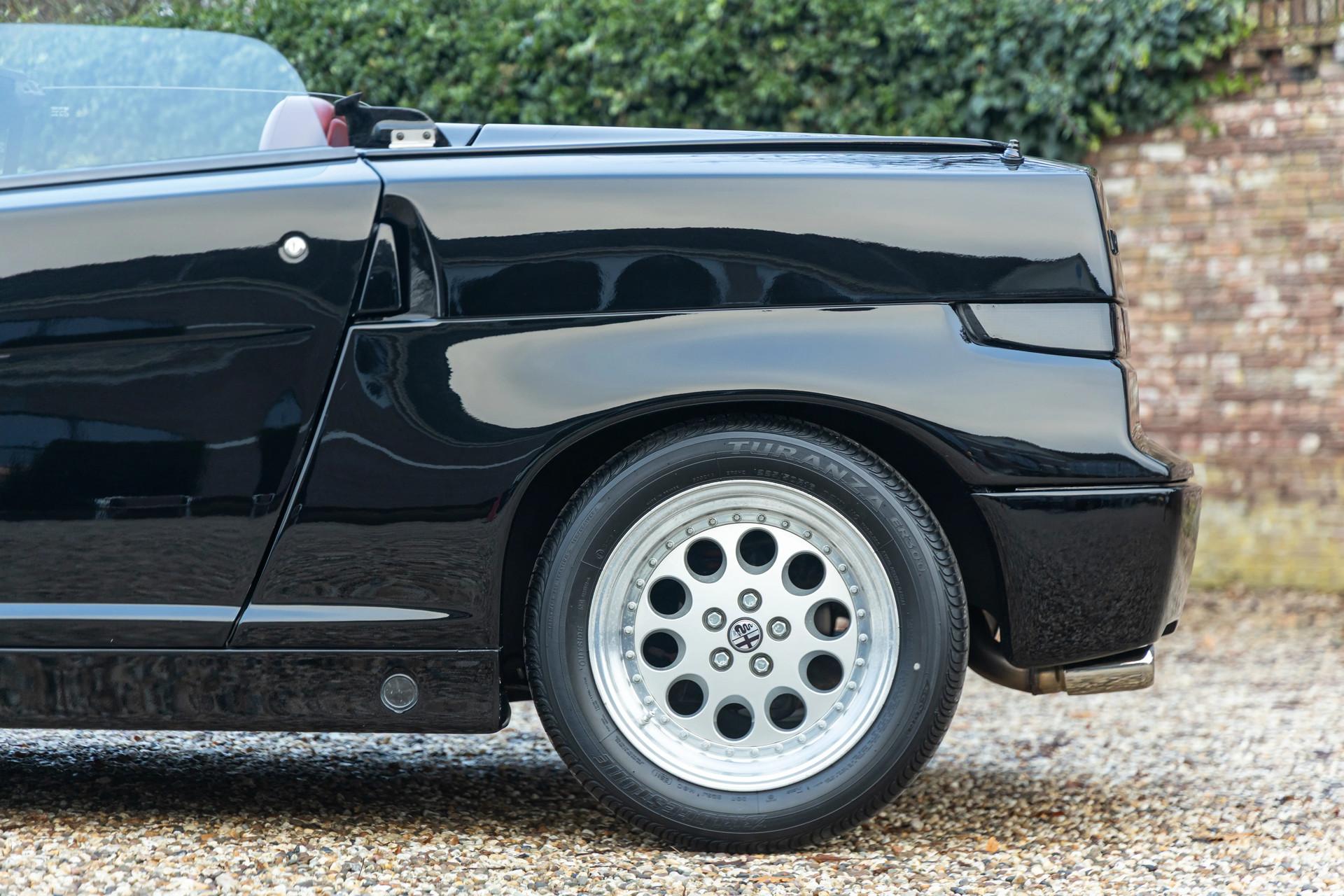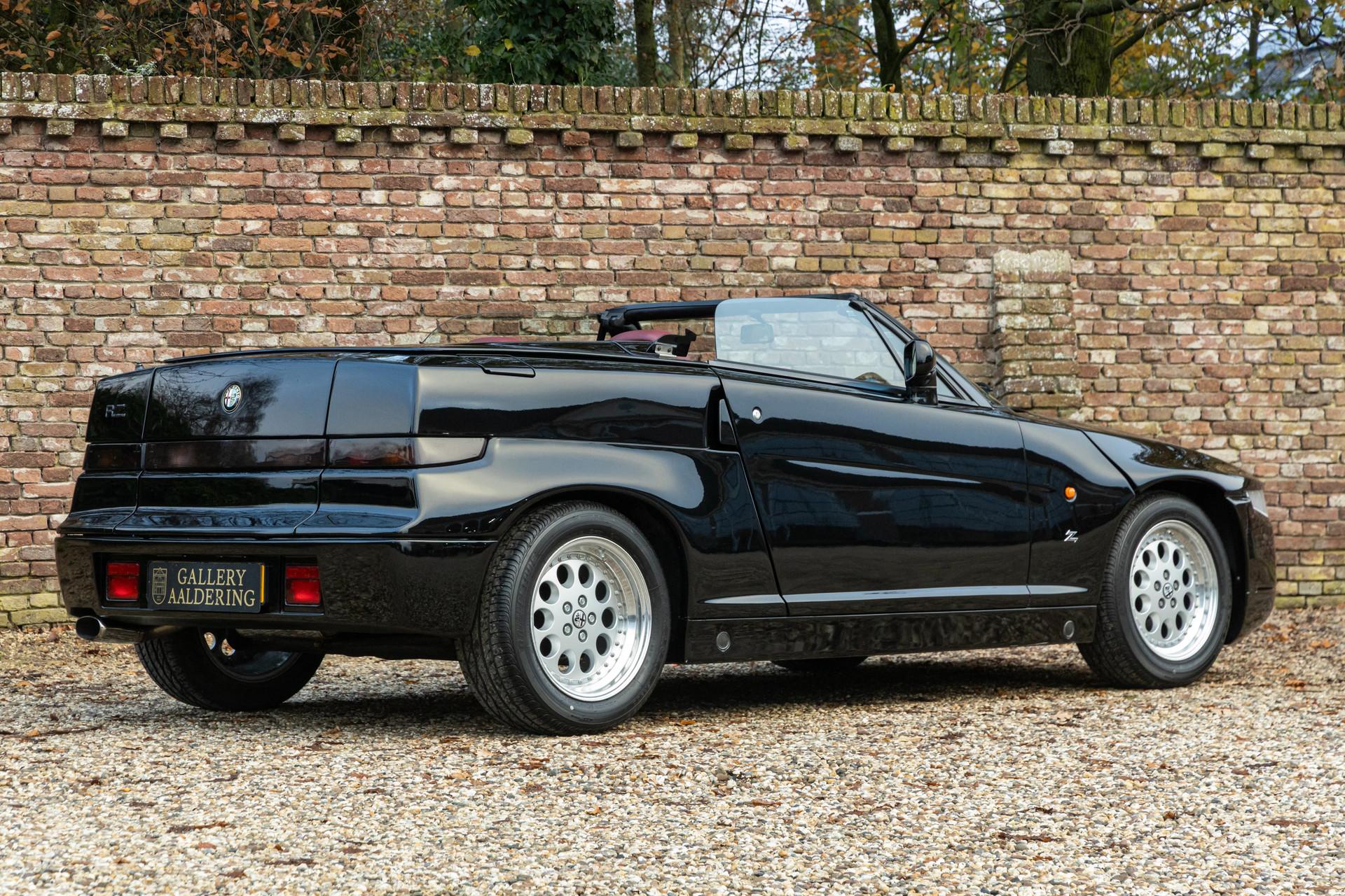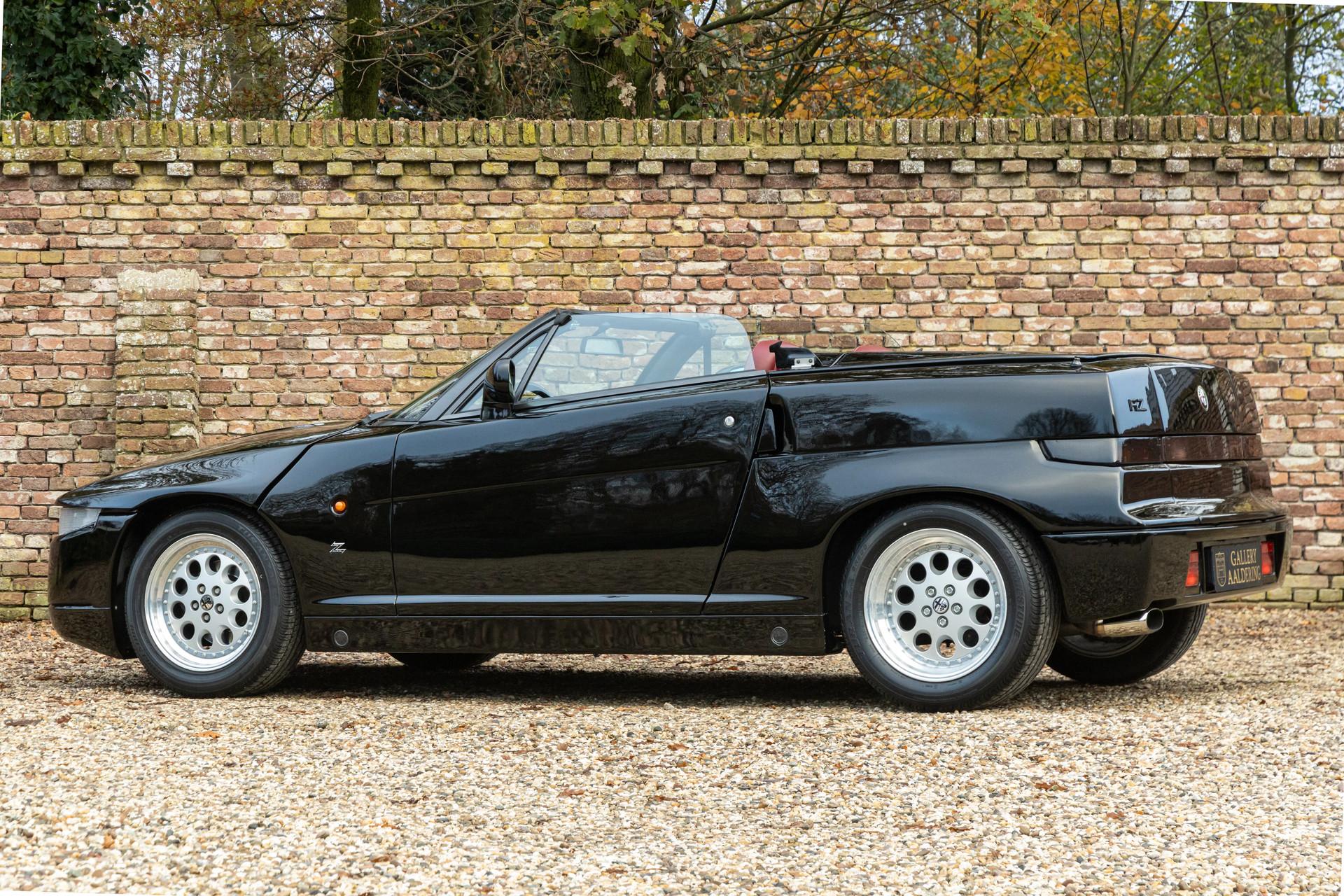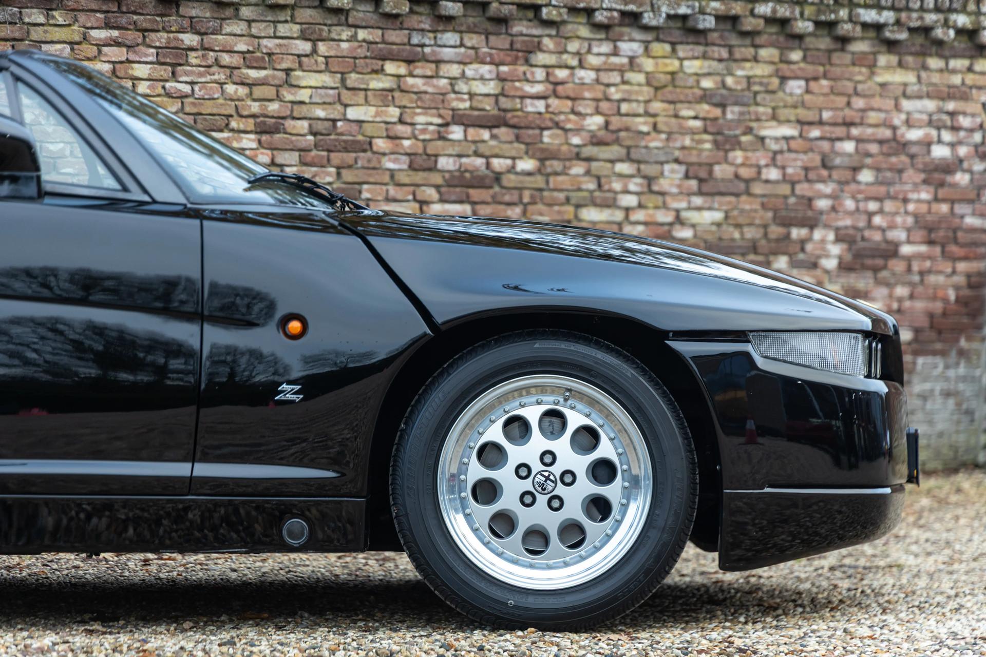 What has always made the RZ so compelling is its origin within the ES-30 project: a bold collaboration between Centro Stile Alfa Romeo, Centro Stile Fiat, and the craftsmen at Zagato. The sharp lines, the distinctive profile, and the unique composite body panels emerged from a period in which Alfa Romeo dared to experiment. Robert Opron sketched the original design, Antonio Castellana refined the interior, and final assembly was carried out by hand at Zagato's facility in Terrazzano di Rho. As a result, no two RZs are truly identical—each carries its own character.