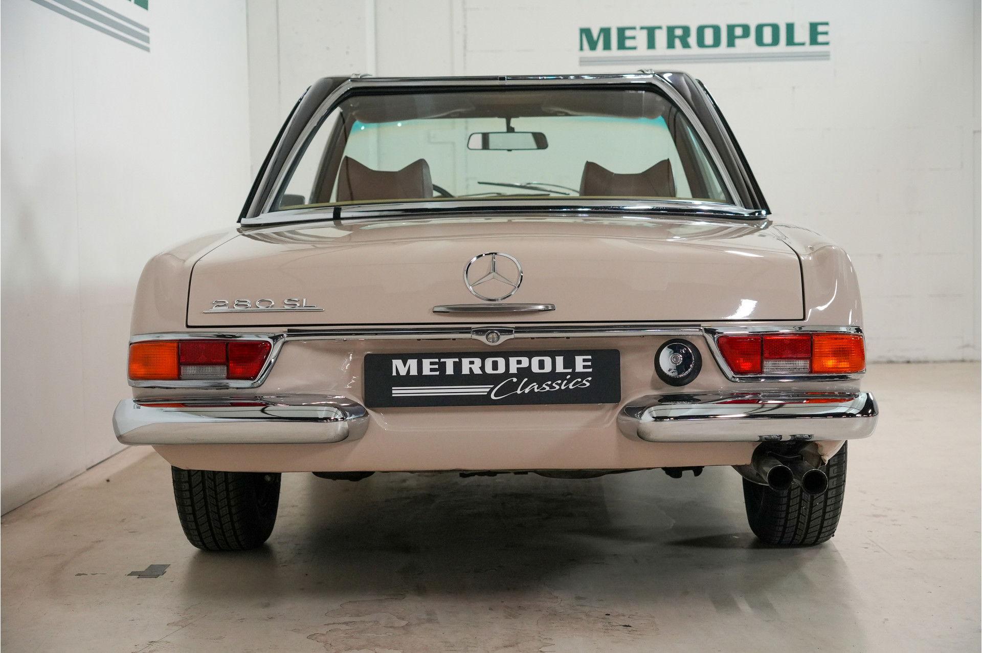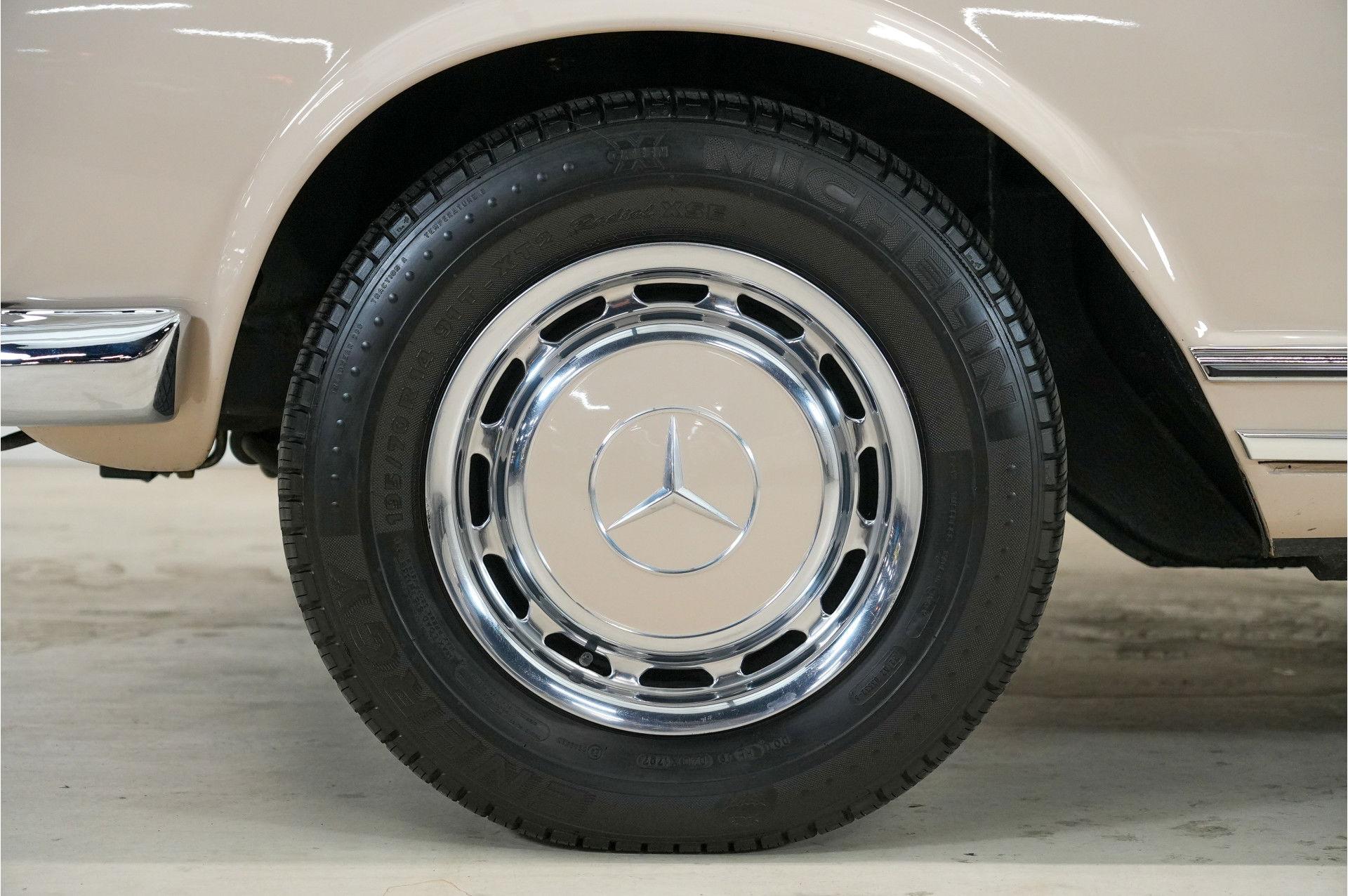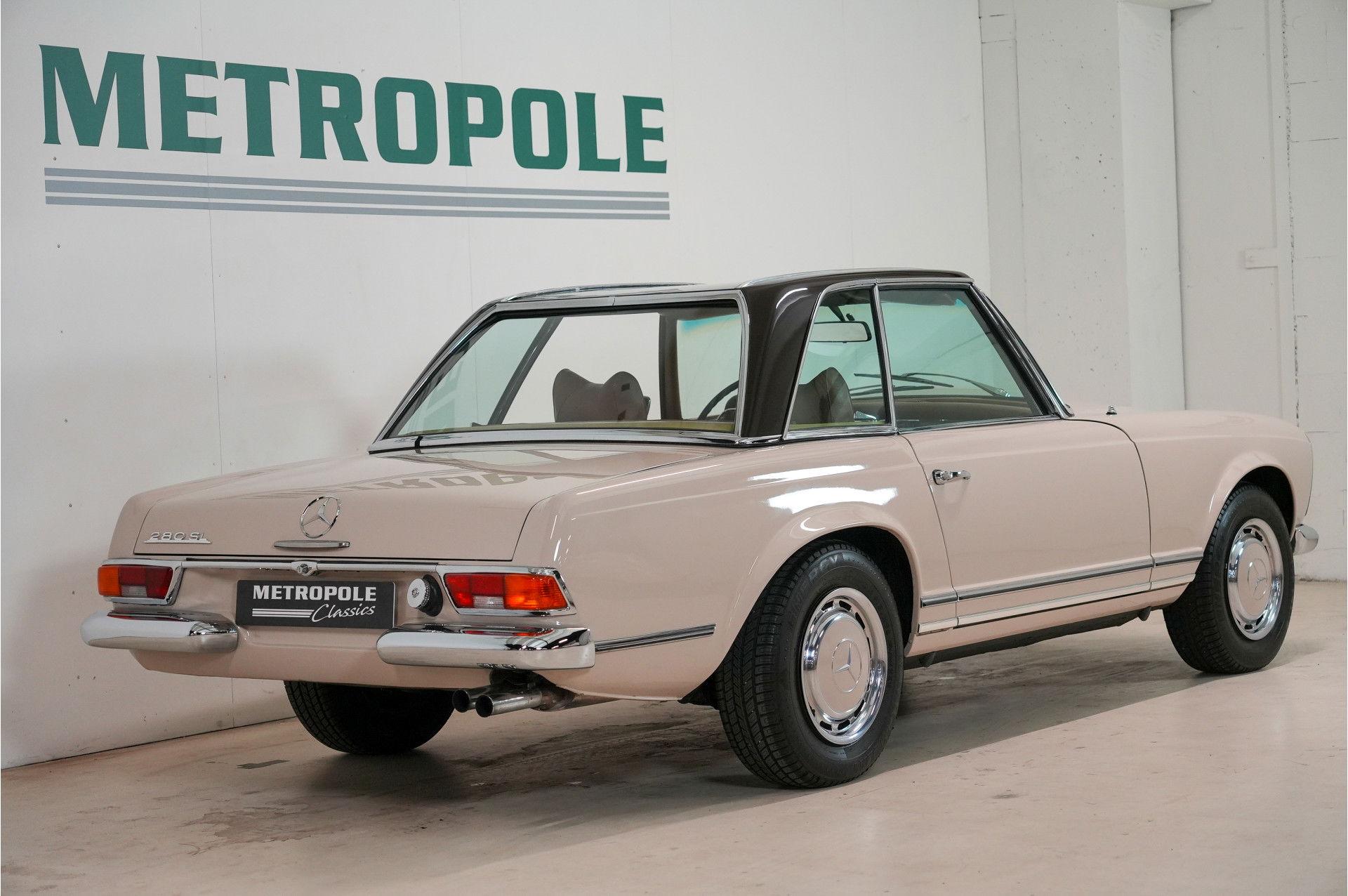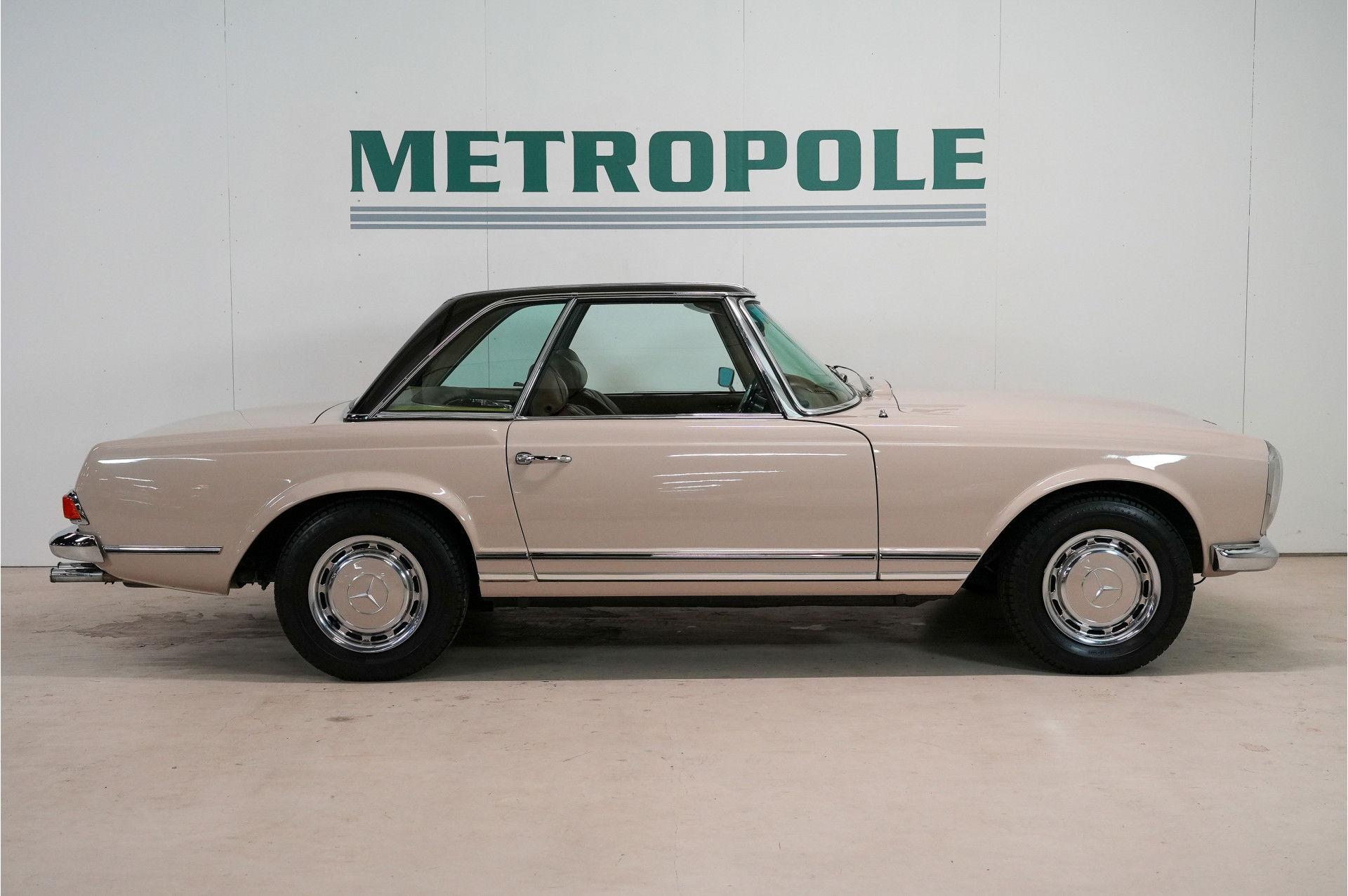 This Mercedes offered here was originally delivered to America. It was then completely restored and Europeanized, with new headlights and removed side turn signals. It's a beautiful car with everything perfect. The seams fit perfectly, and the bodywork looks very straight. It also includes a beautiful new brown soft top. The interior is also still in excellent condition. Of course, the car drives as you'd expect from a Mercedes. A fantastic Pagoda for the true enthusiast.