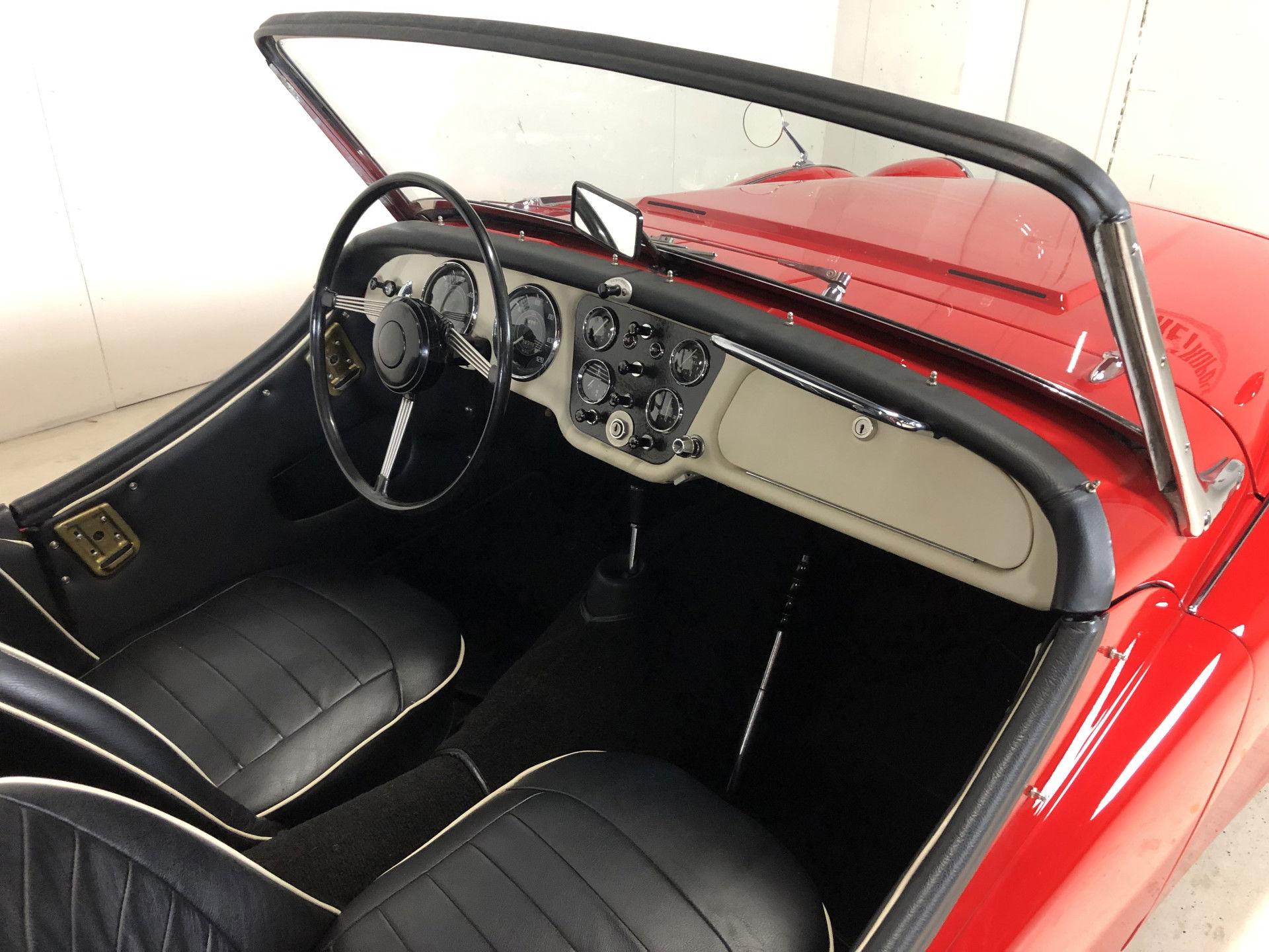 This TR3 A presented here is a body-off restored where everything is right. Under the hood you see an almost new engine that has also been completely overhauled. Furthermore, the car is equipped with a black leather interior with a white stripe. The Triumph has beautiful chrome wire wheels with Vredestein Classic tires. After restoration, the TR has only driven 5000 kilometers. A beautiful TR3 A for the lover of a real open English sports car.