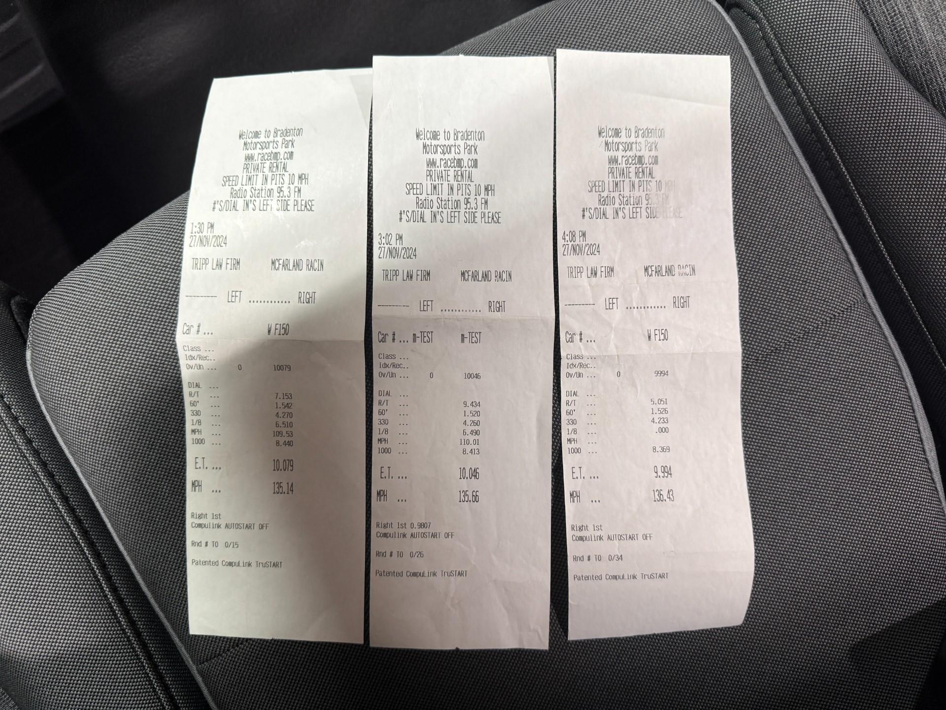Mexican GTR2023 Ford F150 XL5.0 Coyote Twin Turbo Motor1,572 miles1,000 hp on E859.98 1/4 mile at 138mphDaylight Performance Twin Turbo KitElectronic Adjustable Waste GatesMidnight Performance Transmission 10R80 1,000hpPure Drivetrain Solutions Torque Converter (3500 stall)Yukon RearendSnow Performance Full Fuel System w/Triple Pumps, Rails, and InjectorsRidetech Lowering Kit-Front Coilovers Dual Adjustment-Rear Shocks Dual Adjustment-Upper Control ArmsCaltracs Traction BarsVossen 20" WheelsNitto Nt555Rs 315 all 4Motion Raceworks Vented Catch CanTrans CoolerDashboard Digital Data CenterYou might have seen this truck on Youtube last year if you're a Cleetus McFarland fan. This was one of the two build offs where they raced the red supercharged F150 against this white twin turbo F150. This truck has all the goodies and is wicked fast. It is currently running on the E85 tune and can get switched back to the 93 tune if you contact Lund Racing.