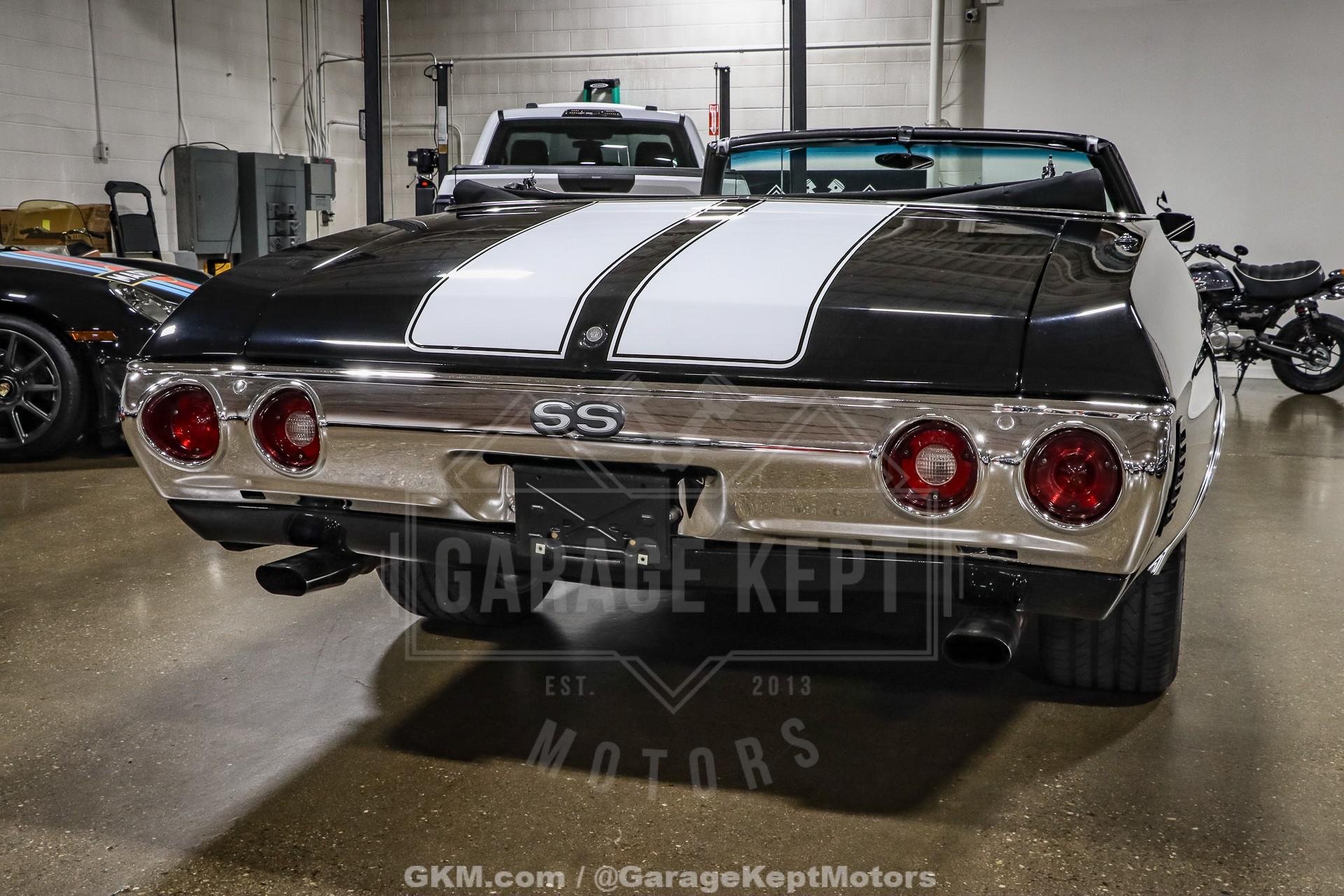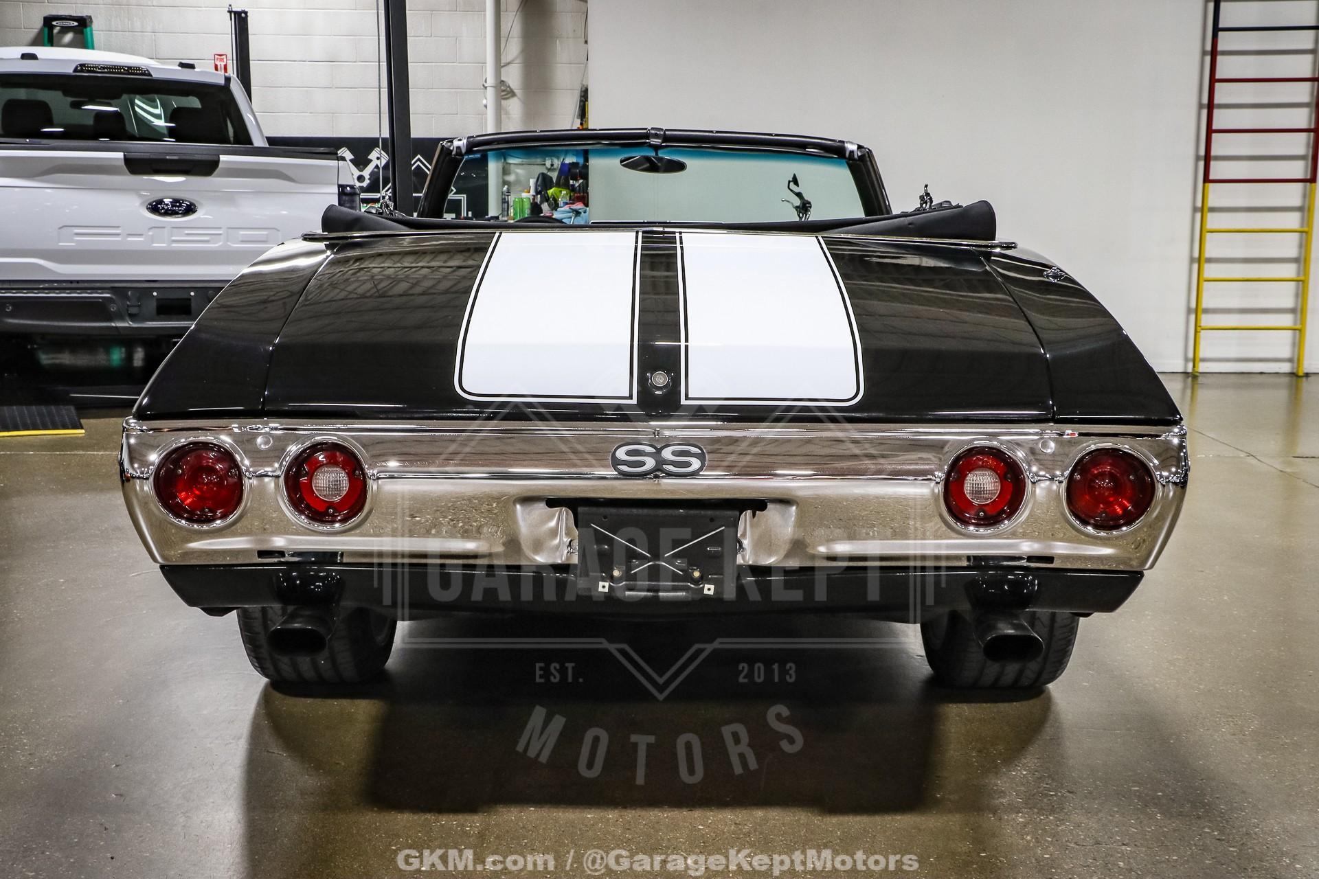 1972 Chevrolet Chevelle SS Convertible Tribute- Beautiful Resto Mod- 454ci V8- 700R4 Automatic Transmission- Vintage AC- 4 Wheel Disc Brakes- Black Exterior With White Stripes- Black Interior With Power Steats- Auto Meter Gauges - Custom Stereo System - American Racing Wheels - Hotchkis Suspension UpgradesThis 1972 Chevrolet Chevelle SS Convertible Tribute is a beautifully executed resto mod that blends classic muscle car styling with modern performance and comfort. Finished in a stunning black exterior with white SS stripes over a black interior, it captures the aggressive presence of the legendary Chevelle while offering upgraded drivability and refinement.Under the hood lies a powerful 454ci V8 paired with a 700R4 automatic transmission, delivering both brute force and highway-friendly cruising. Vintage air conditioning, four-wheel disc brakes, and Hotchkis suspension upgrades ensure a smooth, controlled, and enjoyable ridewhether cruising around town or taking on long stretches of open road.Inside, the black interior features power seats, Auto Meter gauges, and a custom stereo system, providing a comfortable and stylish driving environment. Riding on American Racing wheels, this Chevelle offers the perfect mix of performance and show-quality appeal. With its big-block power, thoughtful upgrades, and convertible top, this 1972 Chevelle SS Tribute is a head-turning classic built to drive and enjoy.