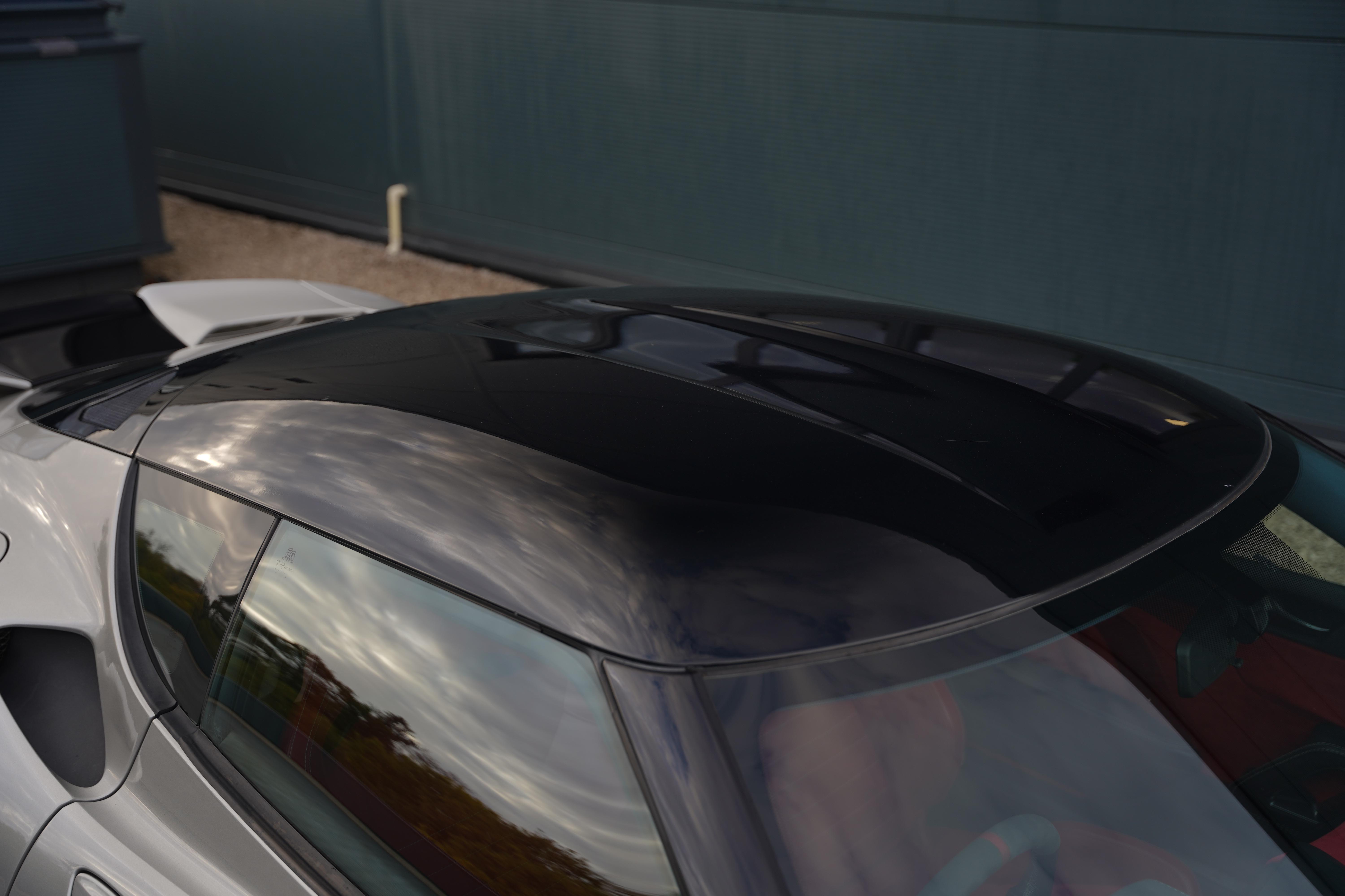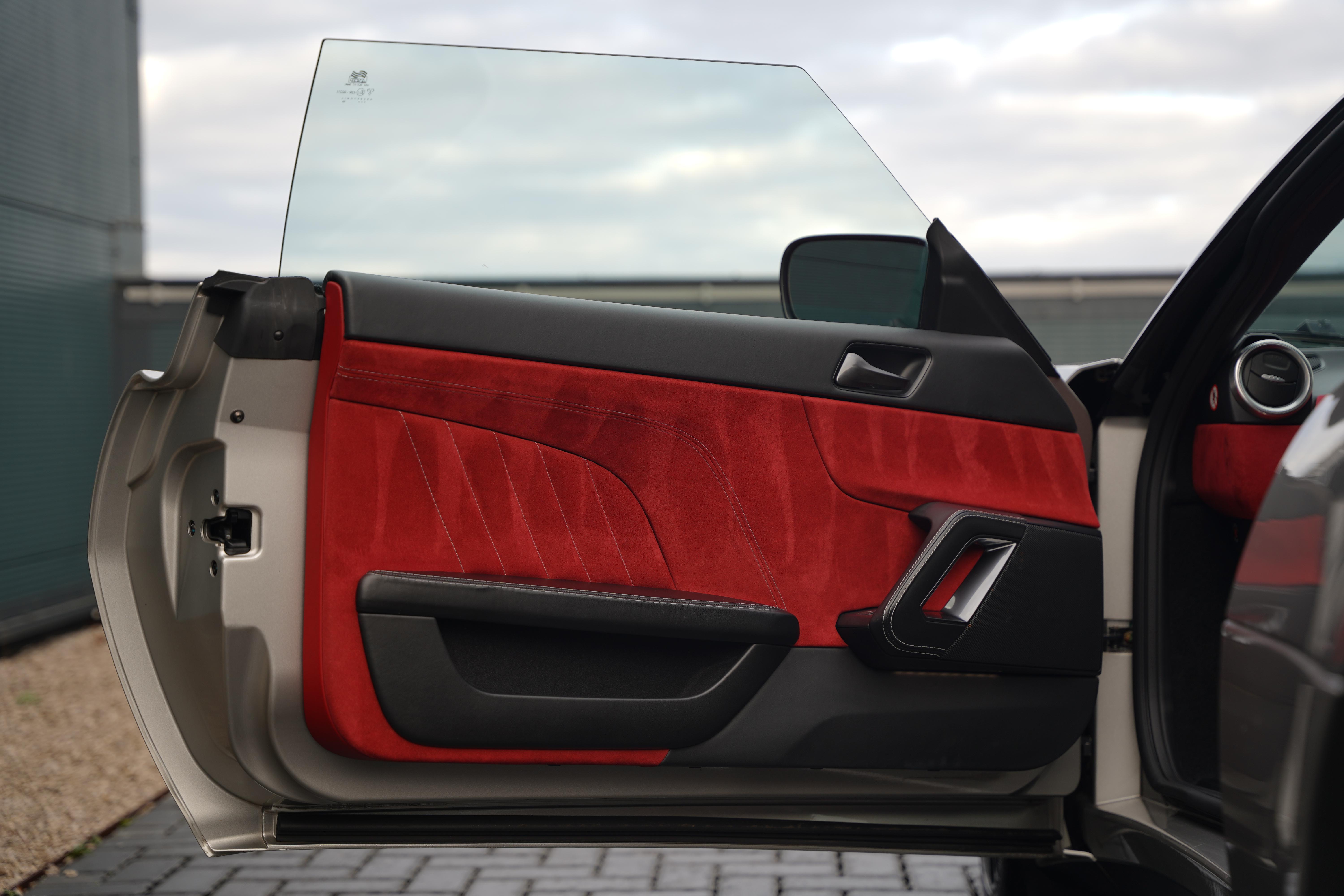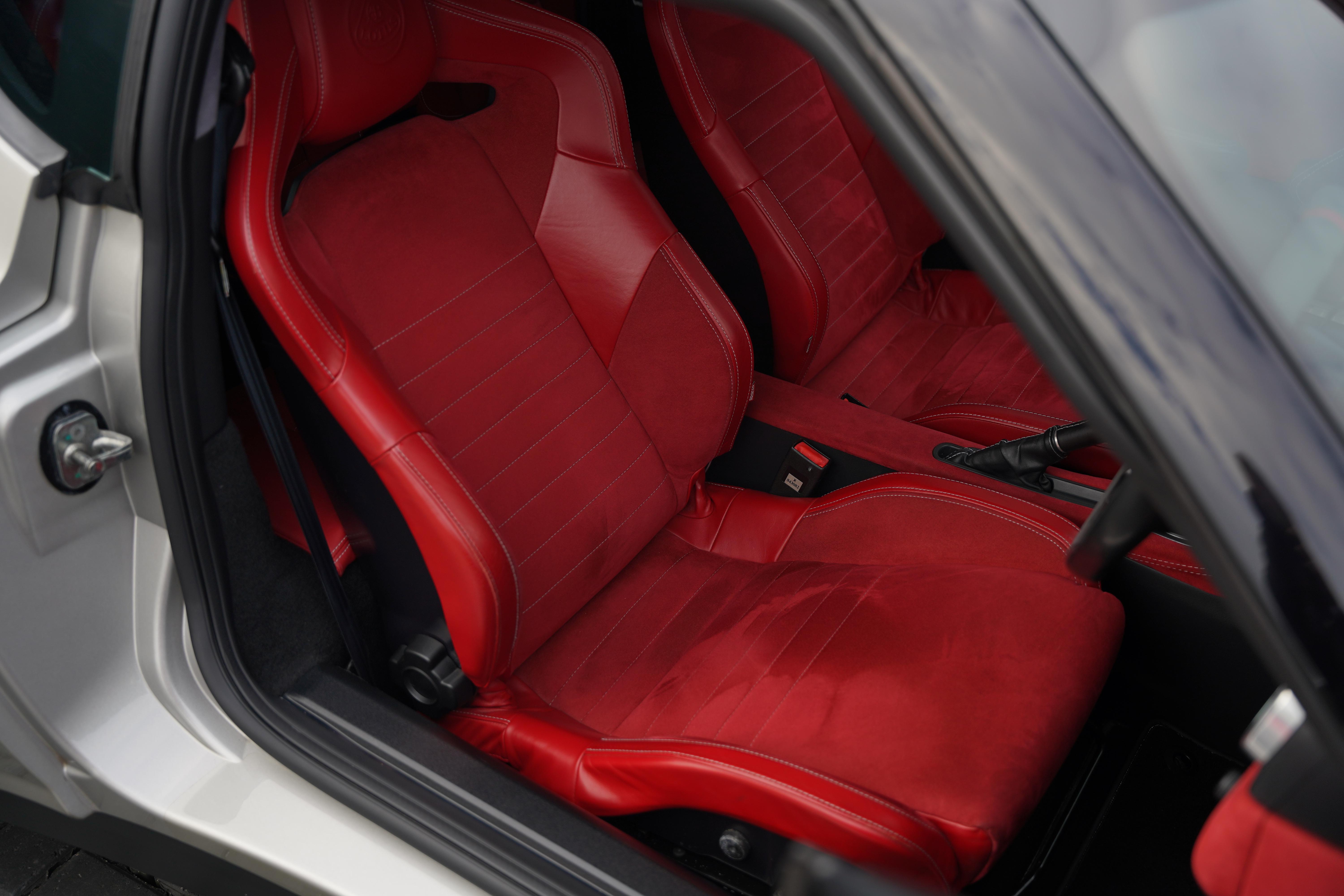 Finished in the striking colourway of Evora Silver (B180) the car features a gloss black roof and engine cover, with complimenting satin black wheels. Red brake calipers provide a subtle exterior contrast. The interior is finished in red leather and alcantara combination. Standard equipment includes air-conditioning, heated seats, switchable exhaust valve control, cruise control and an Alpine touchscreen stereo with built-in navigation and reversing camera, as well as rear parking sensors.