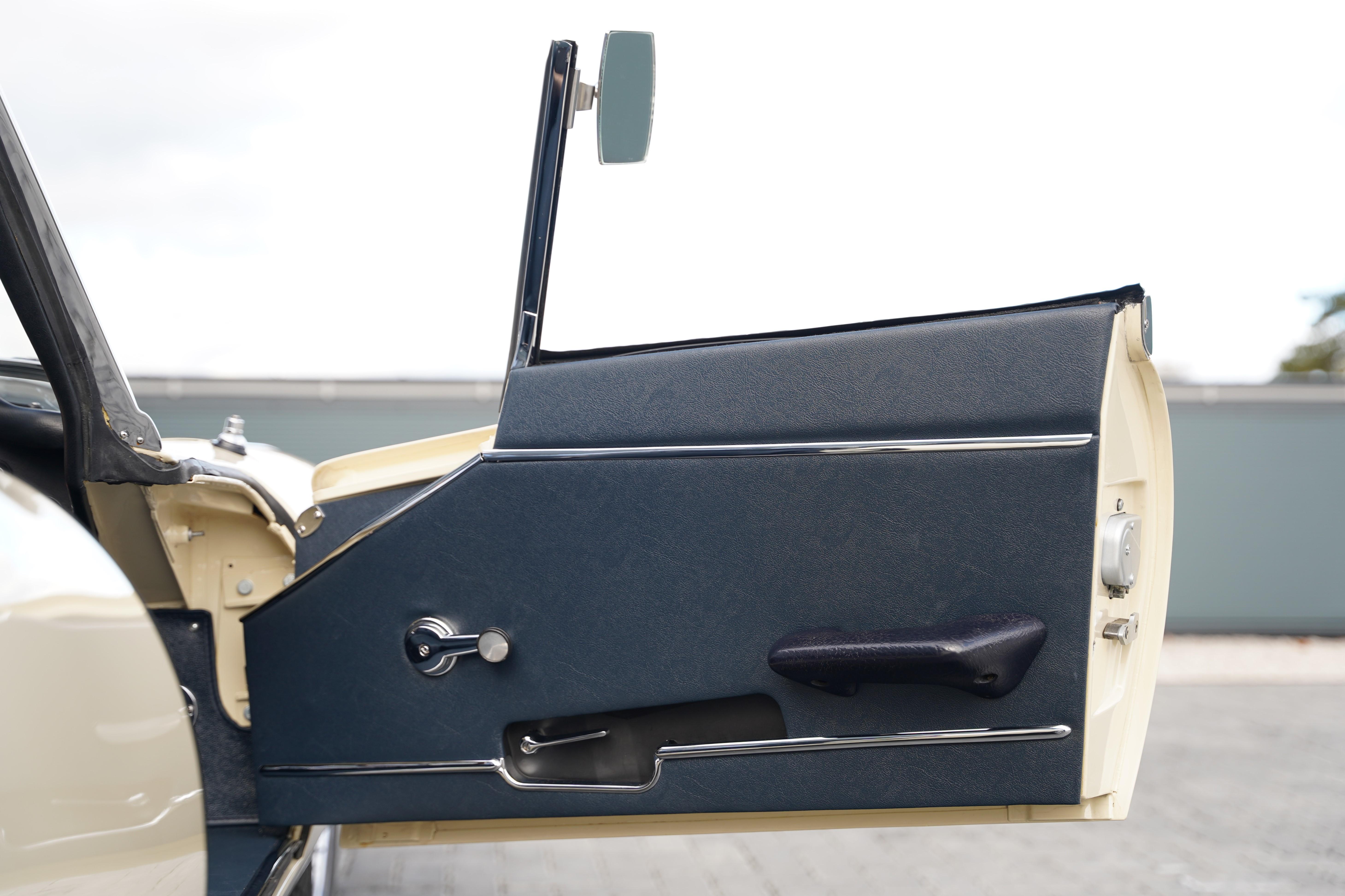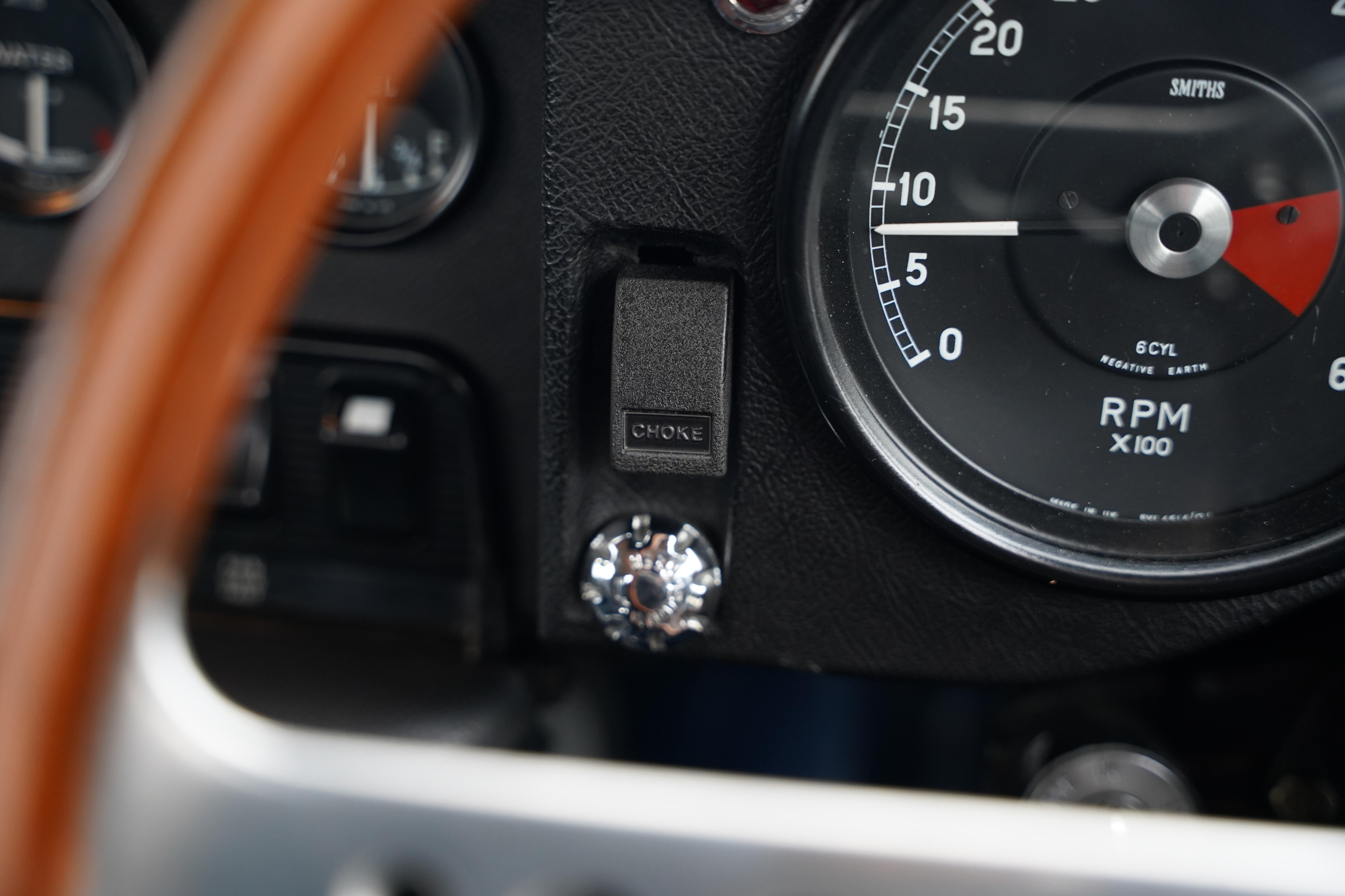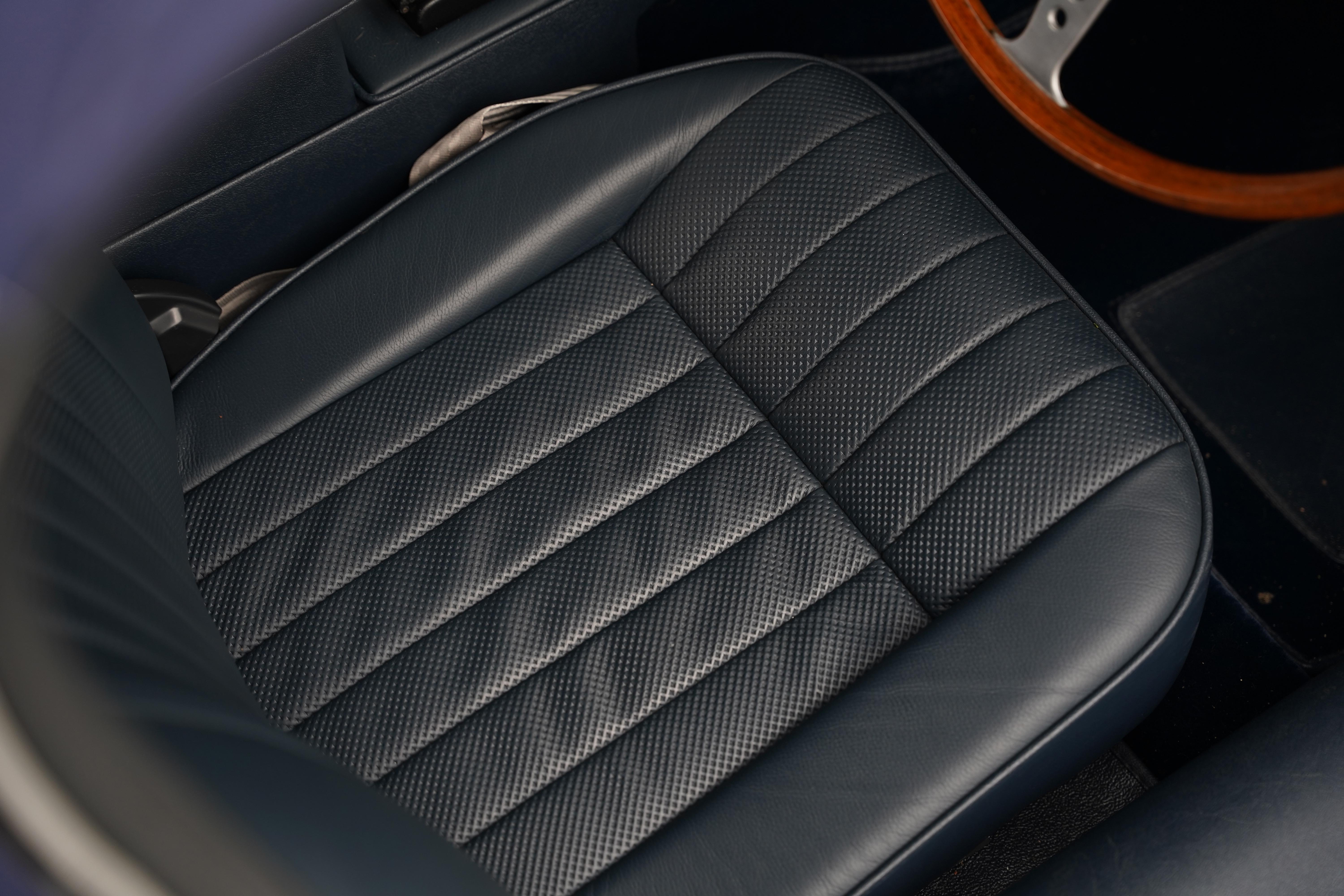 The Heritage certificate reveals that this car rolled out of the factory on August 13th 1969, destined for Henlys of Manchester and was soon acquired by Mr. J L Samuels. Finished in its factory specified colourway of Jaguar Cream with a Navy Blue interior, the car is a full matching numbers example, retaining its original engine, gearbox and body.
