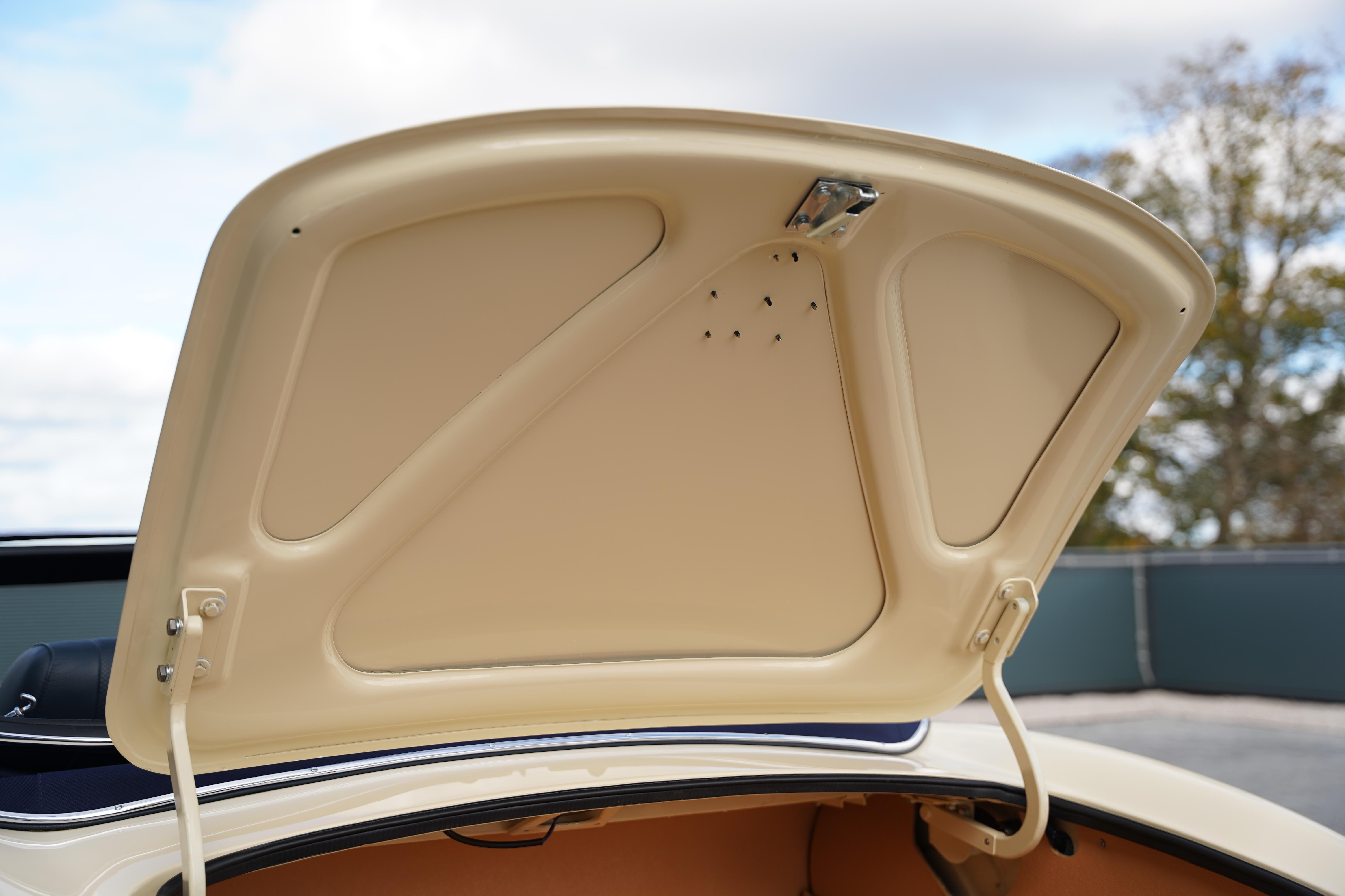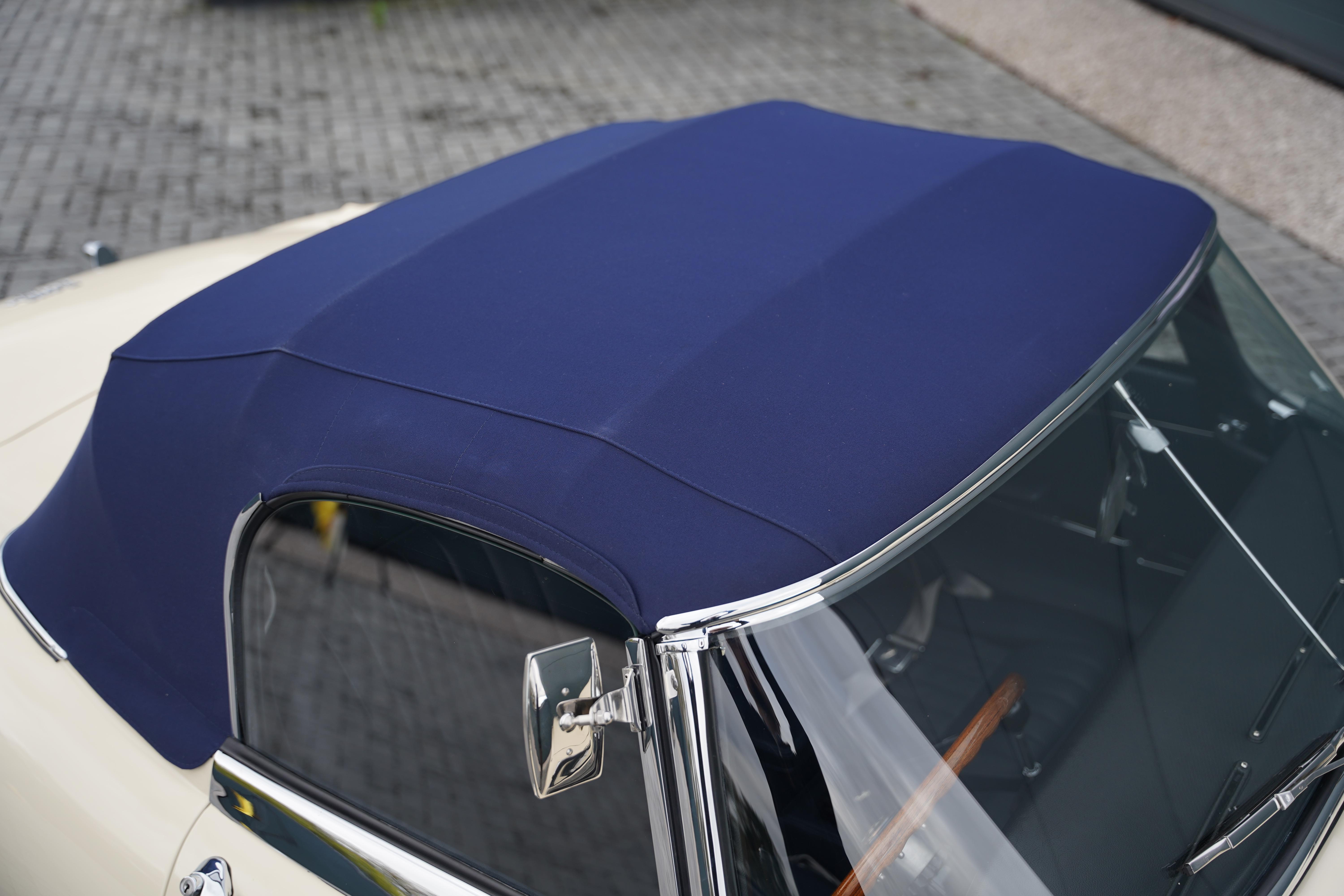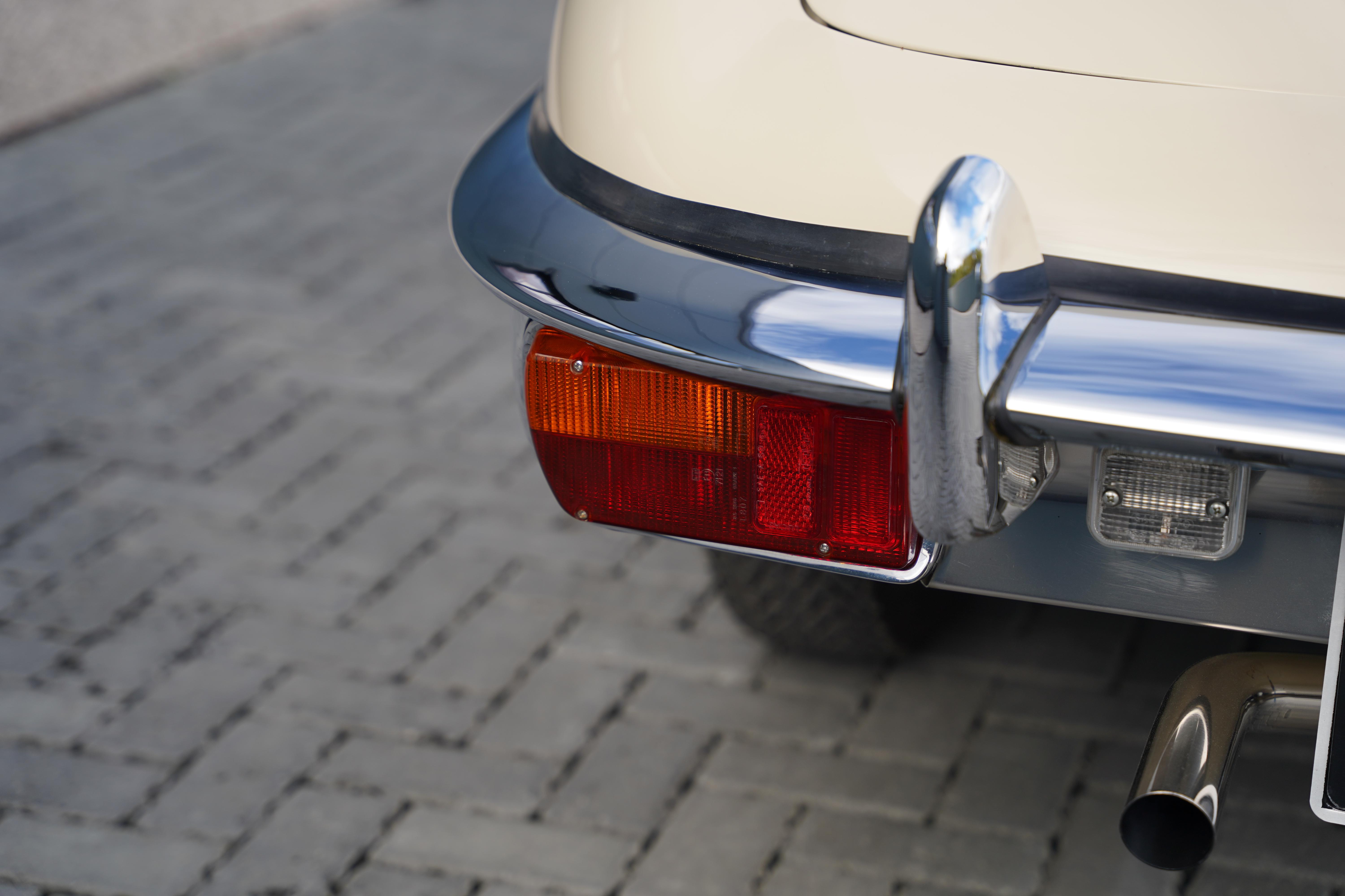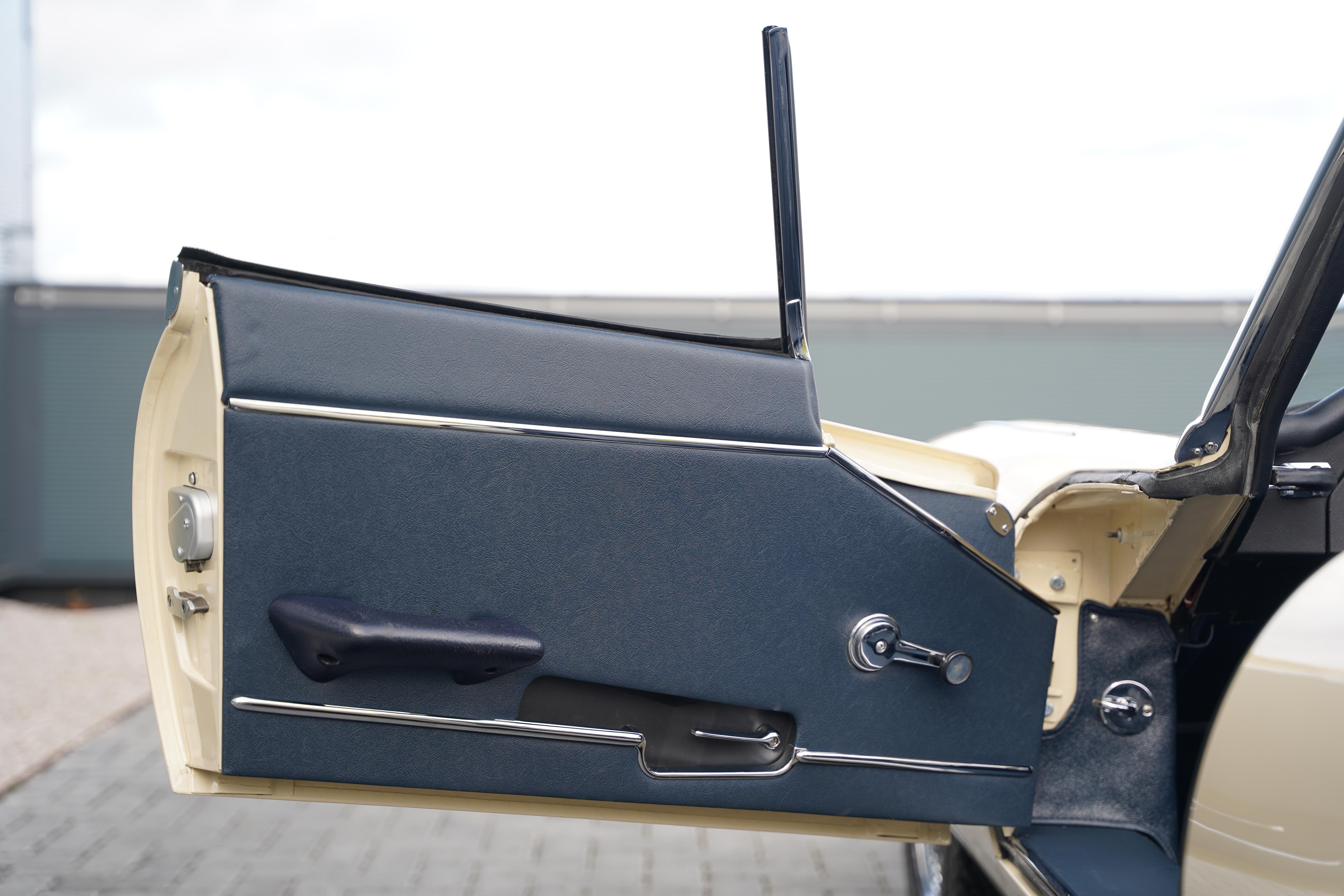 The Heritage certificate reveals that this car rolled out of the factory on August 13th 1969, destined for Henlys of Manchester and was soon acquired by Mr. J L Samuels. Finished in its factory specified colourway of Jaguar Cream with a Navy Blue interior, the car is a full matching numbers example, retaining its original engine, gearbox and body.