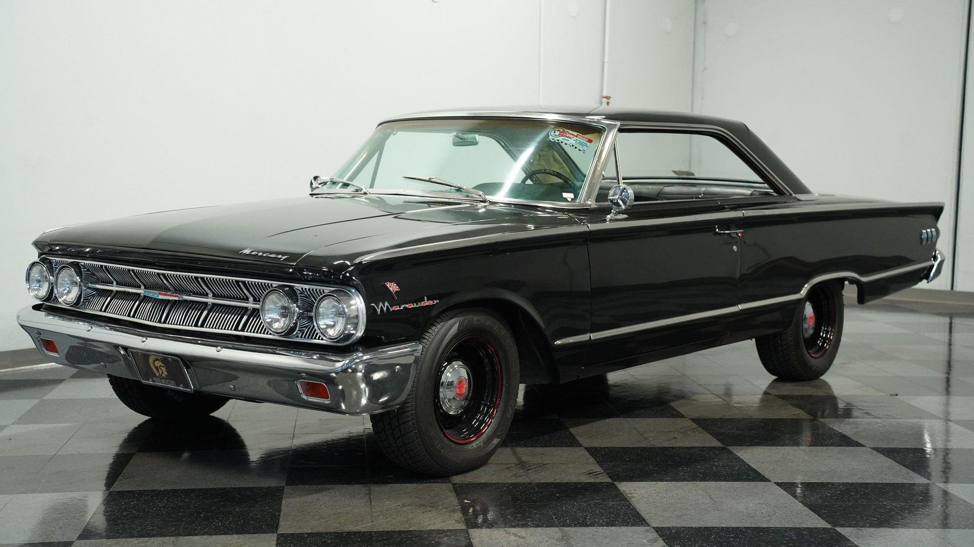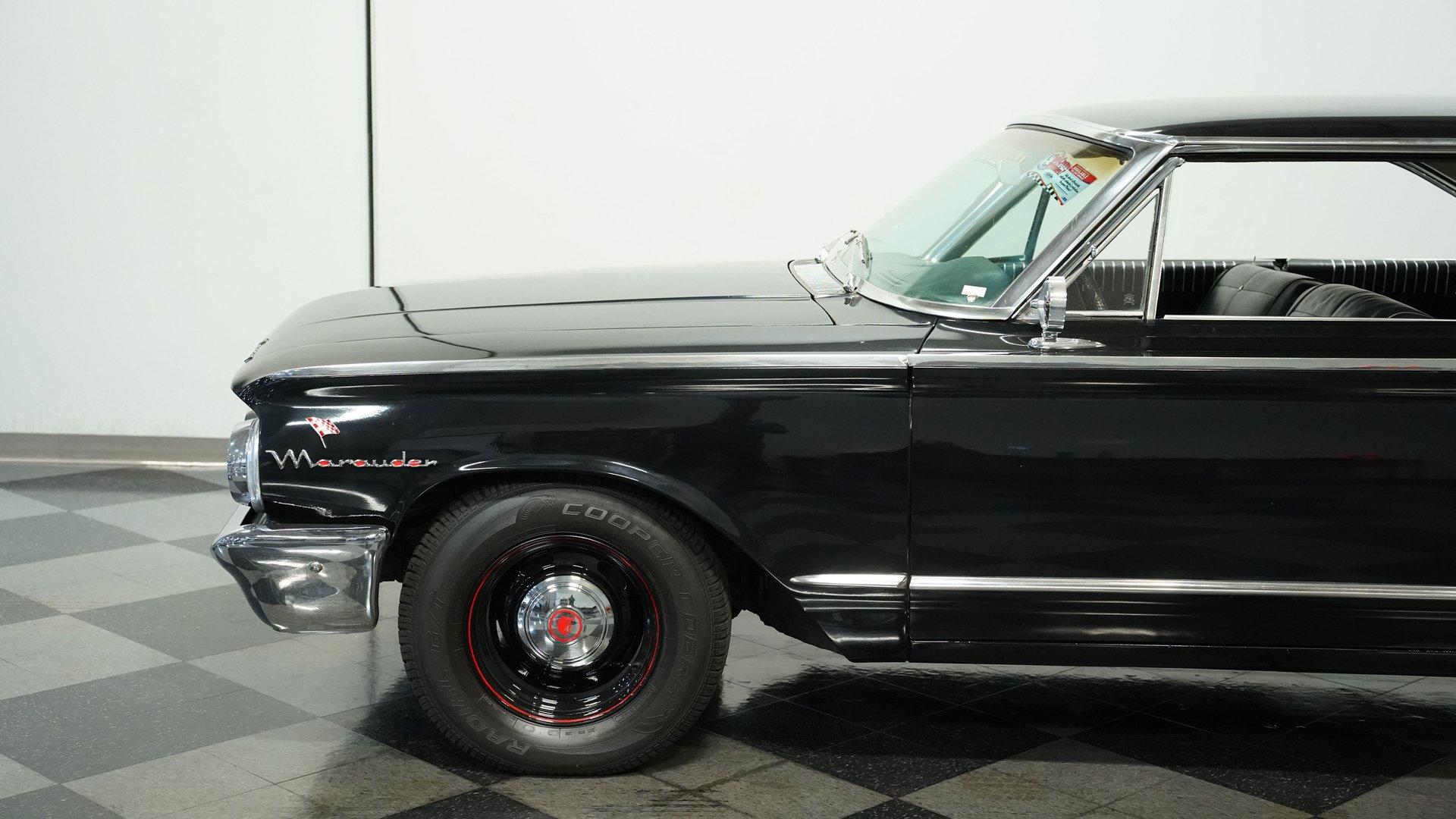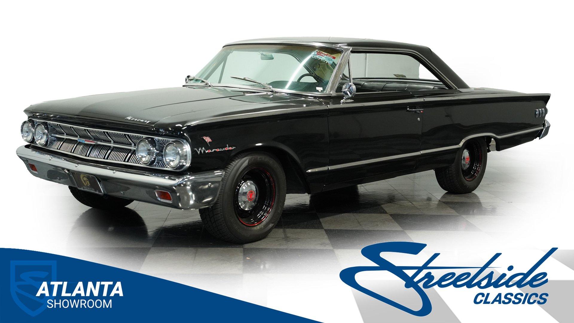 Mid-year introductions were uncommon in 1963, making this first-year Mercury Marauder a true limited production vehicle. The Presidential Black exterior creates a formal yet aggressive appearance, complemented by the refined brightwork and distinctive trim. Clean body lines flow from front to back, while dual exhaust outlets add performance appeal. The 15-inch wheels paired with 235/70R15 tires establish the perfect street presence. The all-black vinyl interior follows the exterior's dark theme. Split-bench seats offer classic comfort, while the floor-mounted shifter gives the driver full control. Power steering adds modern handling capability. The original-style door panels and taut headliner maintain factory correctness throughout the cabin. A 390 V8 engine pairs with a top loader 4-speed manual transmission for superior acceleration. The Edelbrock intake manifold and Holley 4-barrel carburetor enhance performance, while an aluminum radiator maintains ideal operating temperatures. The Flowmaster dual exhaust amplifies the V8's output. A Ford 9-inch rear end works with coil spring front and leaf spring rear suspension for optimal road manners. HIGHLIGHTS: 390 V8 Engine Top Loader 4-Speed Manual Transmission Holley 4-Barrel Carburetor Edelbrock Intake Manifold Aluminum Radiator Flowmaster Dual Exhaust Ford 9-inch Rear End Coil Spring Front Suspension Leaf Spring Rear Suspension Drum Brakes Presidential Black Paint Chrome Trim Dual Exhaust Outlets 15-inch Wheels with 235/70R15 Tires Black Interior with Split-Bench Seats Floor-Mounted Shifter Power Steering This 1963 Mercury Marauder offers everything collectors want - limited production status, big block 390 V8 power, manual transmission control, and a sleek black-on-black color scheme. One of the few first-year Marauders produced during the mid-year launch. Call today!