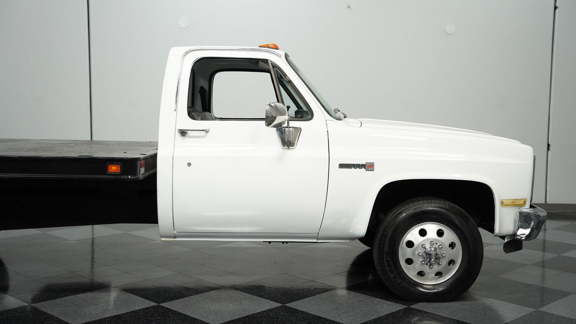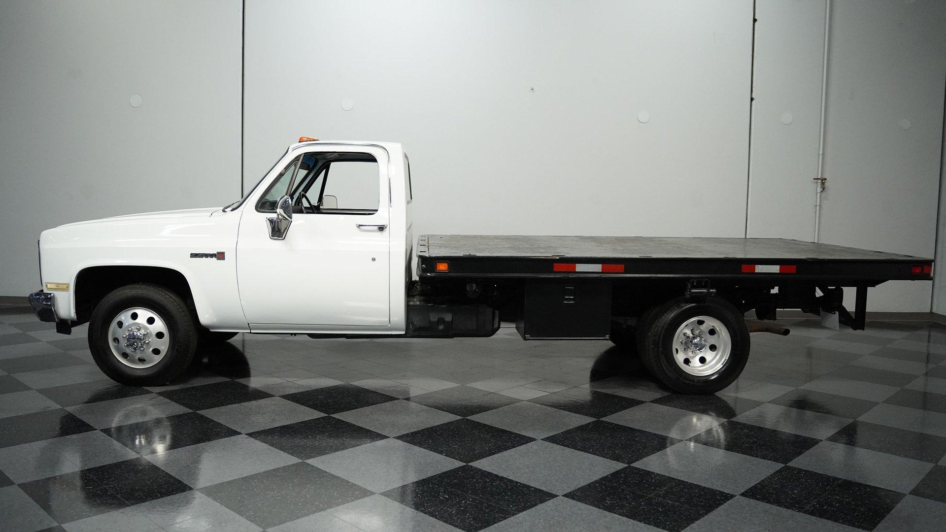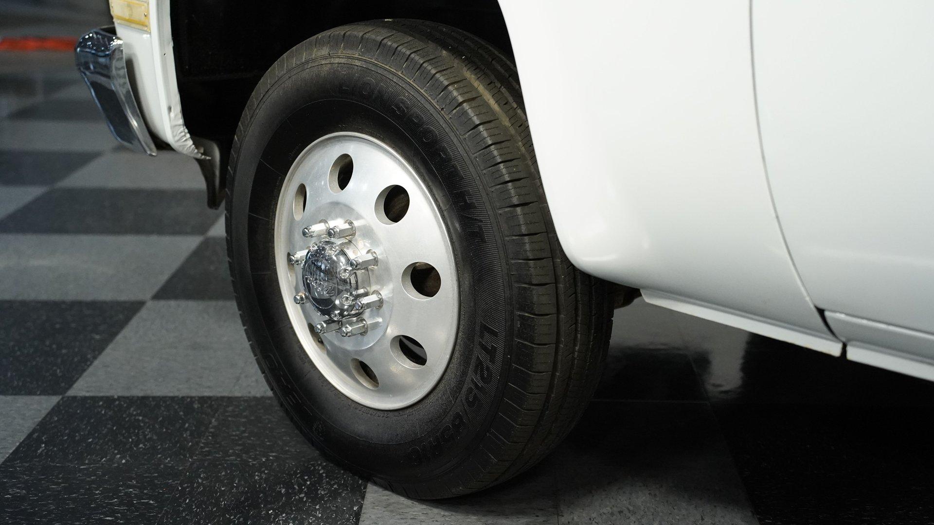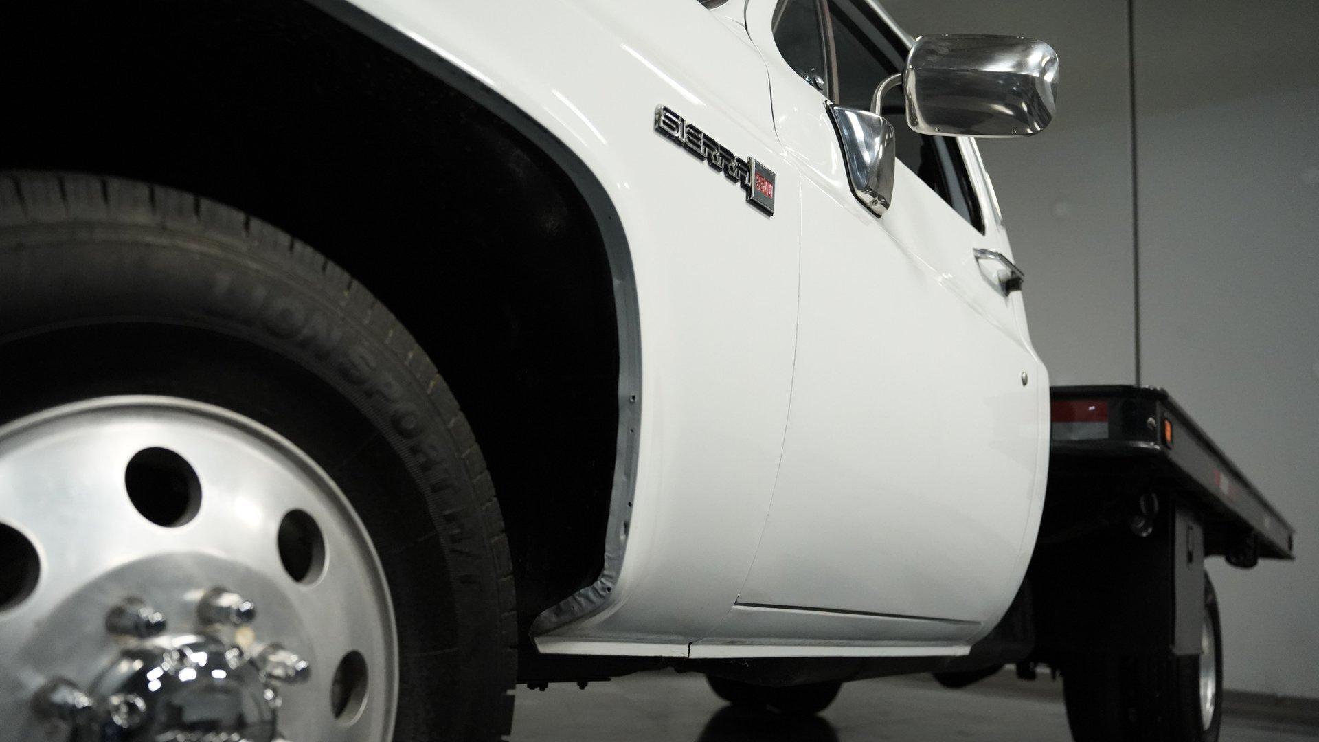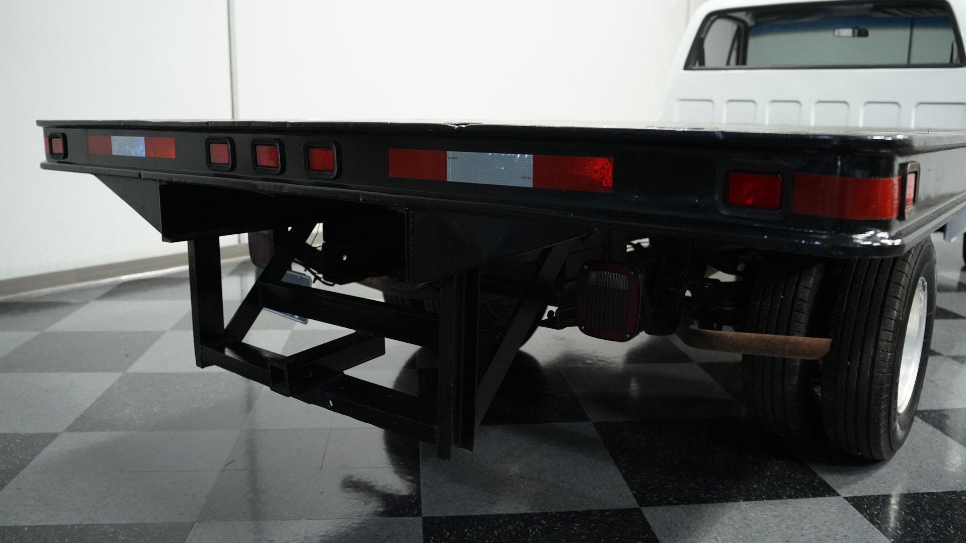 Engineered for serious work capacity, this 1985 GMC 3500 Flatbed Dually stands ready in clean white paint that accentuates its muscular stance. This commercial hauler has been repainted white, giving it a classic, utilitarian appearance. The flatbed configuration maximizes cargo space while the dual rear wheels provide superior load stability. Chrome and brightwork remain in excellent condition throughout, complementing the no-nonsense exterior aesthetics. The 16-inch wheels maintain the truck's heavy-duty character, wrapped in 215/85R16 tires that support its substantial hauling capabilities. Inside the cabin, the charcoal vinyl interior offers straightforward functionality with a column-shifted layout. The bench seat provides ample space for occupants while maintaining easy access to all controls. Door panels display good condition throughout, matched by clear, functional gauges across the dash. The steering wheel shows minimal signs of use consistent with its age. This truck prioritizes utility with its stripped-down approach - no radio distractions, just the essential controls for the job at hand. Power steering adds crucial maneuverability to this substantial work vehicle. Mechanical prowess comes from the factory-optioned 5.7 Liter V8 engine, delivering reliable power through a TH400 3-speed automatic transmission. The powertrain benefits from an Edelbrock single 4-barrel carburetor for improved performance and throttle response. Front power disc brakes provide solid stopping ability, working in conjunction with power brakes for confident operation under load. The suspension utilizes coil springs with shocks up front and heavy-duty leaf springs with shocks in the rear, perfectly tuned for maintaining stability when carrying significant payloads. HIGHLIGHTS: 5.7 Liter V8 Engine 3 Speed Automatic Transmission (TH400) 4 Barrel Edelbrock Carburetor Front Power Disc Brakes Dual to Single Exhaust Aftermarket Muffler Stock Style Manifold 14 Bolt Dually Rear End Coil Spring Front Suspension with Shocks Leaf Spring Rear Suspension with Shocks White Paint 16" Wheels in 215/85R16 Tires Dual Rear Wheels Flatbed Configuration Good Condition Chrome & Brightwork Charcoal Interior with Bench Seat Column Shift Power Steering 5-Digit Odometer Good Condition Door Panels Clear, Functional Gauges Built for real-world capability, this 1985 GMC 3500 Flatbed combines the legendary reliability of its 5.7 Liter V8 with the practical versatility of a flatbed design. The dually configuration amplifies hauling potential while the white exterior presents a clean, professional appearance. Call today!