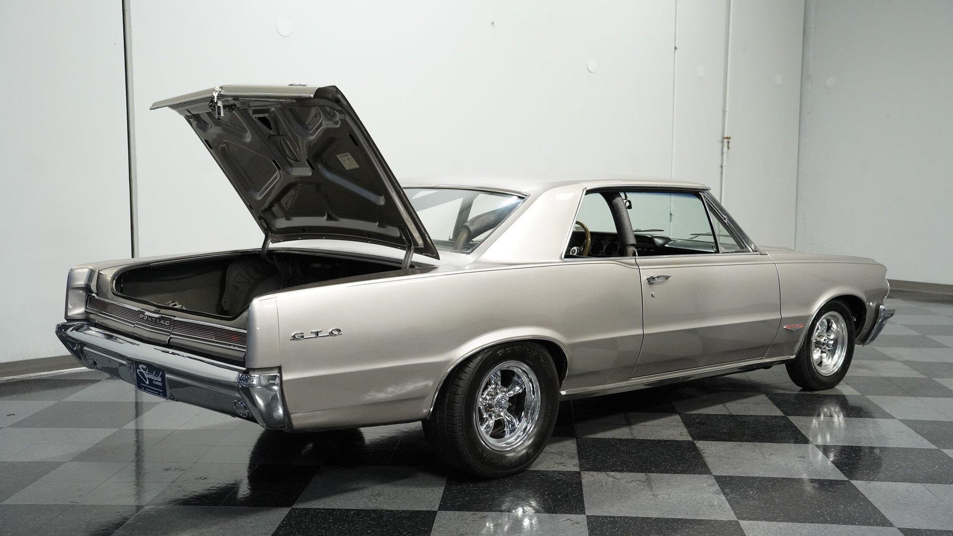 The inaugural year of the legendary Pontiac GTO, this 1964 model is a high-performance masterpiece finished in Silvermist Gray. A frame-off rotisserie restoration has transformed this muscle car icon into a street-strip monster. The low, aggressive profile is complemented by 15" American Racing wheels with extended lugs wrapped in 165/80R15 front and massive 275/60R15 rear tires that give this GTO its wide-shouldered stance. The stunning exterior showcases carefully restored chrome that adds brilliant contrast against the gray finish, while the clean lines of the hardtop body style give it a classic muscle car silhouette. The black interior is both functional and fast-looking with a split-bench seat upholstered in vinyl that maintains period correctness. A full rollcage signals this GTO's serious performance intentions while maintaining a streetable appearance. The center console houses the shifter for the manual valve body transmission, putting full control at your fingertips. Dakota Digital gauges provide accurate readings of this vehicle's vital statistics, and the entire car features a Painless wiring harness for reliability. Power steering enhances the driving experience while maintaining the raw, direct feel expected from a muscle car. The 462 Stroker V8 engine is the crown jewel of this GTO, with a stated dyno pull of 667HP and 620TQ. Built around a 421 block with Kauffman 87 CC 310 CFM heads and a Crowler roller cam with .582 lift and 7500 redline, this engine is designed for serious performance while remaining pump gas friendly thanks to its 10.1 compression. The power flows through a TH400 transmission with R manual valve body and 4K stall converter. A Moser 12-bolt rear end with 4.10 gears transfers that massive power to the pavement, while four-wheel disc brakes provide excellent stopping power. HIGHLIGHTS: 462 Stroker V8 Engine (667HP/620TQ) 421 Block TH400 Transmission with R Manual Valve Body 4K Stall Converter Kauffman 87 CC 310 CFM Heads Crowler Roller Cam (.582 Lift, 7500 Redline) Kauffman Intake Holley Carburetor Ross Pistons Eagle Forged Crank H Rods with 10.1 Compression Moser 12 Bolt Rear End with 4.10 Gears Four-Wheel Disc Brakes Dual Exhaust with Electric Cutouts Dynomax Mufflers 4 Link Rear Suspension with Shocks, Coil Spring, Sway Bar Silvermist Gray Paint 15" American Racing Wheels with Extended Lugs 165/80R15 Front, 275/60R15 Rear Tires Black Interior with Split-Bench Seat Roll Cage Center Console Dakota Digital Gauges Painless Wiring Harness Power Steering PHS Documentation First-year GTOs are already special, but this 1964 Pontiac GTO takes that legend to another level with its monster 667HP engine, track-ready chassis mods, and street-legal demeanor. The perfect fusion of vintage muscle car style with modern performance upgrades makes this GTO exceptional. Call today!