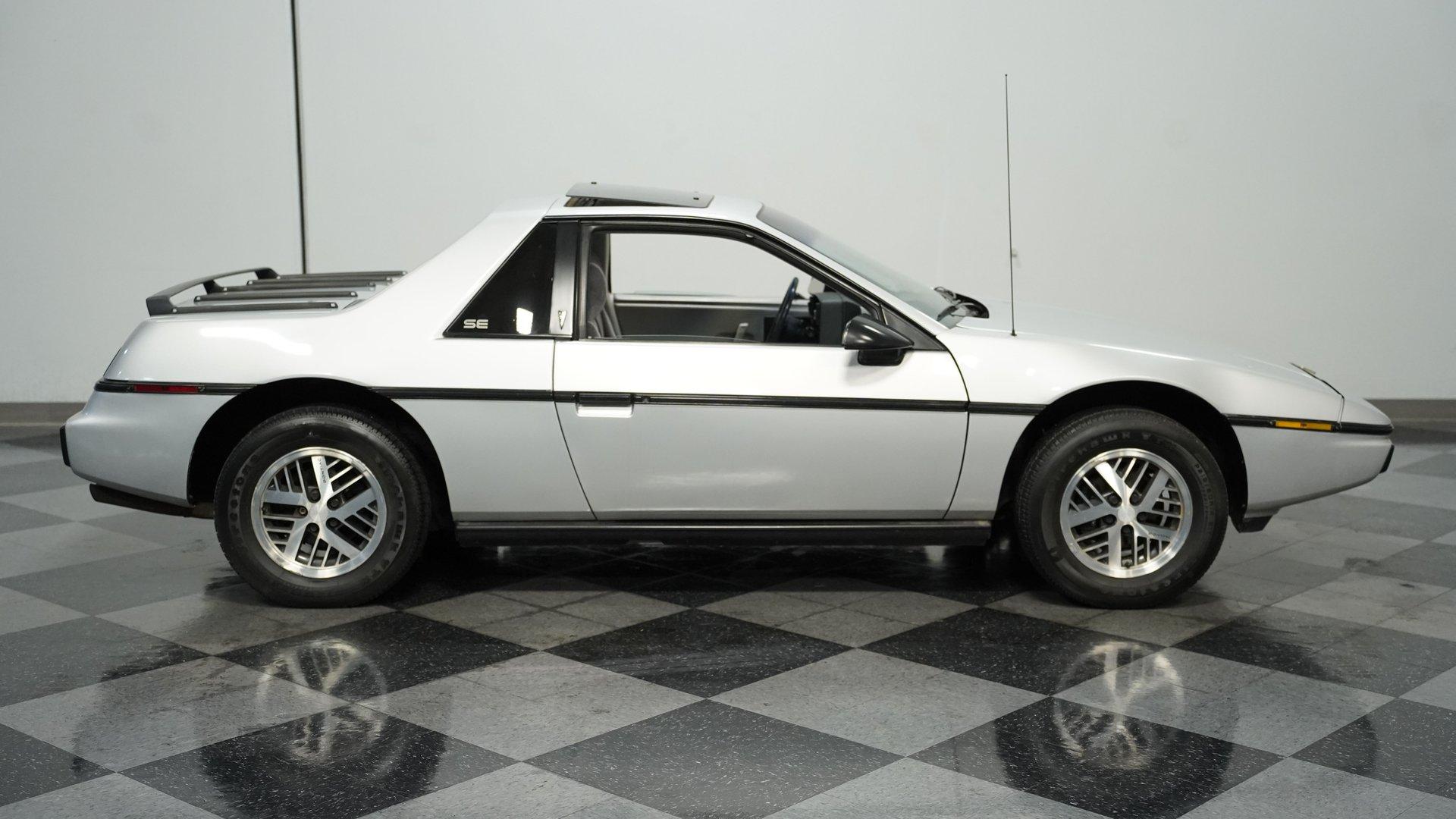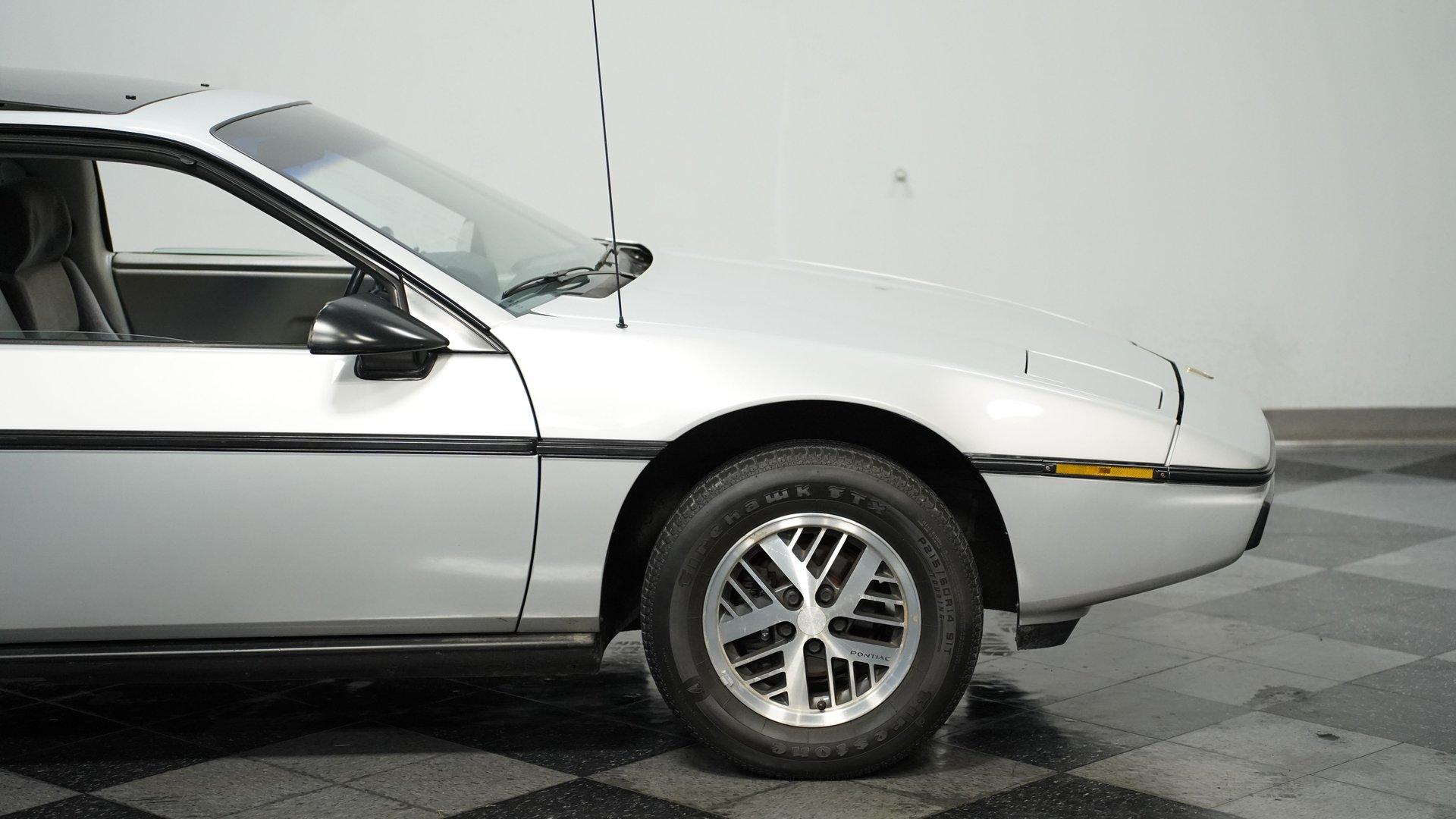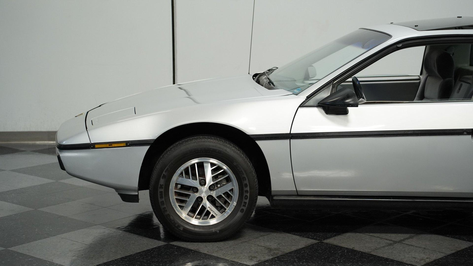 Mid-engine sports car engineering made its mark in Pontiac's lineup with this 1985 Fiero SE showing 26,011 actual miles on the odometer. Silver paint covers the sleek body panels from nose to tail. Dual exhaust outlets finish the rear design while the sunroof sits positioned in the roof. The 14-inch wheels mount 215/60R14 tires that contact the pavement. Gray cloth interior fills the cabin with bucket seats flanking the center console. The tilt wheel adjusts for different driving positions while power windows and power locks handle convenience duties. Air conditioning keeps things comfortable during warm weather drives. AM/FM cassette entertainment provides the soundtrack while cruise control manages highway speeds. Heat and defrost systems handle climate control year-round. Power comes from a 2.8-liter V6 engine connected to a 3-speed automatic transmission. Fuel injection feeds the V6 while four-wheel disc brakes with power assist handle stopping duties. Independent front suspension works with independent rear suspension featuring coil springs and shocks. The transaxle configuration places the transmission behind the engine in true mid-engine fashion. HIGHLIGHTS: 2.8 Liter V6 Engine 3 Speed Automatic Transmission Fuel Injection Four Wheel Disc Brakes Power Brakes Independent Front Suspension Independent Rear Suspension w/ Coil Spring and Shock Transaxle Dual Exhaust Silver Paint 14" Wheels in 215/60R14 Tires Sunroof Gray Interior with Bucket Seats Center Console Console Shifter Air Conditioning Power Windows Power Locks Tilt Wheel Cruise Control AM/FM Cassette Player Sports car performance and convenience features combine in the 1985 Pontiac Fiero SE with V6 power, 3-speed automatic transmission, and just 26,011 actual miles on the odometer. Low mileage, sunroof, and complete comfort options make this Fiero SE ready for new ownership. Call today!