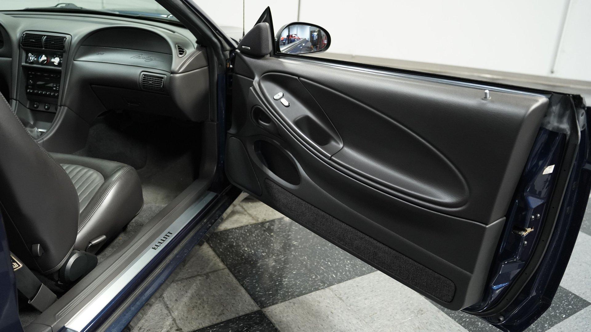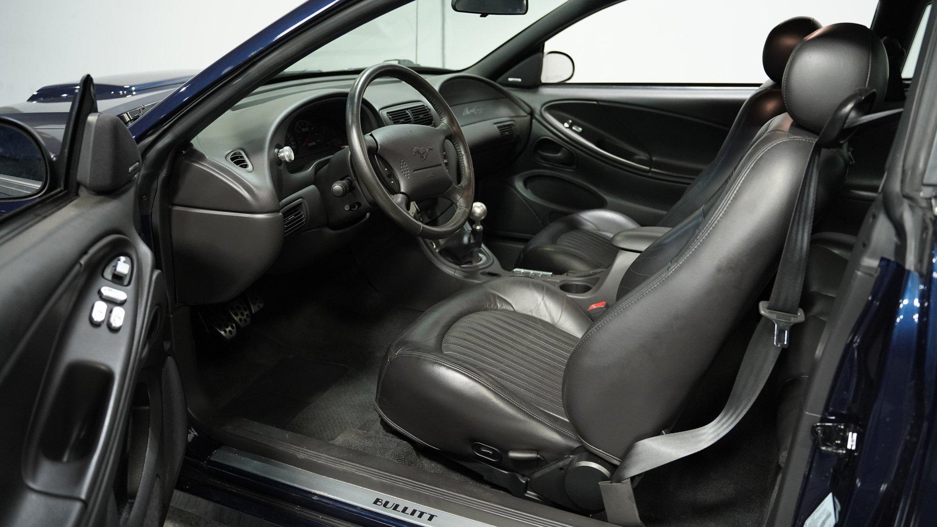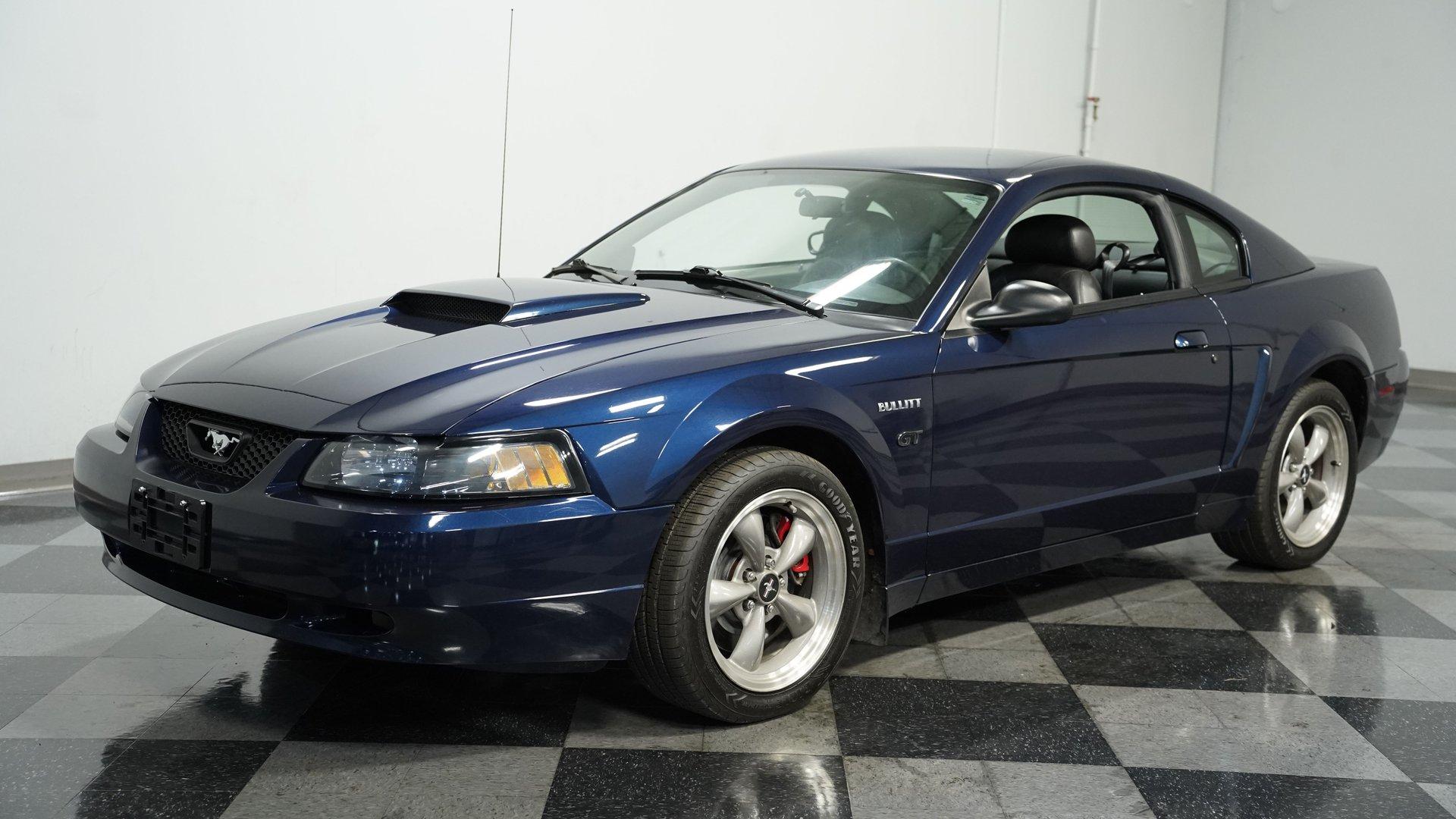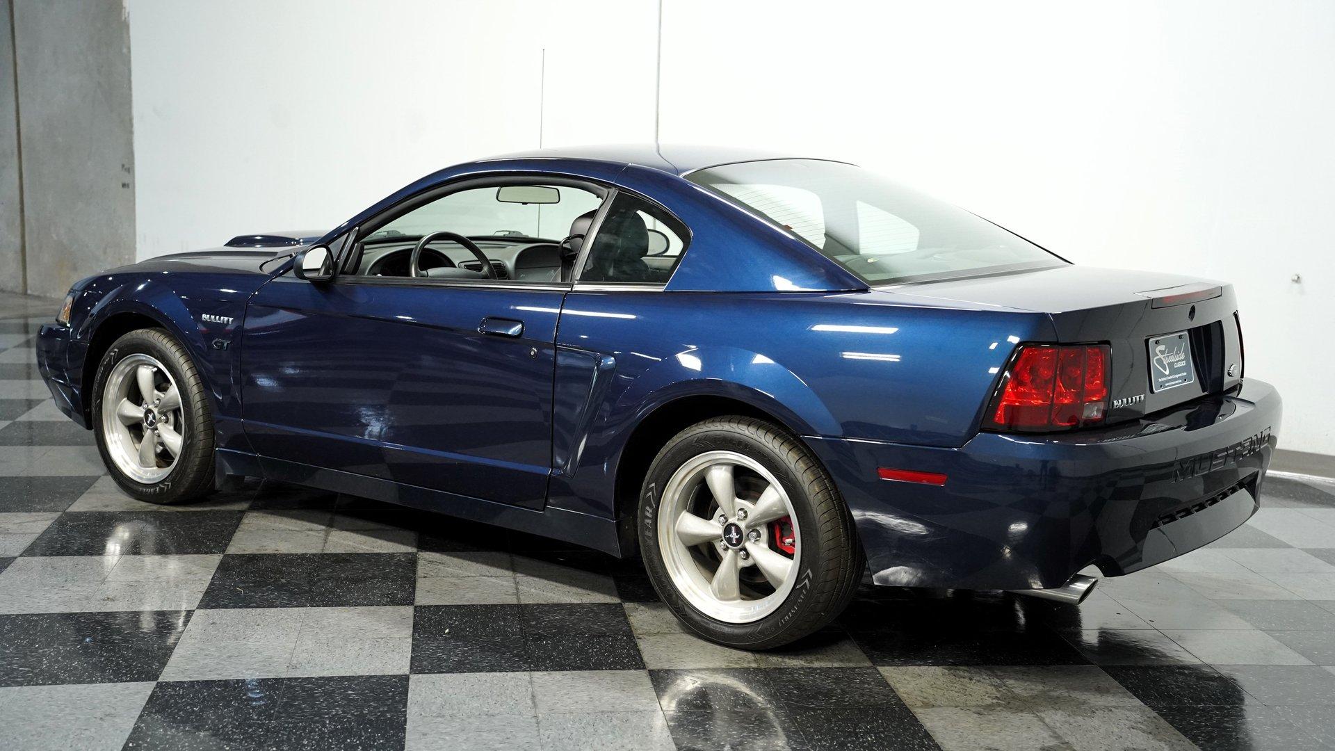 Among only 5,582 Bullitt Mustangs produced for 2001, this Ford Mustang Bullitt GT finished in True Blue metallic was the rarest of the three factory colors with just 13 percent of production getting this distinctive hue. Factory 17" wheels wrapped in 245/45ZR17 tires provide the proper foundation, while dual exhaust outlets sit beneath the rear bumper. The body carries factory subframe connectors as standard Bullitt equipment, and the clean bodywork flows from nose to tail without unnecessary trim pieces. True Blue metallic paint covers every surface with depth and clarity. Dark charcoal leather buckets with console shifter create the driver-focused environment these cars were known for. Power windows, power locks, and power mirrors handle convenience duties while cruise control makes highway runs effortless. Air conditioning keeps things comfortable, and the AM/FM CD changer provides the soundtrack. Tilt wheel adjusts to your preferred driving position, while power seats dial in the perfect spot. Leather seating surfaces show well throughout the cabin, and the dark charcoal color scheme maintains that serious Bullitt attitude. The 4.6-liter V8 with electronic fuel injection connects to a 5-speed manual transmission for complete control. Four-wheel disc brakes with anti-lock system handle stopping with precision. Power steering keeps things manageable in tight quarters, while the 8.8 rear axle transfers power efficiently. Independent front suspension with coil springs, shocks, and sway bar teams with the rear coil springs, shocks, and trailing arms to keep this Mustang planted. Dual exhaust system provides the proper sound, and the factory subframe connectors add structural rigidity that was standard Bullitt equipment. HIGHLIGHTS: 4.6 Liter V8 Engine Electronic Fuel Injection 5 Speed Manual Transmission Four-Wheel Disc Brakes Anti-Lock Brake System Power Brakes Power Steering 8.8 Rear Axle Independent Front Suspension with Coil Springs, Shocks and Sway Bar Rear Coil Springs/Shocks/Trailing Arms Dual Exhaust Factory Subframe Connectors True Blue Metallic Paint 17" Wheels in 245/45ZR17 Tires Dark Charcoal Leather Interior with Bucket Seats Console Shifter Power Windows Power Locks, Mirrors, Seats Air Conditioning Cruise Control Tilt Wheel AM/FM CD Changer Anti-Theft System Driver and Passenger Airbags Original Window Sticker Owner's Manual Two Car Covers This 2001 Ford Mustang Bullitt GT with just 16,439 actual miles, rare True Blue finish, and all the factory performance equipment these special Mustangs came with from the factory makes this one worth serious consideration. Call today!