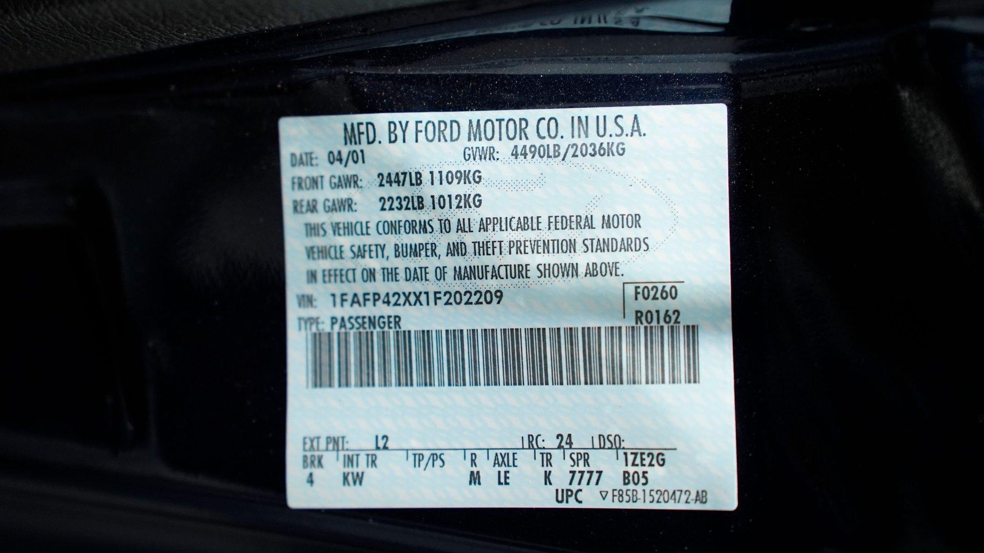 - VIN Code1FAFP42XX1F202209