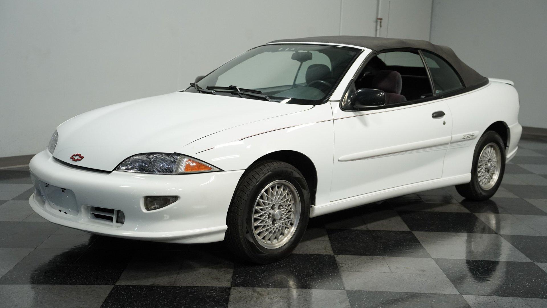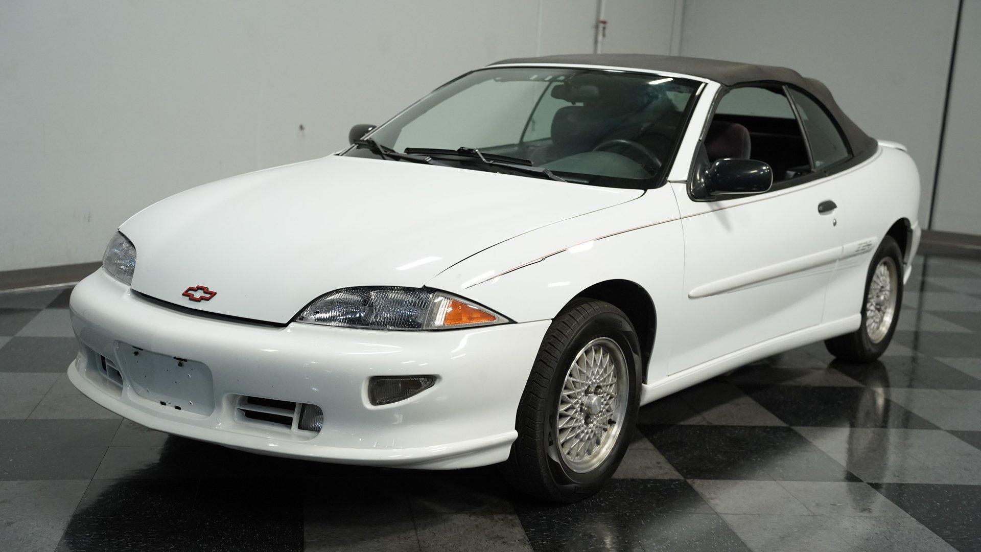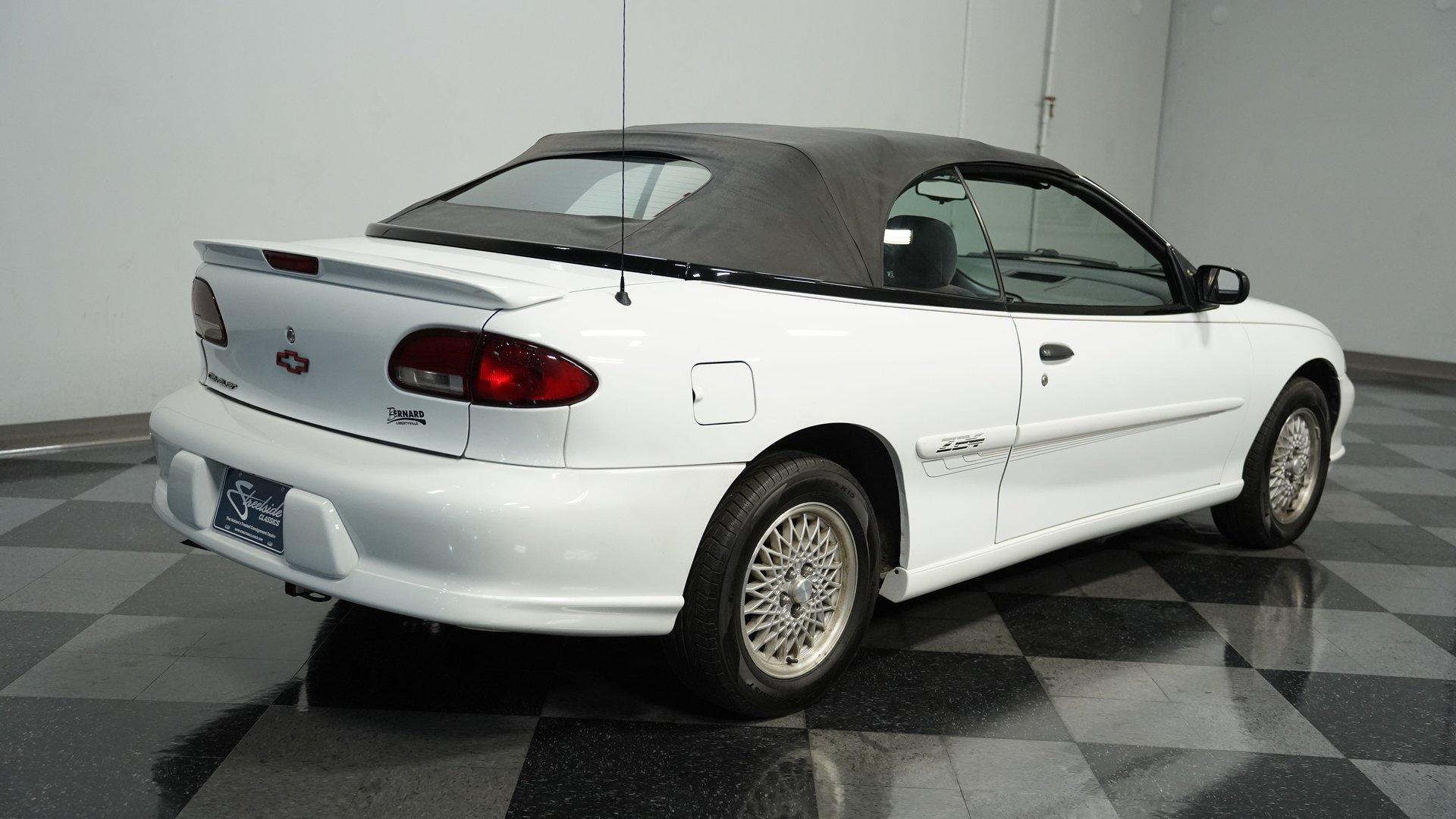 Fun open-air motoring comes alive in this 1999 Chevrolet Cavalier Z/24 Convertible. Showing just 49,017 original miles, this sporty drop-top wears its Bright White finish with athletic flair. Black Z24 appearance package decals adorn the sides, creating a two-tone effect that accentuates the body lines. The black canvas convertible top includes a glass rear window for improved visibility and durability. Factory 15-inch wheels wrapped in 195/65R15 tires provide a balanced stance, while the overall exterior presentation reflects significantly better than expected for the age and mileage. The Graphite Gray and Red cloth interior provides an excellent contrast to the white exterior. Bucket seats with a center console create a driver-focused layout that puts all controls within easy reach. The dashboard displays gauges with good clarity, while the door panels and center console remain in excellent condition. Modern amenities include power windows, power locks, power mirrors, cruise control, tilt wheel, and air conditioning for maximum comfort. The AM/FM stereo with single CD player provides the soundtrack for sunny day cruising with the top down. A 2.4L DOHC four-cylinder engine sits at the front of this convertible, delivering a balanced blend of performance and efficiency. The electronic fuel injection system ensures consistent power delivery through the 4-speed automatic transmission. The front-wheel-drive layout offers predictable handling, complemented by the independent strut-type suspension with sway bar up front and independent strut-type rear suspension. Power steering makes maneuvering effortless, while power disc brakes up front provide solid stopping ability. This mechanical package has proven reliable and accessible for servicing. HIGHLIGHTS: 2.4L DOHC 4-Cylinder Engine 4-Speed Automatic Transmission Electronic Fuel Injection Front-Wheel Drive Power Disc Front Brakes Independent Strut-Type Suspension with Sway Bar Independent Strut-Type Rear Suspension Bright White Paint Black Z24 Appearance Package Decals Black Canvas Convertible Top with Glass Rear Window Power Convertible Top 15" Factory Wheels in 195/65R15 Tires Graphite Gray & Red Interior with Bucket Seats and Console Power Windows, Locks, Mirrors Air Conditioning Cruise Control Tilt Wheel AM/FM Radio with CD Player Anti-Theft System Driver Airbag Owner's Manual 49,017 Original Miles Combining sporty Z/24 styling, convertible freedom, and economical operation, this 1999 Chevrolet Cavalier Z/24 Convertible offers an affordable entry into open-air driving. With low original miles and impressive overall condition, this American drop-top awaits your weekend adventures. Call today!