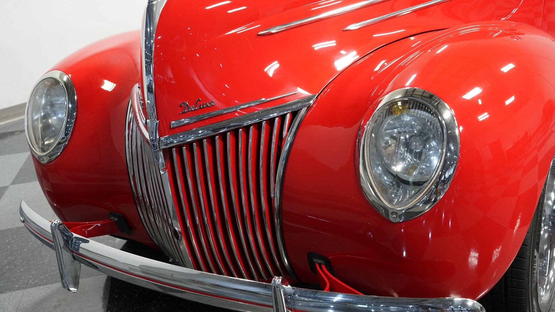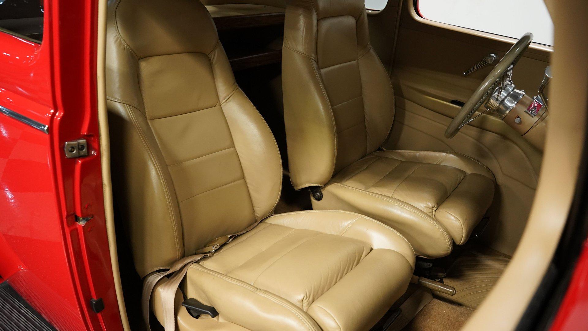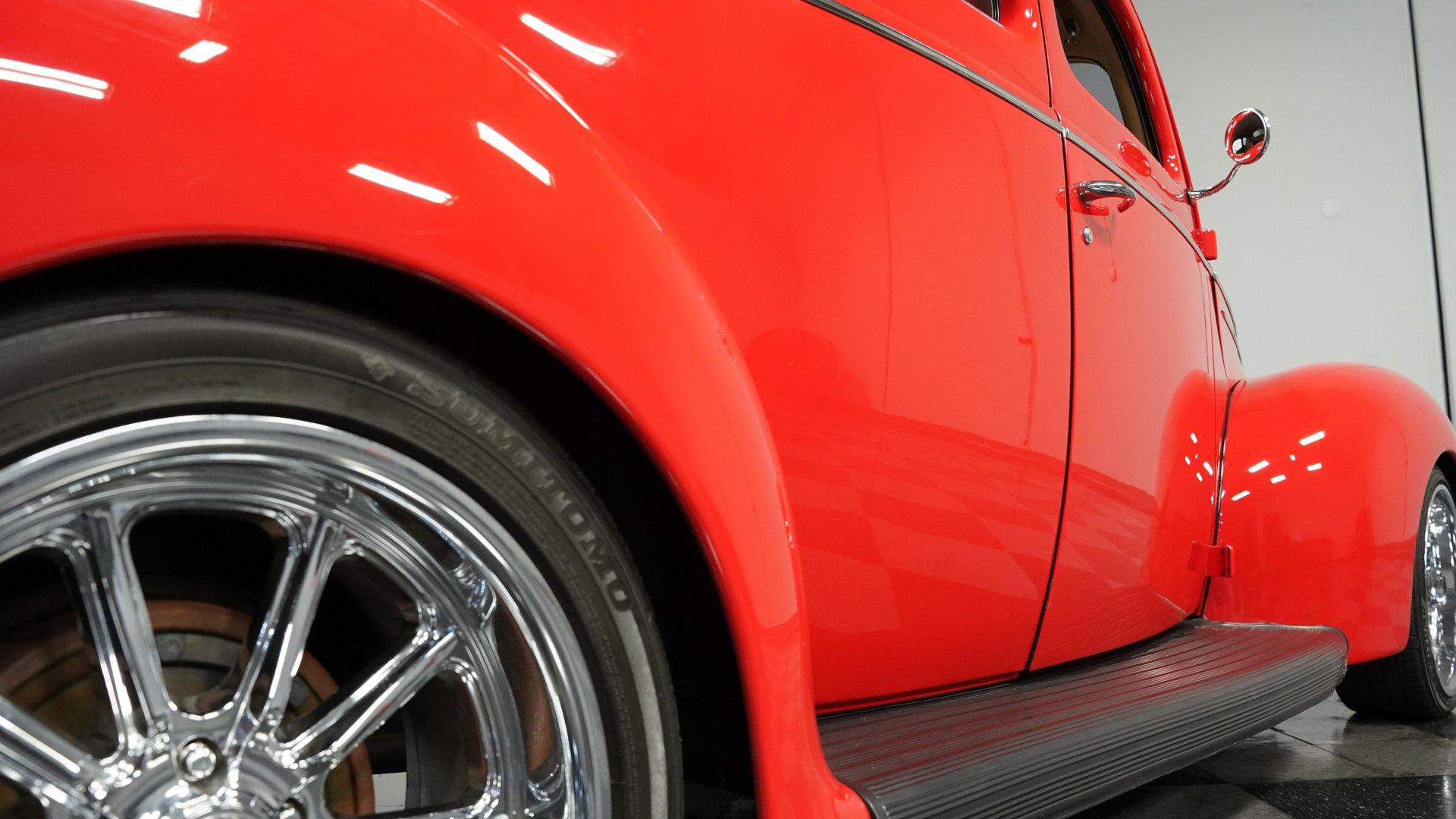 Driven a mere 4,589 miles since its build, this 1939 Ford Deluxe Coupe blends classic styling with modern enhancements. The main body maintains its original steel construction while fiberglass fenders and running boards add a contemporary touch to the iconic profile. Chrome accents highlight the distinctive lines – from the V8 grille to the rounded bumpers and full-length trim. The red finish with its recent ceramic coating looks fantastic from any angle. The 18" wheels with 215/40ZR18 front and 245/45ZR18 rear tires create a perfect stance, while details like clean lights behind classic teardrop bezels and the thinner dividing line for the two-piece windshield give this coupe its unique road appearance. The tan leather interior offers a luxurious environment with modern amenities. Power-adjustable bucket seats provide excellent support and comfort for extended drives. The custom-built interior features power windows, tinted glass, and a tilt wheel for improved ergonomics. Classic Instruments gauges offer clear readability while maintaining a period-appropriate look. The door panels are expertly crafted with clean lines that complement the overall design theme. Climate control comes from a newer Vintage Air system keeping passengers comfortable regardless of outside temperatures. Powering this restomod is a strong 383 Stroker V8 engine paired with a 700R4 four-speed automatic transmission with overdrive. Dual Edelbrock four-barrel carburetors mounted on an Edelbrock intake manifold provide excellent throttle response. The cooling system includes a Walker radiator for optimal temperature control. Handling comes from new power rack and pinion steering from Flaming River. The suspension system consists of tubular A-arms with coil springs and shocks up front with leaf springs and shocks in the rear, all working with the 8" rear axle and front disc brakes for solid handling and braking. HIGHLIGHTS: 383 Stroker V8 Engine 700R4 4-Speed Automatic Transmission with Overdrive Dual Edelbrock Four-Barrel Carburetors Edelbrock Intake Manifold Walker Radiator Flaming River Power Rack and Pinion Steering Front Disc Brakes Dual Exhaust with Aftermarket Mufflers Shorty Manifolds Tubular A-Arm Front Suspension with Coil Springs and Shocks Leaf Spring Rear Suspension with Shocks Red Paint with Ceramic Coating 18" Wheels 215/40ZR18 Front, 245/45ZR18 Rear Tires Fiberglass Fenders and Running Boards V-Butt Windshield Upgraded Headlights Chrome V8 Grille Full-Length Body Trim Tan Leather Bucket Seats with Power Adjustment Power Windows Air Conditioning (Vintage Air) Tilt Wheel Classic Instruments Gauges AM/FM Single CD Player Column Shifter 4,589 Miles Since Built A brilliant combination of vintage style and modern technology, this 1939 Ford Deluxe Restomod offers the iconic looks of a classic American coupe with updated performance components for an exceptional package. Ready for shows or long road trips. Call today!