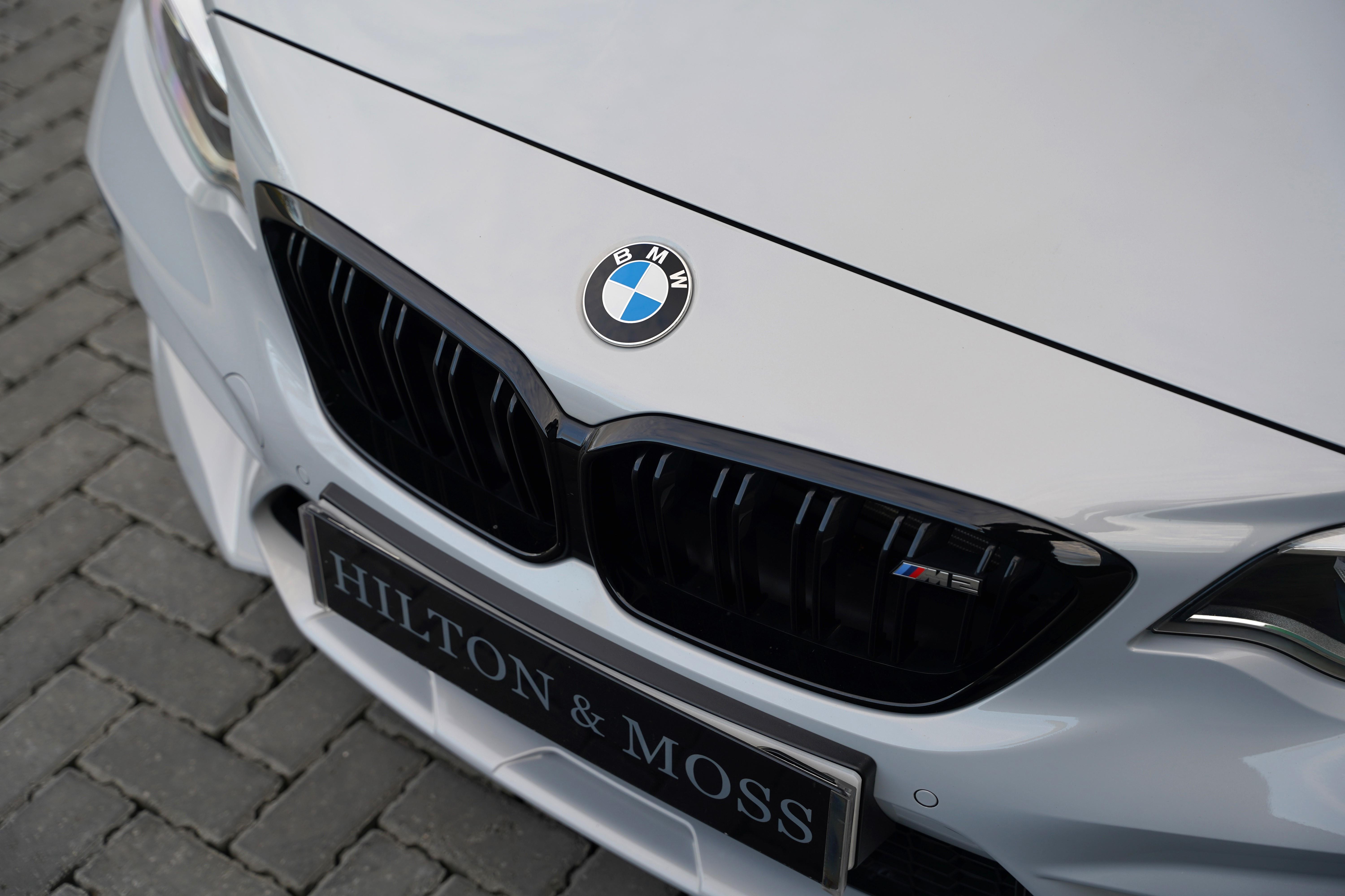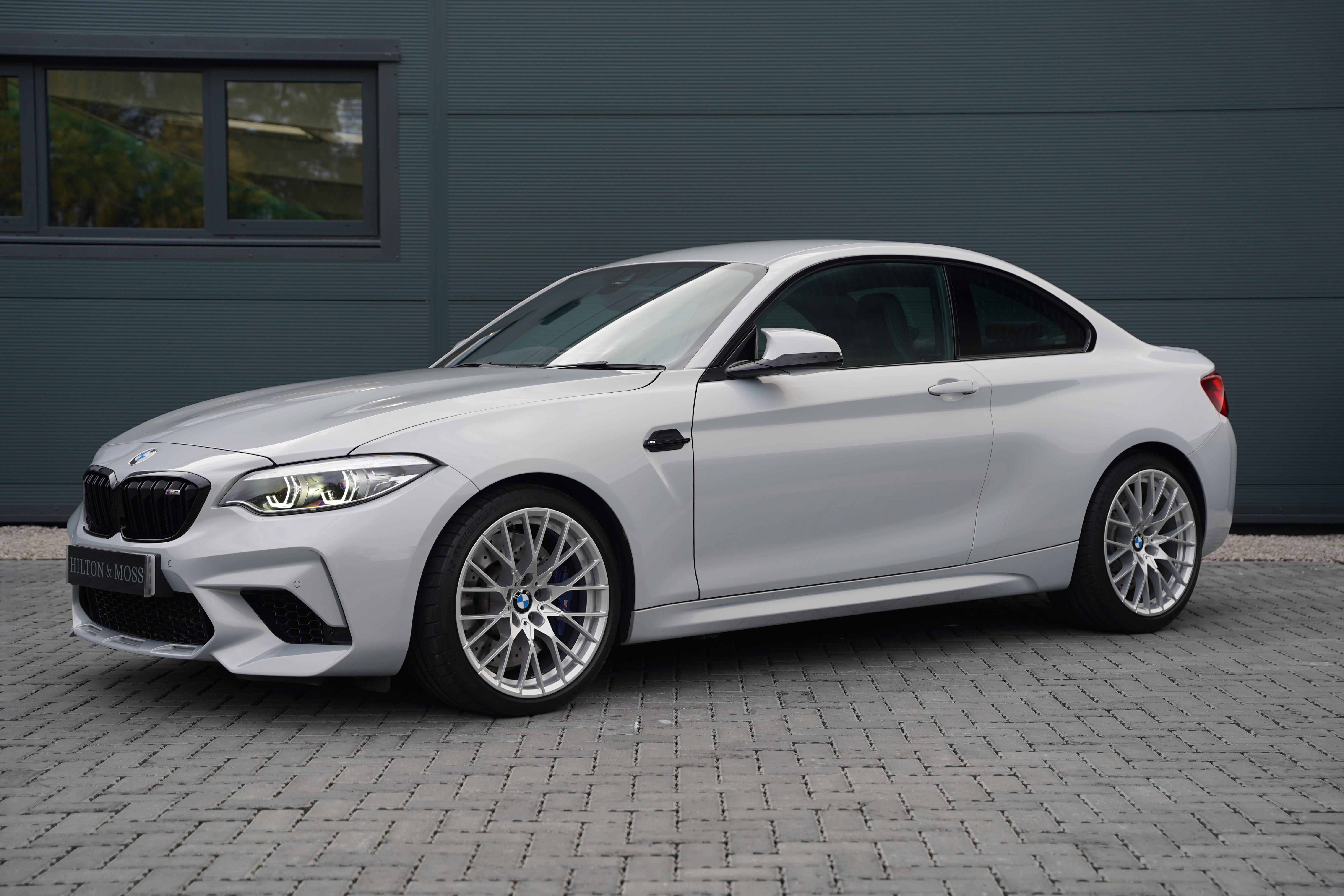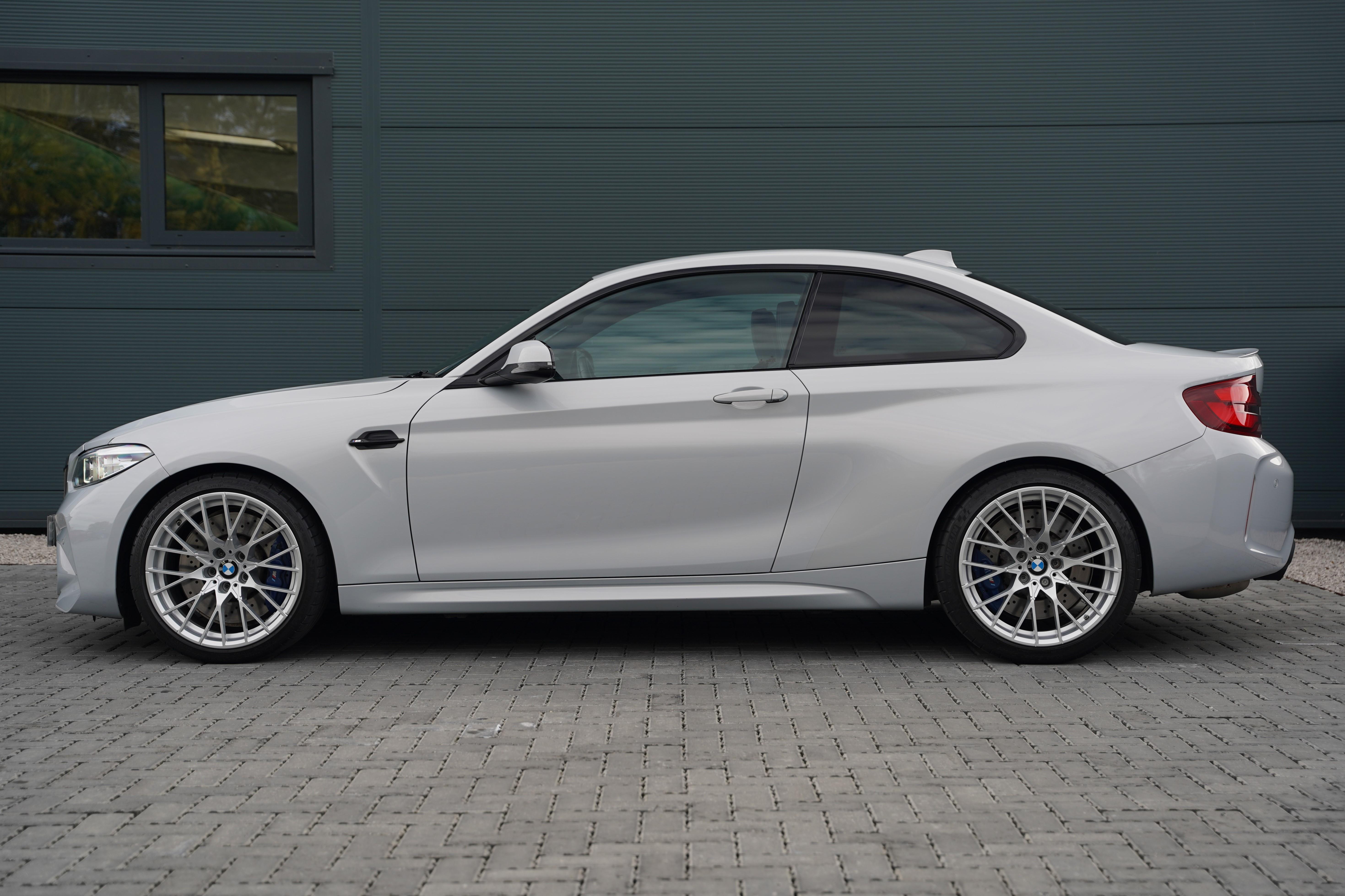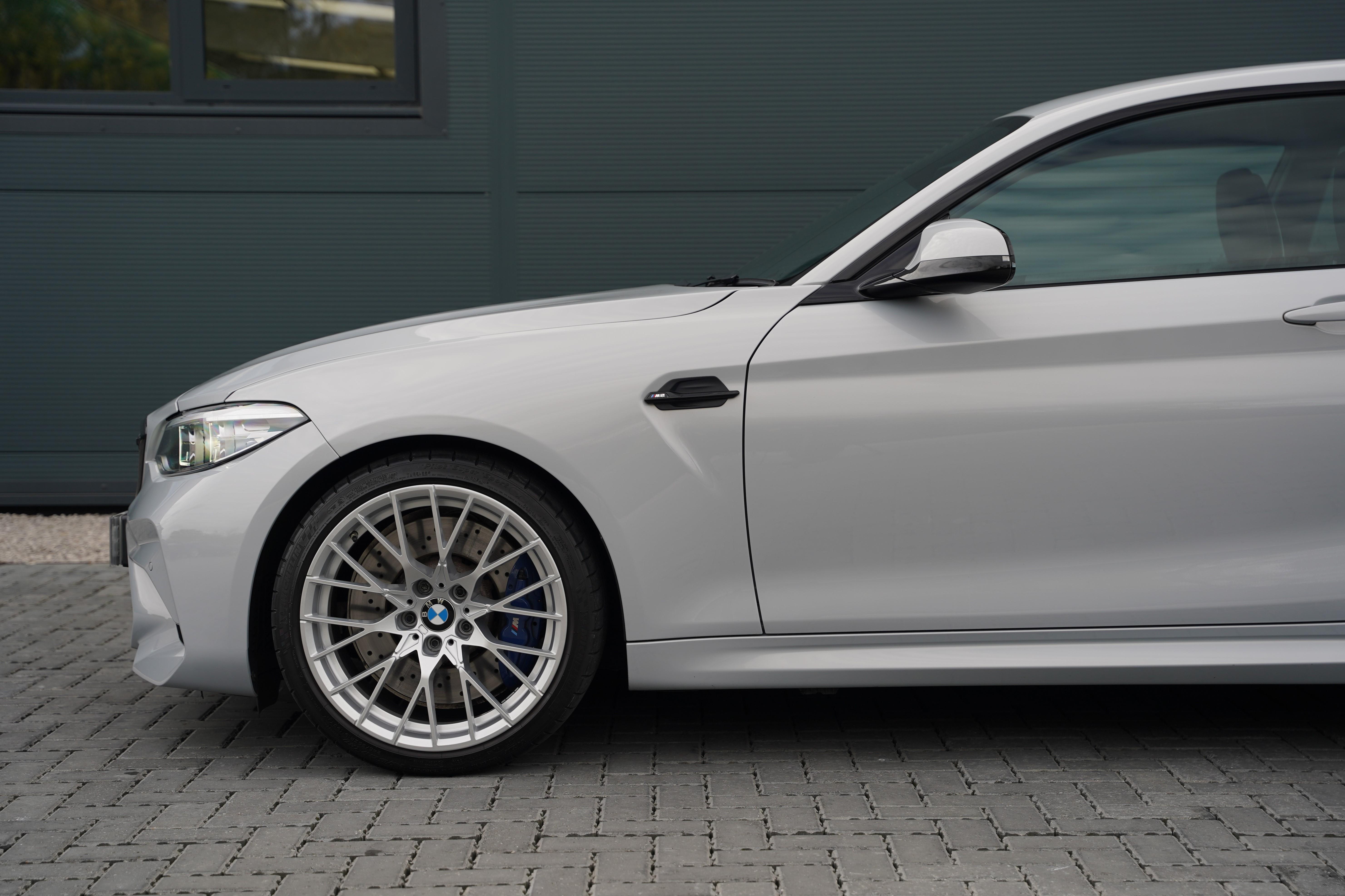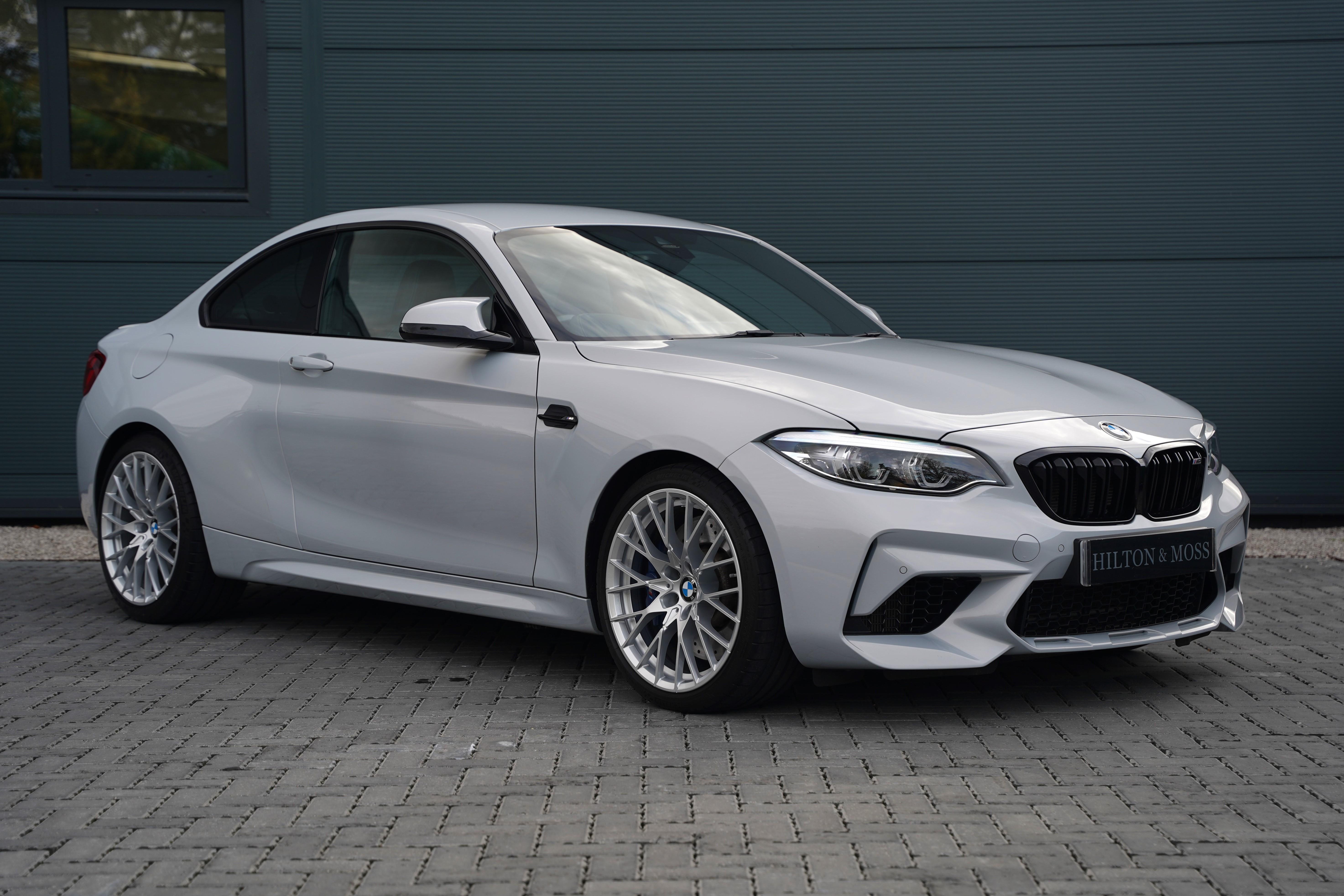 Finished in the striking Hockenheim Silver metallic, a colour introduced exclusively for the Competition variant, this M2 looks every bit as purposeful as its performance suggests. The exterior is complemented by silver alloy wheels and blue brake calipers.