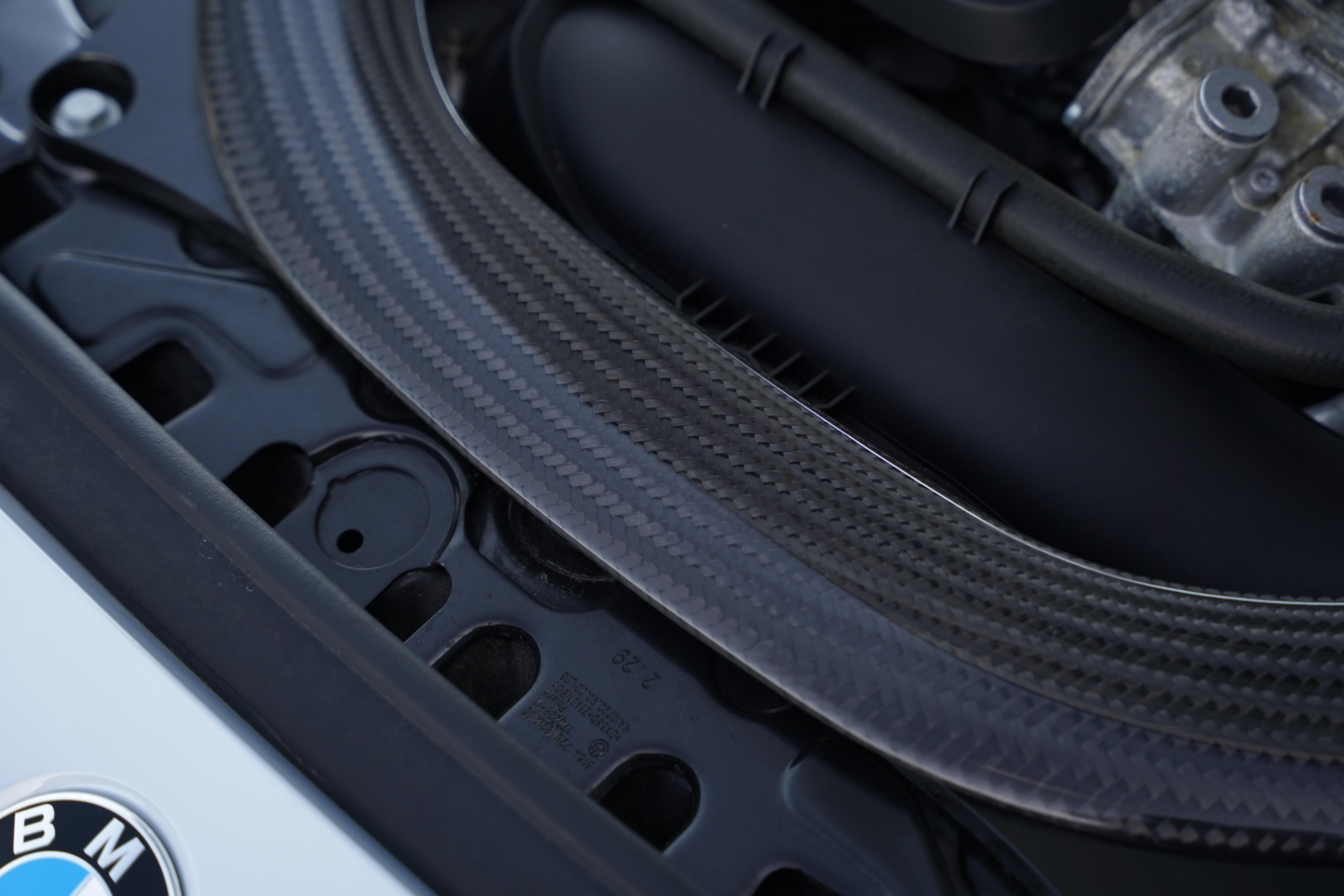 The interior features a focused aesthetic that perfectly captures BMW’s motorsport heritage. The black Dakota Leather features a blue contrast stitch and carbon fibre trim can be found on the dashboard, doors and centre console. M-Sport seat belts complete the theme. Additional interior specification includes CarPlay, dual-zone climate control, navigation and cruise control.