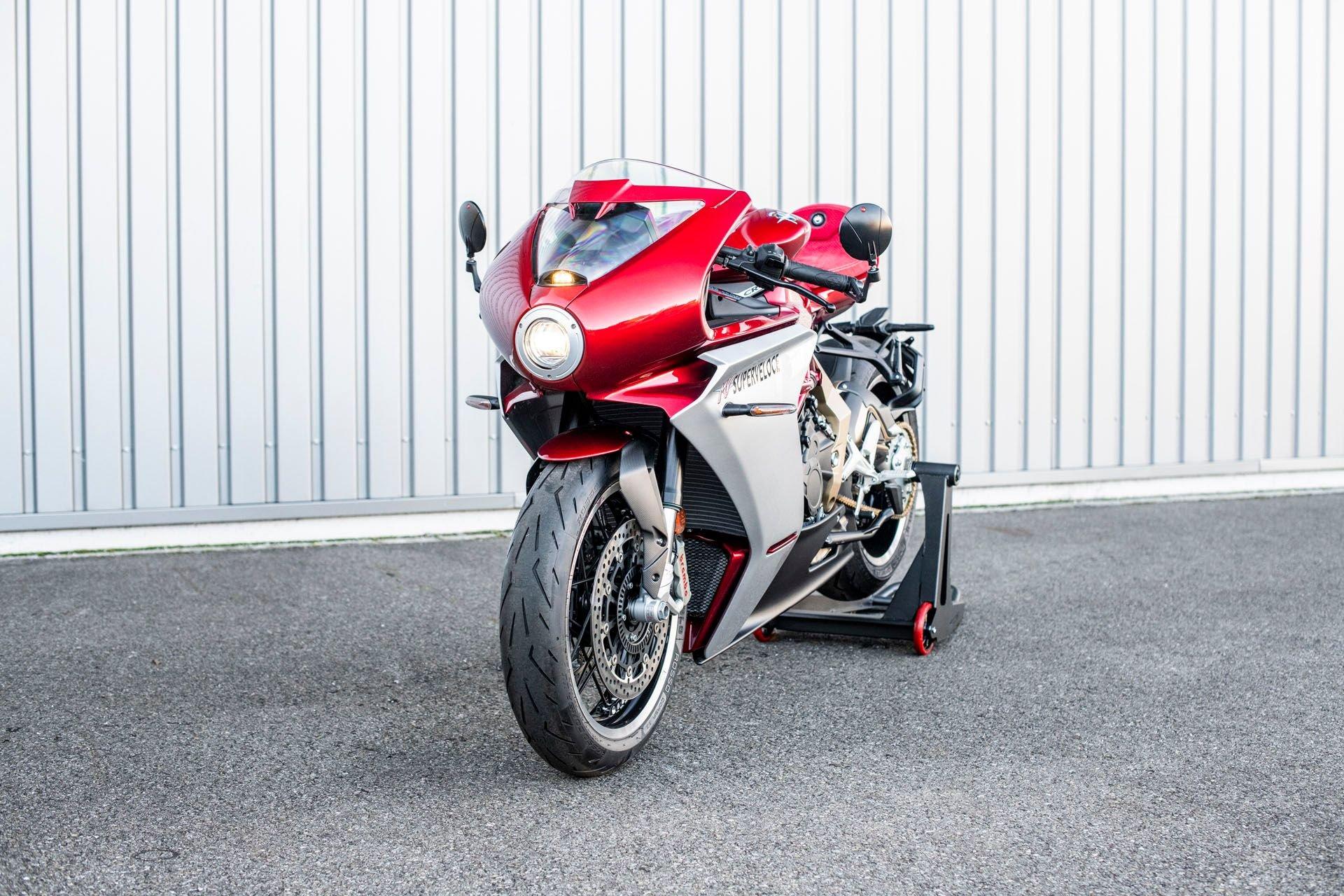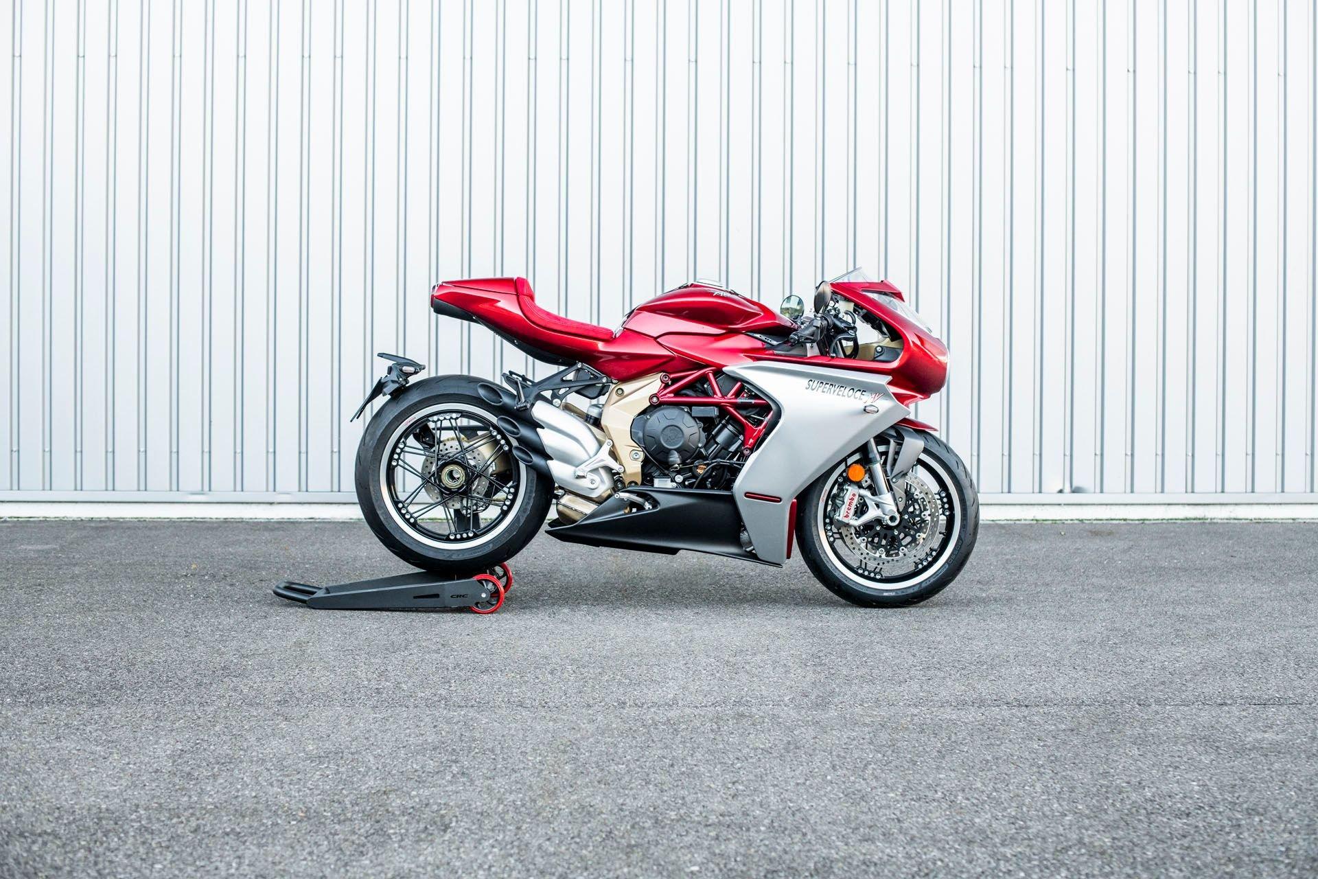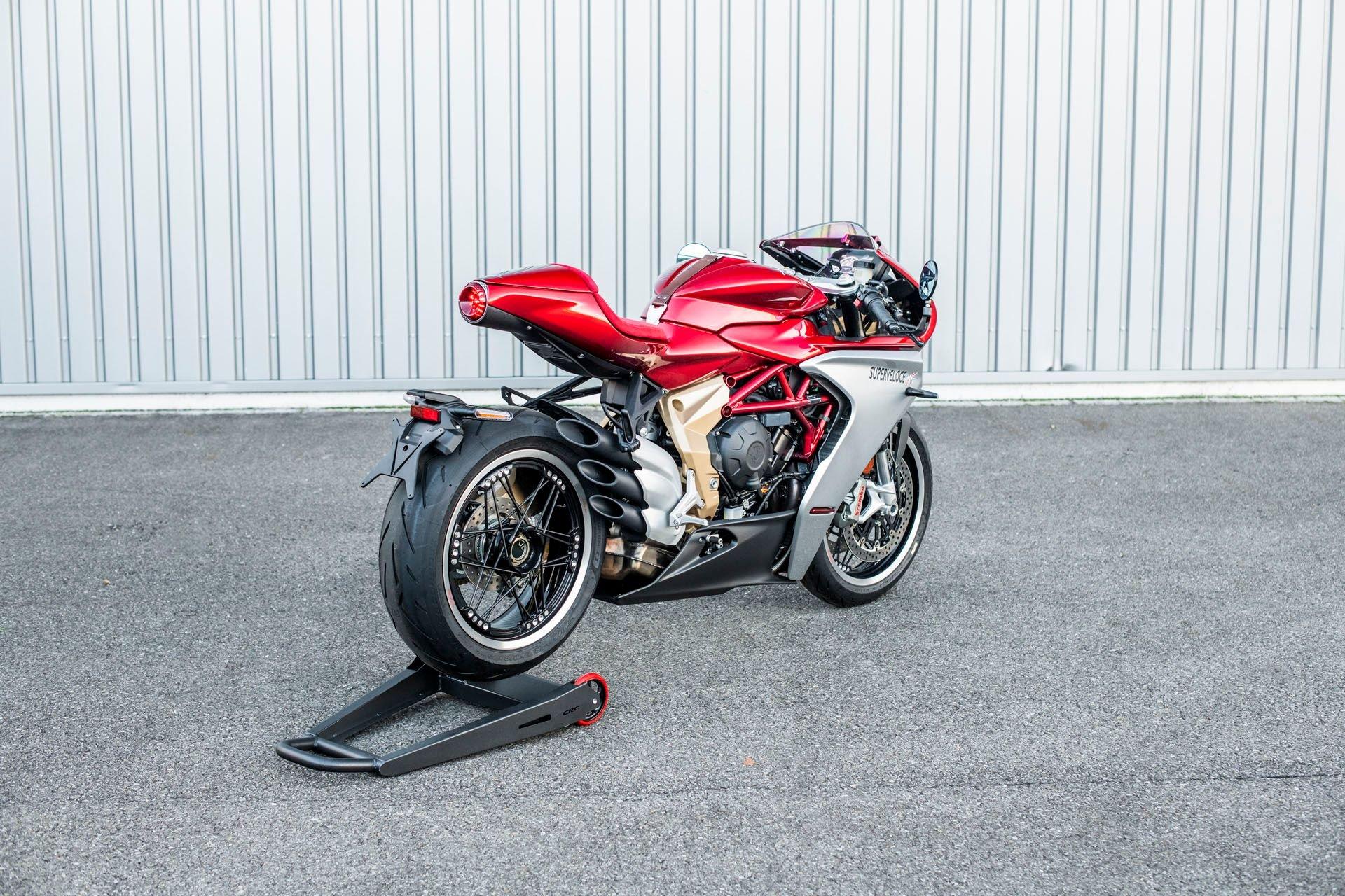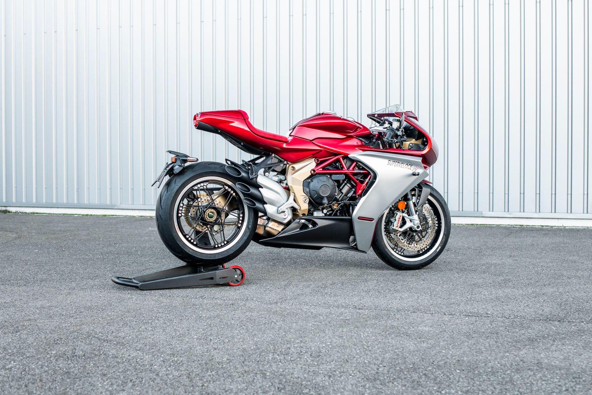 Serie Oro No. 118/300 Unveiled at the Esposizione Internazionale Ciclo Motociclo e Accessori (EICMA) in 2018 as a prototype, the MV Agusta Superveloce 800, inspired by the world of racing, embodied pure technology and elegance, igniting passion among enthusiasts. Few concessions were made to the prototype in order to create a road-legal version—fewer still for the exclusive Serie Oro edition. With a heritage spanning over a century, MV Agusta draws on its extensive experience in world championship racing, where it has secured numerous victories and podium finishes. The brand continues to produce premium sport bikes dubbed “Motorcycle Art,” maintaining a relentless focus on innovation and craftsmanship. Technically derived from the F3 800, MV Agusta’s most competitive model for the 2020 model year, the Superveloce 800 retains the F3’s single-sided swingarm, suspension, and engine, while asserting a distinct identity through its evocative design. Its chassis is composed of a steel tubular trellis frame elegantly paired with two aluminum side plates. It features a 43- mm inverted front fork and monobloc radial brake calipers. At its heart lies a three-cylinder, four-stroke, 800-cc fuel-injected engine delivering 148 horsepower, mated to a six-speed manual gearbox with a quickshifter. Already exceptional in its standard form, the Superveloce 800 is elevated even further by the highly exclusive Serie Oro edition, limited to just 300 units. This particular example, number 118, delivered new in November 2020, in Switzerland through Shamal Garage in Münchenstein, is finished in Ago Red over Ago Silver and presented in near-new condition with only 22 km on the odometer. Its original warranty booklet, which accompanies the bike, shows that it was acquired by the current owner in July 2022 from Niki Hasler AG. It underwent servicing in 2023 by Shamal Garage, when it already showed its current mileage of 22 km, and again in October 2025 by Möri Sport AG before being exhibited at the Zurich Auto Show. The Oro distinguishes itself through a series of refined and distinctive details: beautiful wire-spoke wheels, gold-finished aluminum frame plates and single-sided swingarm, and a striking SC Project exhaust system. The fuel tank is elegantly crossed by a leather strap, while the seat is trimmed in perforated Alcantara. Extensive use of carbon fiber underscores its exclusivity, with components such as the fairing side panels, front and rear mudguards, undertray, windscreen mount, chain guards, engine sump guard, air intake ducts, and belt covers all crafted from the lightweight material. In terms of instrumentation and rider aids, the Superveloce 800 Oro features a five-inch full-color TFT display with Bluetooth connectivity. This allows the rider to pair a smartphone and manage calls, messages, and music directly via the MV Ride app. The app also provides access to adjust the electronic riding aids from the smartphone itself. A built-in GPS module is included as well, offering both navigation and additional control functionalities. As for rider assistance systems, the bike offers four riding modes, one of which is fully customizable. An eight-level traction control system, fully disengageable, is included, along with a bidirectional quickshifter (Up & Down), cruise control, and a two-mode ABS system featuring rear-wheel lift mitigation. The model stays true to the very spirit of MV Agusta, embodying the key features of its most competitive editions while boasting a timeless yet distinctly unique retro racer aesthetic. Presented as nearly new, with only 22 kilometers on the odometer, accompanied by Swiss registration and numerous delivery items, this highly collectible piece of Motorcycle Art from MV Agusta is ready to find its place with the most discerning enthusiast—whether to be ridden or preserved in pristine condition.