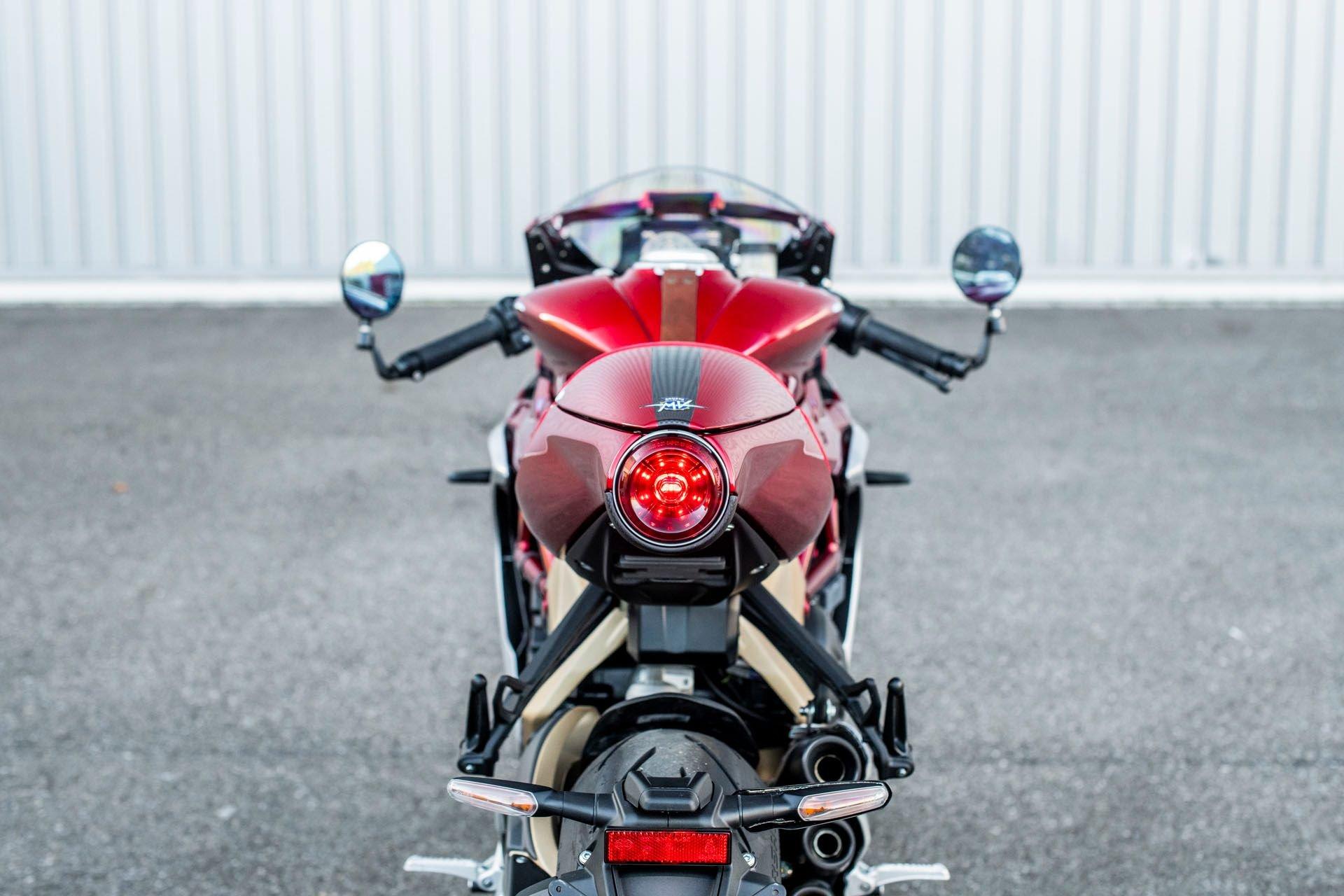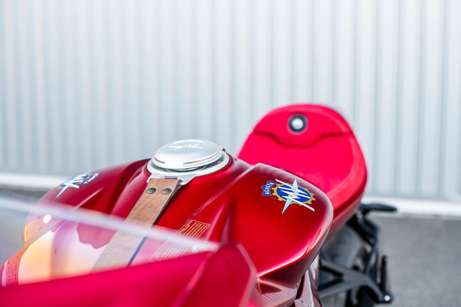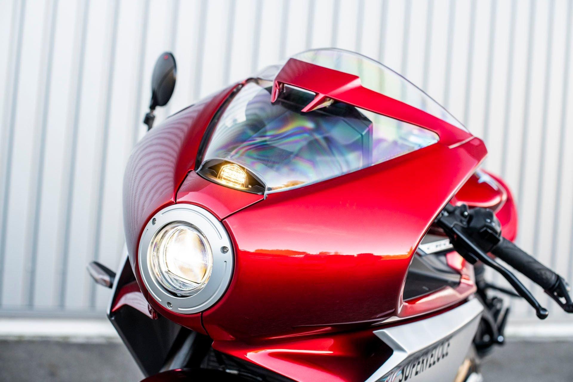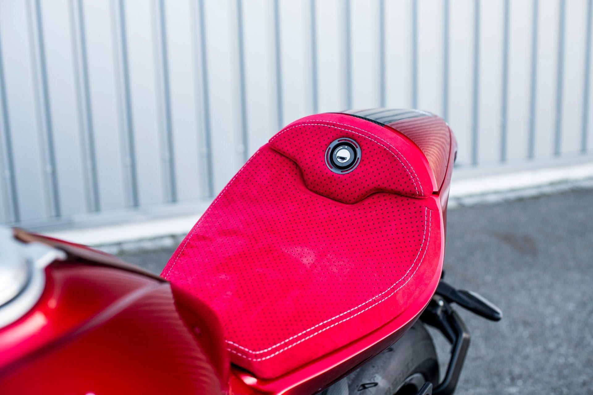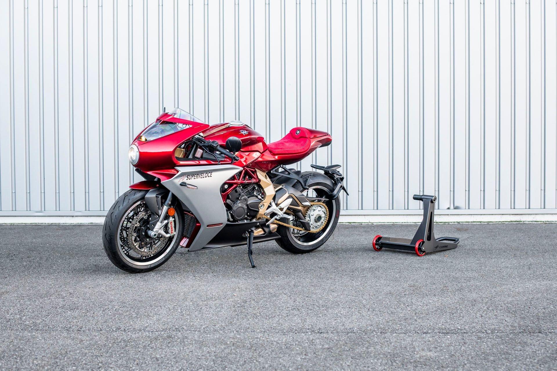 Serie Oro No. 118/300 Unveiled at the Esposizione Internazionale Ciclo Motociclo e Accessori (EICMA) in 2018 as a prototype, the MV Agusta Superveloce 800, inspired by the world of racing, embodied pure technology and elegance, igniting passion among enthusiasts. Few concessions were made to the prototype in order to create a road-legal version—fewer still for the exclusive Serie Oro edition. With a heritage spanning over a century, MV Agusta draws on its extensive experience in world championship racing, where it has secured numerous victories and podium finishes. The brand continues to produce premium sport bikes dubbed “Motorcycle Art,” maintaining a relentless focus on innovation and craftsmanship. Technically derived from the F3 800, MV Agusta’s most competitive model for the 2020 model year, the Superveloce 800 retains the F3’s single-sided swingarm, suspension, and engine, while asserting a distinct identity through its evocative design. Its chassis is composed of a steel tubular trellis frame elegantly paired with two aluminum side plates. It features a 43- mm inverted front fork and monobloc radial brake calipers. At its heart lies a three-cylinder, four-stroke, 800-cc fuel-injected engine delivering 148 horsepower, mated to a six-speed manual gearbox with a quickshifter. Already exceptional in its standard form, the Superveloce 800 is elevated even further by the highly exclusive Serie Oro edition, limited to just 300 units. This particular example, number 118, delivered new in November 2020, in Switzerland through Shamal Garage in Münchenstein, is finished in Ago Red over Ago Silver and presented in near-new condition with only 22 km on the odometer. Its original warranty booklet, which accompanies the bike, shows that it was acquired by the current owner in July 2022 from Niki Hasler AG. It underwent servicing in 2023 by Shamal Garage, when it already showed its current mileage of 22 km, and again in October 2025 by Möri Sport AG before being exhibited at the Zurich Auto Show. The Oro distinguishes itself through a series of refined and distinctive details: beautiful wire-spoke wheels, gold-finished aluminum frame plates and single-sided swingarm, and a striking SC Project exhaust system. The fuel tank is elegantly crossed by a leather strap, while the seat is trimmed in perforated Alcantara. Extensive use of carbon fiber underscores its exclusivity, with components such as the fairing side panels, front and rear mudguards, undertray, windscreen mount, chain guards, engine sump guard, air intake ducts, and belt covers all crafted from the lightweight material. In terms of instrumentation and rider aids, the Superveloce 800 Oro features a five-inch full-color TFT display with Bluetooth connectivity. This allows the rider to pair a smartphone and manage calls, messages, and music directly via the MV Ride app. The app also provides access to adjust the electronic riding aids from the smartphone itself. A built-in GPS module is included as well, offering both navigation and additional control functionalities. As for rider assistance systems, the bike offers four riding modes, one of which is fully customizable. An eight-level traction control system, fully disengageable, is included, along with a bidirectional quickshifter (Up & Down), cruise control, and a two-mode ABS system featuring rear-wheel lift mitigation. The model stays true to the very spirit of MV Agusta, embodying the key features of its most competitive editions while boasting a timeless yet distinctly unique retro racer aesthetic. Presented as nearly new, with only 22 kilometers on the odometer, accompanied by Swiss registration and numerous delivery items, this highly collectible piece of Motorcycle Art from MV Agusta is ready to find its place with the most discerning enthusiast—whether to be ridden or preserved in pristine condition.