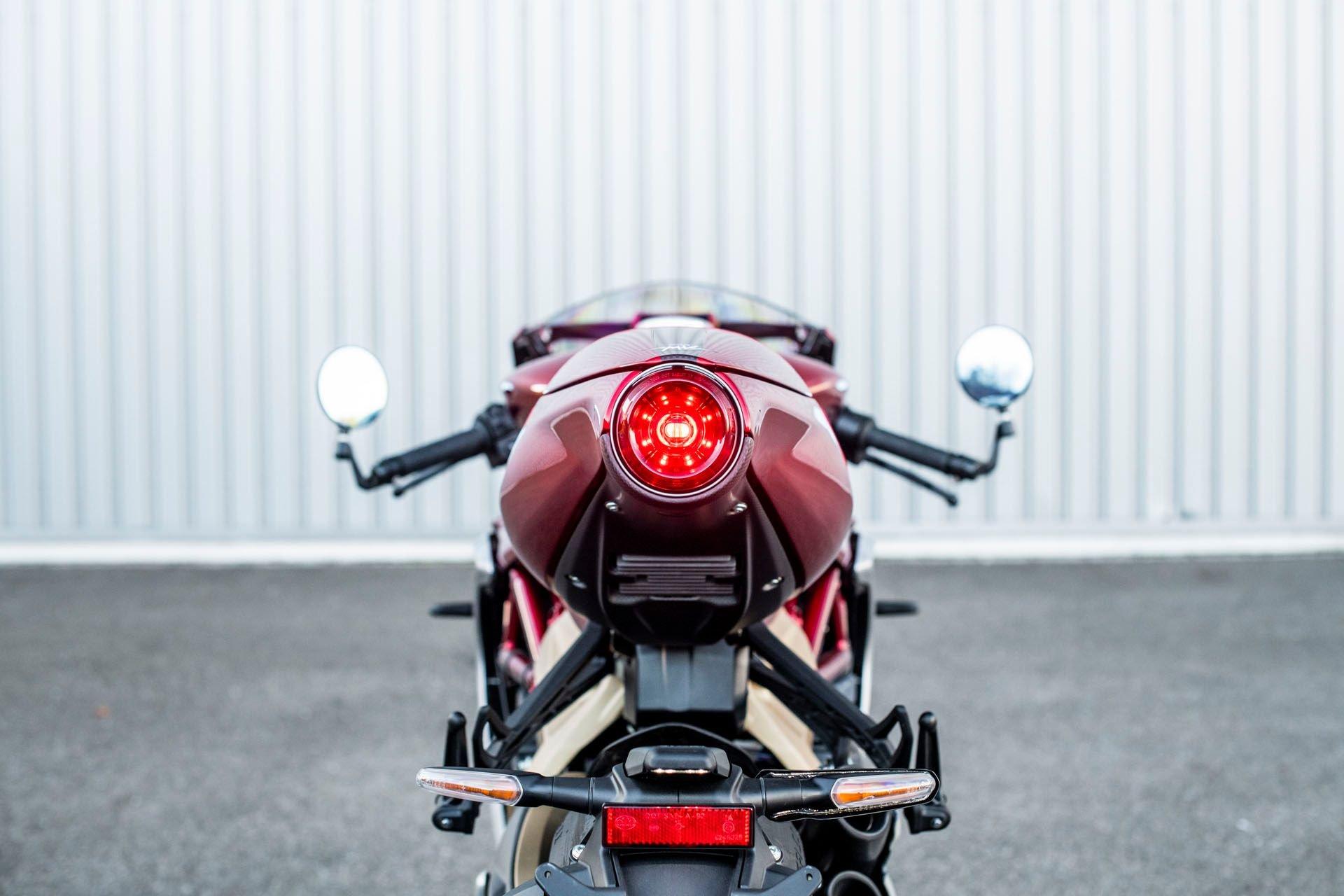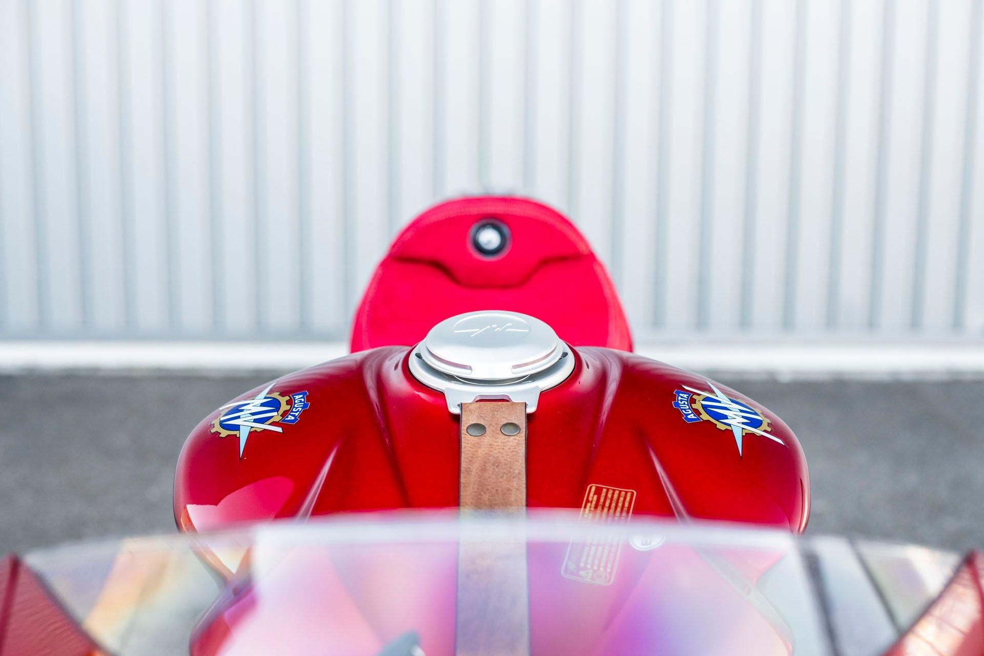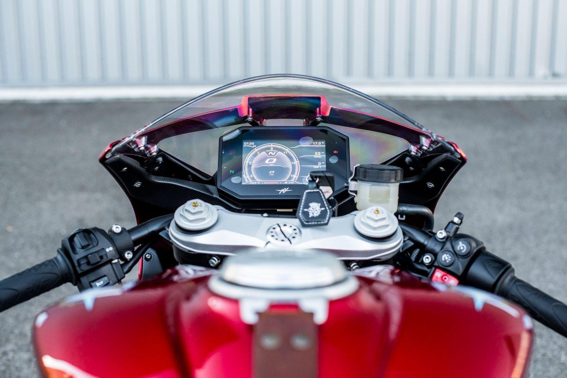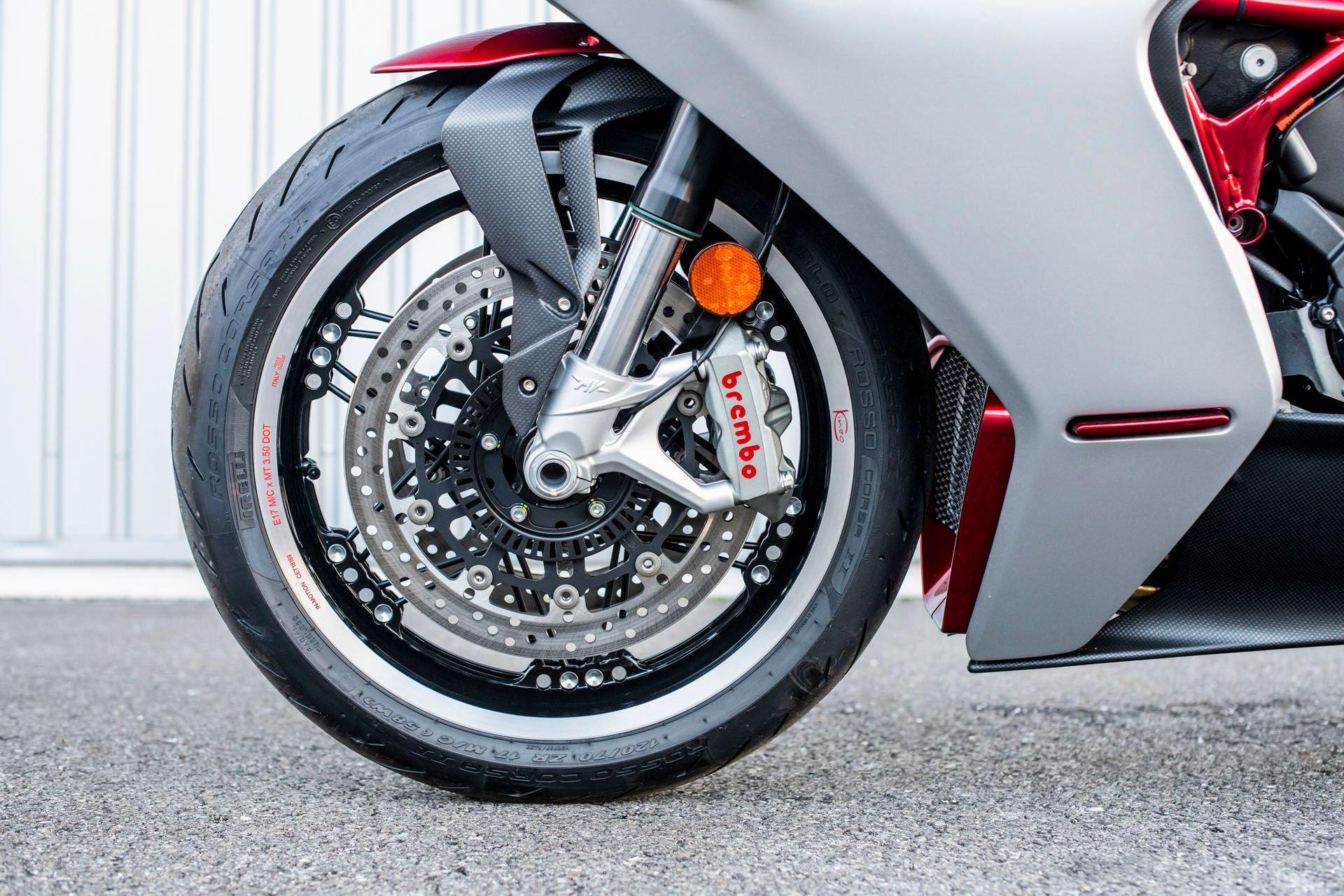 Serie Oro No. 118/300 Unveiled at the Esposizione Internazionale Ciclo Motociclo e Accessori (EICMA) in 2018 as a prototype, the MV Agusta Superveloce 800, inspired by the world of racing, embodied pure technology and elegance, igniting passion among enthusiasts. Few concessions were made to the prototype in order to create a road-legal version—fewer still for the exclusive Serie Oro edition. With a heritage spanning over a century, MV Agusta draws on its extensive experience in world championship racing, where it has secured numerous victories and podium finishes. The brand continues to produce premium sport bikes dubbed “Motorcycle Art,” maintaining a relentless focus on innovation and craftsmanship. Technically derived from the F3 800, MV Agusta’s most competitive model for the 2020 model year, the Superveloce 800 retains the F3’s single-sided swingarm, suspension, and engine, while asserting a distinct identity through its evocative design. Its chassis is composed of a steel tubular trellis frame elegantly paired with two aluminum side plates. It features a 43- mm inverted front fork and monobloc radial brake calipers. At its heart lies a three-cylinder, four-stroke, 800-cc fuel-injected engine delivering 148 horsepower, mated to a six-speed manual gearbox with a quickshifter. Already exceptional in its standard form, the Superveloce 800 is elevated even further by the highly exclusive Serie Oro edition, limited to just 300 units. This particular example, number 118, delivered new in November 2020, in Switzerland through Shamal Garage in Münchenstein, is finished in Ago Red over Ago Silver and presented in near-new condition with only 22 km on the odometer. Its original warranty booklet, which accompanies the bike, shows that it was acquired by the current owner in July 2022 from Niki Hasler AG. It underwent servicing in 2023 by Shamal Garage, when it already showed its current mileage of 22 km, and again in October 2025 by Möri Sport AG before being exhibited at the Zurich Auto Show. The Oro distinguishes itself through a series of refined and distinctive details: beautiful wire-spoke wheels, gold-finished aluminum frame plates and single-sided swingarm, and a striking SC Project exhaust system. The fuel tank is elegantly crossed by a leather strap, while the seat is trimmed in perforated Alcantara. Extensive use of carbon fiber underscores its exclusivity, with components such as the fairing side panels, front and rear mudguards, undertray, windscreen mount, chain guards, engine sump guard, air intake ducts, and belt covers all crafted from the lightweight material. In terms of instrumentation and rider aids, the Superveloce 800 Oro features a five-inch full-color TFT display with Bluetooth connectivity. This allows the rider to pair a smartphone and manage calls, messages, and music directly via the MV Ride app. The app also provides access to adjust the electronic riding aids from the smartphone itself. A built-in GPS module is included as well, offering both navigation and additional control functionalities. As for rider assistance systems, the bike offers four riding modes, one of which is fully customizable. An eight-level traction control system, fully disengageable, is included, along with a bidirectional quickshifter (Up & Down), cruise control, and a two-mode ABS system featuring rear-wheel lift mitigation. The model stays true to the very spirit of MV Agusta, embodying the key features of its most competitive editions while boasting a timeless yet distinctly unique retro racer aesthetic. Presented as nearly new, with only 22 kilometers on the odometer, accompanied by Swiss registration and numerous delivery items, this highly collectible piece of Motorcycle Art from MV Agusta is ready to find its place with the most discerning enthusiast—whether to be ridden or preserved in pristine condition.