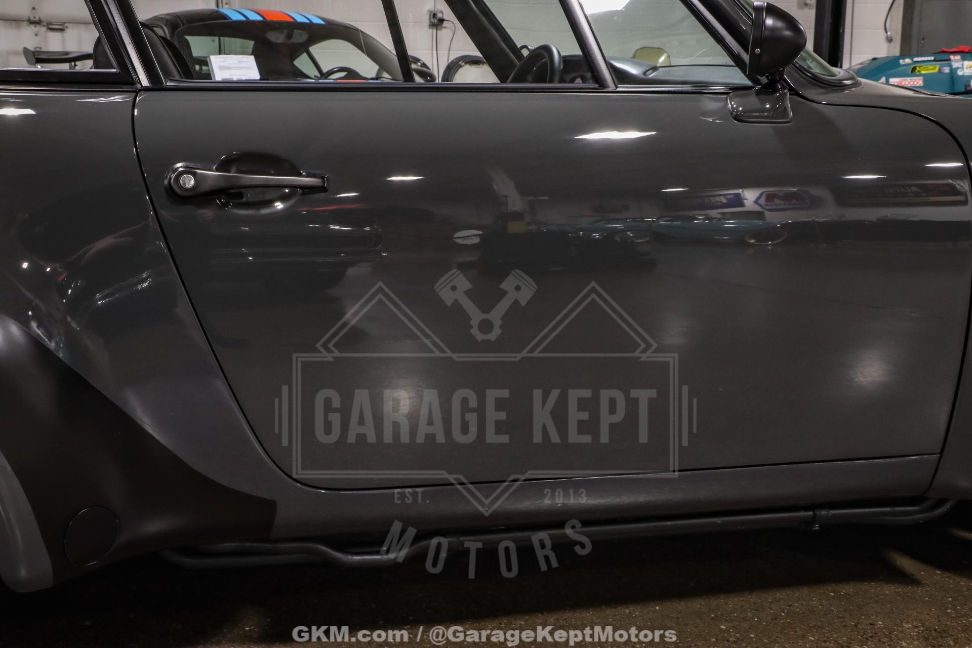1977 Porsche 911S- California Car- Custom Chop Top by Dink Farmer, Hot Rod Builder in Northern California- Recessed Headlights- 911 Turbo Fender Flares- Carrera Rear Spoiler- Upgraded 3.2L H6 Rear Engine- 5 Speed 915 Manual Gearbox- Upgraded Suspension- 996 Turbo Brakes- 18 Inch Fikse Wheels- Gray Exterior over Houndstooth Interior- 621 Miles Recorded Since Restoration- One-Of-A-Kind Custom 911This 1977 Porsche 911S is a truly unique custom build, crafted with incredible attention to detail and vision by Northern California Porsche hot rod builder Dink Farmer. Featuring radical metalwork including a chopped-top roof, recessed headlights, and wide 911 Turbo fender flares, this 911 stands out as a bespoke work of automotive art. It was discovered unfinished in Southern California by the current seller and his two brotherslongtime Porsche enthusiasts with over 45 years of experience building and modifying classic 911s. Together, they completed the project, finishing the restoration of the 3.2-liter Carrera engine, fitting a new upgraded suspension and 996 Turbo brakes, and installing 18 Fikse wheels for a modernized yet purposeful stance.Under prior ownership, the car underwent extensive custom fabrication believed to have been completed by Farmer himself. The most striking element is its 3-inch lowered roofline, which required intricate reworking of the quarter panels, rear window openings, and upper body sections. The front and rear received genuine steel 930 Turbo fender flares, while the headlights were recessedor Frenchedinto the fenders for a sleek, sculpted look. Fiberglass bumpers and a Carrera-style rear spoiler were added to complete the exterior transformation. The windshield is sourced from a 911 Speedster, emphasizing its low, aggressive profile. The seller notes the absence of filler or Bondo anywhere on the car, reflecting the quality of its all-metal craftsmanship.The current owners completed the car's window framing and fitment, investing over 80 hours to finalize the Lexan side windows and powder-coated frames, ensuring smooth operation and proper weather sealing. Finished in a gray paint color applied approximately 20 years ago, the car presents a raw, purposeful aesthetic accented by 917-style mirrors and red highlights across the oil cooler grille, cowl vent, brake calipers, and roof stripe. It sits on satin black 18 Fikse wheels adorned with red anodized hardware and wrapped in new tires installed two years ago. Although the finish shows some minor imperfections, the car retains a striking and aggressive presence.Inside, the cabin has been freshly reimagined to match the car's bespoke character. It features new carpeting, leather RS-style door panels, and low-back bucket seats trimmed in black leather with houndstooth insertsa classic Porsche racing touch. Additional details include a MOMO Prototipo steering wheel, red seatbelts, pull straps, a fire extinguisher, and a 911SC dashboard equipped with vintage Heuer rally timers. Every detail is cohesive, blending motorsport heritage with contemporary craftsmanship.Power comes from a rebuilt 3.2-liter Carrera flat-six engine that was completely overhauled under current ownership. The rebuild included reconditioned cylinder heads, new pistons, updated fuel injection rails, fresh wiring and oil lines, and polished intake manifolds. Exhaust gases exit through a custom early-style dual-inlet muffler with 2.5 pipes, creating a deep, distinctive tone. A front-mounted TRE Motorsports oil cooler provides improved thermal management, ensuring the engine remains reliable under spirited driving conditions.Mated to a rebuilt 5-speed 915 manual transmission with new synchros, clutch, pressure plate, and flywheel, this 911 delivers an engaging, analog driving experience true to its heritage. The upgraded suspension and anti-roll bar sharpen the handling, while 996 Turbo calipers and cross-drilled rotors provide modern braking performance. With only 621 miles driven since the completion of its restoration, this custom 1977 Porsche 911 represents a unique fusion of artistry, performance, and decades of Porsche passiona one-off creation that bridges vintage style with modern engineering.