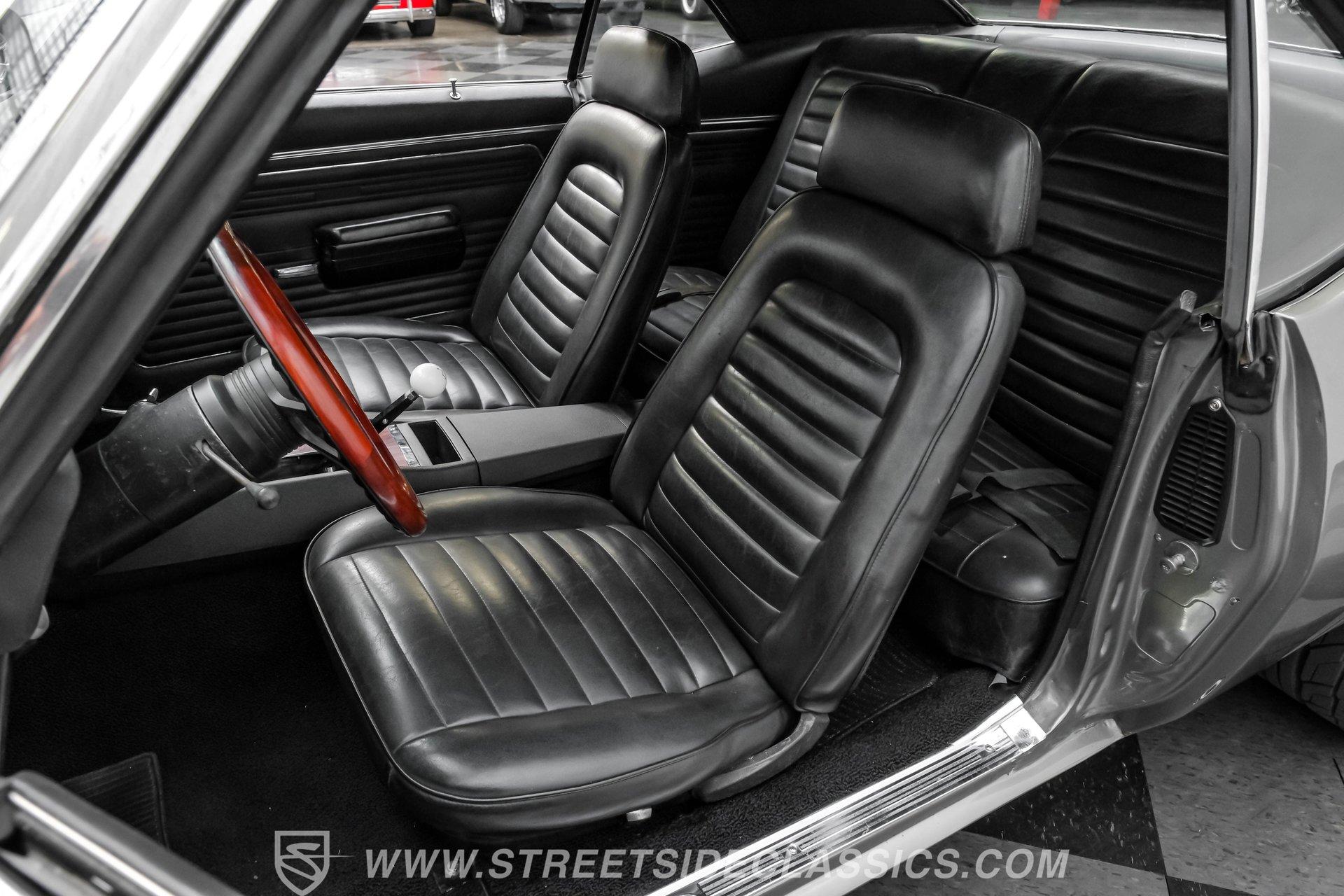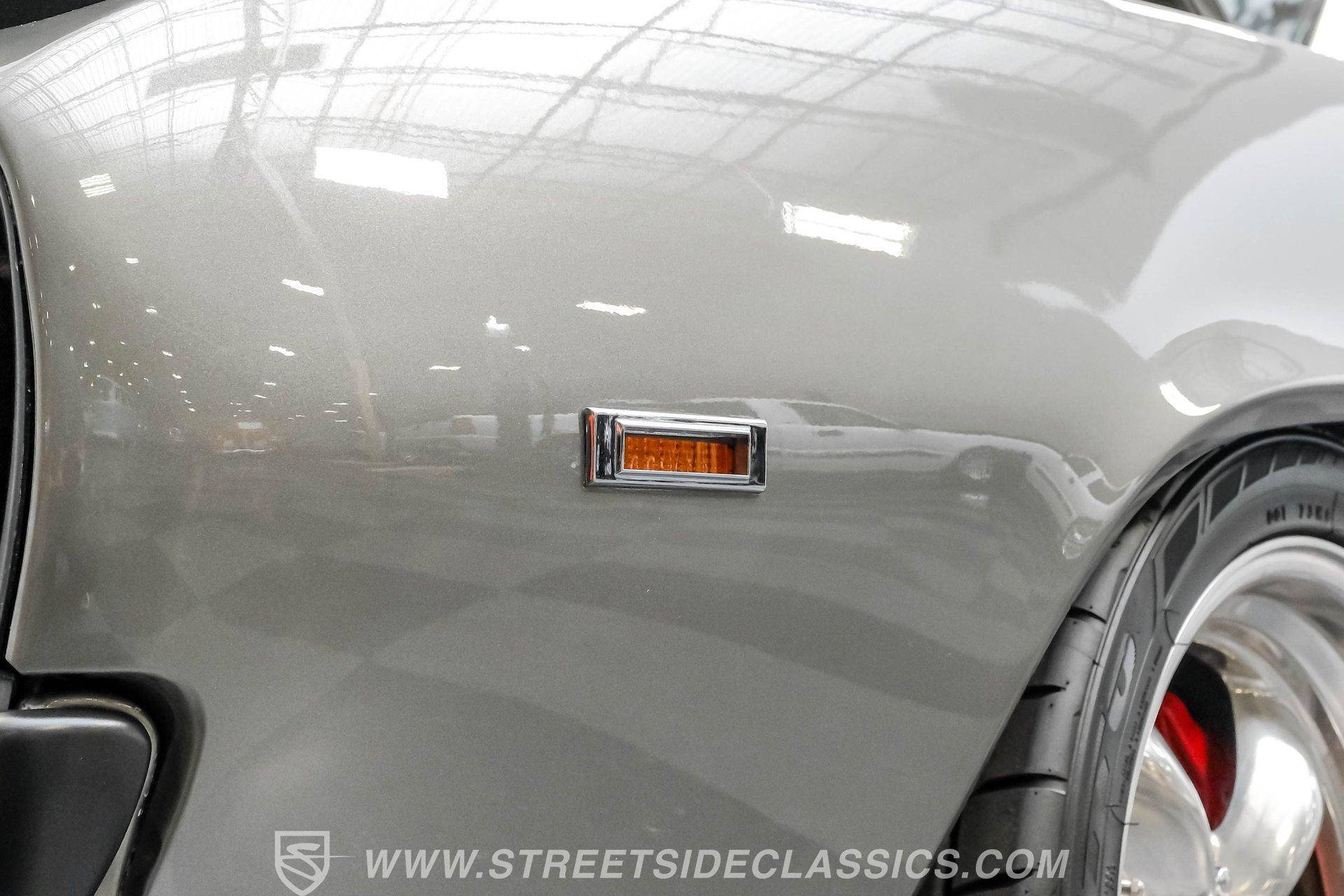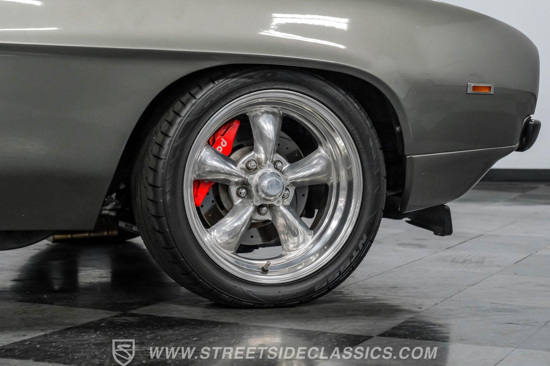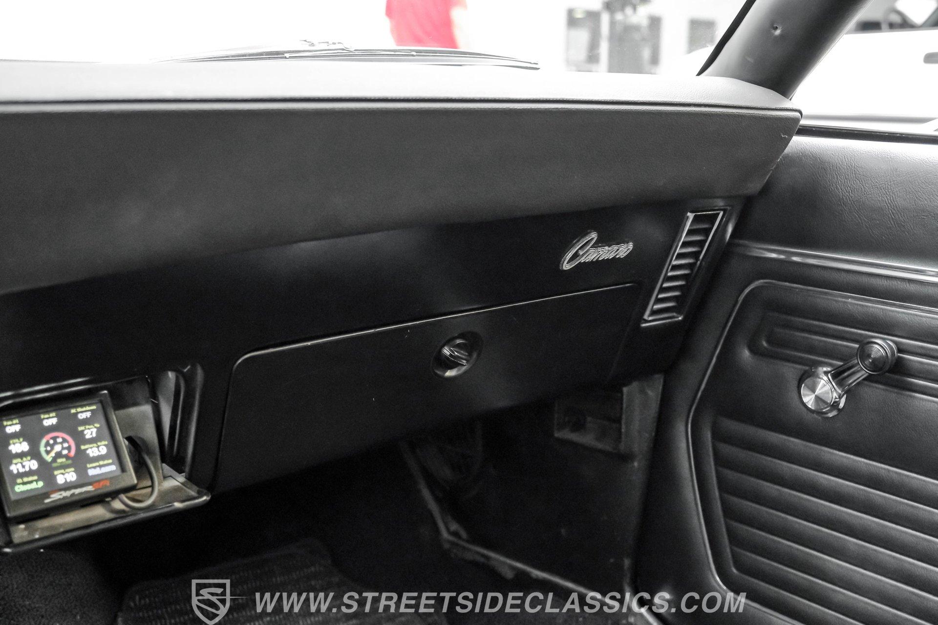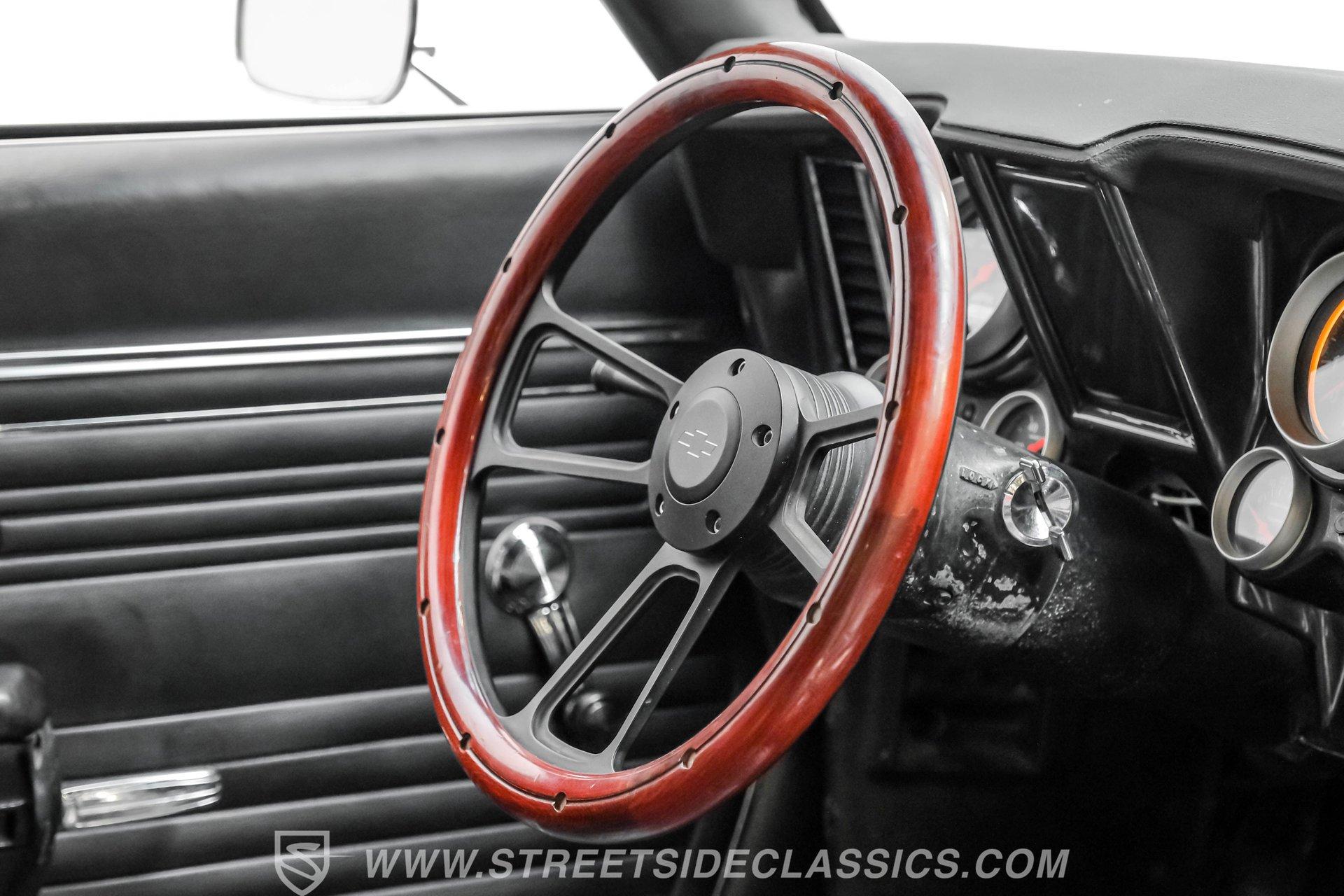 In terms of banner years, 1969 stands out as one of the most exciting in American history. The moon landing, Woodstock, and cars like this 1969 Chevrolet Camaro Z/28 Restomod Tribute all serve as proof of just how memorable this year was. This Camaro is nothing short of stunning in its gray-and-black motif. With its cowl-induction hood, Z/28 badging, and decklid spoiler, this pony car looks ready to gallop from any angle. Inside, we find a nicely redone black vinyl interior. A center console separates a pair of bucket seats equipped with headrests. A beautiful Custom Billet woodgrain steering wheel and matching console trim add the perfect amount of contrast, while ahead of the wheel sits a set of AutoMeter Super-Comp gauges featuring a 120 mph speedometer and 8,000 rpm tachometer mounted in a custom housing. A Sniper EFI controller/monitor fills the entertainment hole left by the radio delete, along with the Billet cueball-style shifter. Under the hood, despite the 427 Chevrolet valve covers, we actually find a larger 454 cubic-inch overhead-valve V-8 engine. Topped with lightweight Brodix aluminum heads and outfitted with a performance camshaft, this big block expels spent gases through a set of long-tube headers and ultimately out through an H-pipe dual exhaust. Power is routed through a modern Tremec T56 six-speed manual transmission before being sent out to the stout nine-inch rear end. HIGHLIGHTS: Z28 Tribute Full Gray Repaint w/ Black Painted Racing Stripes Front Lip and Rear Deck Spoilers Cowl Induction Hood 454 Big Block V8 Brodix Aluminum Heads Performance Cam Sniper EFI Long Tubes H-Pipe Exhaust Black Widow Mufflers Tremec T56 Six Speed Manual Nine Inch Rear Tubular Front Control Arms Upgraded Rear Trailing Arms Adjustable Coilovers Subframe Connectors Wilwood Power Disc Brakes Cross Drilled and Slotted Rotors Power Steering Redone Black Vinyl Interior Sniper EFI Controller Bucket Seats with Headrests Billet Shifter AutoMeter Super Comp Gauges Custom Gauge Cluster Custom Billet Woodgrain Wheel Service Manuals Receipts This 1969 Chevrolet Camaro Z/28 Restomod Tribute rides on a tubular A-arm front suspension with upgraded trailing arms in the rear. Subframe connectors and adjustable coilovers at all four corners ensure this throwback muscle car will handle far better than the day it rolled off the assembly line. Seventeen-inch American Racing Torq Thrust II polished wheels are shod in staggered sticky Nitto rubber. Power steering and four-wheel Wilwood power disc brakes add a nice touch of modern convenience, making any road trip more fun than work. In terms of great years, 1969 is undoubtedly a one-seed in the tournament of time. Don't miss your chance to own a beautiful piece of rolling history, upgraded by a bit of modern technology, with this head-turning Camaro. Call today!