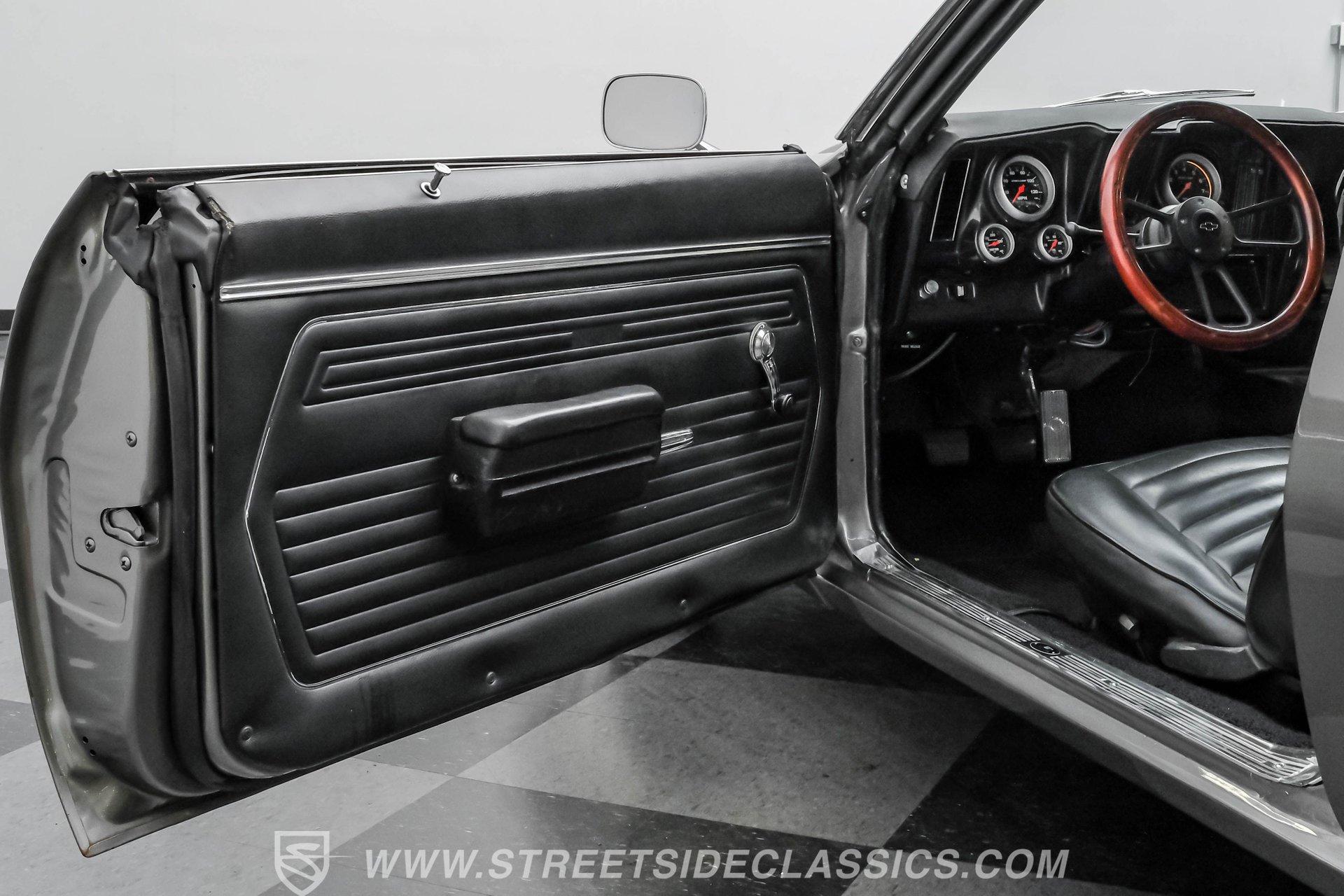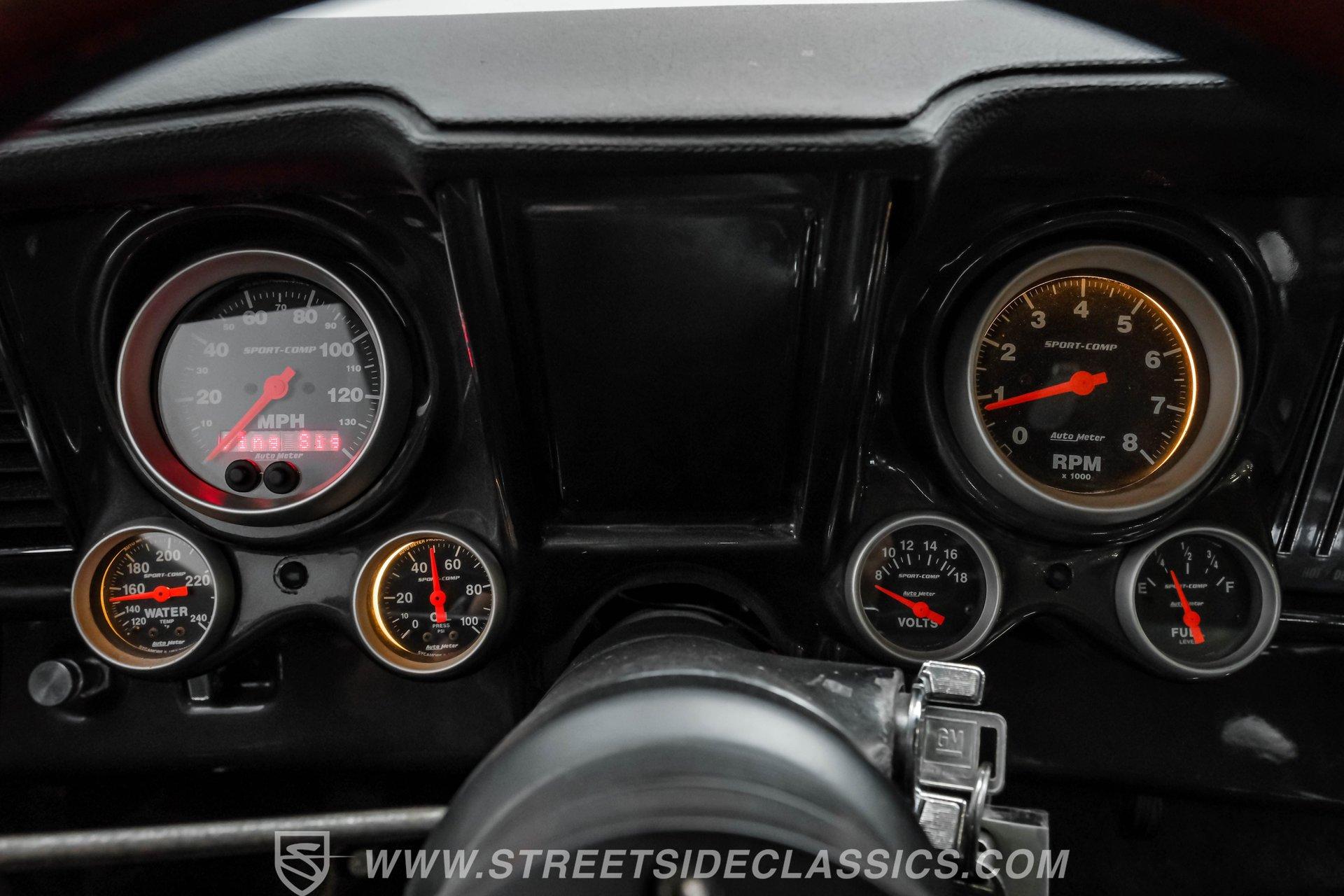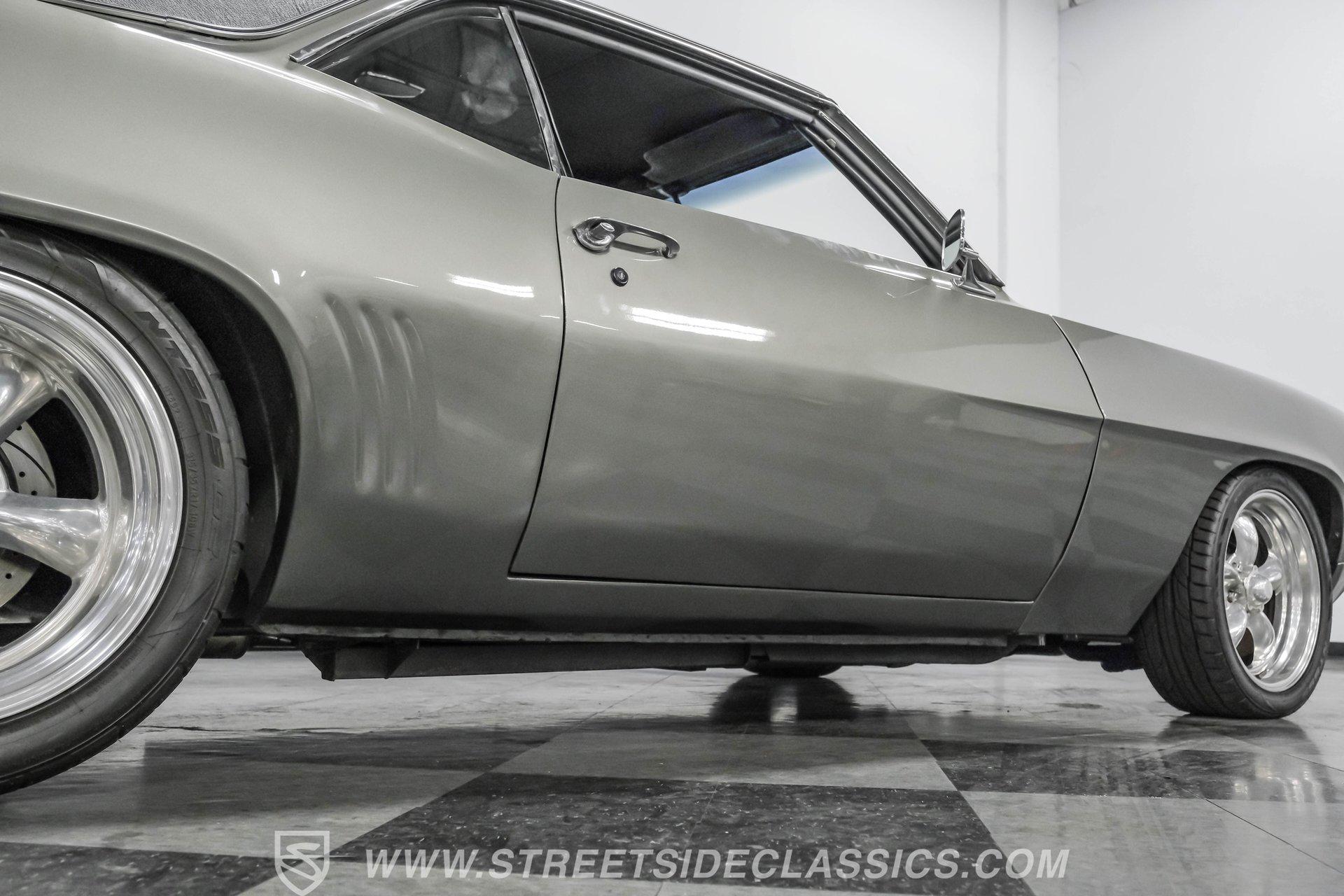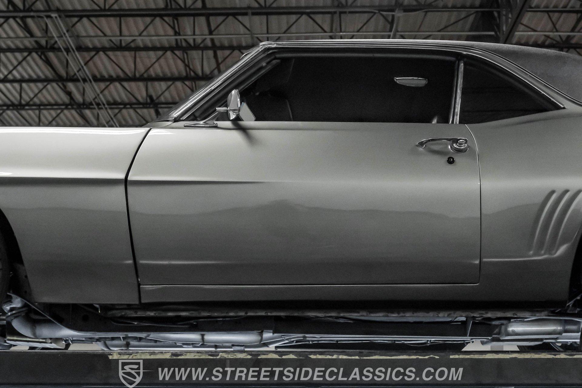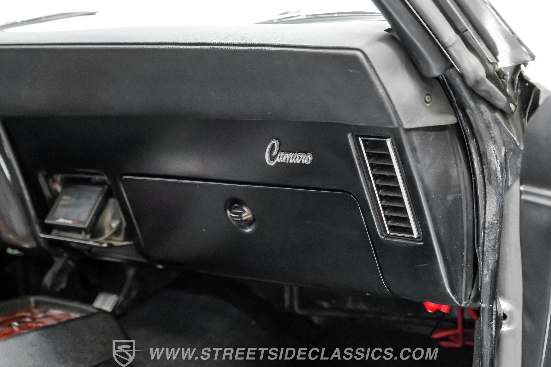 In terms of banner years, 1969 stands out as one of the most exciting in American history. The moon landing, Woodstock, and cars like this 1969 Chevrolet Camaro Z/28 Restomod Tribute all serve as proof of just how memorable this year was. This Camaro is nothing short of stunning in its gray-and-black motif. With its cowl-induction hood, Z/28 badging, and decklid spoiler, this pony car looks ready to gallop from any angle. Inside, we find a nicely redone black vinyl interior. A center console separates a pair of bucket seats equipped with headrests. A beautiful Custom Billet woodgrain steering wheel and matching console trim add the perfect amount of contrast, while ahead of the wheel sits a set of AutoMeter Super-Comp gauges featuring a 120 mph speedometer and 8,000 rpm tachometer mounted in a custom housing. A Sniper EFI controller/monitor fills the entertainment hole left by the radio delete, along with the Billet cueball-style shifter. Under the hood, despite the 427 Chevrolet valve covers, we actually find a larger 454 cubic-inch overhead-valve V-8 engine. Topped with lightweight Brodix aluminum heads and outfitted with a performance camshaft, this big block expels spent gases through a set of long-tube headers and ultimately out through an H-pipe dual exhaust. Power is routed through a modern Tremec T56 six-speed manual transmission before being sent out to the stout nine-inch rear end. HIGHLIGHTS: Z28 Tribute Full Gray Repaint w/ Black Painted Racing Stripes Front Lip and Rear Deck Spoilers Cowl Induction Hood 454 Big Block V8 Brodix Aluminum Heads Performance Cam Sniper EFI Long Tubes H-Pipe Exhaust Black Widow Mufflers Tremec T56 Six Speed Manual Nine Inch Rear Tubular Front Control Arms Upgraded Rear Trailing Arms Adjustable Coilovers Subframe Connectors Wilwood Power Disc Brakes Cross Drilled and Slotted Rotors Power Steering Redone Black Vinyl Interior Sniper EFI Controller Bucket Seats with Headrests Billet Shifter AutoMeter Super Comp Gauges Custom Gauge Cluster Custom Billet Woodgrain Wheel Service Manuals Receipts This 1969 Chevrolet Camaro Z/28 Restomod Tribute rides on a tubular A-arm front suspension with upgraded trailing arms in the rear. Subframe connectors and adjustable coilovers at all four corners ensure this throwback muscle car will handle far better than the day it rolled off the assembly line. Seventeen-inch American Racing Torq Thrust II polished wheels are shod in staggered sticky Nitto rubber. Power steering and four-wheel Wilwood power disc brakes add a nice touch of modern convenience, making any road trip more fun than work. In terms of great years, 1969 is undoubtedly a one-seed in the tournament of time. Don't miss your chance to own a beautiful piece of rolling history, upgraded by a bit of modern technology, with this head-turning Camaro. Call today!