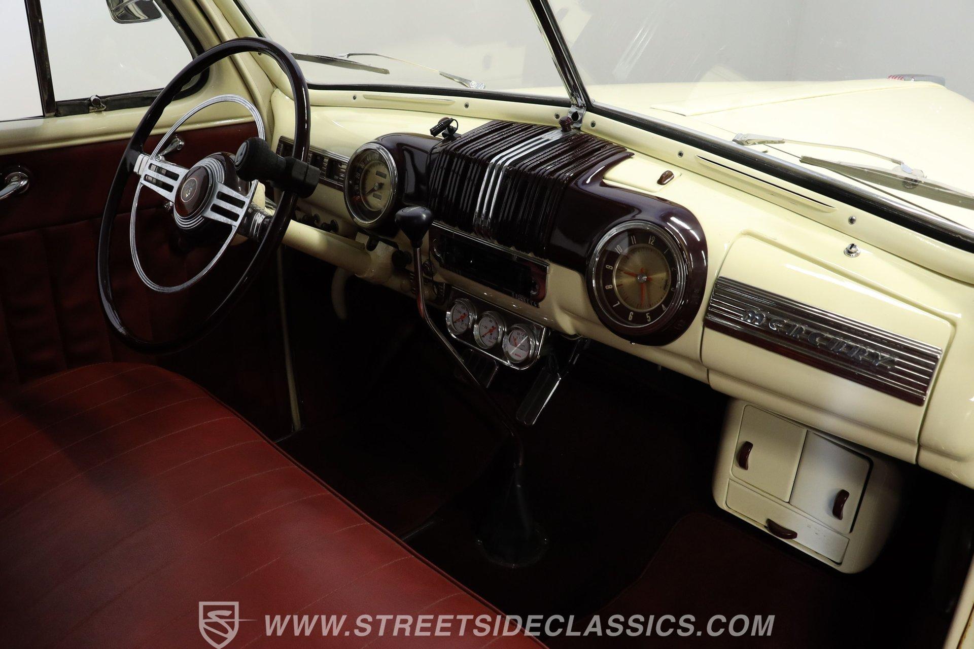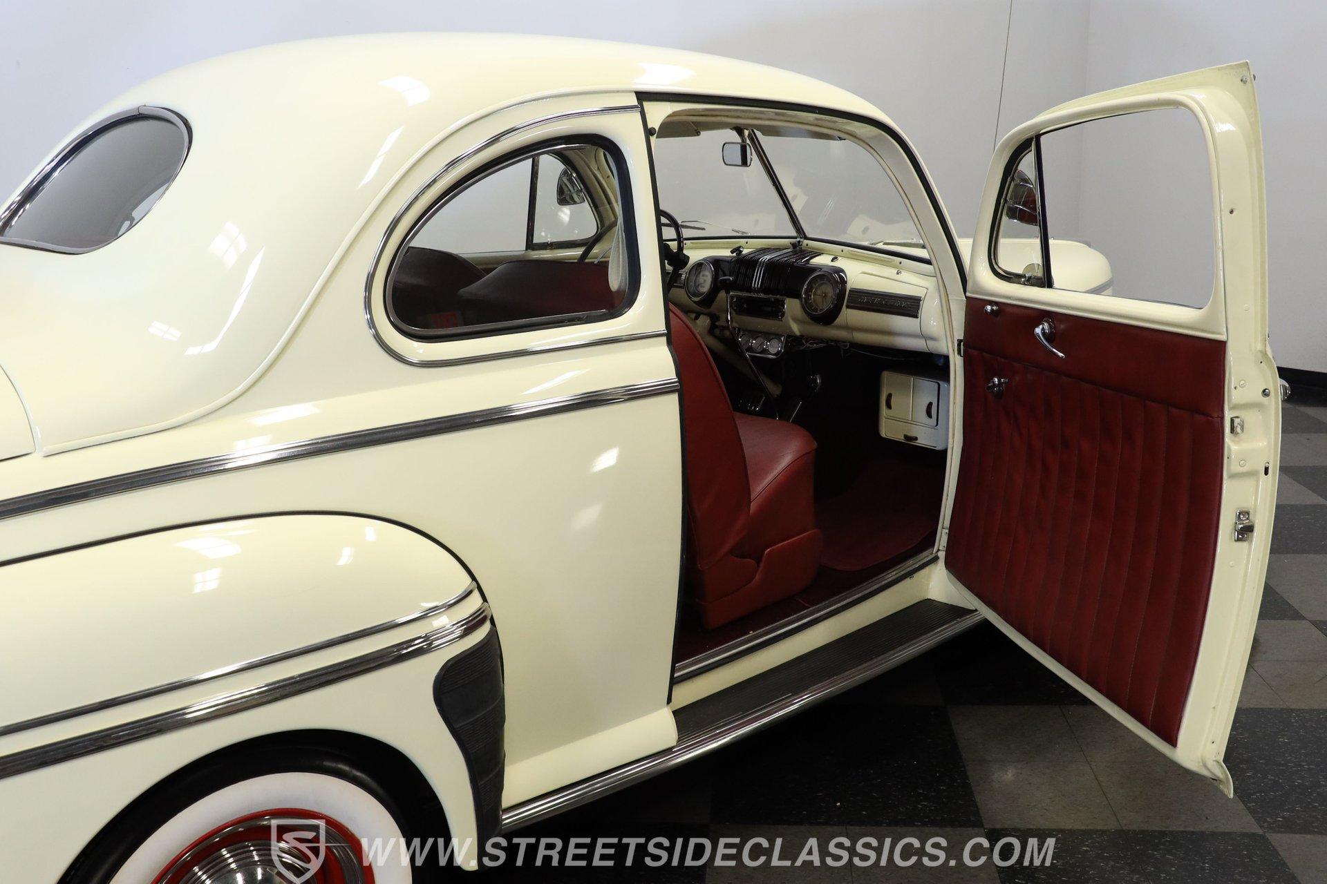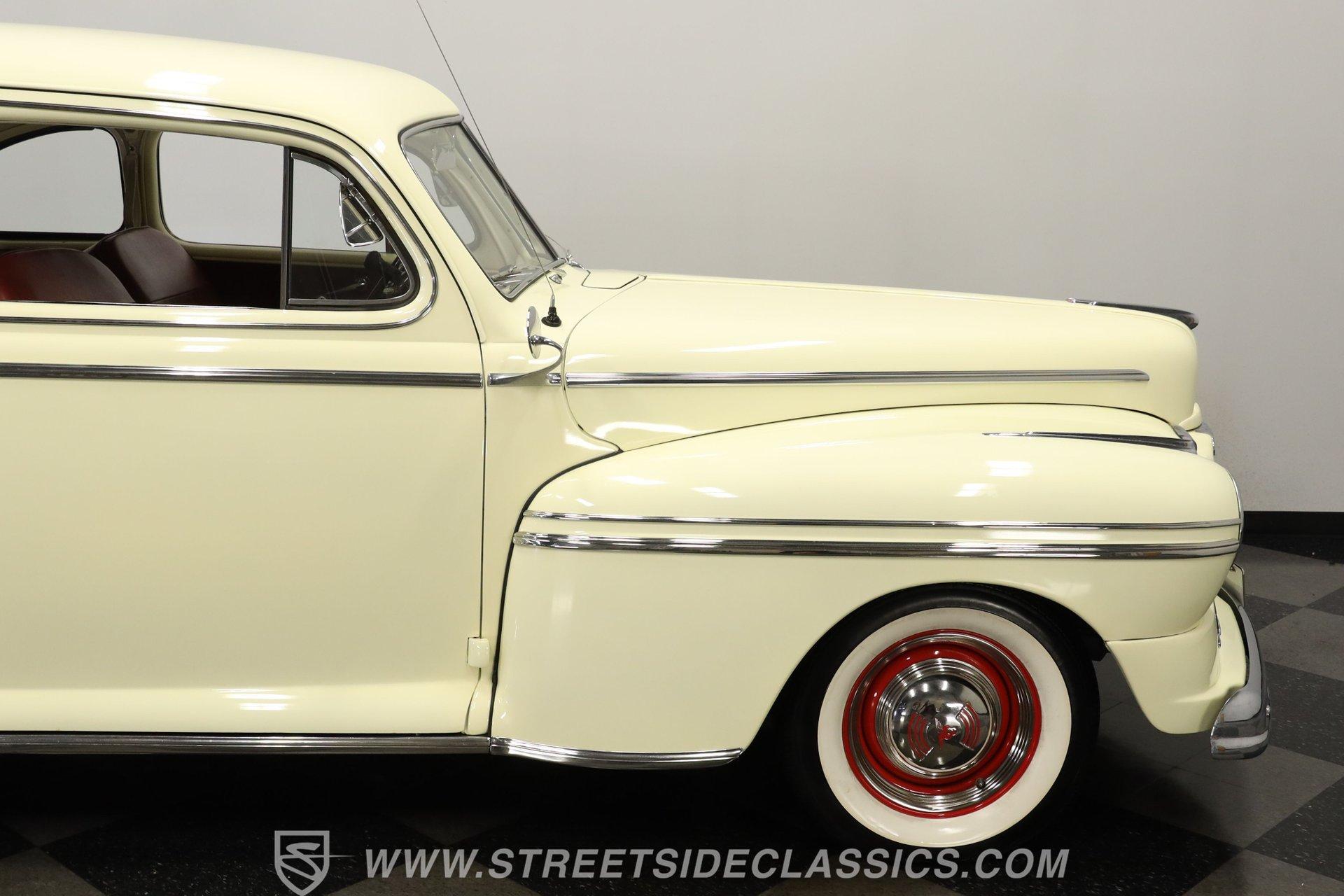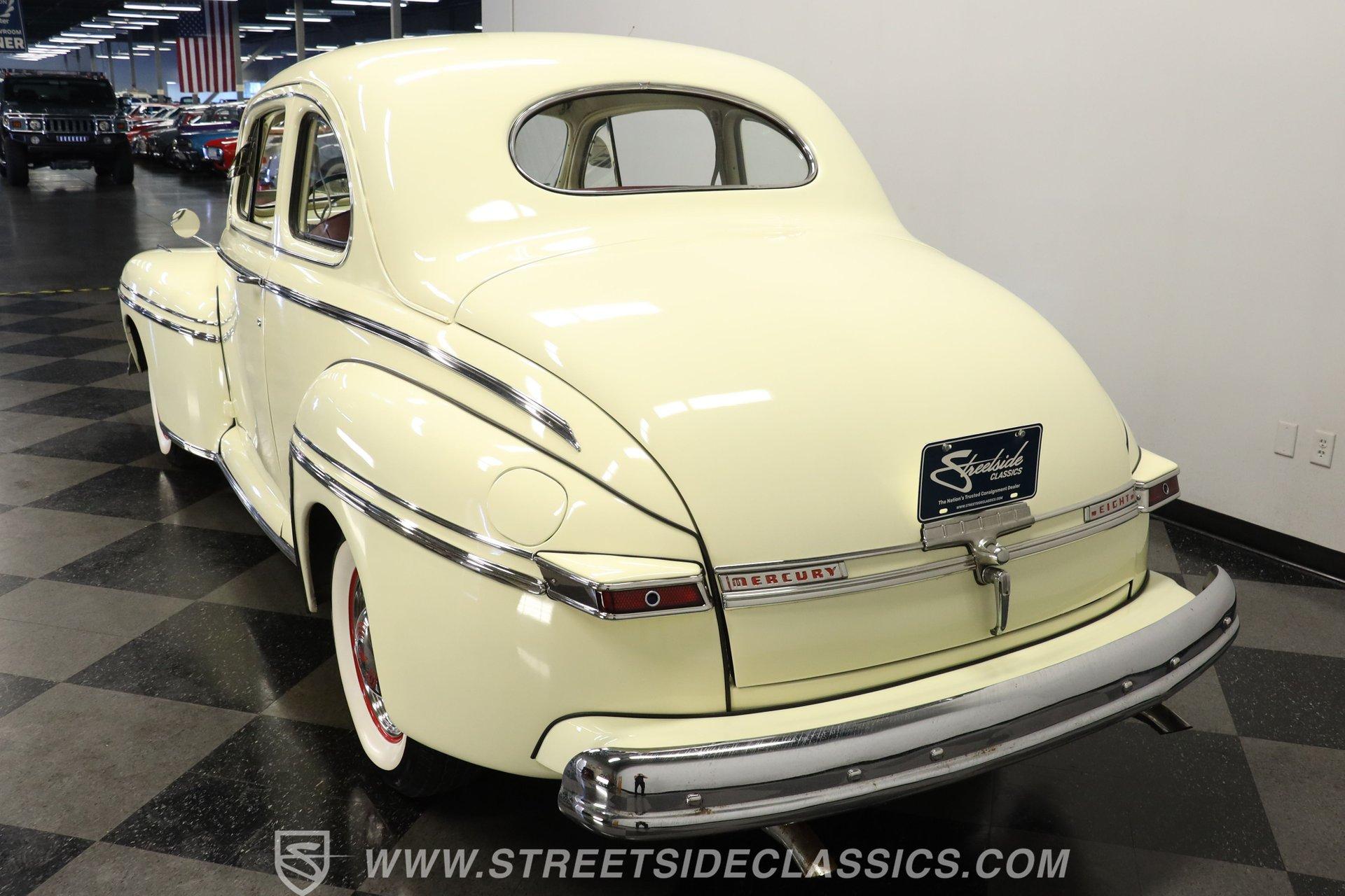 Such a sharp specimen of post-war luxury! This 1946 Mercury Coupe is one of those rare classics from decades long past that retains its convincing original form but also features some pivotal modifications that enhance its drivability, as well as the enjoyment of its next lucky owner. It wears Maize Yellow paint that mirrors a Mercury color option when it first debuted, and it still retains a shine that's accented nicely by a collection of chrome bumpers and trim whose pristine condition belies their age. Take a lap around this good-looking ride and you'll likely be impressed at how clean its body lines still are, and how its doors, hood, and trunk shut with a reassuring thud. The weatherstripping was likely replaced not all that long ago and still protects the door jambs, drip rails, and interior from the elements. Climb inside and you'll find yourself surrounded by a dark red vinyl interior that has an authentically vintage appearance and clean condition, along with some welcome upgrades that enhance driving enjoyment. The split bench front seat really looks great and sits over an expanse of matching carpeting with no noticeable stains or wear points. A factory steering wheel with that classic Mercury insignia at its center still holds its position on the column, and the factory-issue gauges behind it are nice and clear, accompanied by a quartet of aftermarket counterparts mounted below the dash. The addition of a Kenwood AM/FM/CD player with an auxiliary port that offers plenty of audio options. Lift this Mercury's sculpted hood and you'll see an engine bay that's well-maintained, with a 239-cubic-inch flathead V8 at its center that's been outfitted with a pair of Edelbrock cylinder heads and a Holley 4-barrel carburetor to increase its abilities without seriously detracting from the compartment's largely authentic appearance. This flathead actually represented quite an advancement when it was released, in that it featured more torque than previous iterations of the V8, and it's trailed by an integrated bell housing that drastically reduced drivetrain vibrations over earlier models. An electric fan has been added to keep engine temperatures down, along with an MSD ignition to maximize spark. HIGHLIGHTS PERIOD-CORRECT 239-CUBIC-INCH FLATHEAD V8 UPGRADED EDELBROCK CYLINDER HEADS 4-BARREL HOLLEY CARBURETOR 3-SPEED AUTOMATIC C4 TRANSMISSION FRONT DISC BRAKES 15" WHEELS, WITH WHITEWALL TIRES DUAL EXHAUST, WITH GLASSPACK-STYLE MUFFLERS MAIZE YELLOW PAINT REPRESENTS ORIGINAL MERCURY COLOR OPTION DARK RED VINYL INTERIOR SPLIT BENCH FRONT SEAT AM/FM/CD WITH AN AUXILIARY PORT RESTORATION PHOTOS INCLUDED An ultra-sharp vintage ride that offers some key mechanical upgrades to enhance drivability, this 1946 Mercury Coupe cruises on a set of painted 15" steel wheels with chrome centers that are wrapped with whitewall tires to reinforce its thoroughly authentic appearance. Call today! We can assist you with getting an Extended Vehicle Service Plan from Freedom Warranty, which provides comprehensive coverage that can save thousands of dollars on unexpected repairs. Inquire for more details and pricing!
