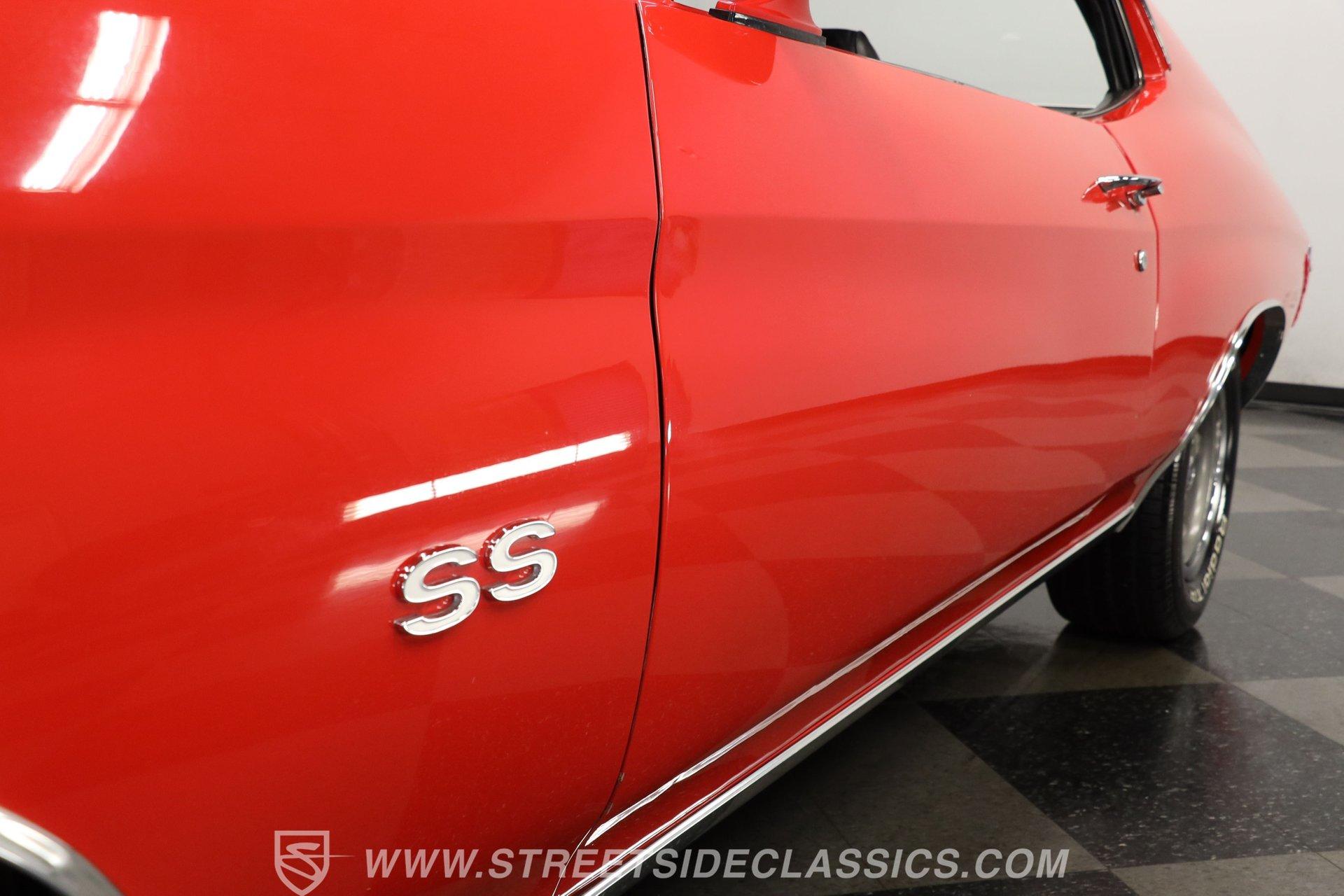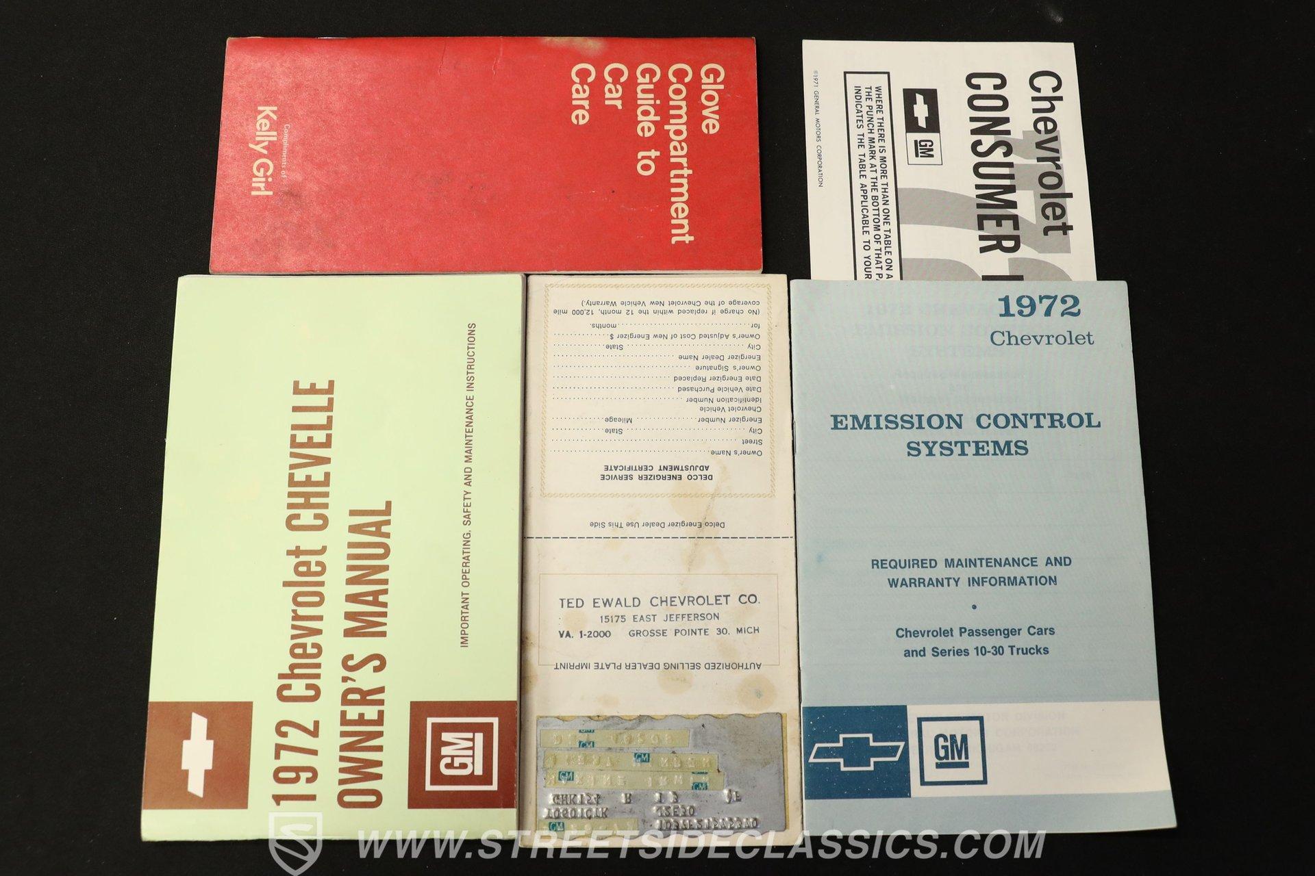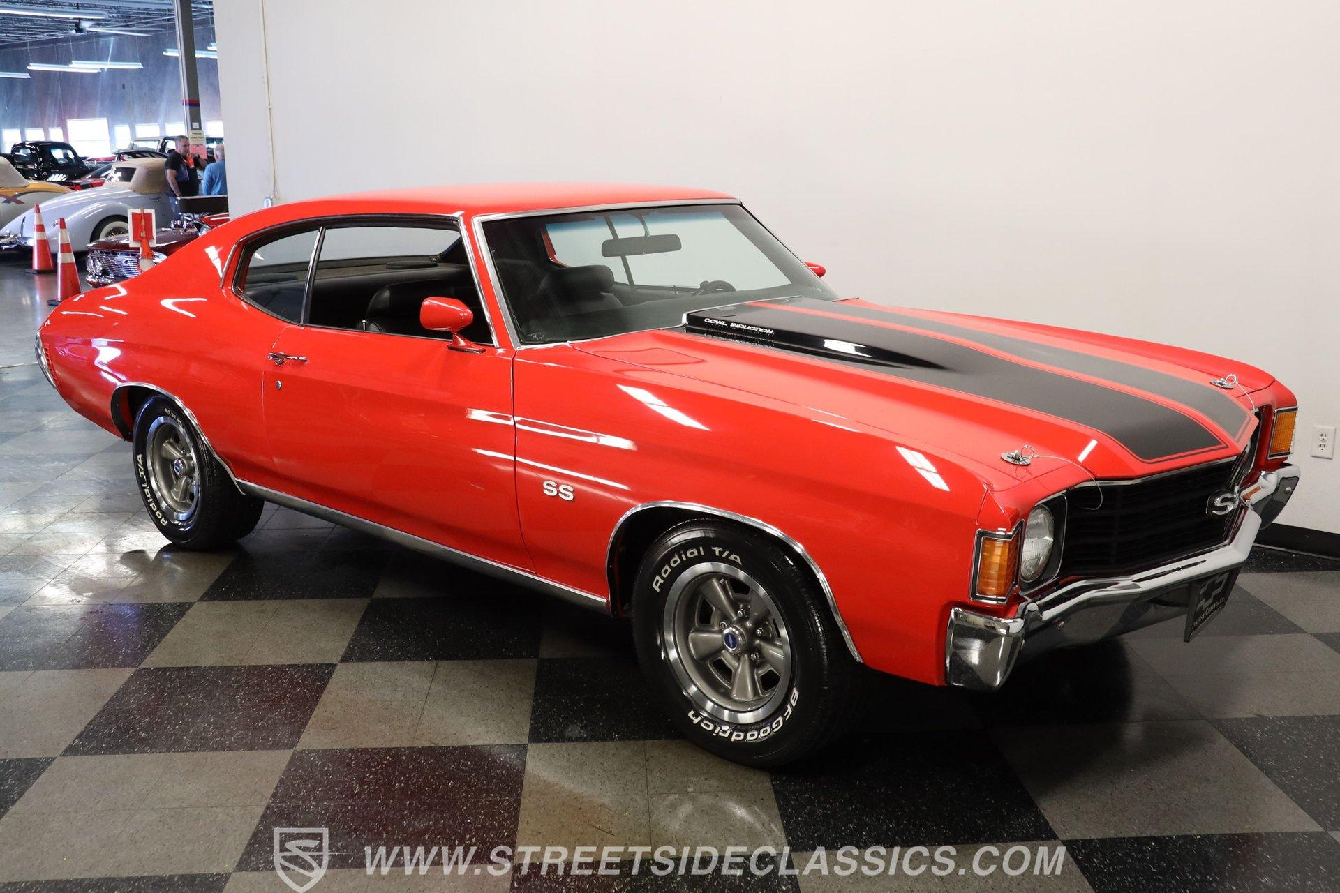 Some time ago, this 1972 Chevrolet Chevelle SS tribute was treated to a thorough, frame-off restoration that left it looking great and sporting the distinctive aesthetic features of its top-tier Chevy inspiration. The professionals involved were not only skilled but also detail-oriented, as this muscle car specimen wears all the right Super Sport appearance upgrades that combine to make for a convincingly authentic appearance, including a distinctive blackout grille, proper badging, a cowl hood, and even period-correct wheels. Flash forward to the present, and its ultra-sharp Torch Red paint continues to impress, with a great shine, and the chrome bumpers and trim still look mighty fine. Glance through the driver's side window and you'll see a quintessential vintage muscle car interior, with black upholstery that blends vinyl and cloth and shows only light wear. Lower yourself onto the split bench front seat, and you'll likely be impressed by just how comfortable it is. With plenty of legroom in back, your passengers will ride in comfort as well. The aftermarket steering wheel blends nicely with its surroundings and features its signature Chevy bowtie, and you'll find a pair of added gauges that partner with their factory counterparts to keep tabs on motoring functions. The level of functionality inside the cockpit is strong. All of those gauges work properly, the added Sony AM/FM/Cassette stereo fires up to provide a period-appropriate audio experience, and the windows on both sides roll up and down smoothly. There's a lot to like below that cowl hood. A 400-cubic-inch V8 stands by in the engine compartment, equipped with an Edelbrock 4-barrel carburetor perched on an intake manifold by the same manufacturer to enhance its already substantial capabilities. It exhales into long tube headers that lead to a pair of Turbo mufflers that add a smooth, deep exhaust note with a tap on the accelerator and partners with a rock-solid automatic TH350 3-speed transmission that shifts with precision. And that restoration we previously mentioned included an upgrade to boxed lower trailing arms and a rear sway bar, so this vintage Chevy has far more agility around turns than it did in its original form. HIGHLIGHTS 400-CUBIC-INCH V8 ENGINE EDELBROCK 4-BARREL CARBURETOR EDELBROCK INTAKE MANIFOLD 3-SPEED AUTOMATIC TH350 TRANSMISSION HEI DISTRIBUTOR ALUMINUM RADIATOR POWER STEERING POWER BRAKES, WITH DISCS UP FRONT LONG TUBE HEADERS DUAL EXHAUST, WITH TURBO MUFFLERS TORCH RED PAINT WITH BLACK ACCENTING STRIPES COWL HOOD BLACK UPHOLSTERY BLENDS VINYL AND CLOTH SONY AM/FM/CASSETTE STEREO RESTORATION PHOTOS AND RECEIPTS INCLUDED OWNER'S MANUAL AND ORIGINAL WARRANTY CARD INCLUDED A great-looking classic that combines the visual appeal of its long-coveted model in its optimized form with a strong, confidence-inspiring running condition, this 1972 Chevrolet Chevelle SS Tribute is an absolute must-see. Call today! We can assist you with getting an Extended Vehicle Service Plan from Freedom Warranty, which provides comprehensive coverage that can save thousands of dollars on unexpected repairs. Inquire for more details and pricing!