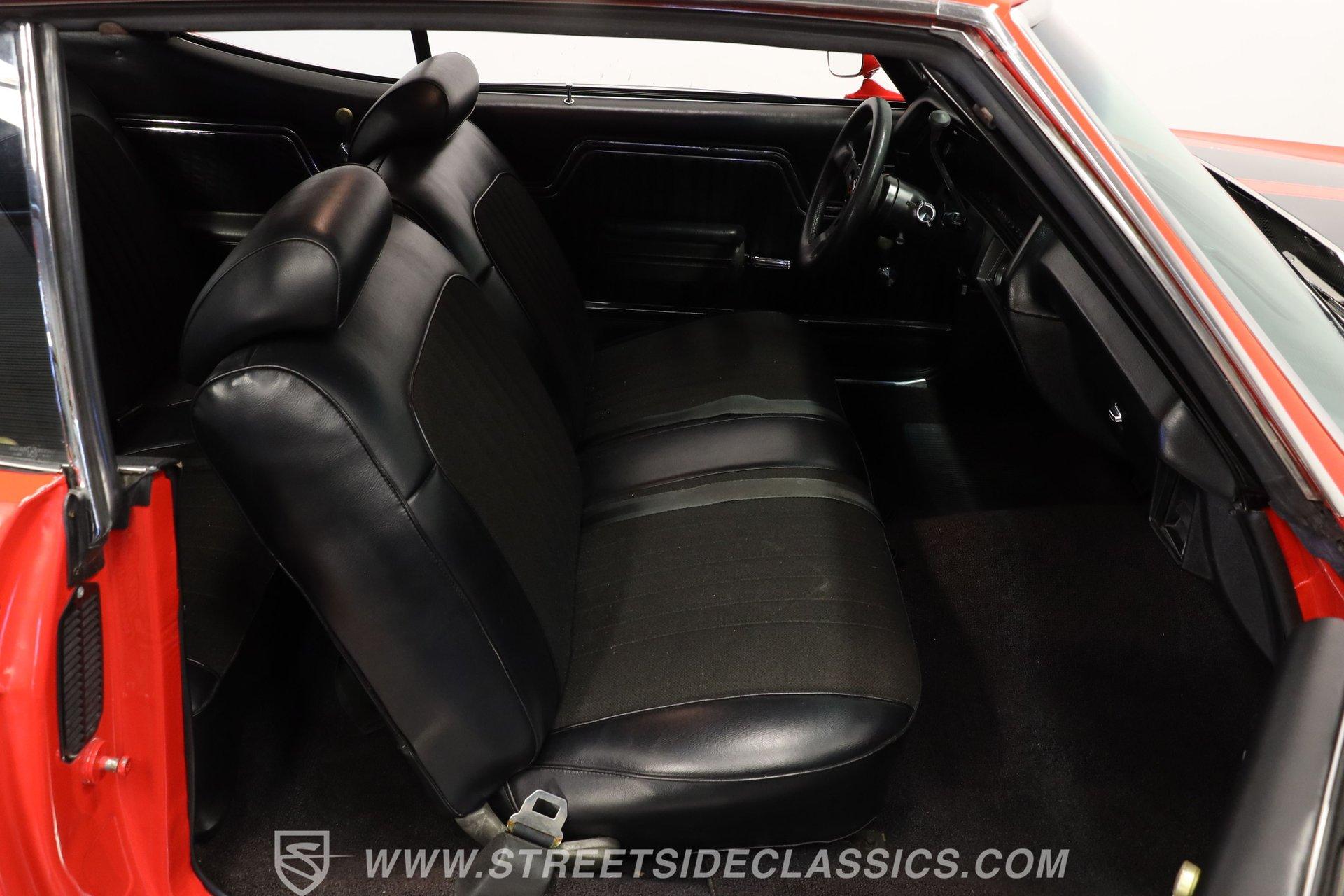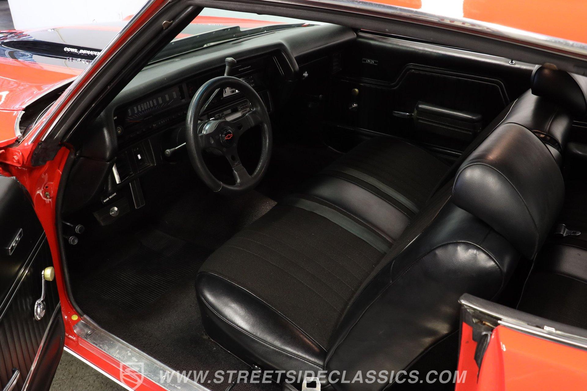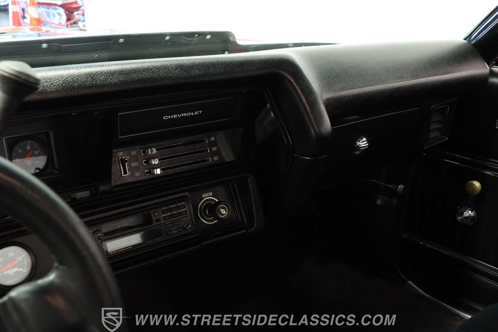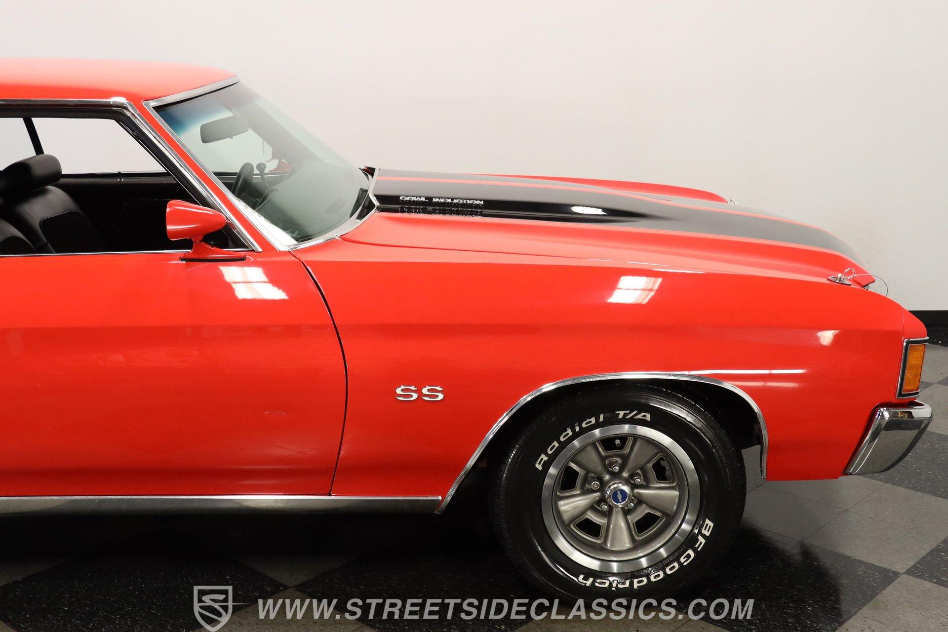Some time ago, this 1972 Chevrolet Chevelle SS tribute was treated to a thorough, frame-off restoration that left it looking great and sporting the distinctive aesthetic features of its top-tier Chevy inspiration. The professionals involved were not only skilled but also detail-oriented, as this muscle car specimen wears all the right Super Sport appearance upgrades that combine to make for a convincingly authentic appearance, including a distinctive blackout grille, proper badging, a cowl hood, and even period-correct wheels. Flash forward to the present, and its ultra-sharp Torch Red paint continues to impress, with a great shine, and the chrome bumpers and trim still look mighty fine. Glance through the driver's side window and you'll see a quintessential vintage muscle car interior, with black upholstery that blends vinyl and cloth and shows only light wear. Lower yourself onto the split bench front seat, and you'll likely be impressed by just how comfortable it is. With plenty of legroom in back, your passengers will ride in comfort as well. The aftermarket steering wheel blends nicely with its surroundings and features its signature Chevy bowtie, and you'll find a pair of added gauges that partner with their factory counterparts to keep tabs on motoring functions. The level of functionality inside the cockpit is strong. All of those gauges work properly, the added Sony AM/FM/Cassette stereo fires up to provide a period-appropriate audio experience, and the windows on both sides roll up and down smoothly. There's a lot to like below that cowl hood. A 400-cubic-inch V8 stands by in the engine compartment, equipped with an Edelbrock 4-barrel carburetor perched on an intake manifold by the same manufacturer to enhance its already substantial capabilities. It exhales into long tube headers that lead to a pair of Turbo mufflers that add a smooth, deep exhaust note with a tap on the accelerator and partners with a rock-solid automatic TH350 3-speed transmission that shifts with precision. And that restoration we previously mentioned included an upgrade to boxed lower trailing arms and a rear sway bar, so this vintage Chevy has far more agility around turns than it did in its original form. HIGHLIGHTS 400-CUBIC-INCH V8 ENGINE EDELBROCK 4-BARREL CARBURETOR EDELBROCK INTAKE MANIFOLD 3-SPEED AUTOMATIC TH350 TRANSMISSION HEI DISTRIBUTOR ALUMINUM RADIATOR POWER STEERING POWER BRAKES, WITH DISCS UP FRONT LONG TUBE HEADERS DUAL EXHAUST, WITH TURBO MUFFLERS TORCH RED PAINT WITH BLACK ACCENTING STRIPES COWL HOOD BLACK UPHOLSTERY BLENDS VINYL AND CLOTH SONY AM/FM/CASSETTE STEREO RESTORATION PHOTOS AND RECEIPTS INCLUDED OWNER'S MANUAL AND ORIGINAL WARRANTY CARD INCLUDED A great-looking classic that combines the visual appeal of its long-coveted model in its optimized form with a strong, confidence-inspiring running condition, this 1972 Chevrolet Chevelle SS Tribute is an absolute must-see. Call today! We can assist you with getting an Extended Vehicle Service Plan from Freedom Warranty, which provides comprehensive coverage that can save thousands of dollars on unexpected repairs. Inquire for more details and pricing!