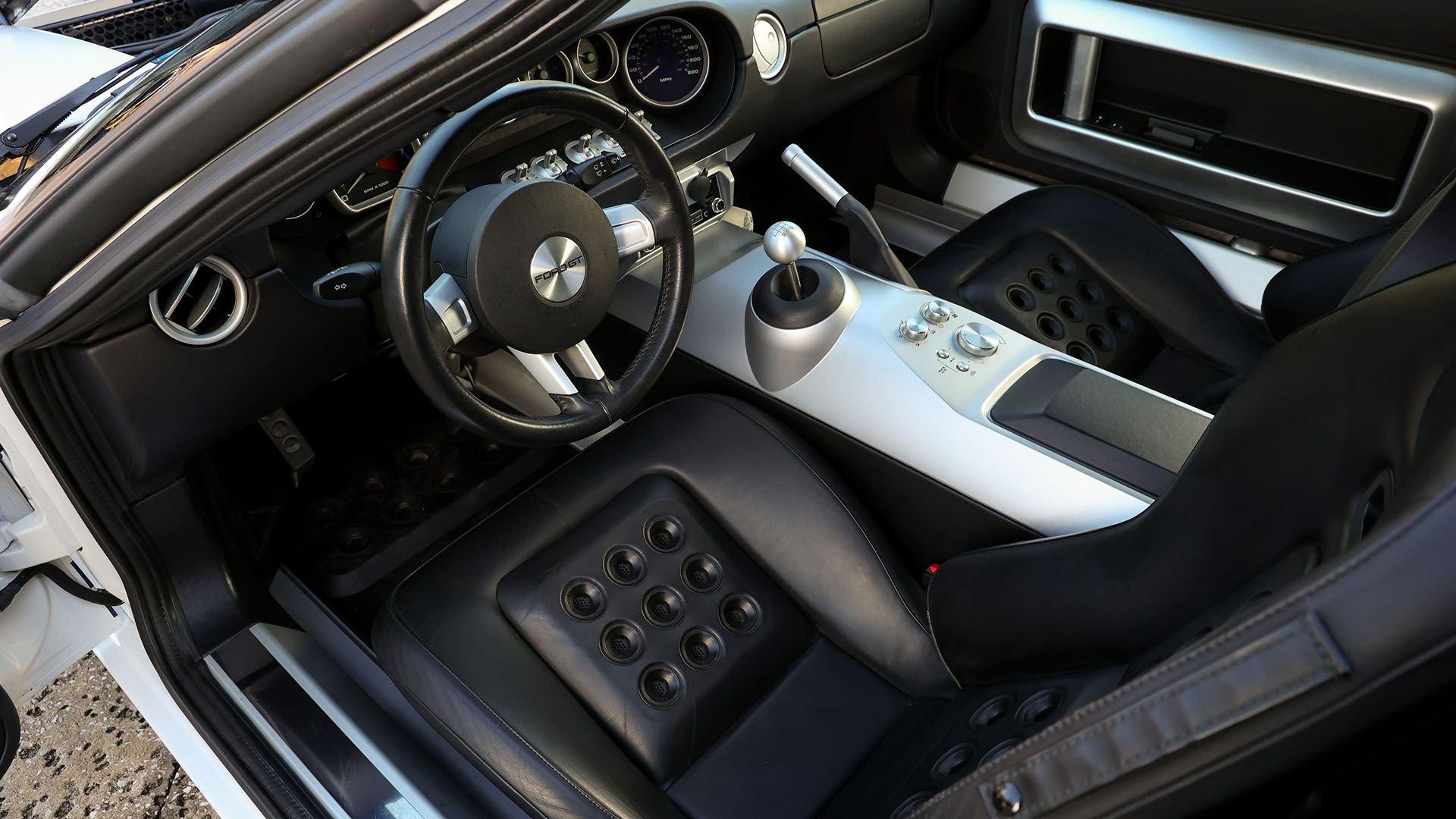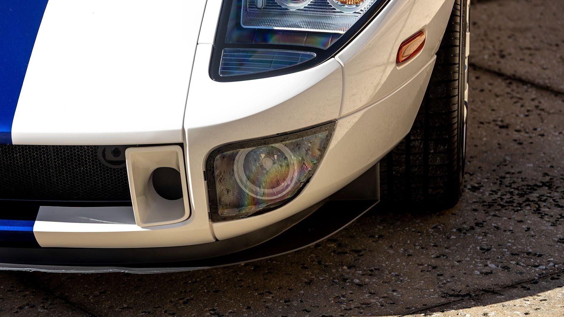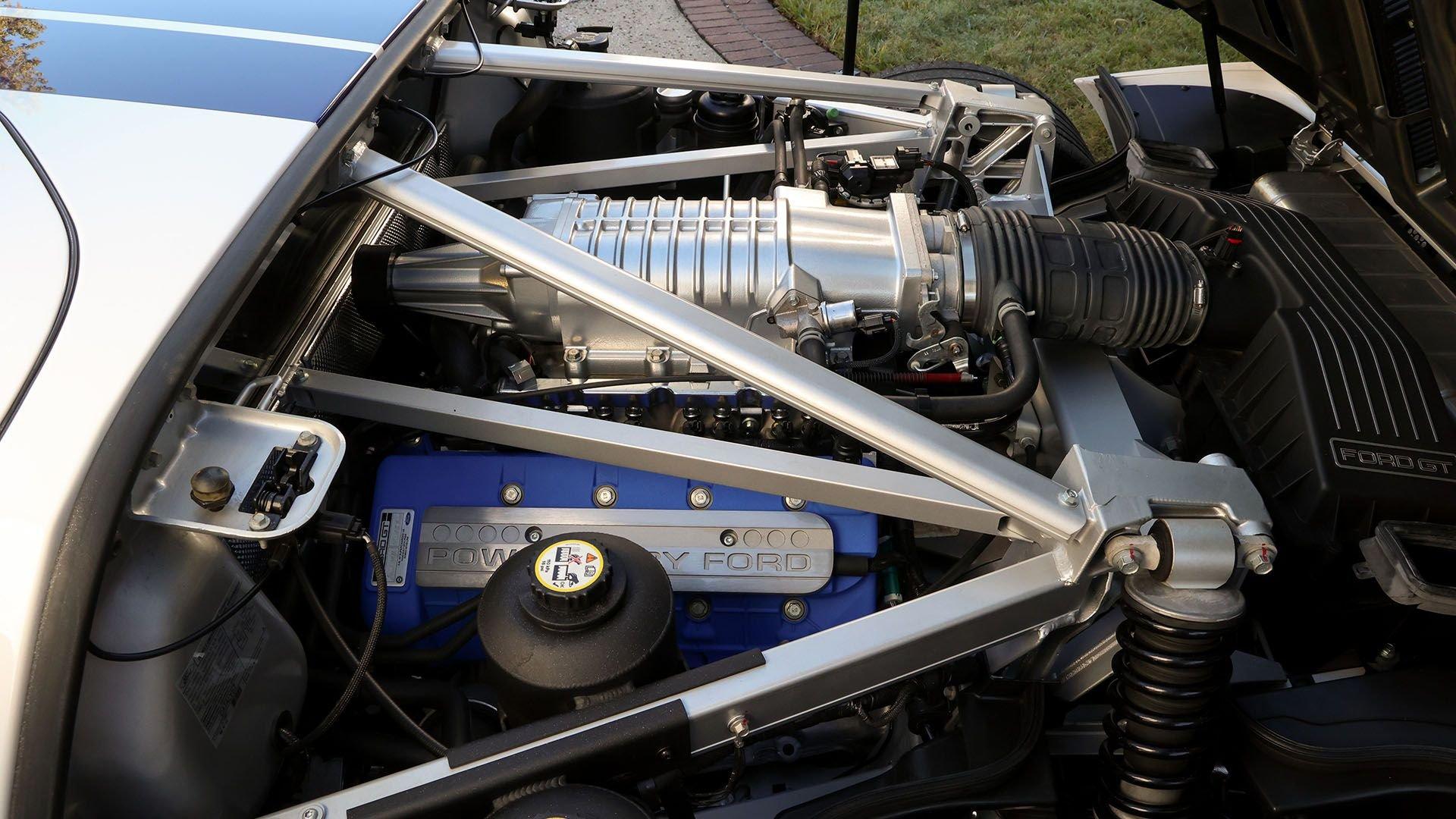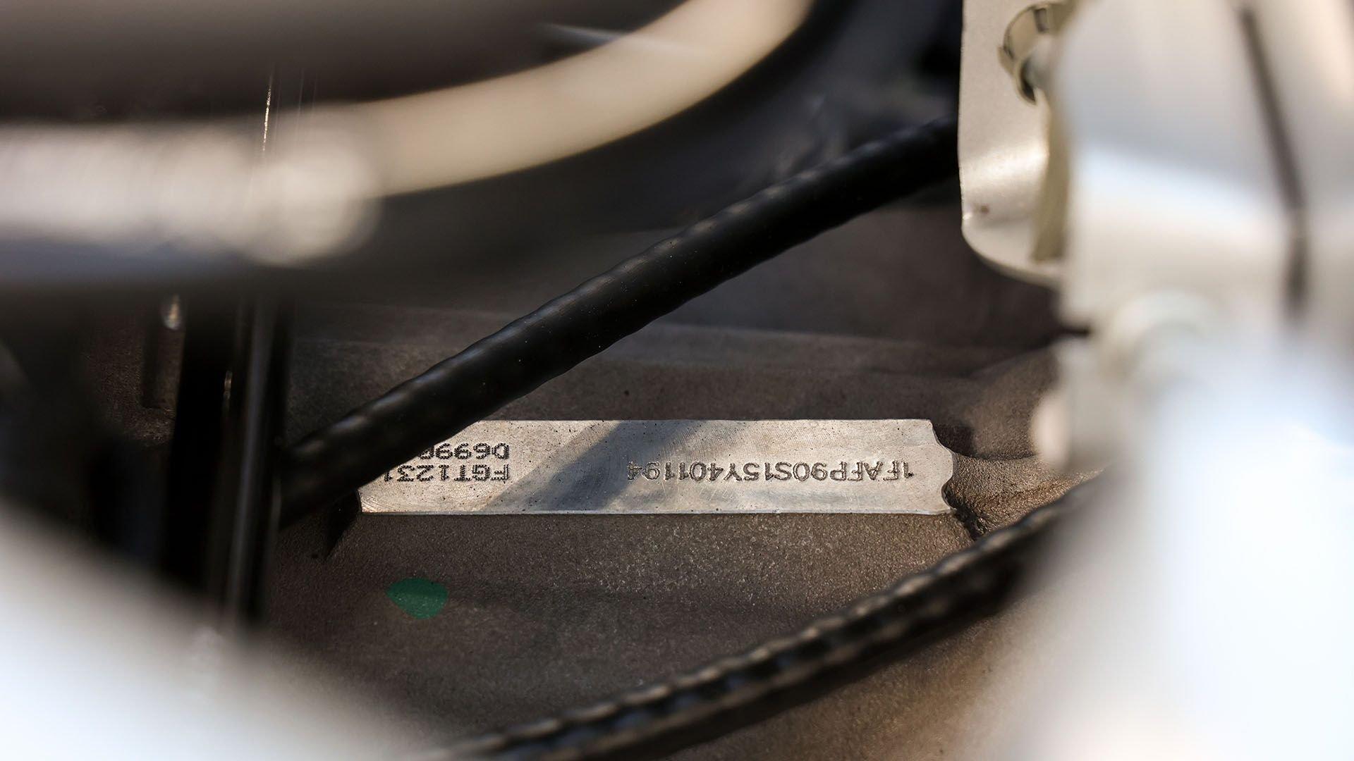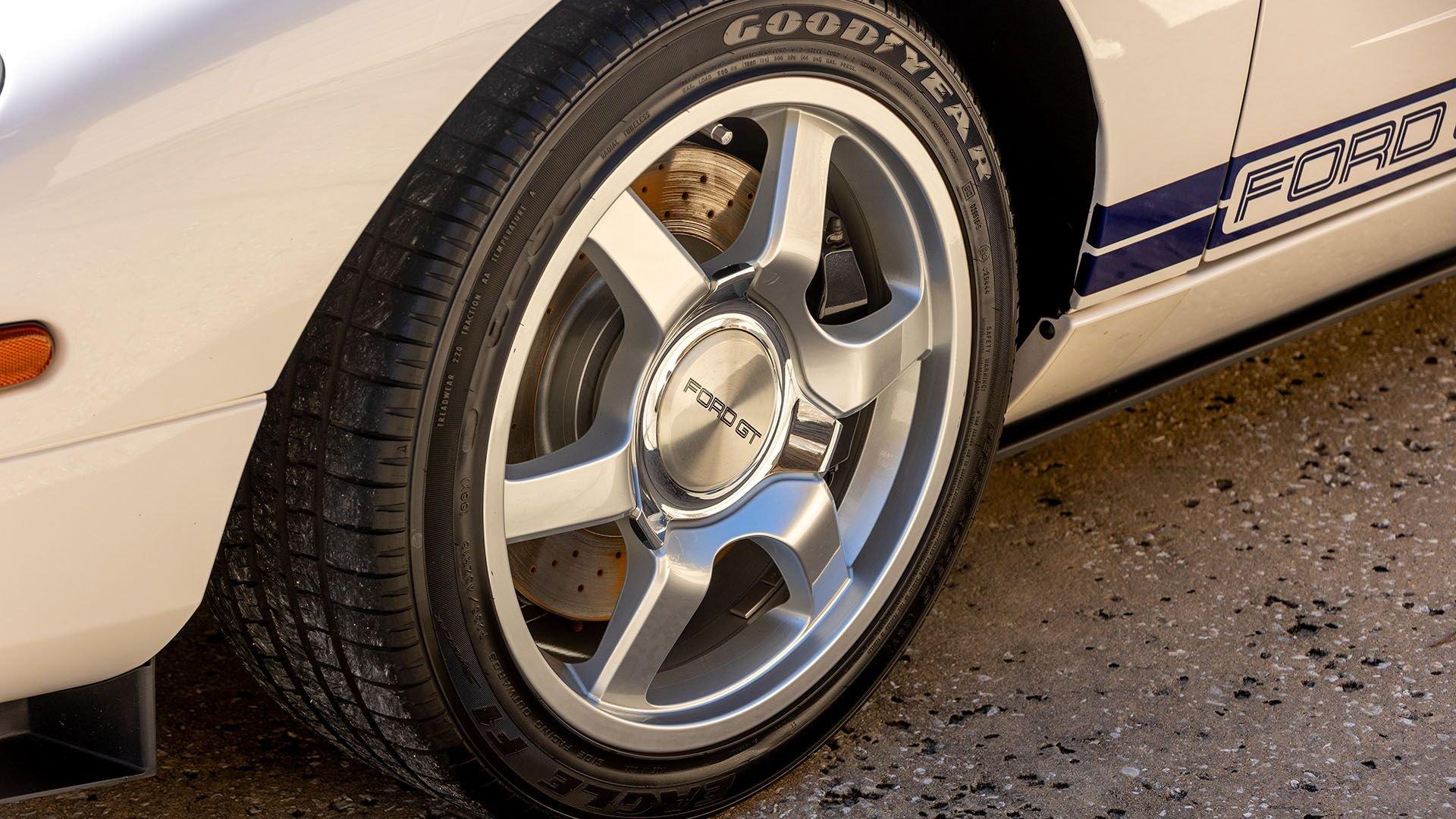 Chassis No. 1FAFP90S15Y401194 The Ford GT was a bold reawakening of the marque’s supercar era in the form of the reimagined Le Mans-conquering GT40. Conceived in concept form to celebrate Ford Motor Company’s centennial anniversary in 2003, the new-age GT debuted several unique features all together in a retro package with an unmistakable silhouette designed by Camilo Pardo. Carroll Shelby was also brought back to serve as technical advisor on the production of the GT40’s successor. Although lacking a Le Mans counterpart at the time, the new Ford GT quickly cemented itself as an unparalleled driver’s car, offering a mix of analog-style controls and modern performance. Power came from a supercharged 5.4-liter V8 with DOHC four-valves-per-cylinder, producing 550 horsepower and 500 lb-ft of torque through a Ricardo six-speed manual transmission and a limited-slip differential. As a result, the Ford GT sprinted from zero to 60 mph in 3.3 seconds and on to a top speed of 205 mph. This 2005 Ford GT, serial number 1194, is finished in Centennial White with Sonic Blue Le Mans racing stripes adorning the hood, roof, rear hatch, and flanks over an Ebony Black leather-trimmed interior. It is further equipped with black-painted brake calipers, cast aluminum wheels, and the premium McIntosh Audiophile stereo with CD player, as confirmed by the included Marti Report and original window sticker. Chassis 1194 was completed in May 2005 and was first offered for sale by Larry H. Miller Super Ford in Salt Lake City, Utah, that August according to its clean CARFAX Vehicle History Report. The car was sold to its sole private owner in Florida that same year and was regularly serviced through Ford dealerships in Jacksonville and Saint Augustine for the next 10 years. It was recently comprehensively serviced by the consignor’s in-house mechanic, which included an oil change, belt replacement, brake refresh, four new Bridgestone tires, and more. It is now offered with 7,700 miles as well as its owner’s manuals in their case, battery charger, two sets of keys, air pump, window sticker, and tote bag with car cover still in their plastic. With a nearly full roster of options, single ownership, and low mileage, chassis 1194 is an investment-grade GT that exemplifies the purity and performance of Ford’s celebrated supercar.